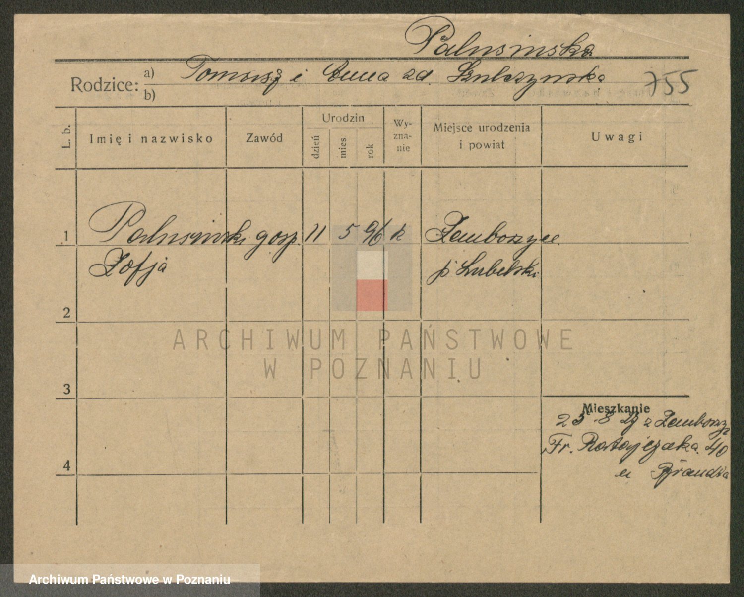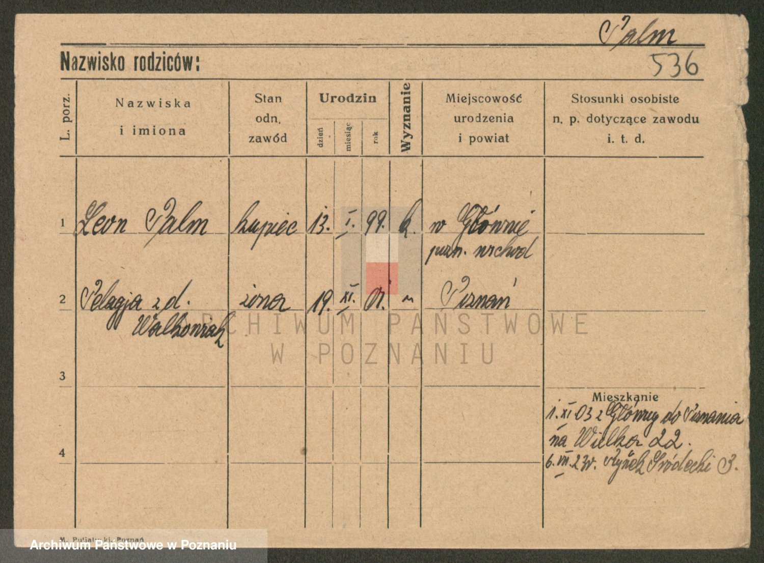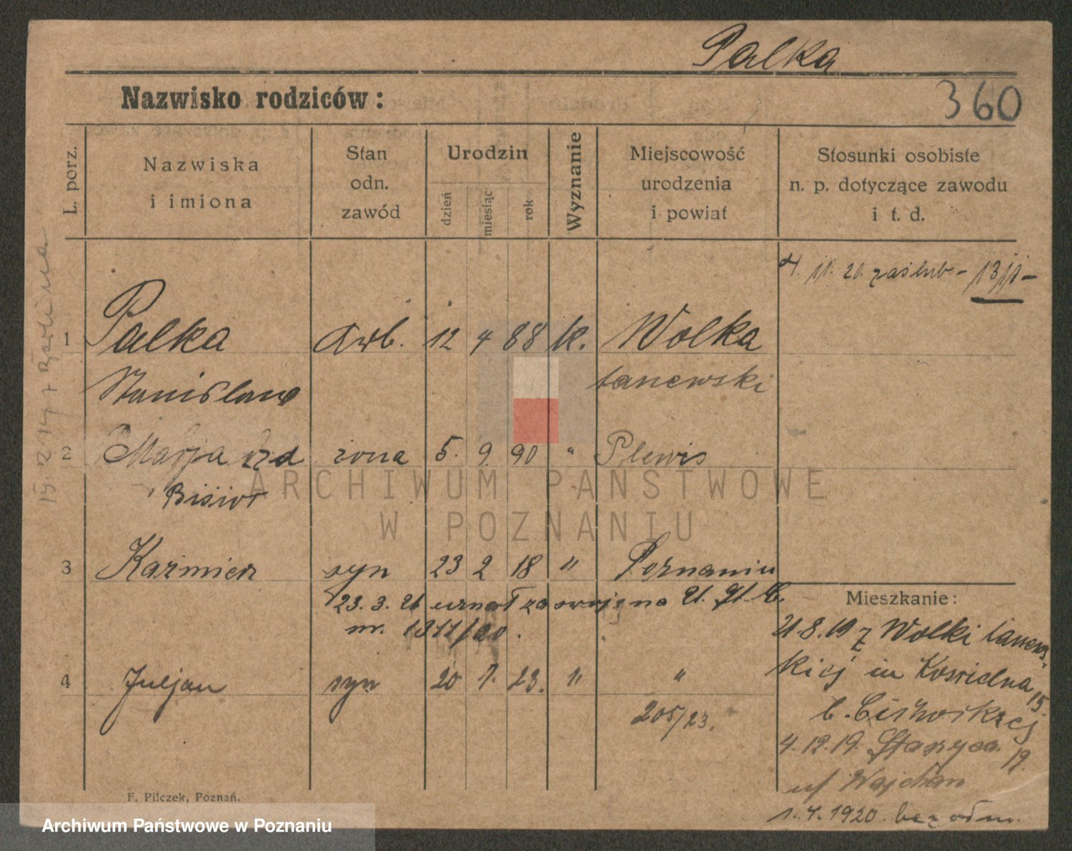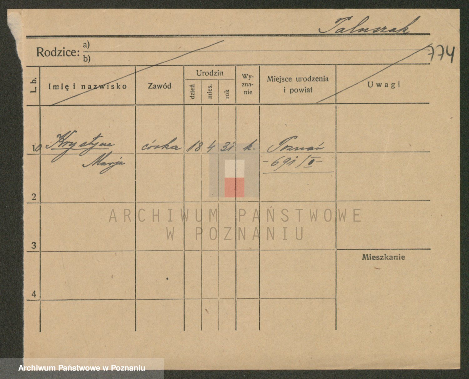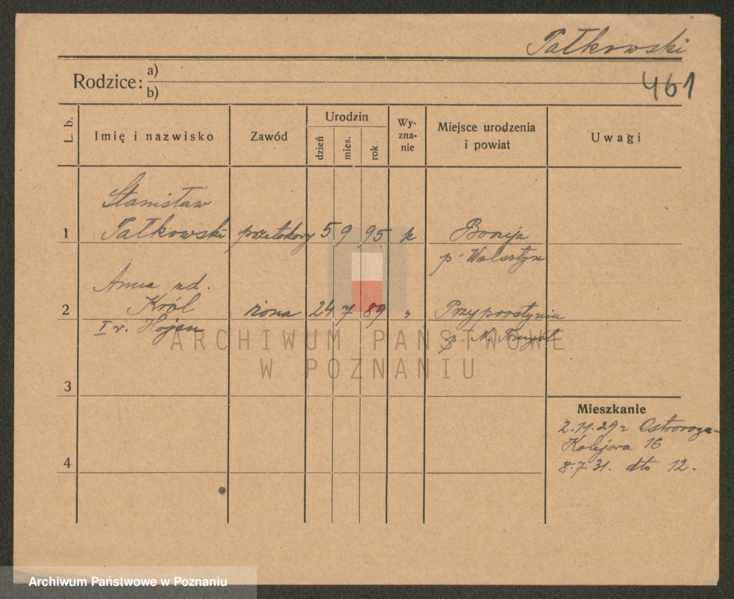 Podgląd karty osobowej dostępny jest po kliknięciu na nazwisko lub ikonkę karty. Można dokonywać powiększenia (ikony na górze) lub przechodzić między kolejnymi skanami (strzałki po bokach).