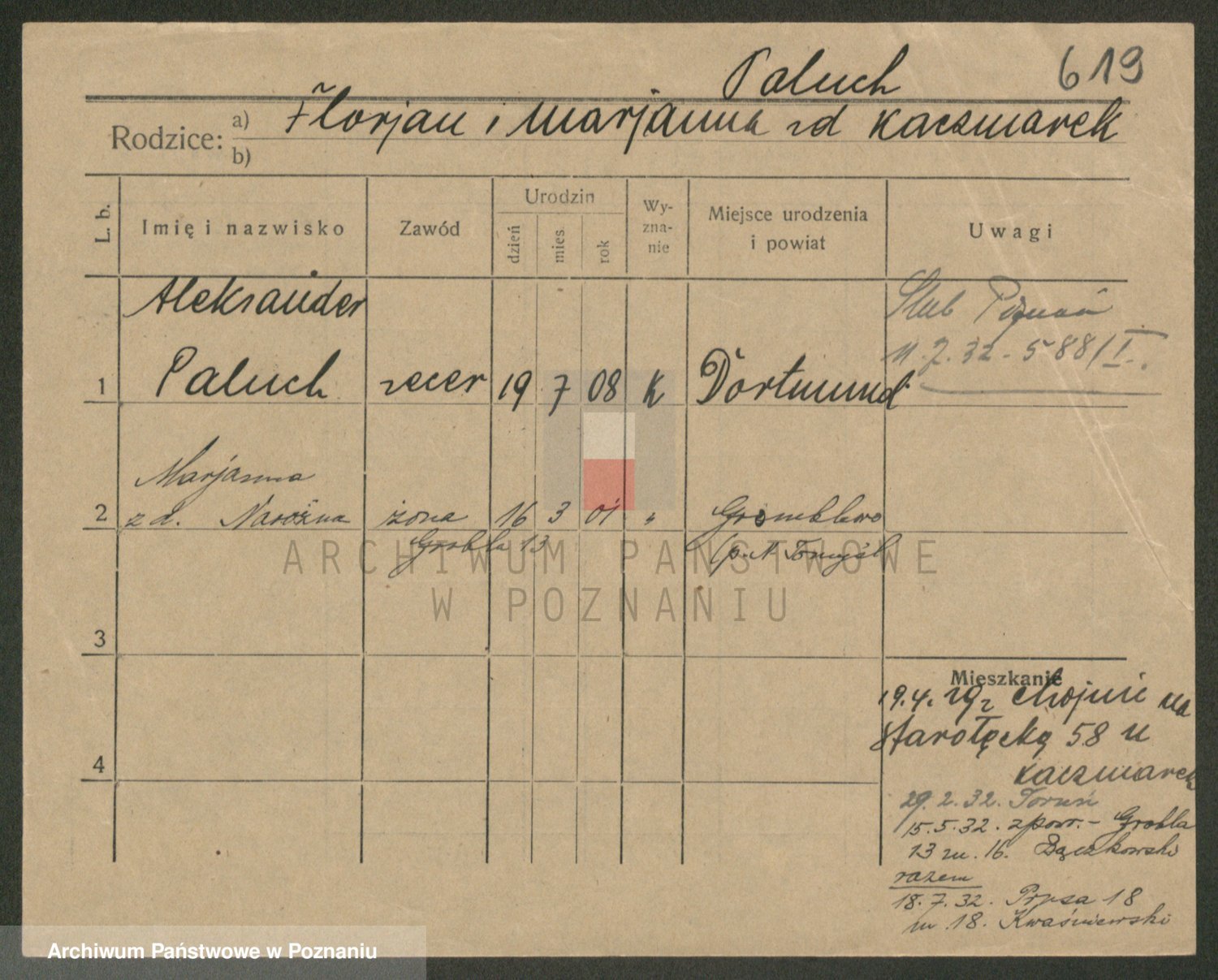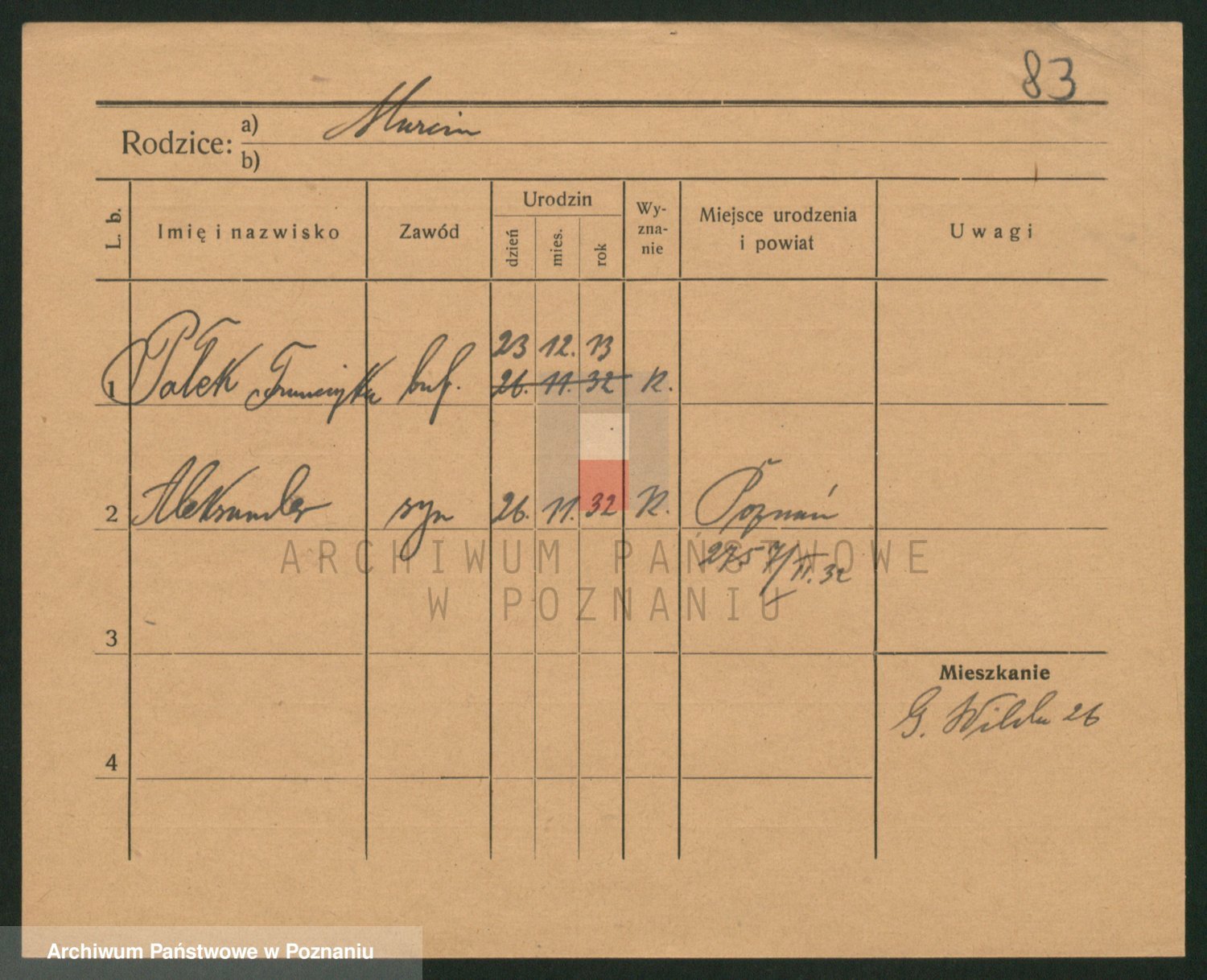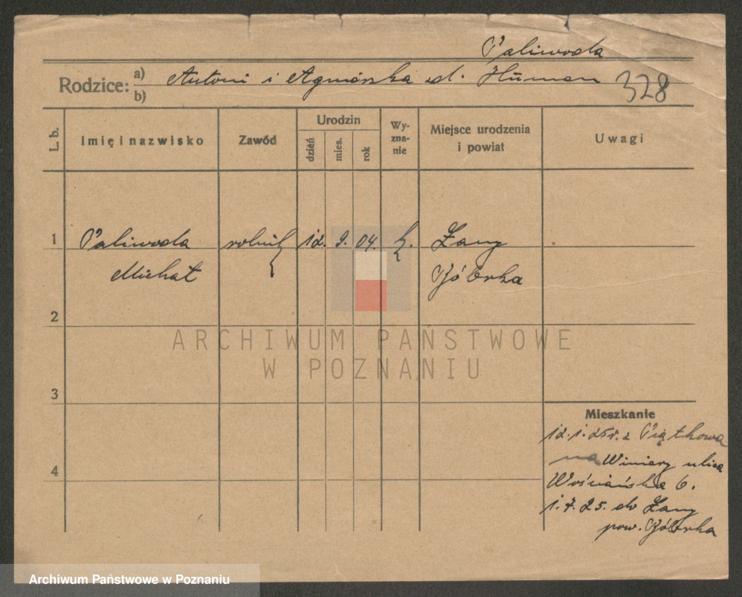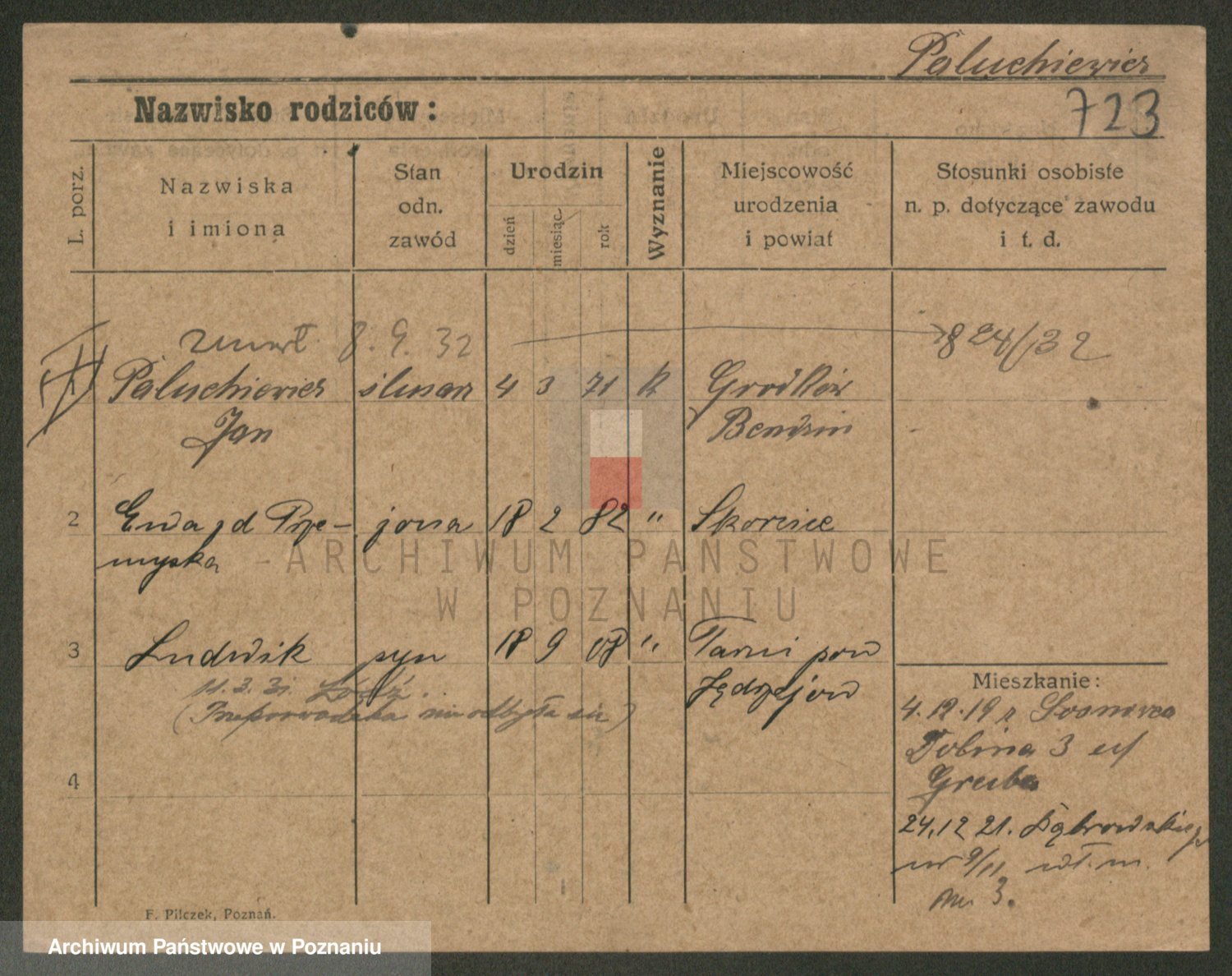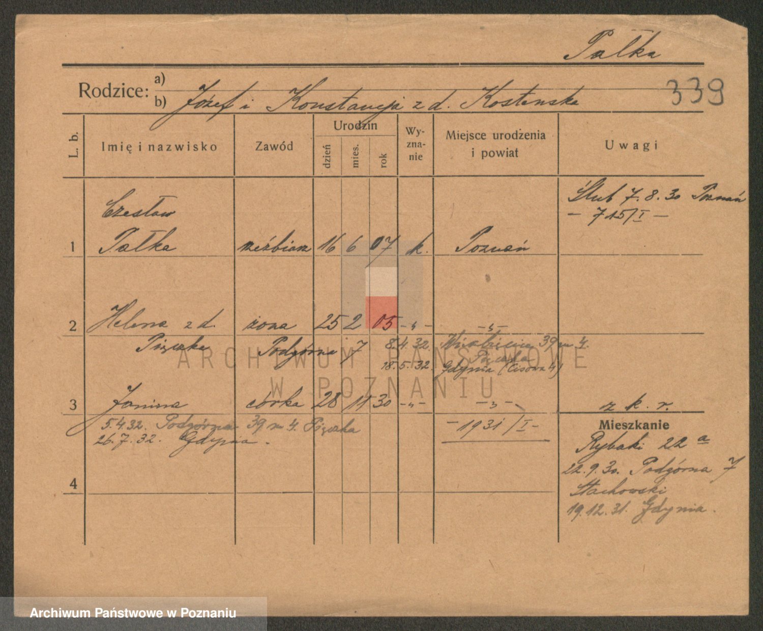 Podgląd karty osobowej dostępny jest po kliknięciu na nazwisko lub ikonkę karty. Można dokonywać powiększenia (ikony na górze) lub przechodzić między kolejnymi skanami (strzałki po bokach).