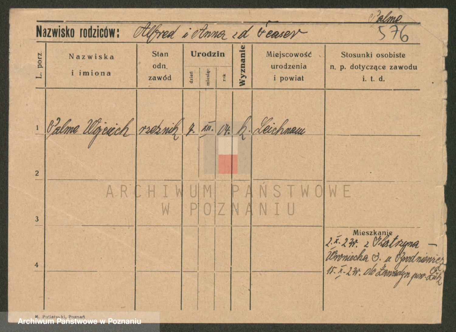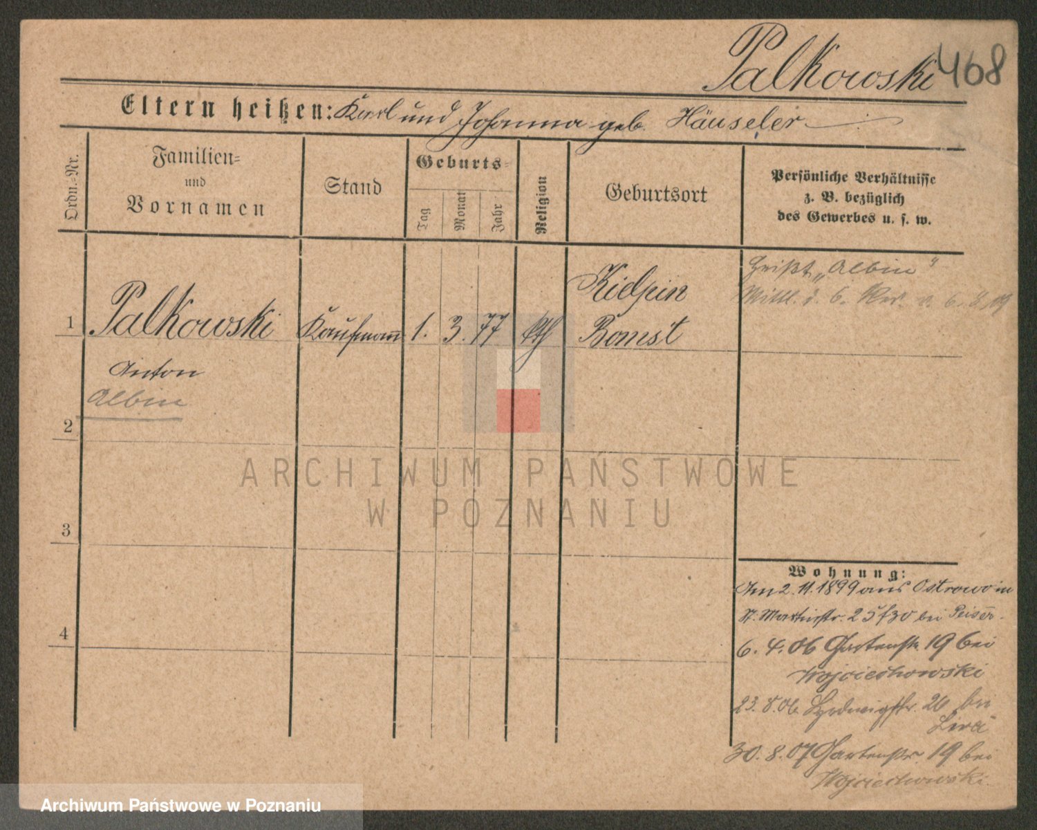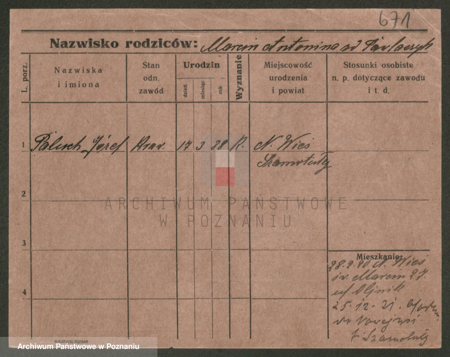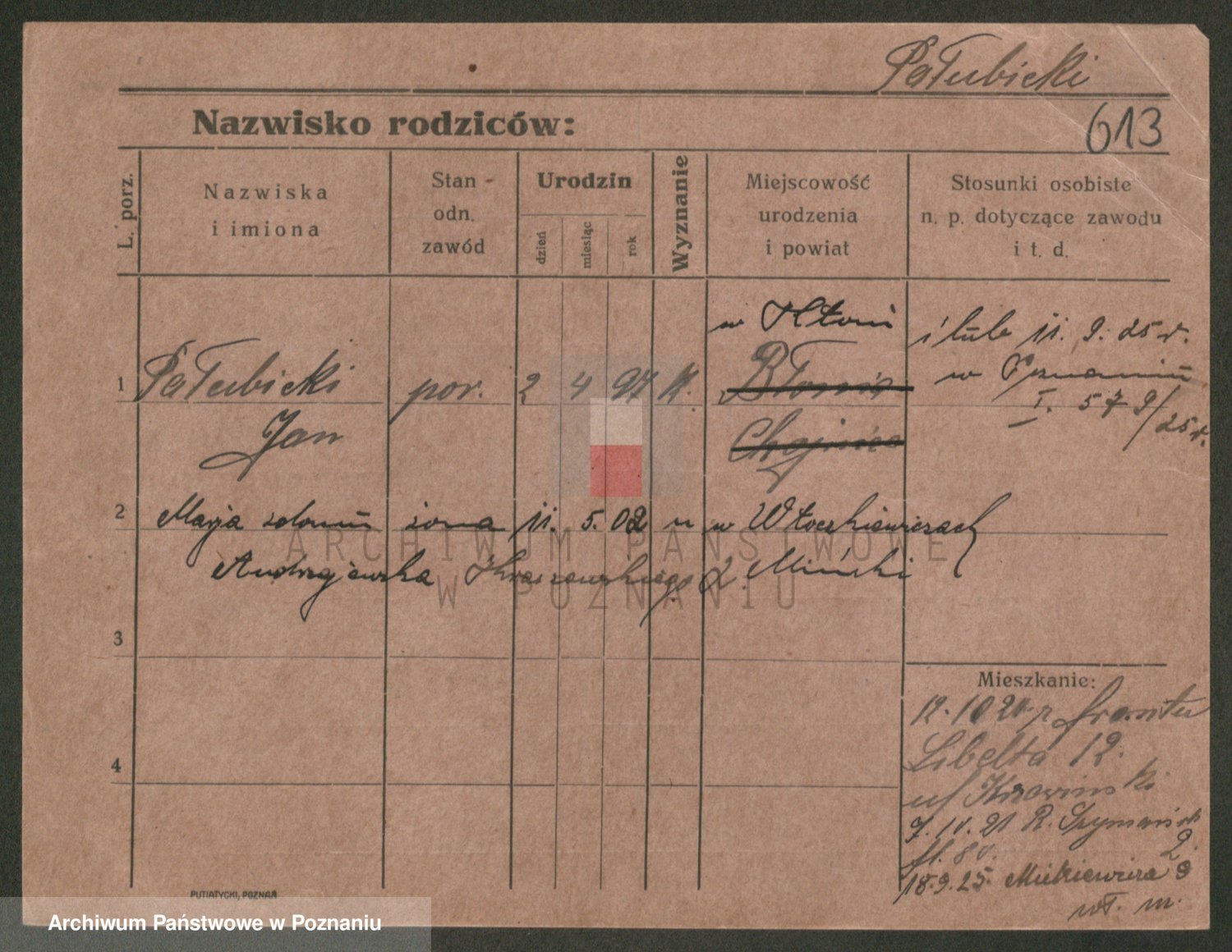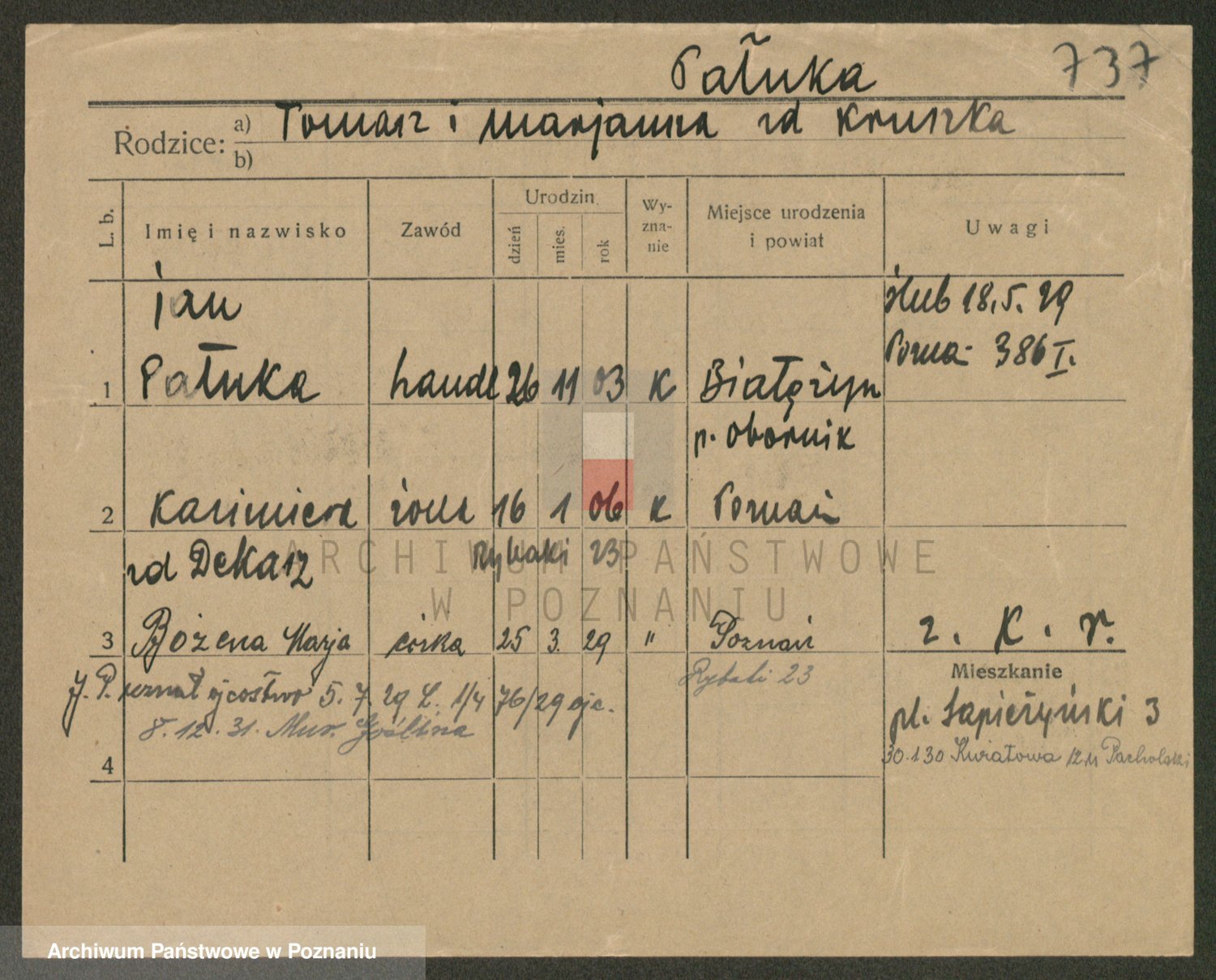 Podgląd karty osobowej dostępny jest po kliknięciu na nazwisko lub ikonkę karty. Można dokonywać powiększenia (ikony na górze) lub przechodzić między kolejnymi skanami (strzałki po bokach).