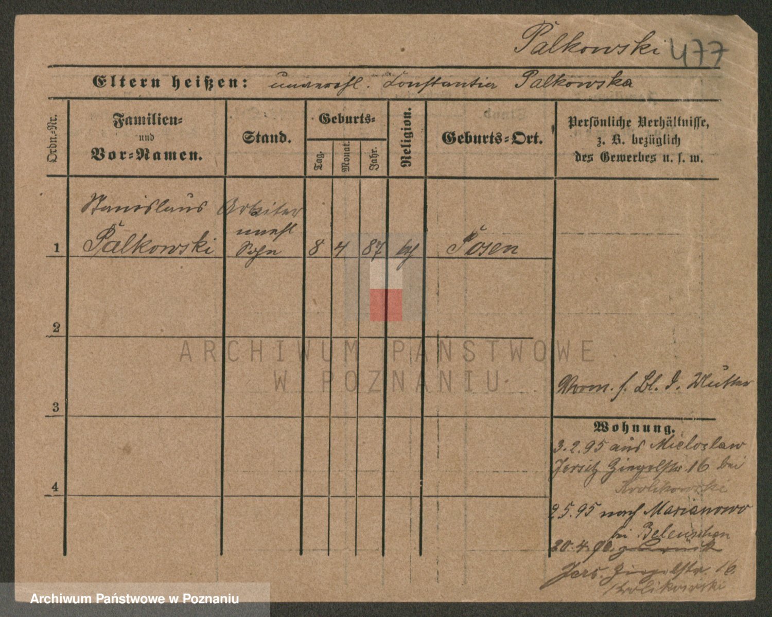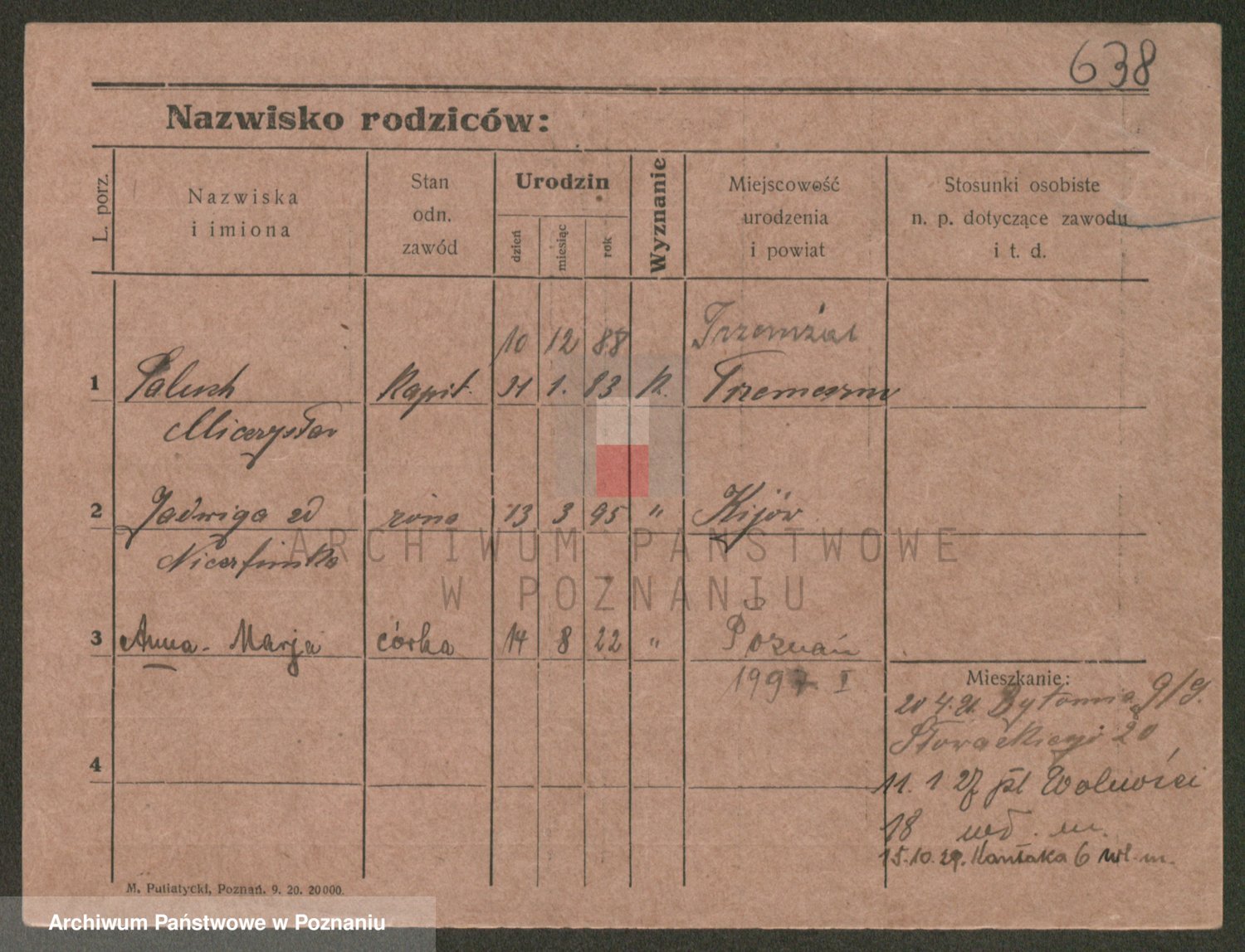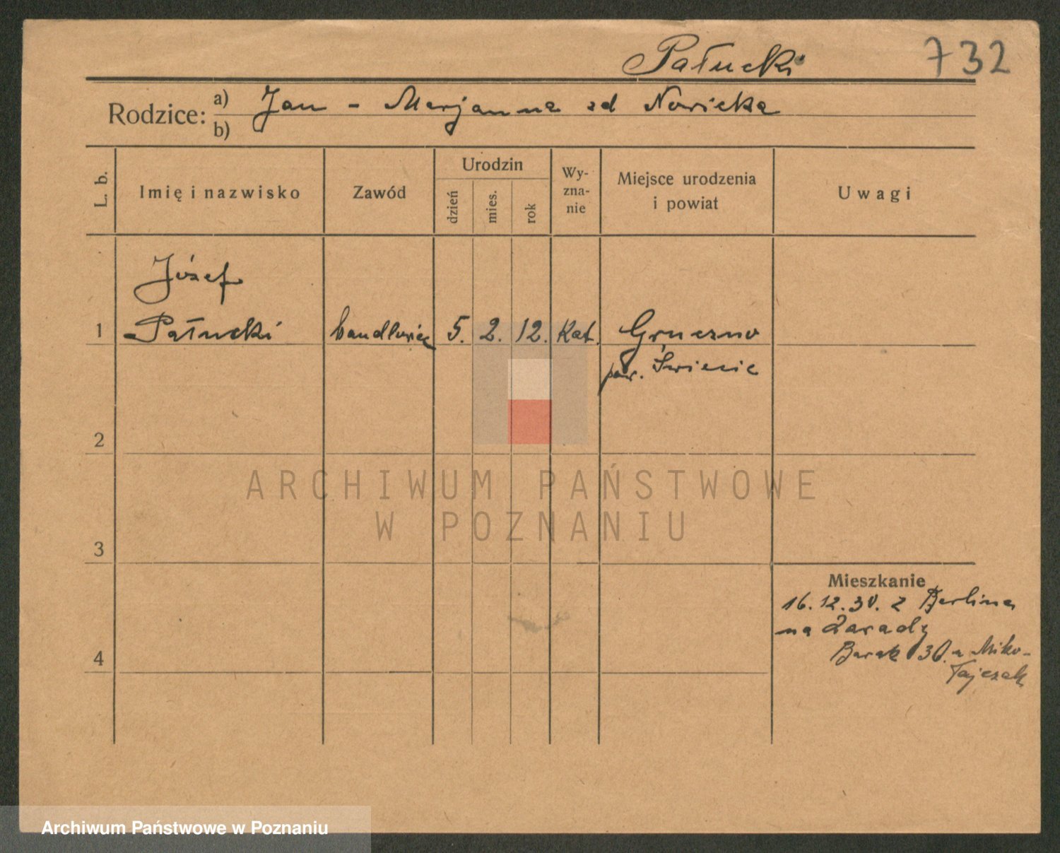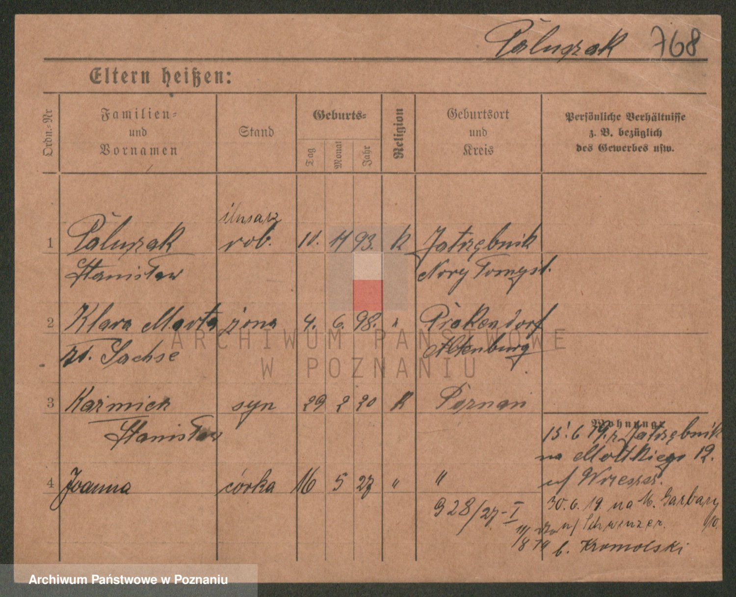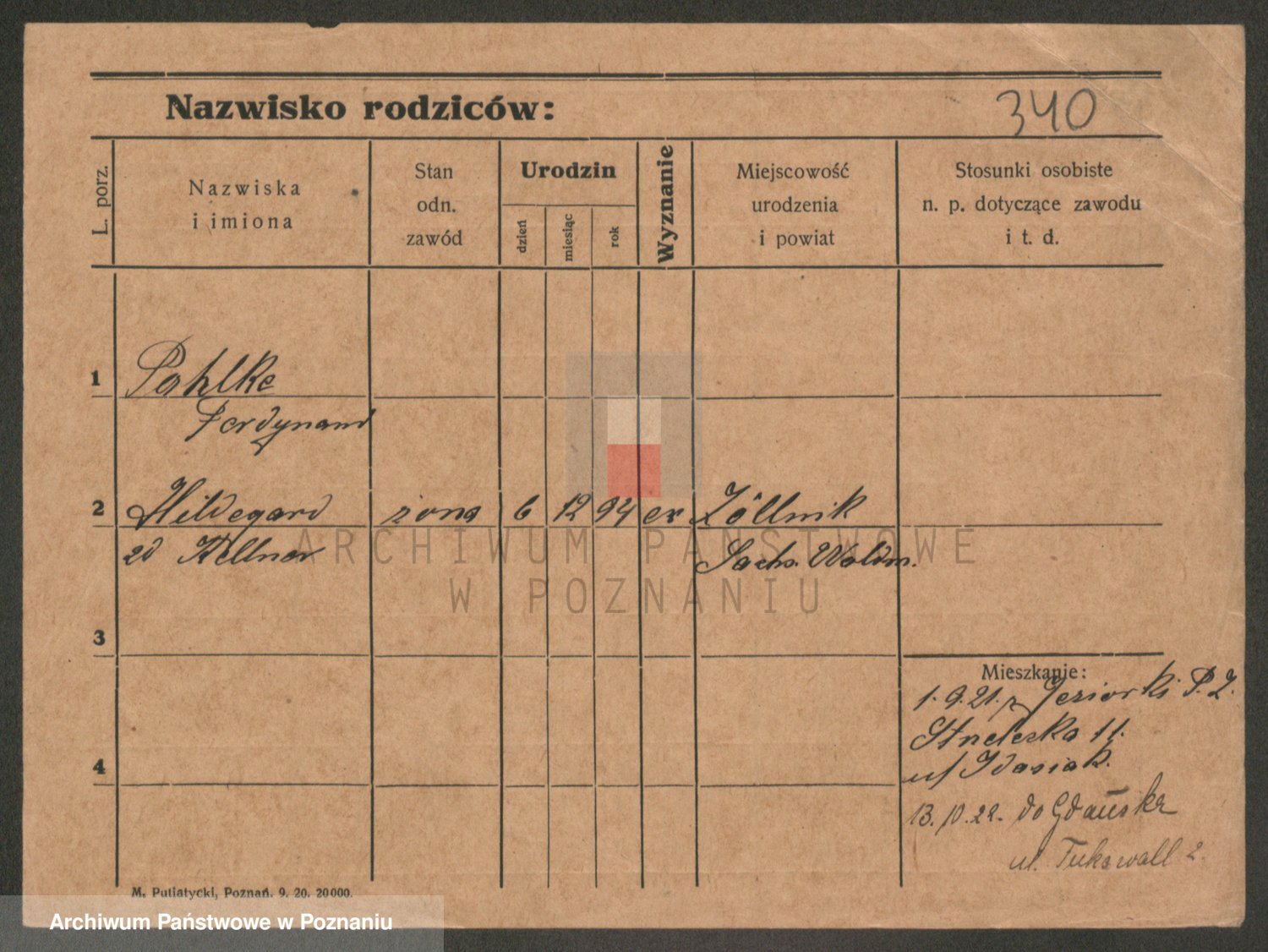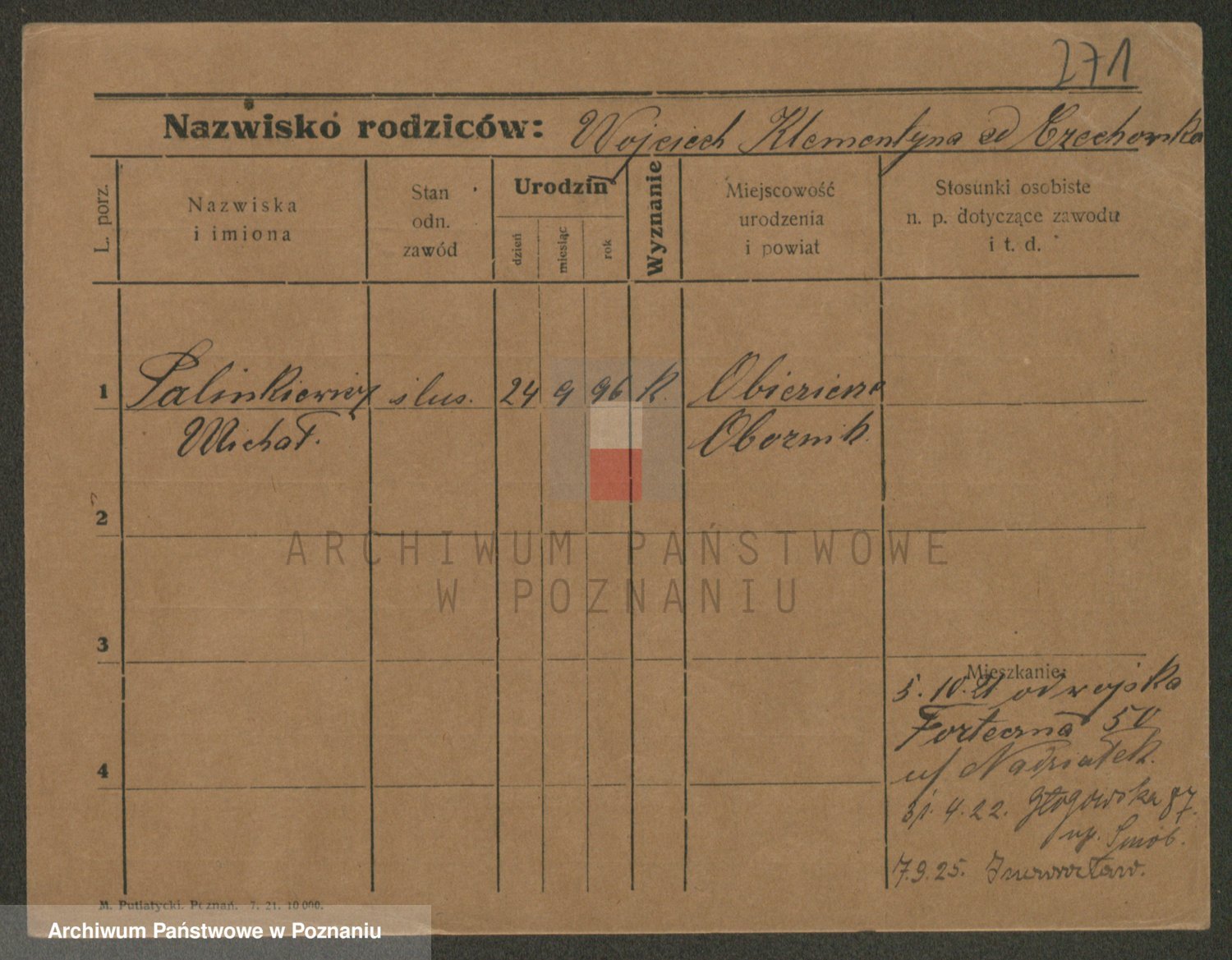 Podgląd karty osobowej dostępny jest po kliknięciu na nazwisko lub ikonkę karty. Można dokonywać powiększenia (ikony na górze) lub przechodzić między kolejnymi skanami (strzałki po bokach).