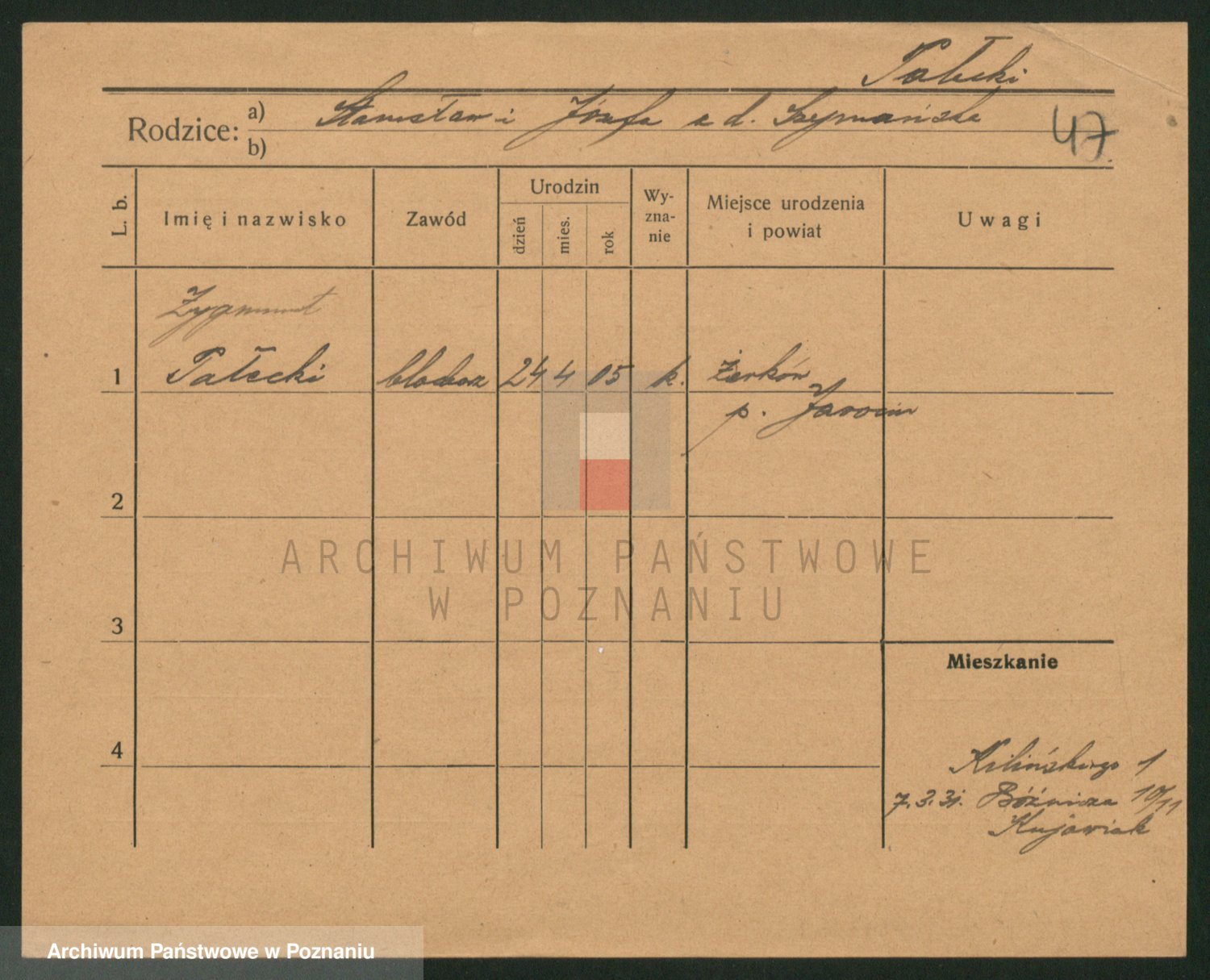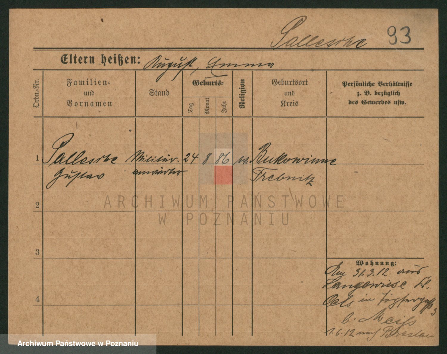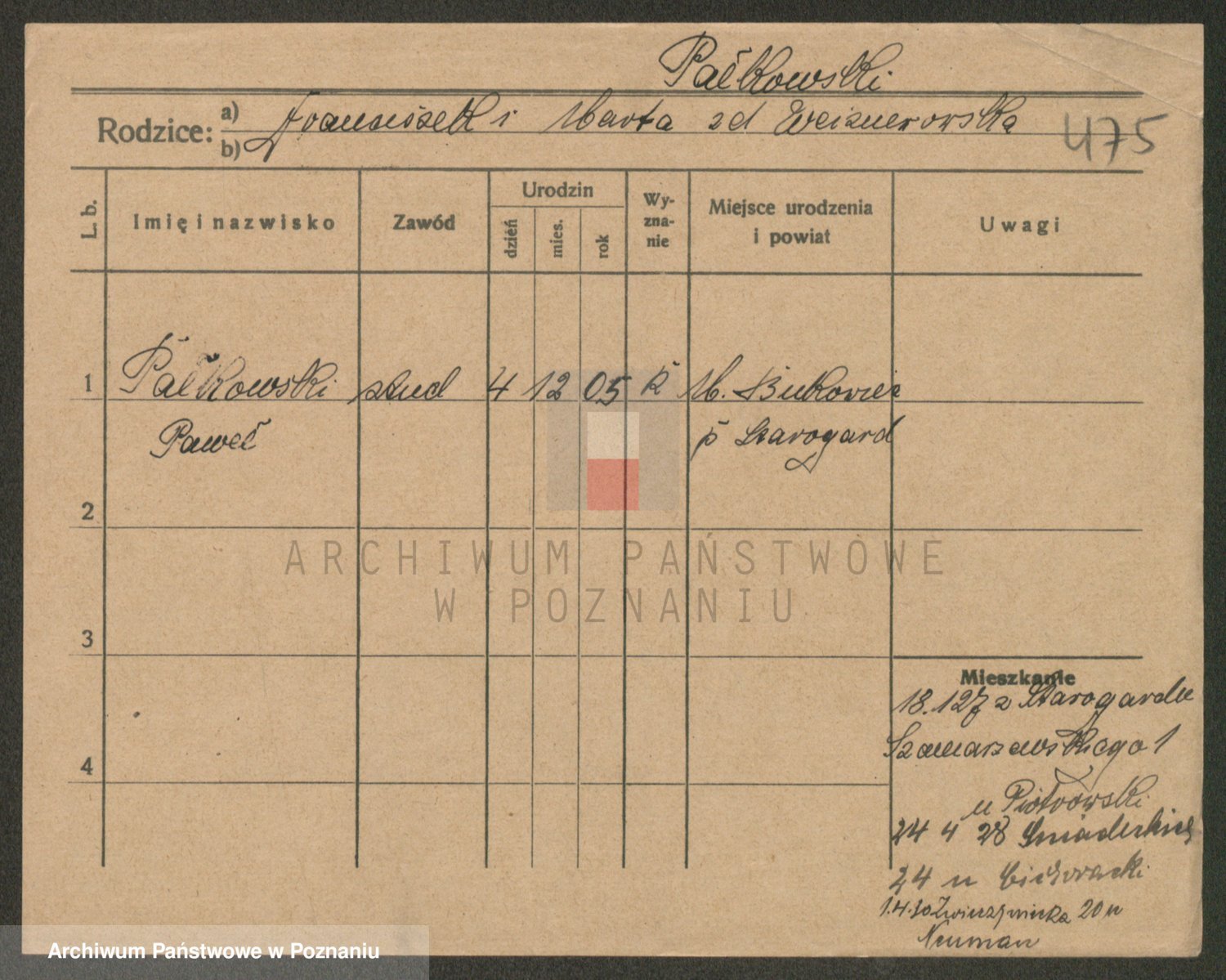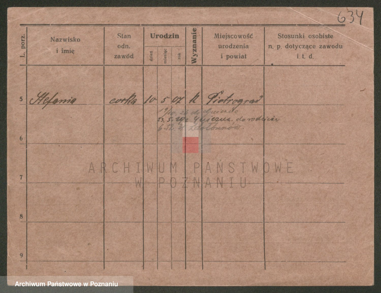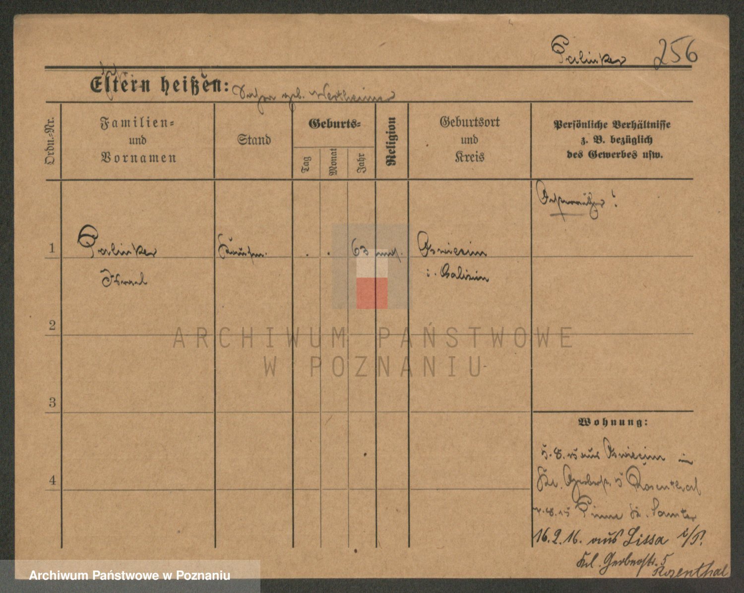 Podgląd karty osobowej dostępny jest po kliknięciu na nazwisko lub ikonkę karty. Można dokonywać powiększenia (ikony na górze) lub przechodzić między kolejnymi skanami (strzałki po bokach).