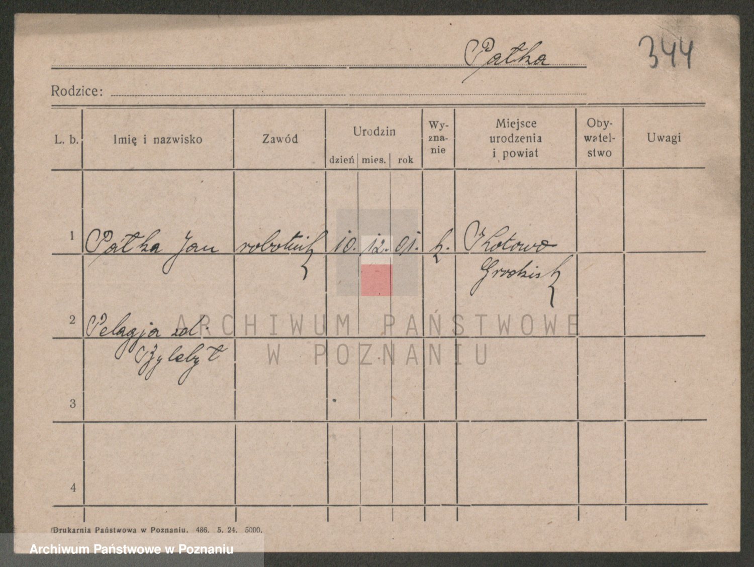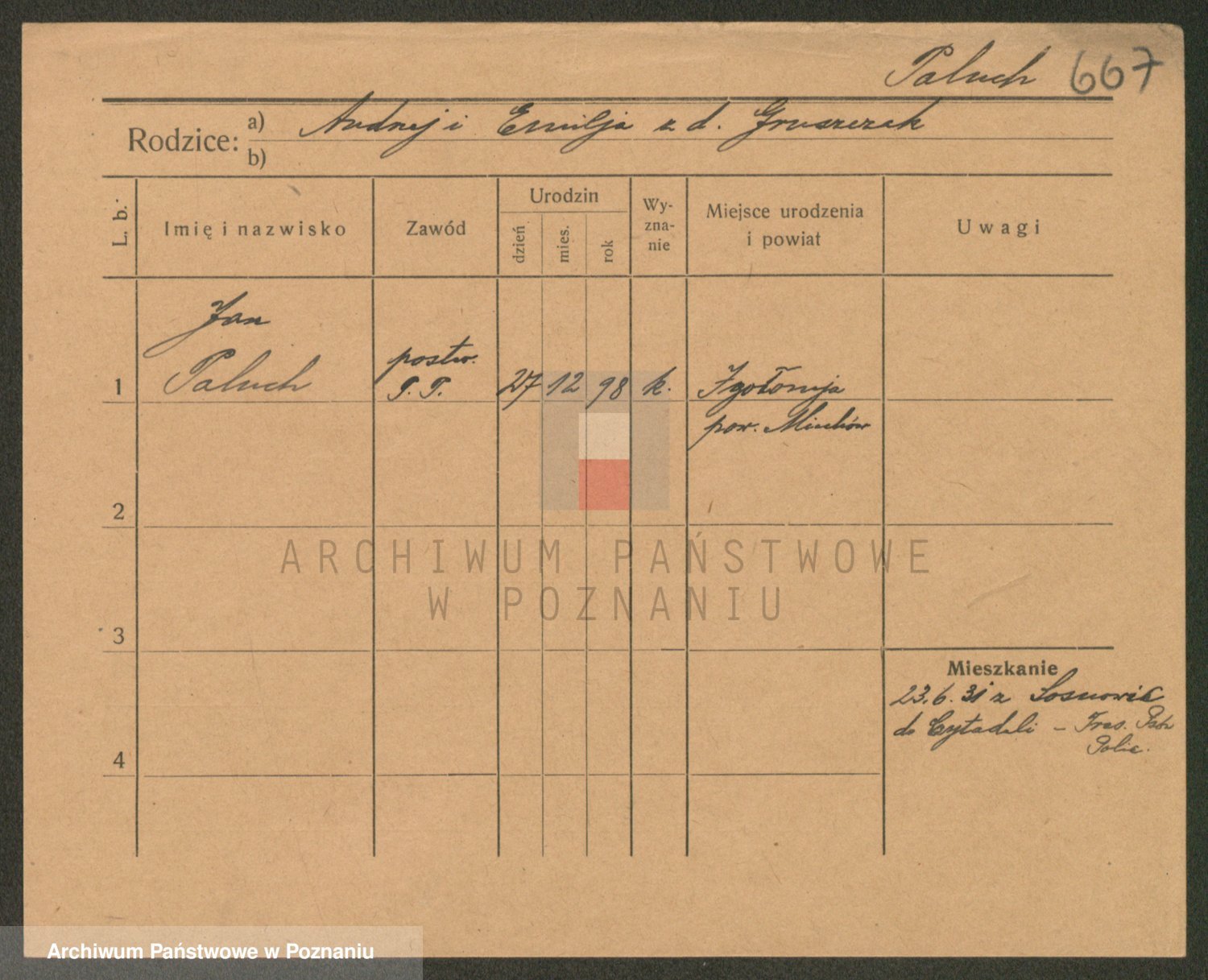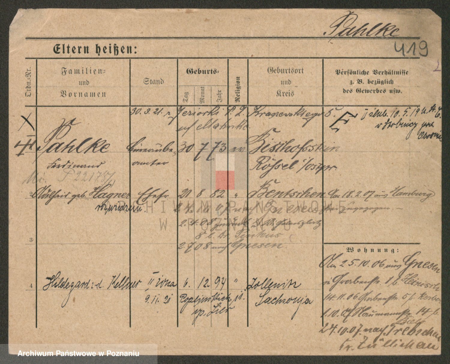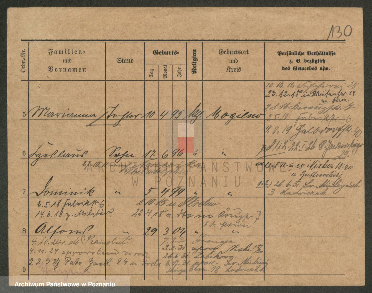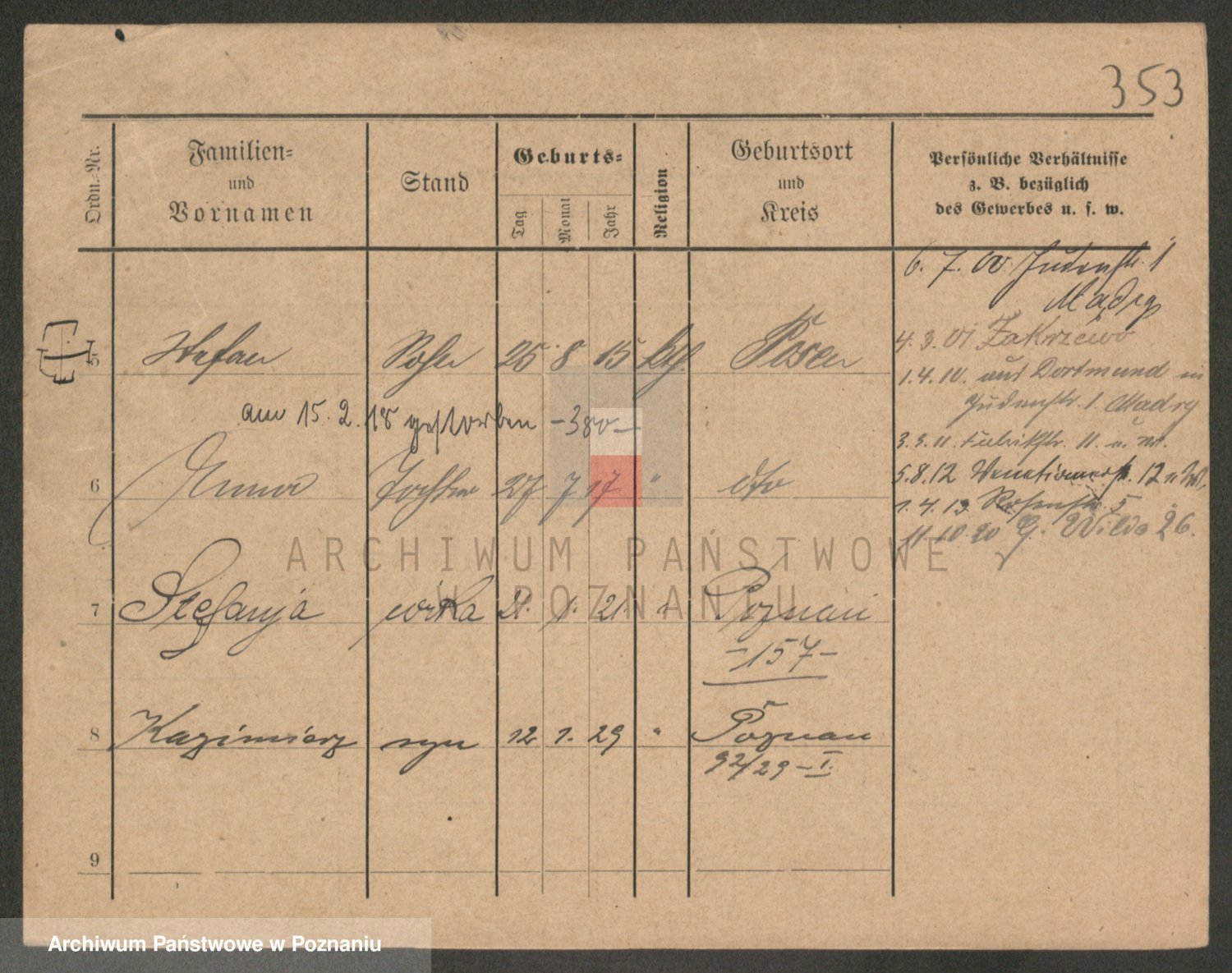 Podgląd karty osobowej dostępny jest po kliknięciu na nazwisko lub ikonkę karty. Można dokonywać powiększenia (ikony na górze) lub przechodzić między kolejnymi skanami (strzałki po bokach).