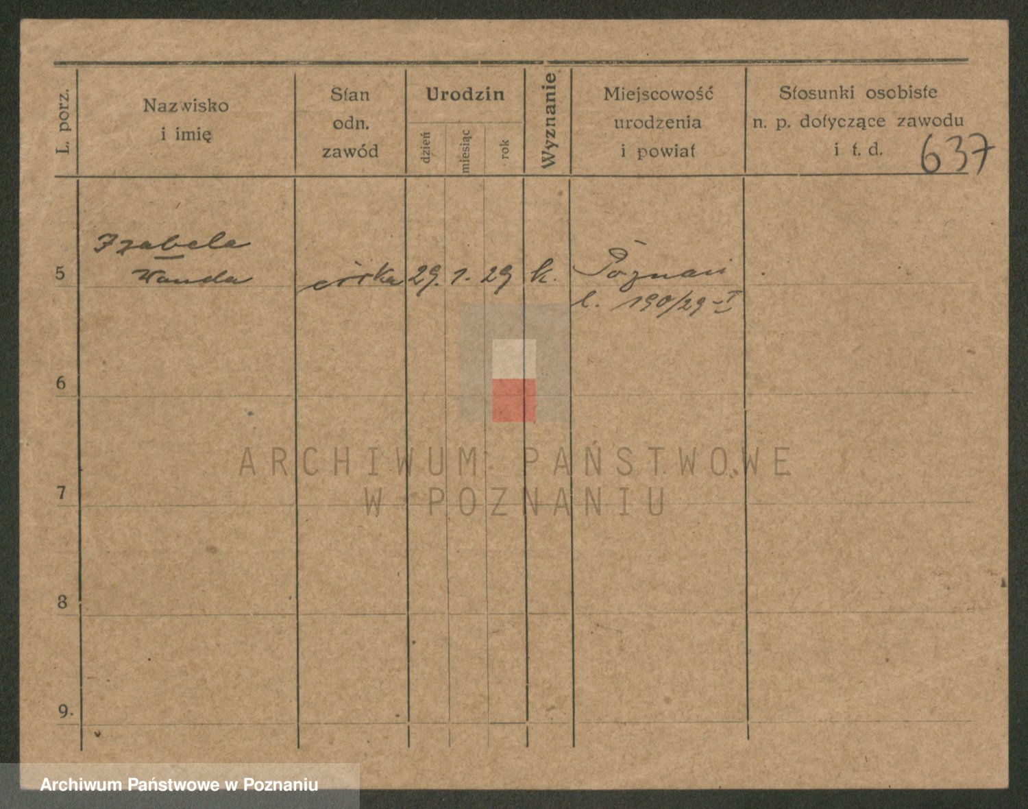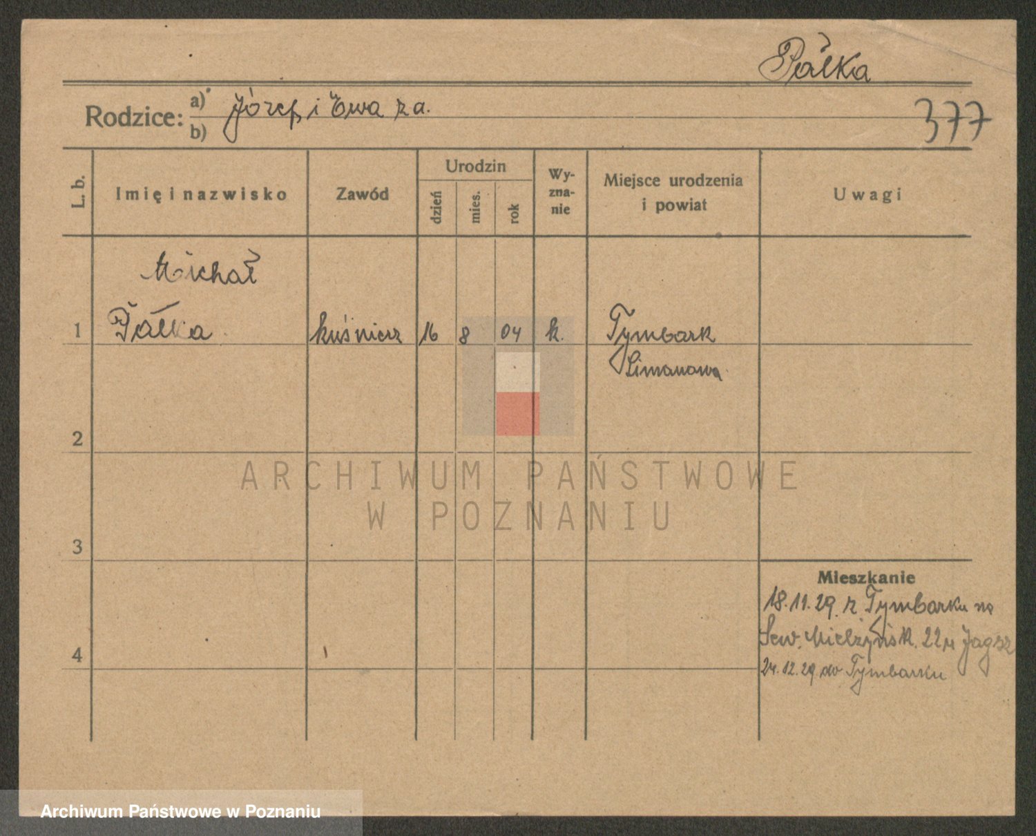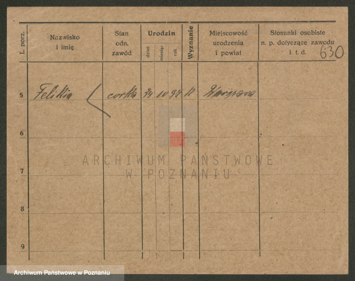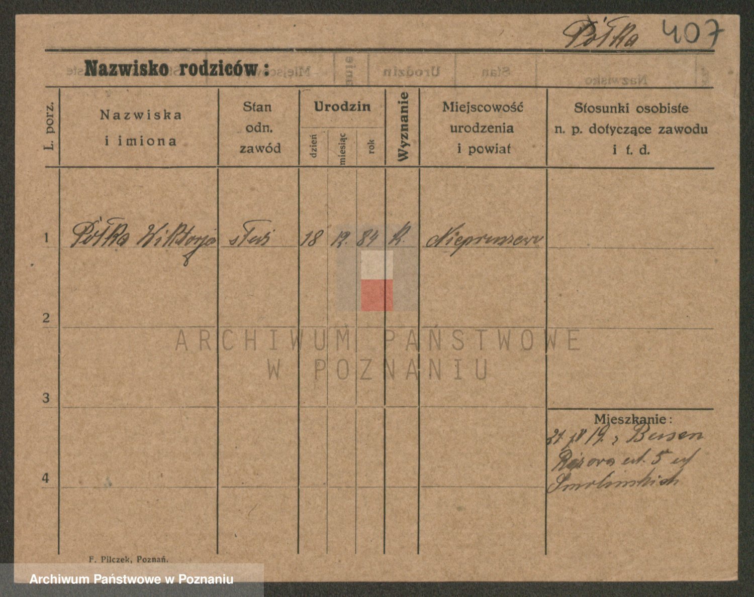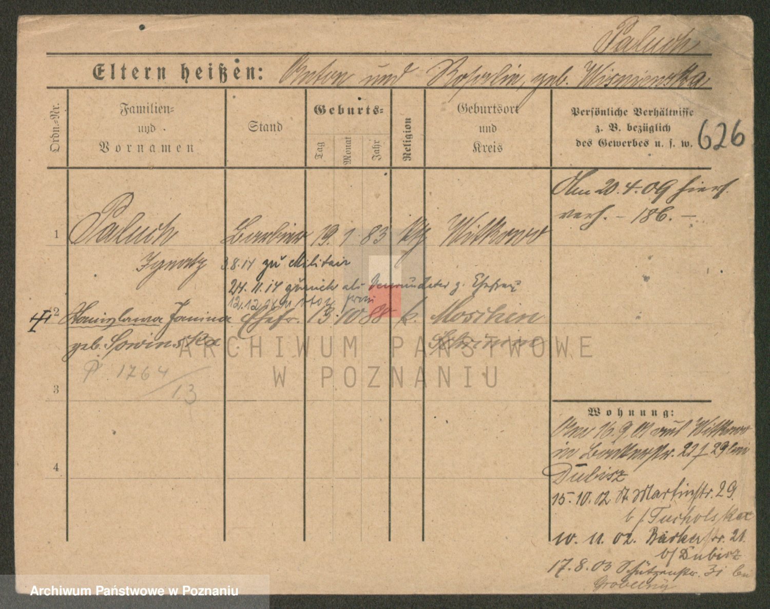 Podgląd karty osobowej dostępny jest po kliknięciu na nazwisko lub ikonkę karty. Można dokonywać powiększenia (ikony na górze) lub przechodzić między kolejnymi skanami (strzałki po bokach).