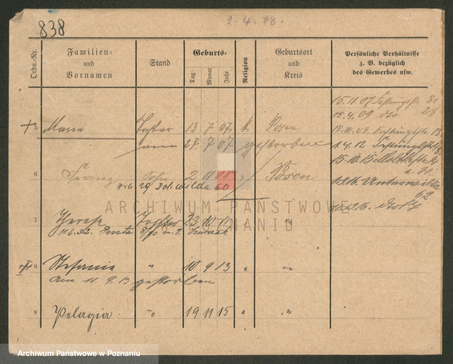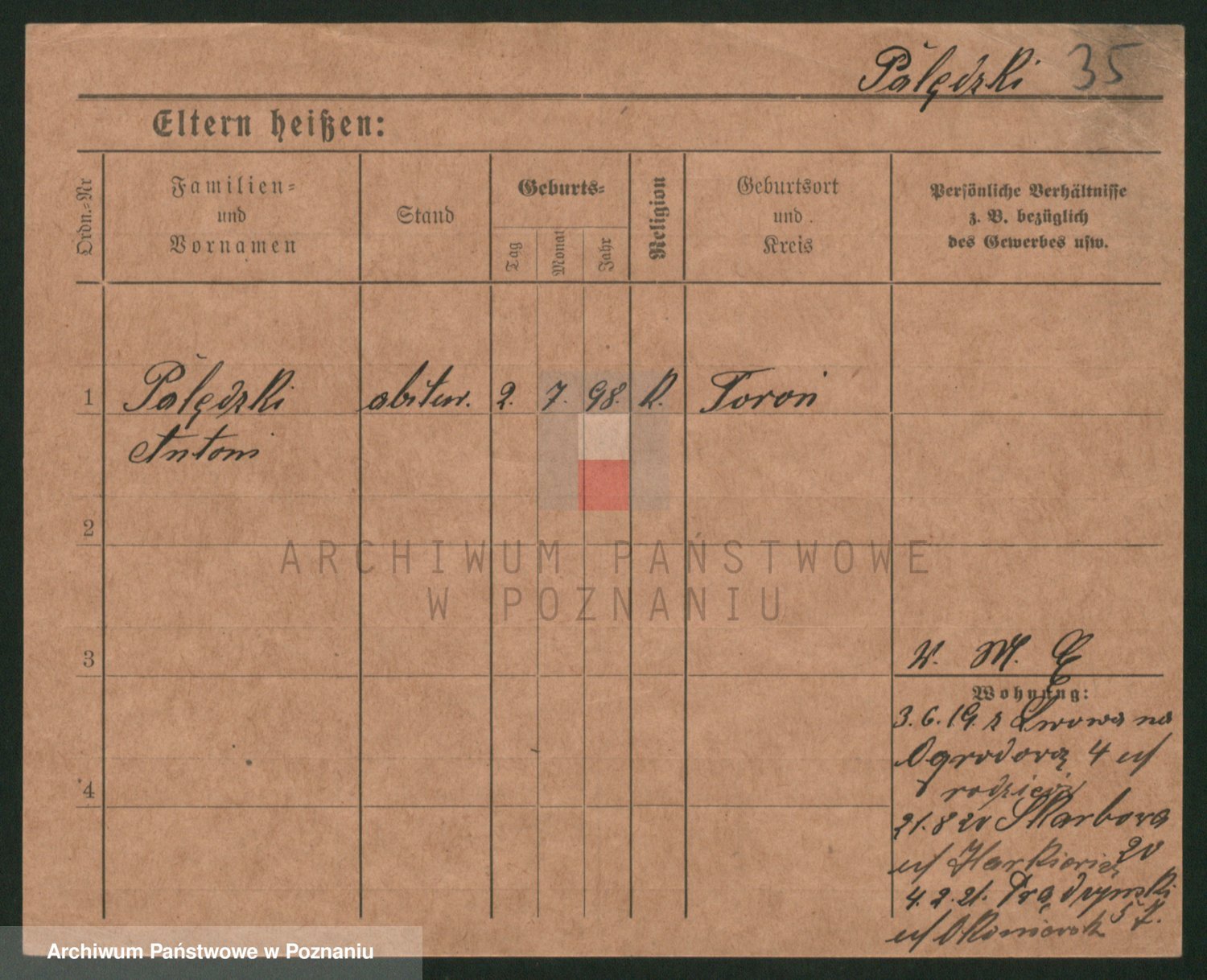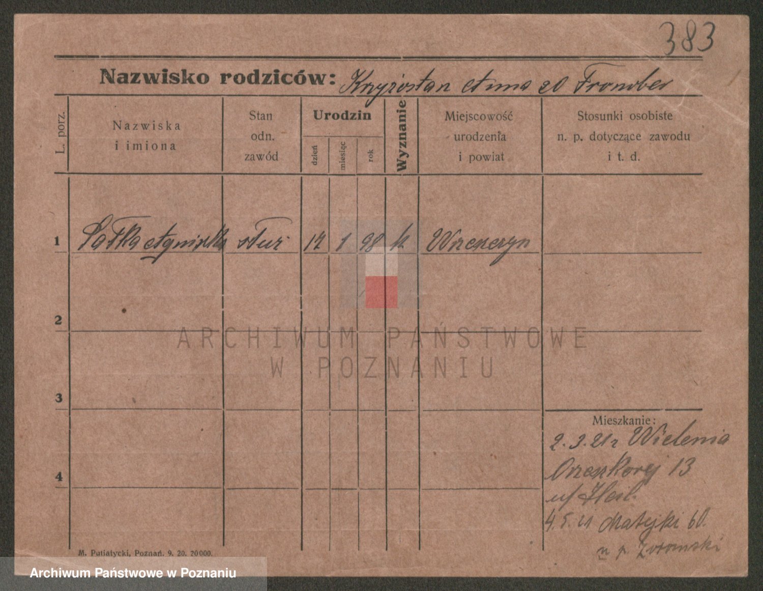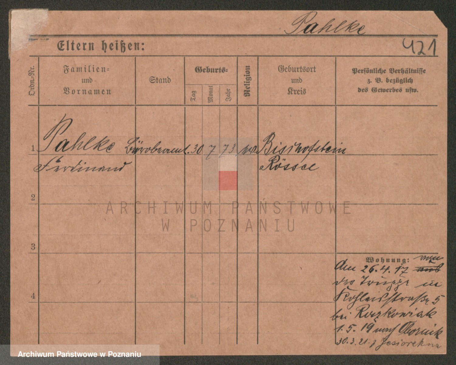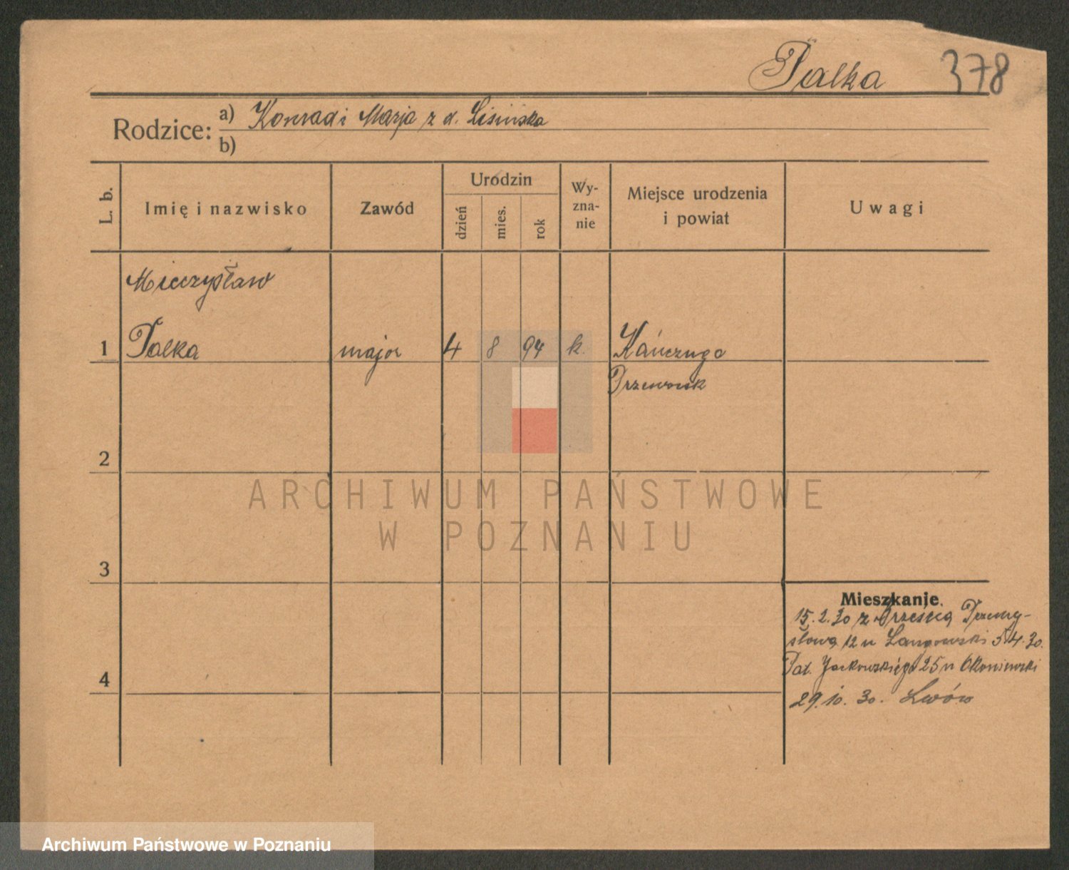 Podgląd karty osobowej dostępny jest po kliknięciu na nazwisko lub ikonkę karty. Można dokonywać powiększenia (ikony na górze) lub przechodzić między kolejnymi skanami (strzałki po bokach).