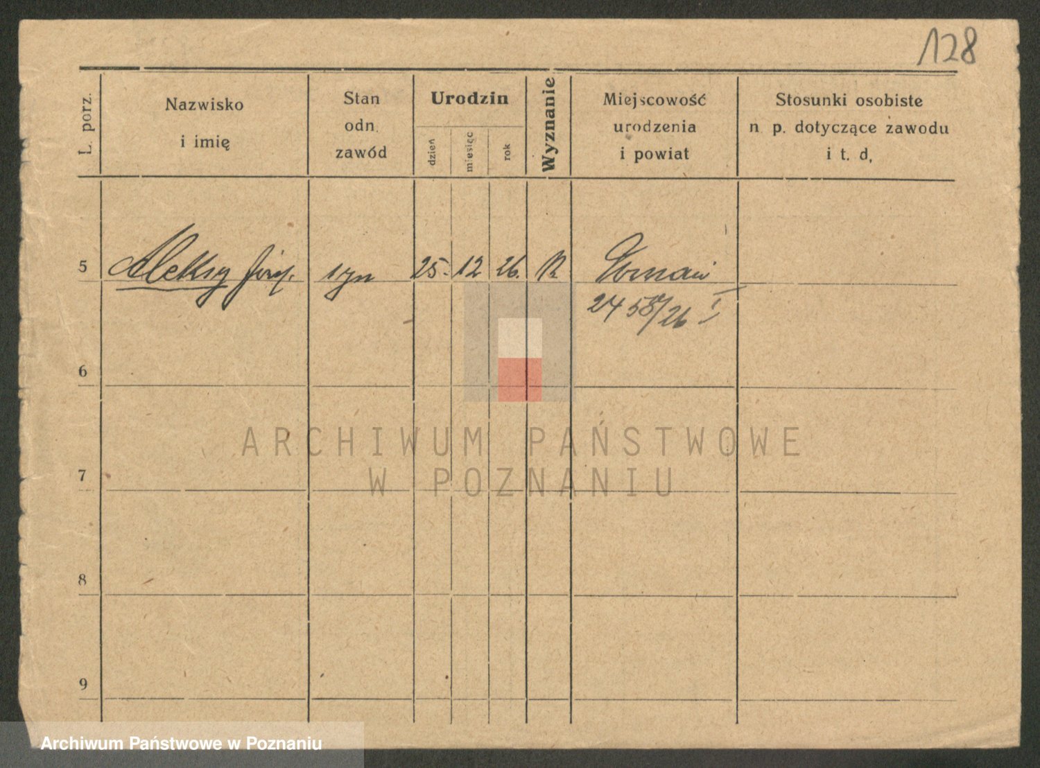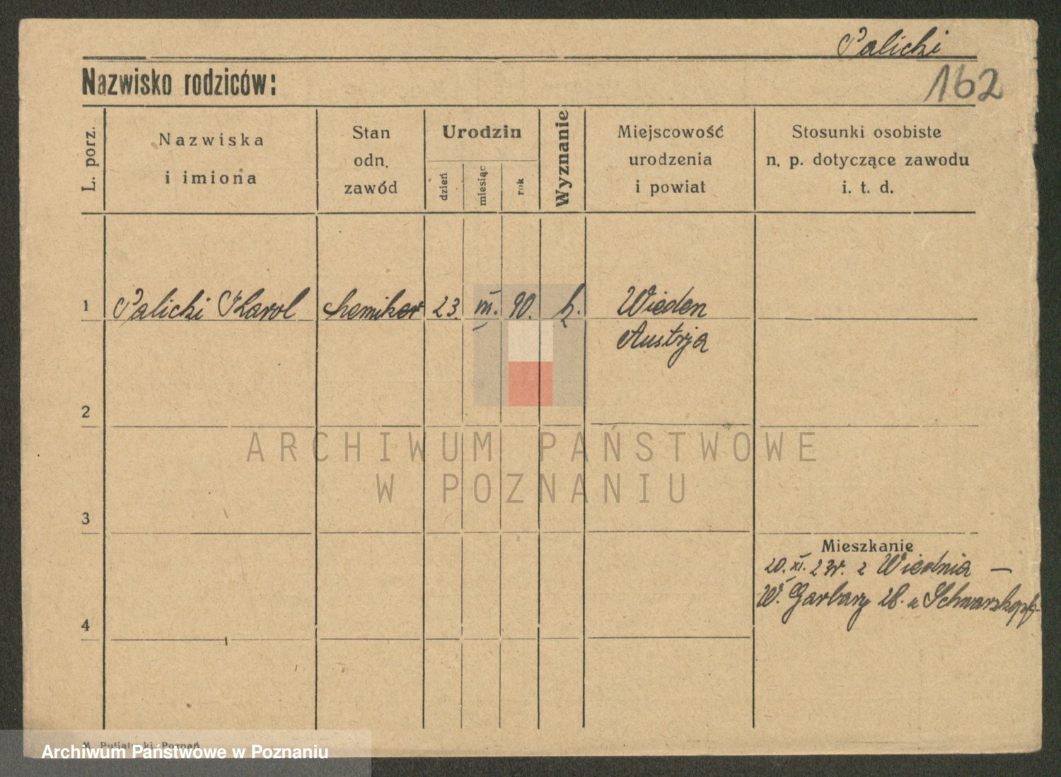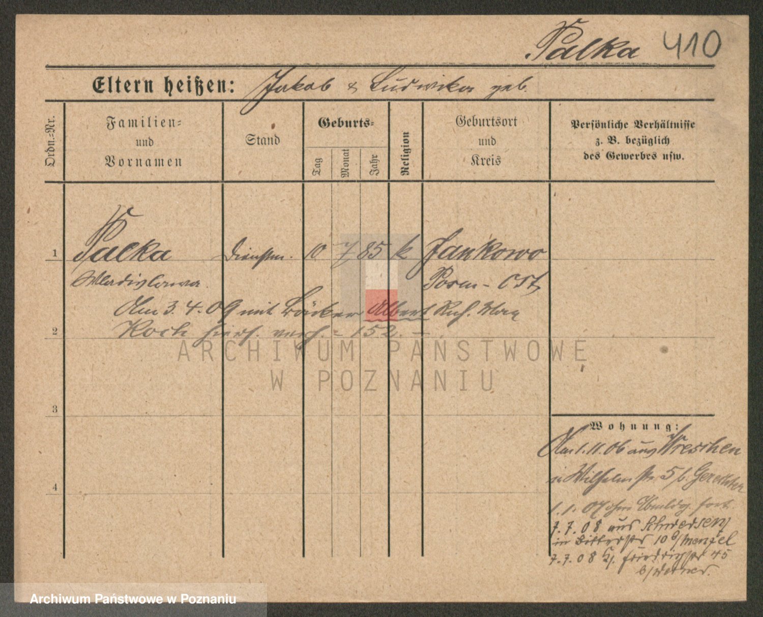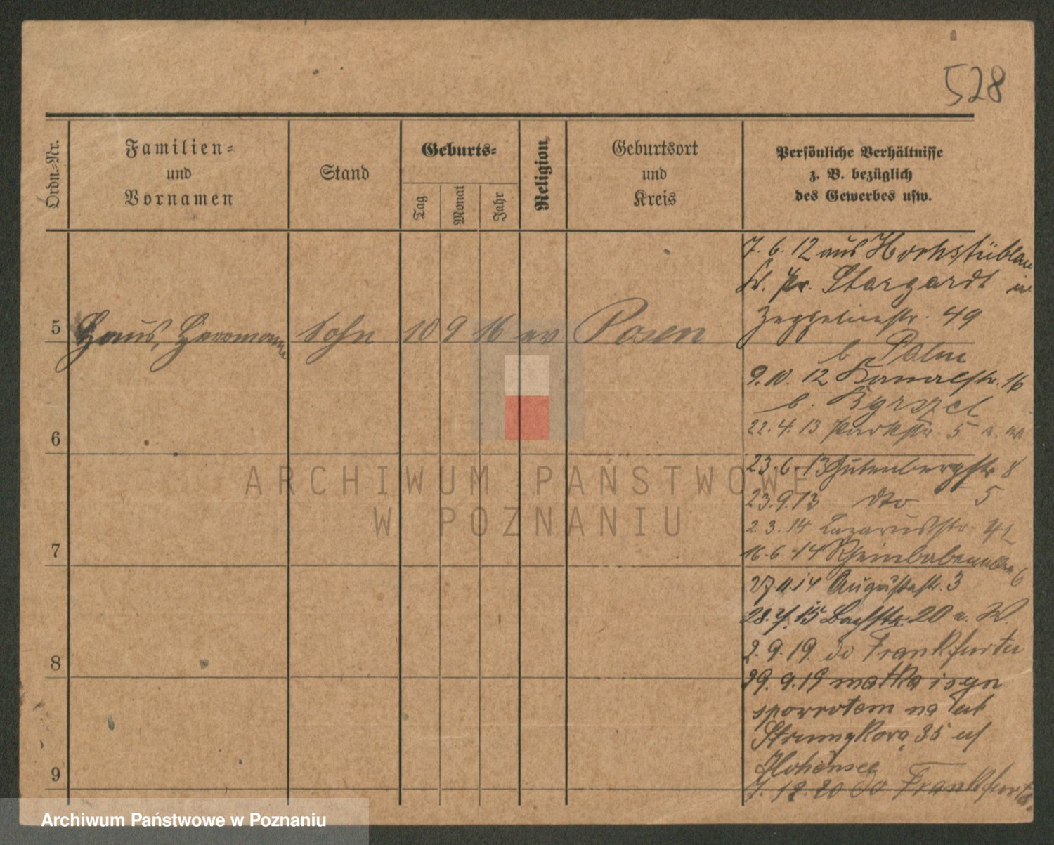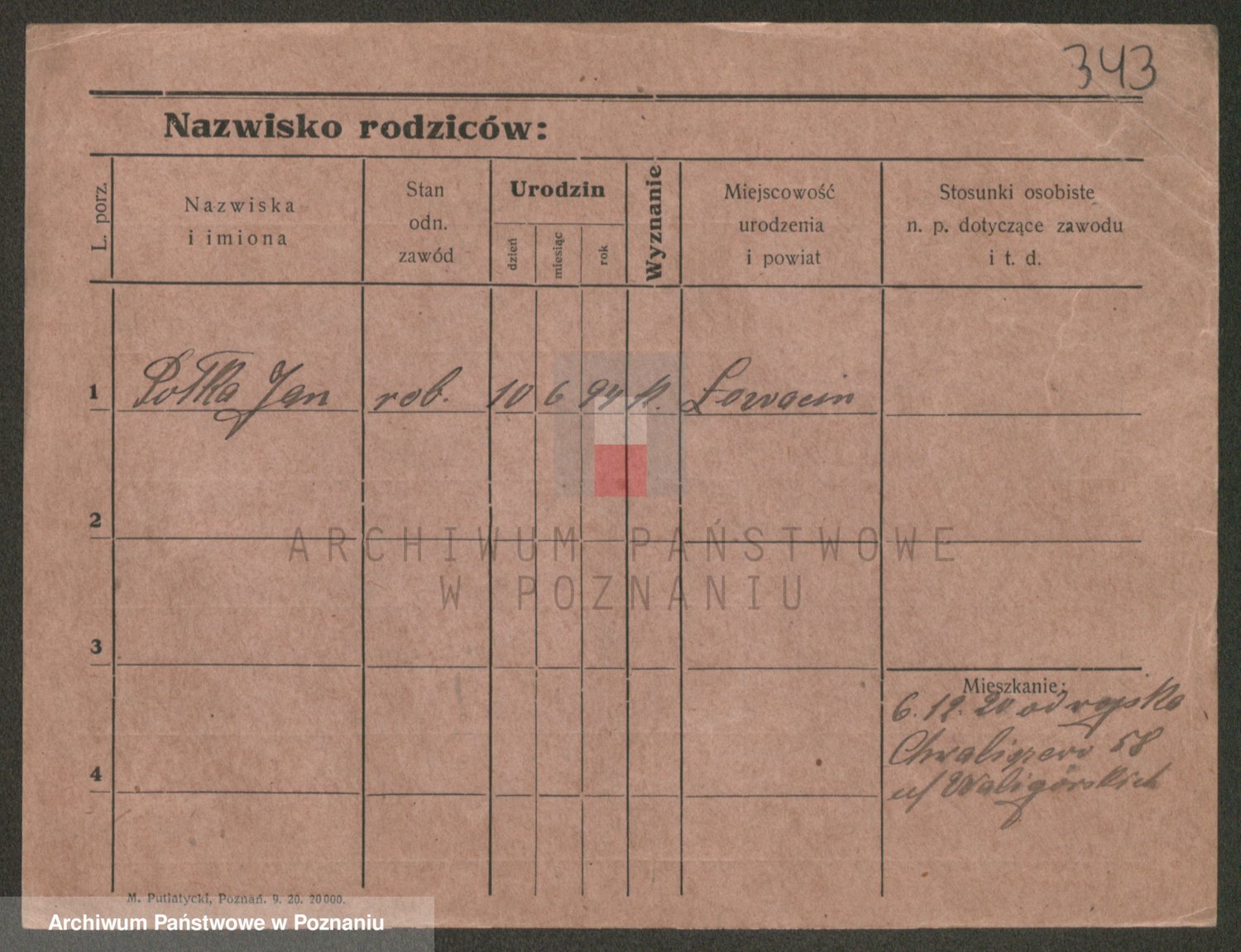 Podgląd karty osobowej dostępny jest po kliknięciu na nazwisko lub ikonkę karty. Można dokonywać powiększenia (ikony na górze) lub przechodzić między kolejnymi skanami (strzałki po bokach).