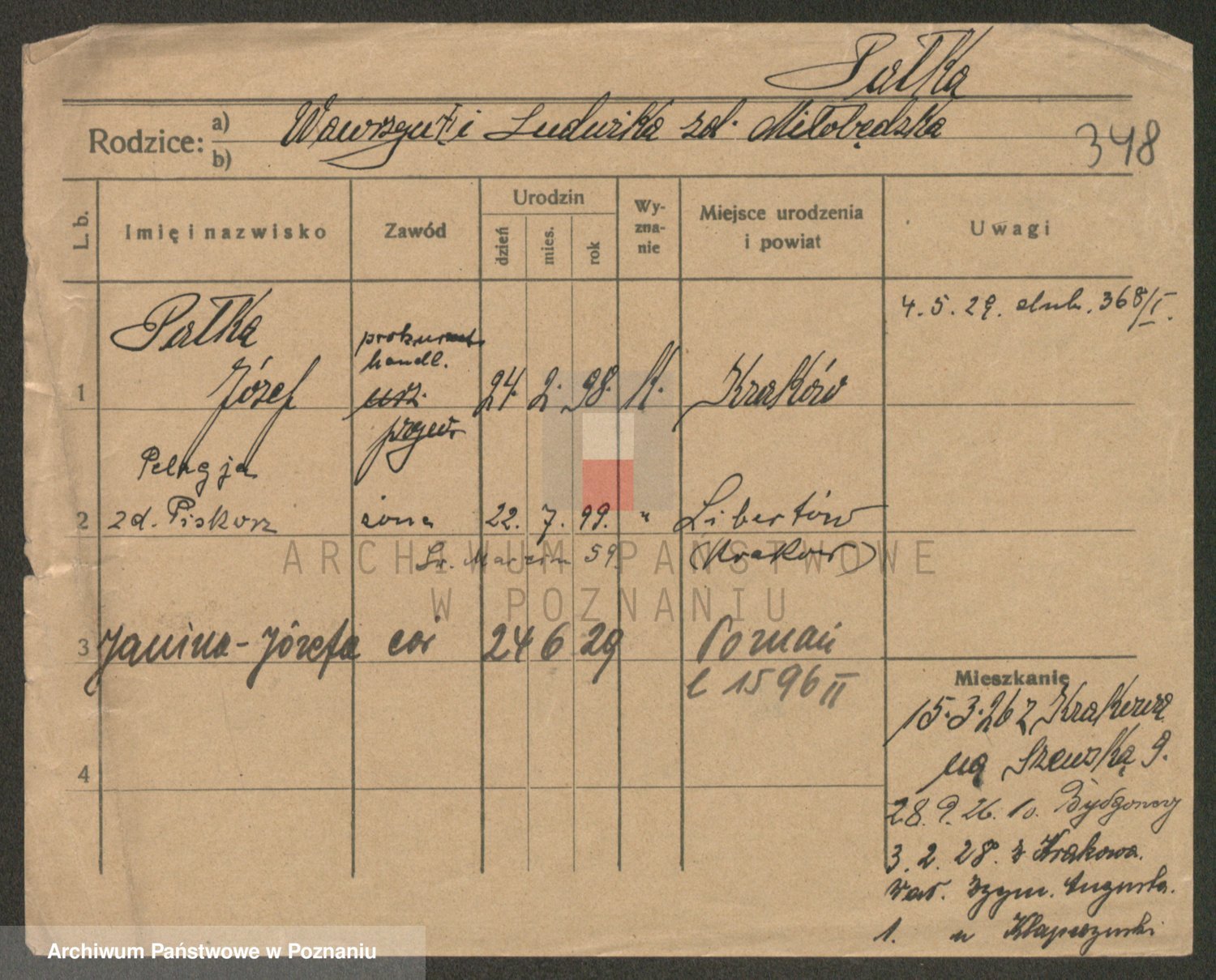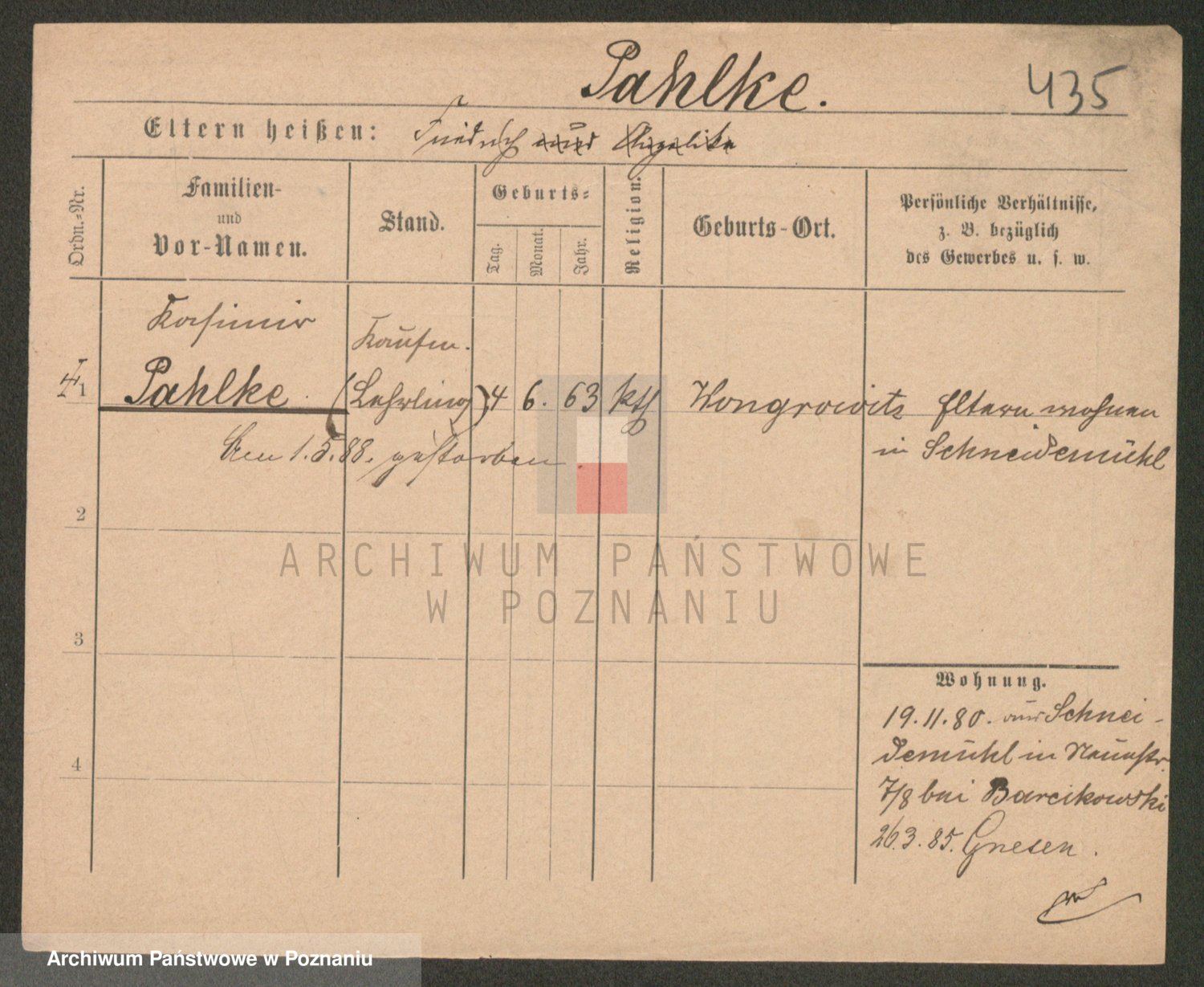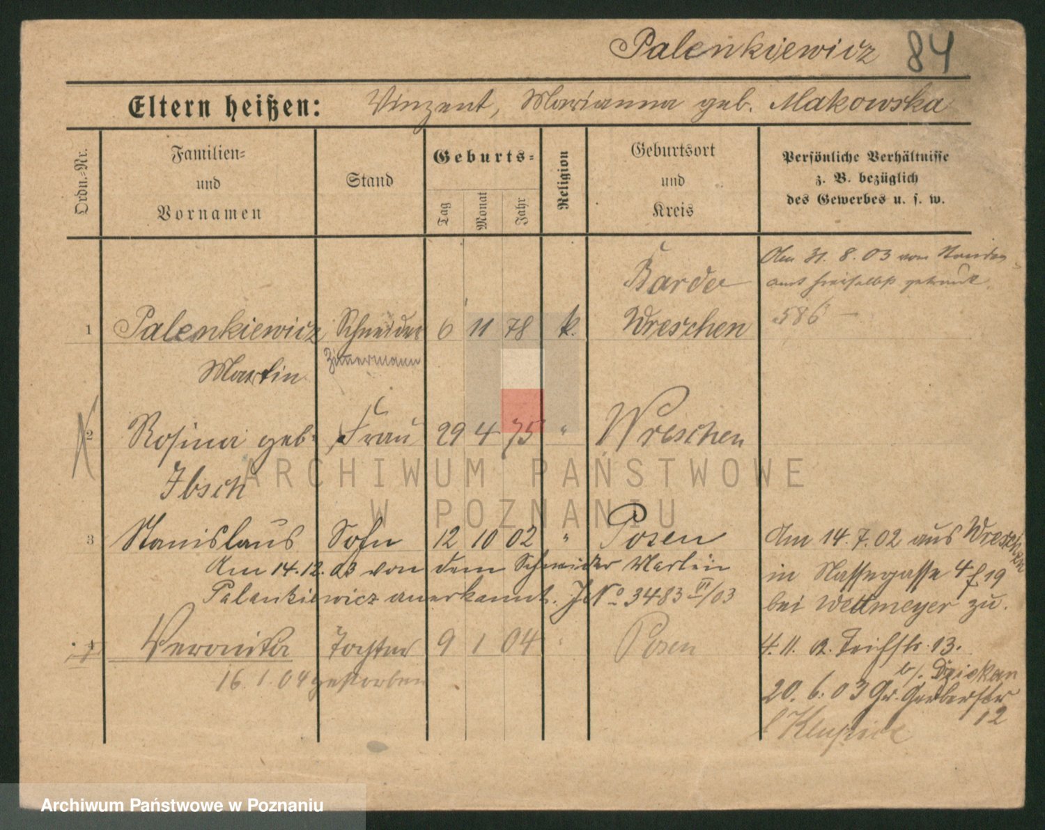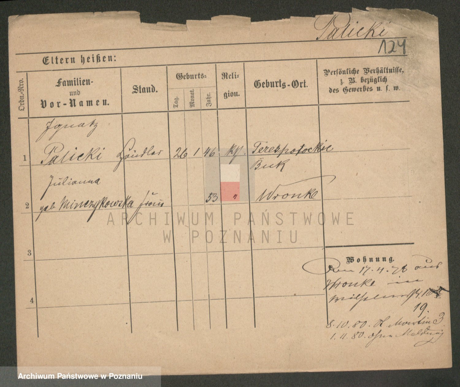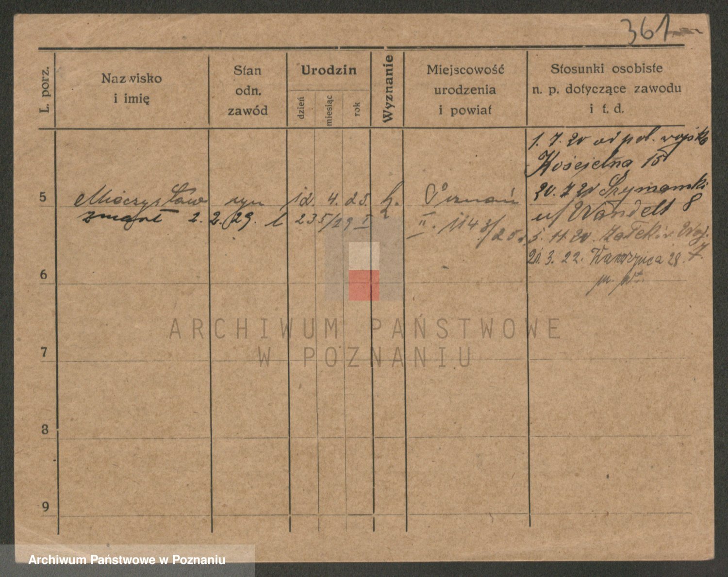 Podgląd karty osobowej dostępny jest po kliknięciu na nazwisko lub ikonkę karty. Można dokonywać powiększenia (ikony na górze) lub przechodzić między kolejnymi skanami (strzałki po bokach).