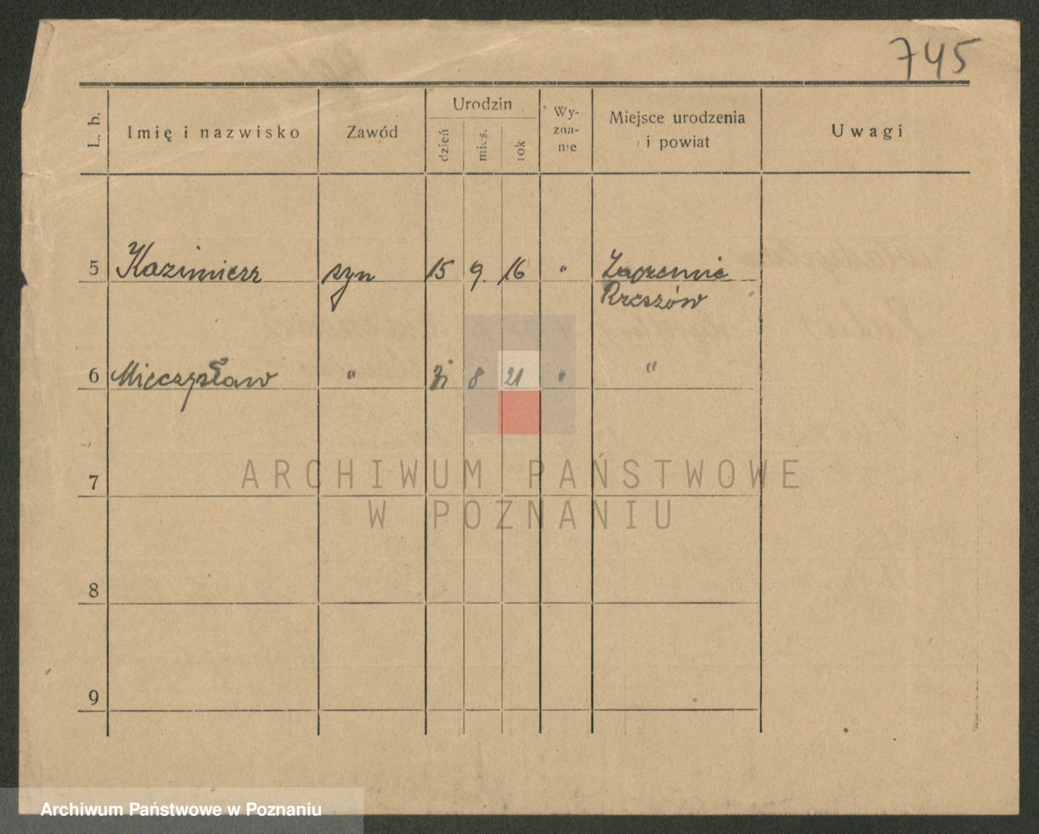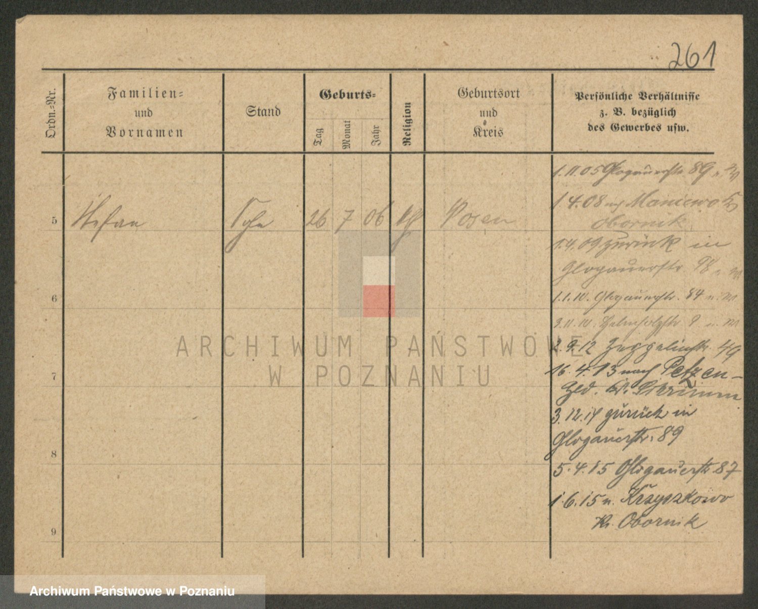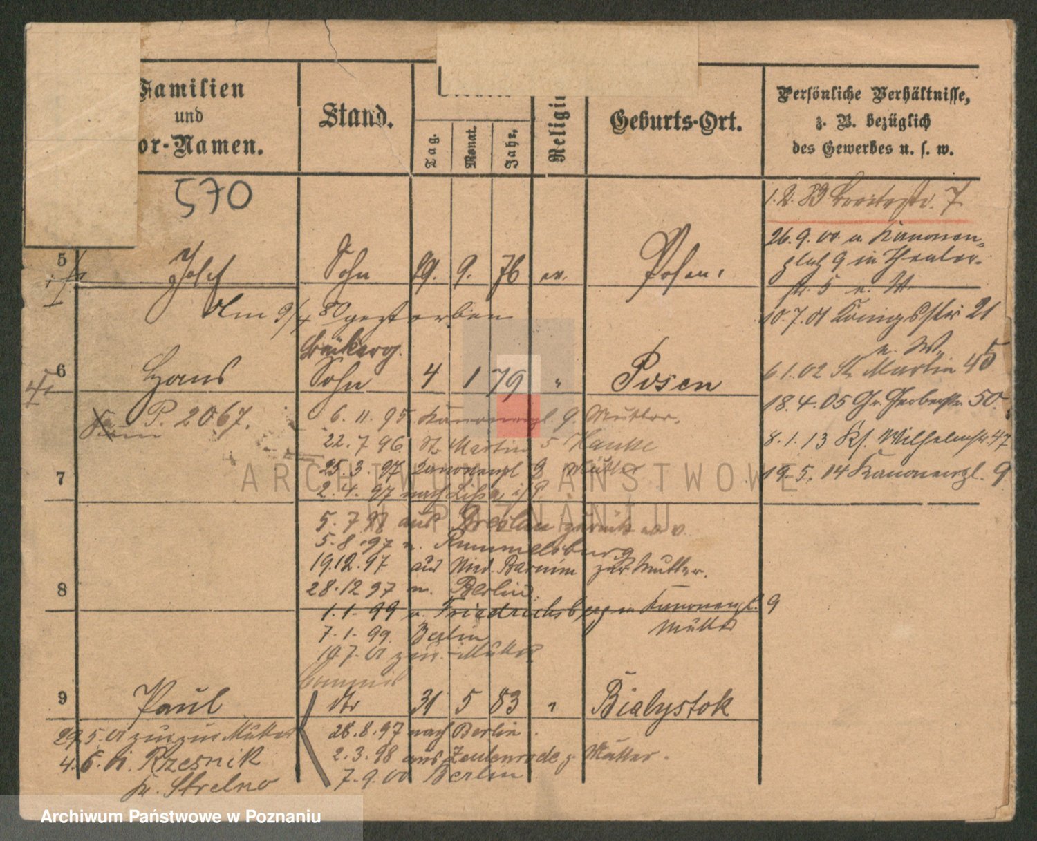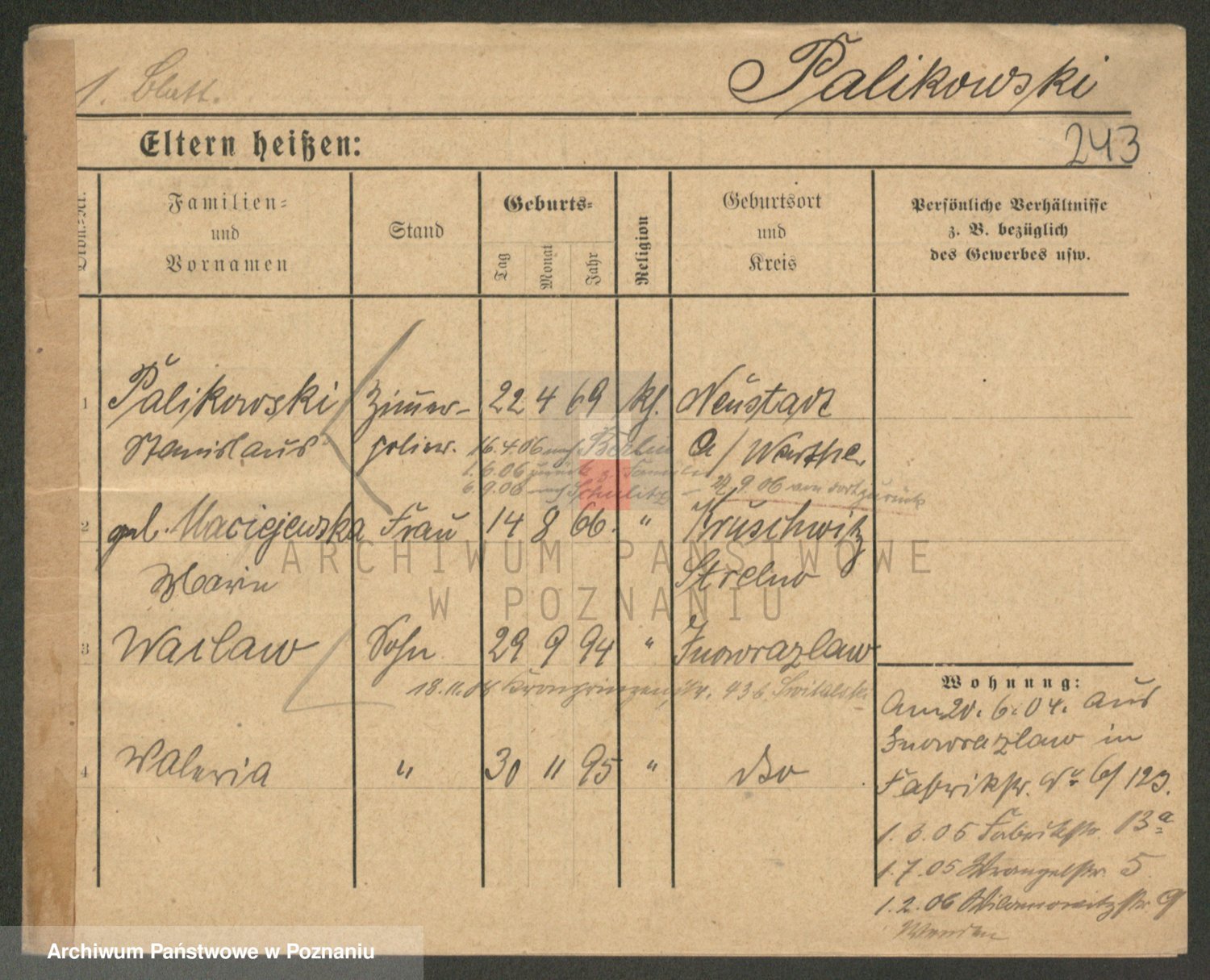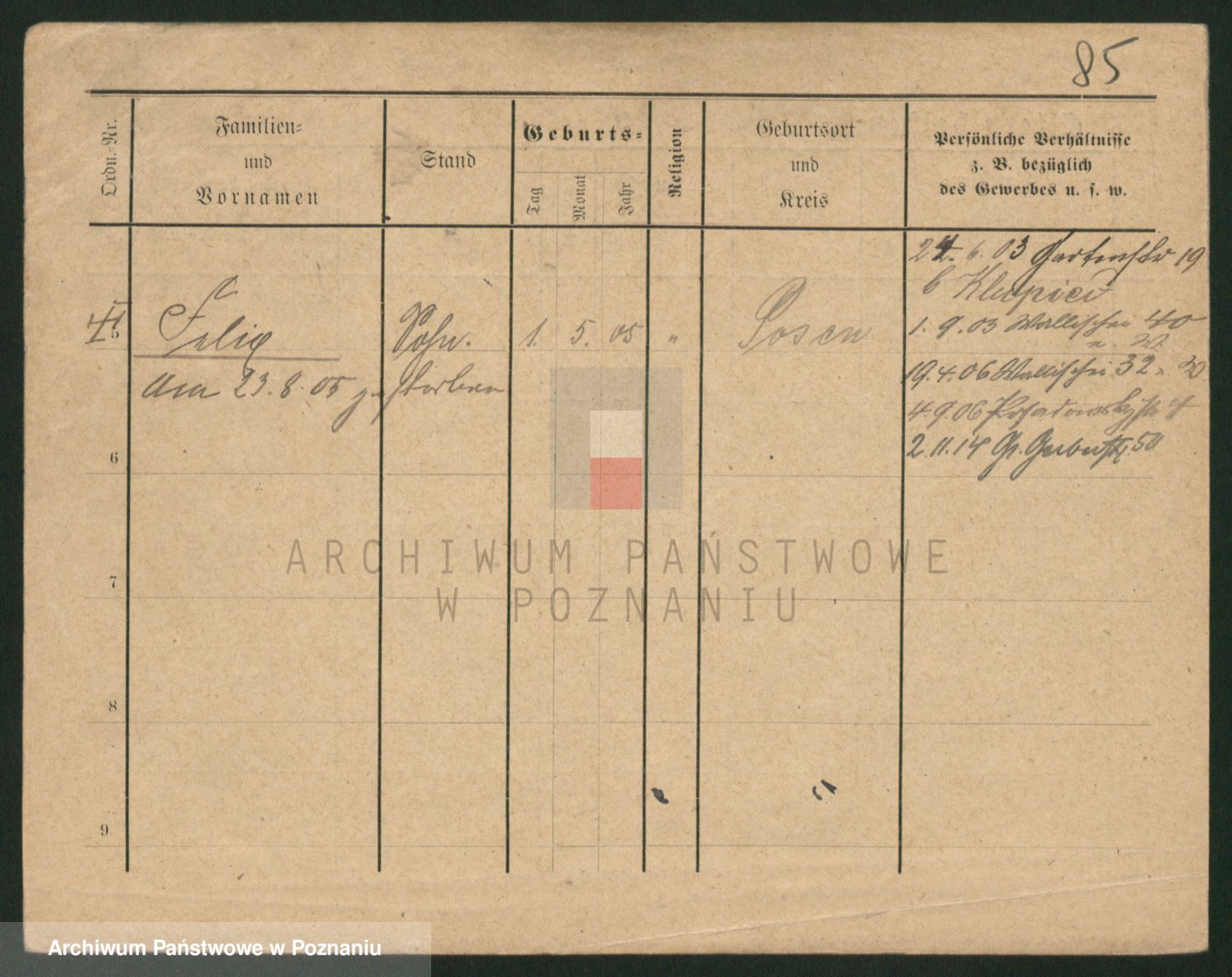 Podgląd karty osobowej dostępny jest po kliknięciu na nazwisko lub ikonkę karty. Można dokonywać powiększenia (ikony na górze) lub przechodzić między kolejnymi skanami (strzałki po bokach).