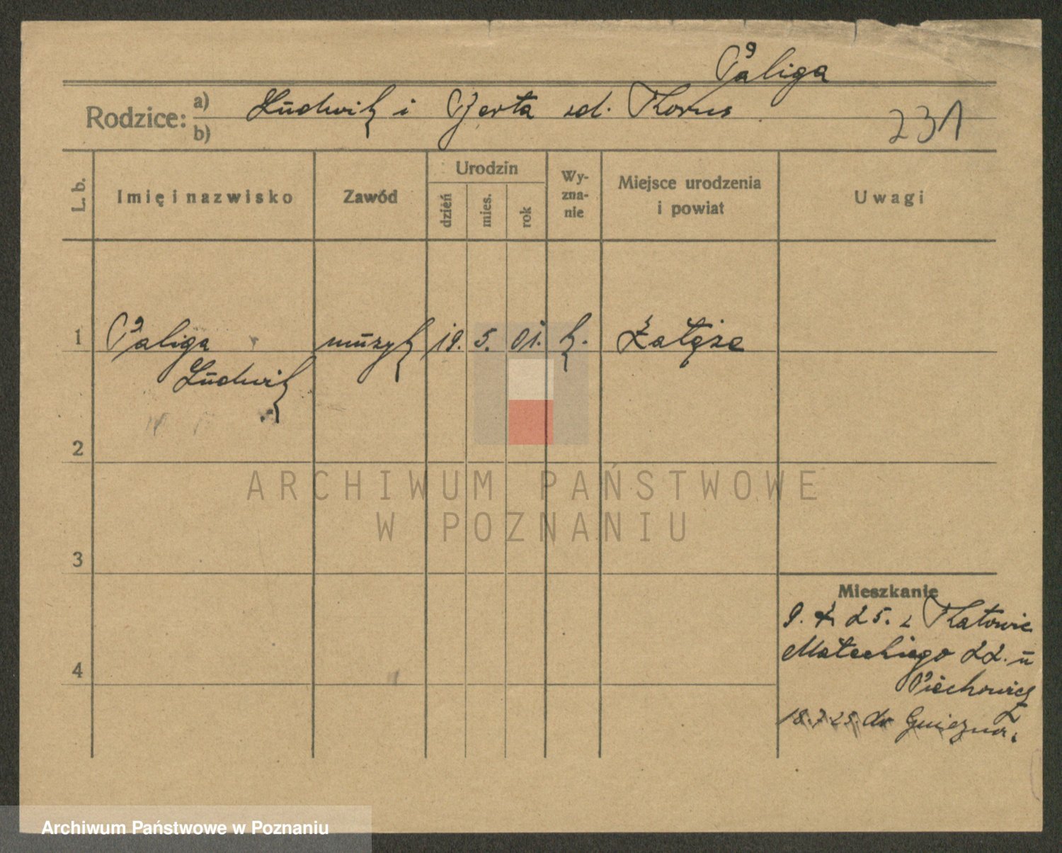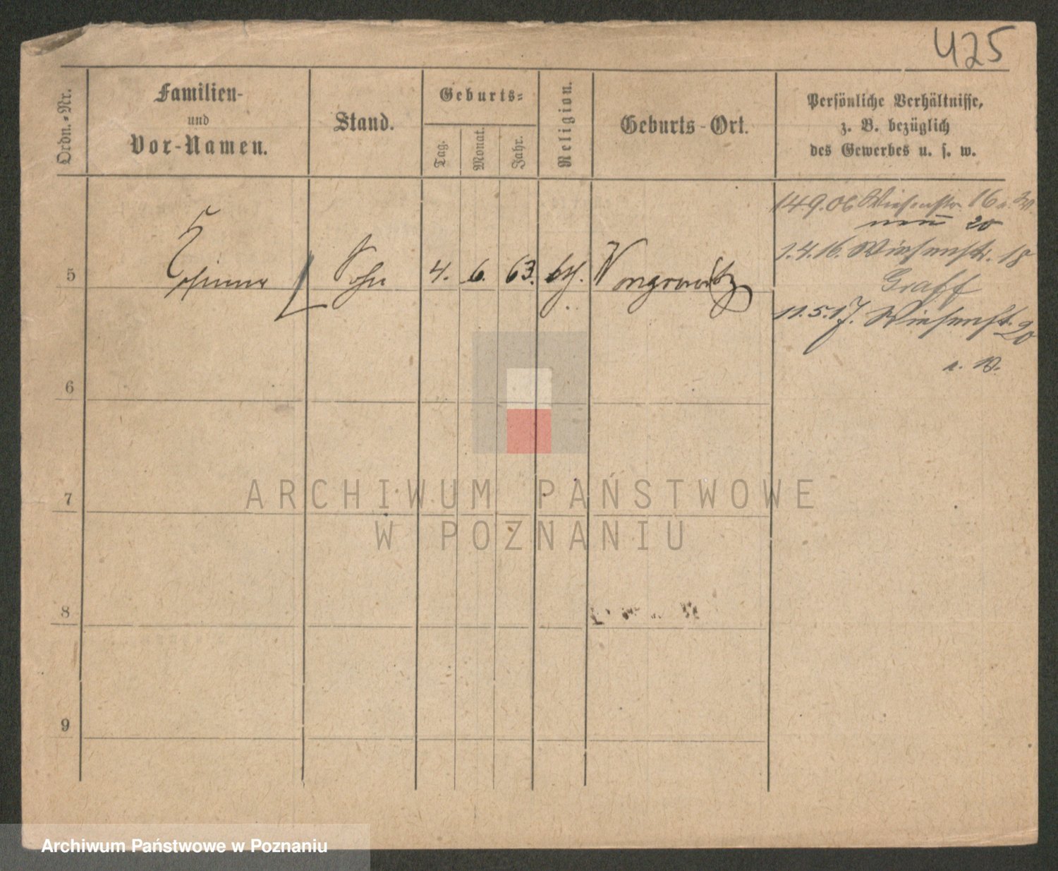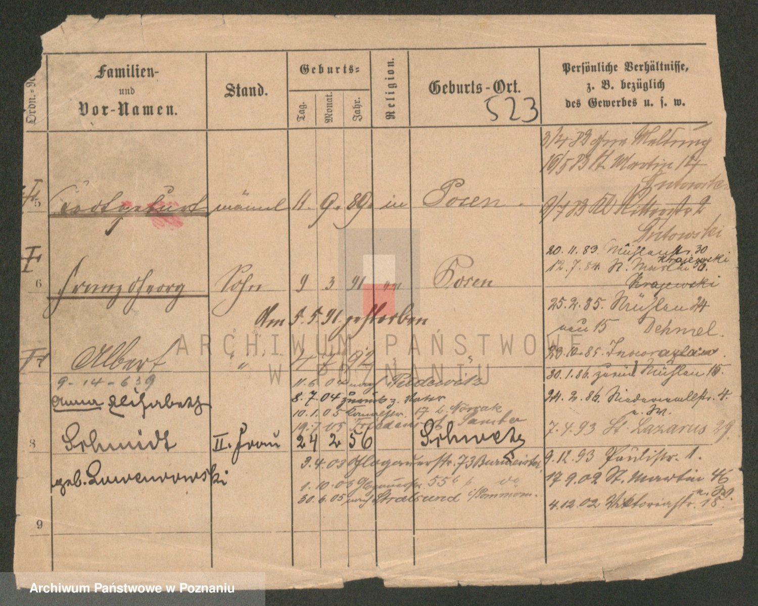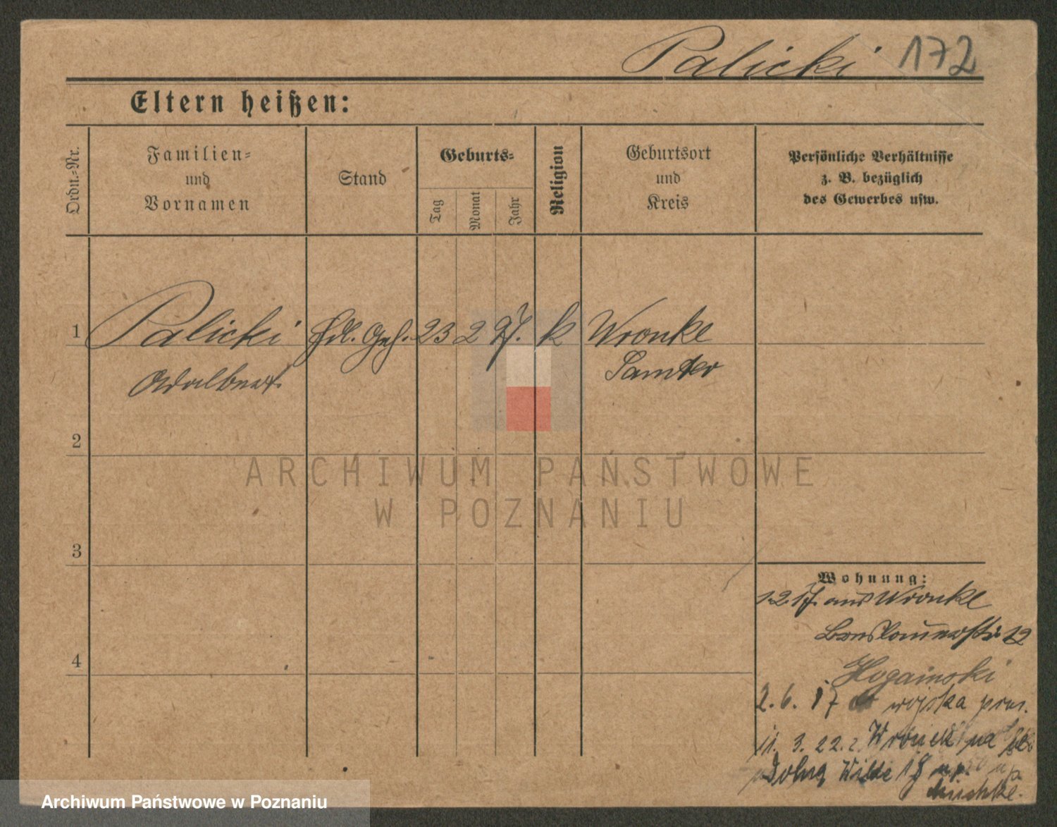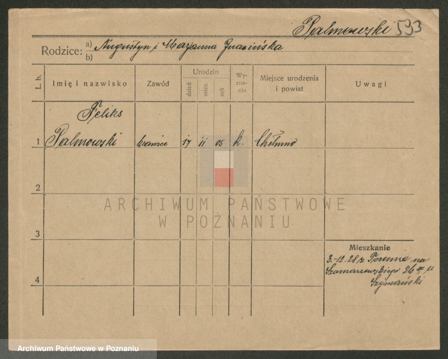Podgląd karty osobowej dostępny jest po kliknięciu na nazwisko lub ikonkę karty. Można dokonywać powiększenia (ikony na górze) lub przechodzić między kolejnymi skanami (strzałki po bokach).