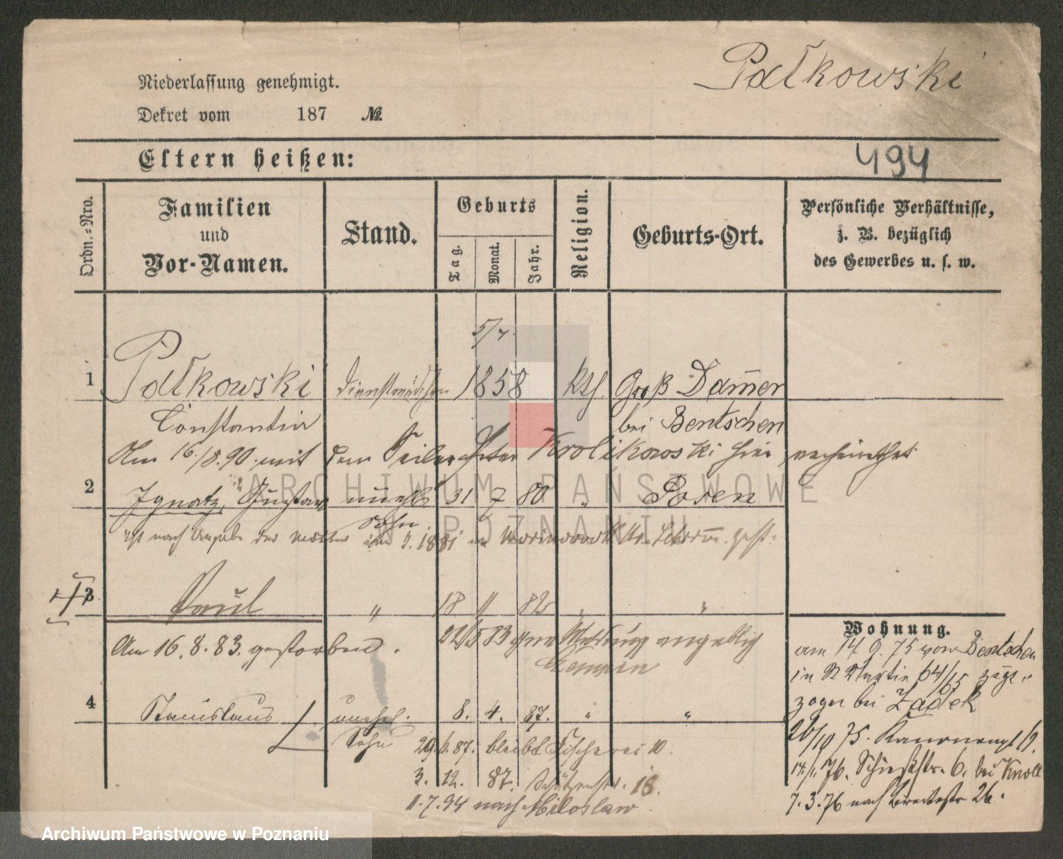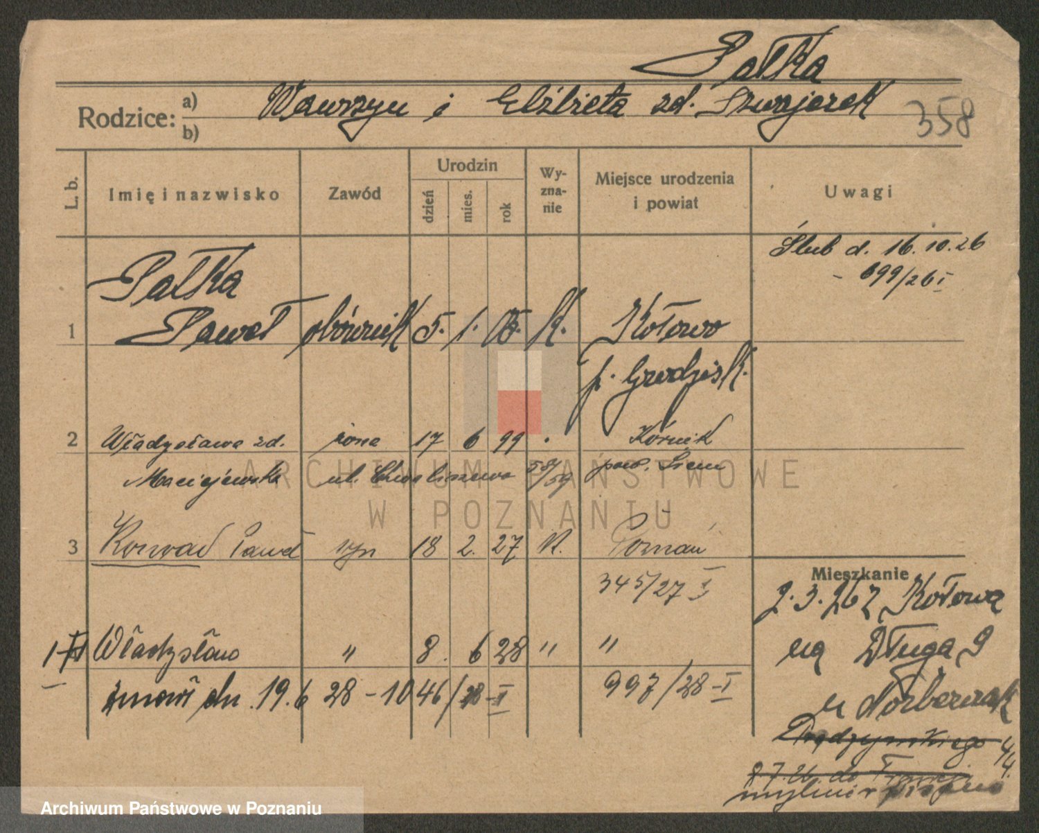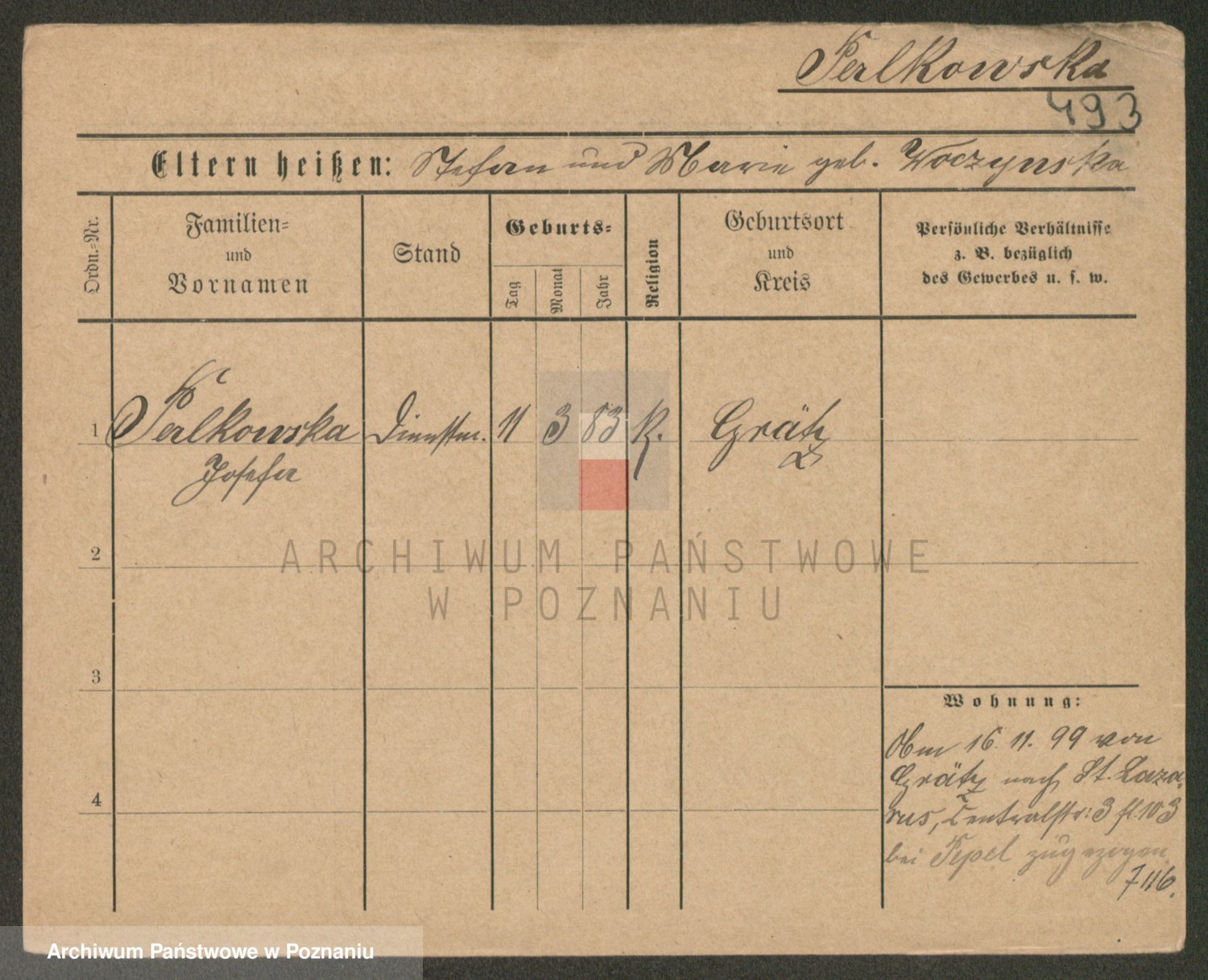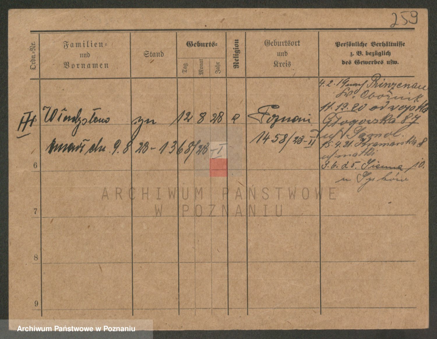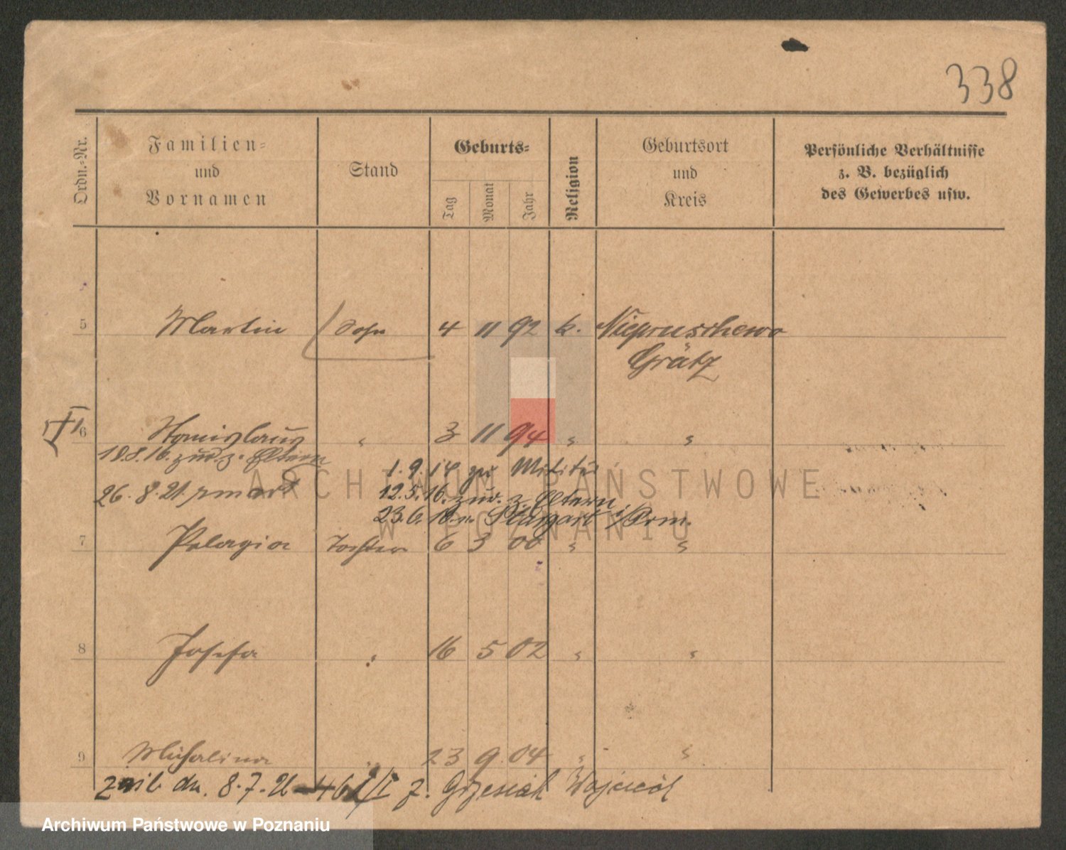 Podgląd karty osobowej dostępny jest po kliknięciu na nazwisko lub ikonkę karty. Można dokonywać powiększenia (ikony na górze) lub przechodzić między kolejnymi skanami (strzałki po bokach).