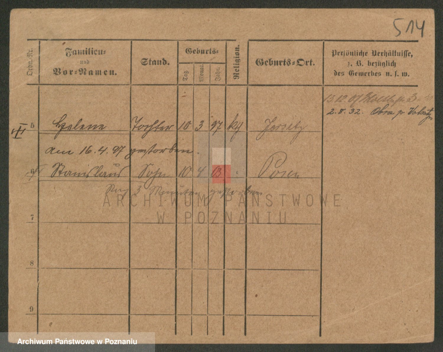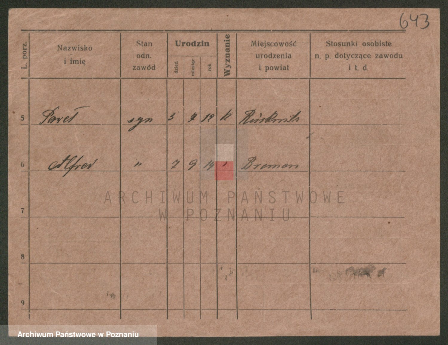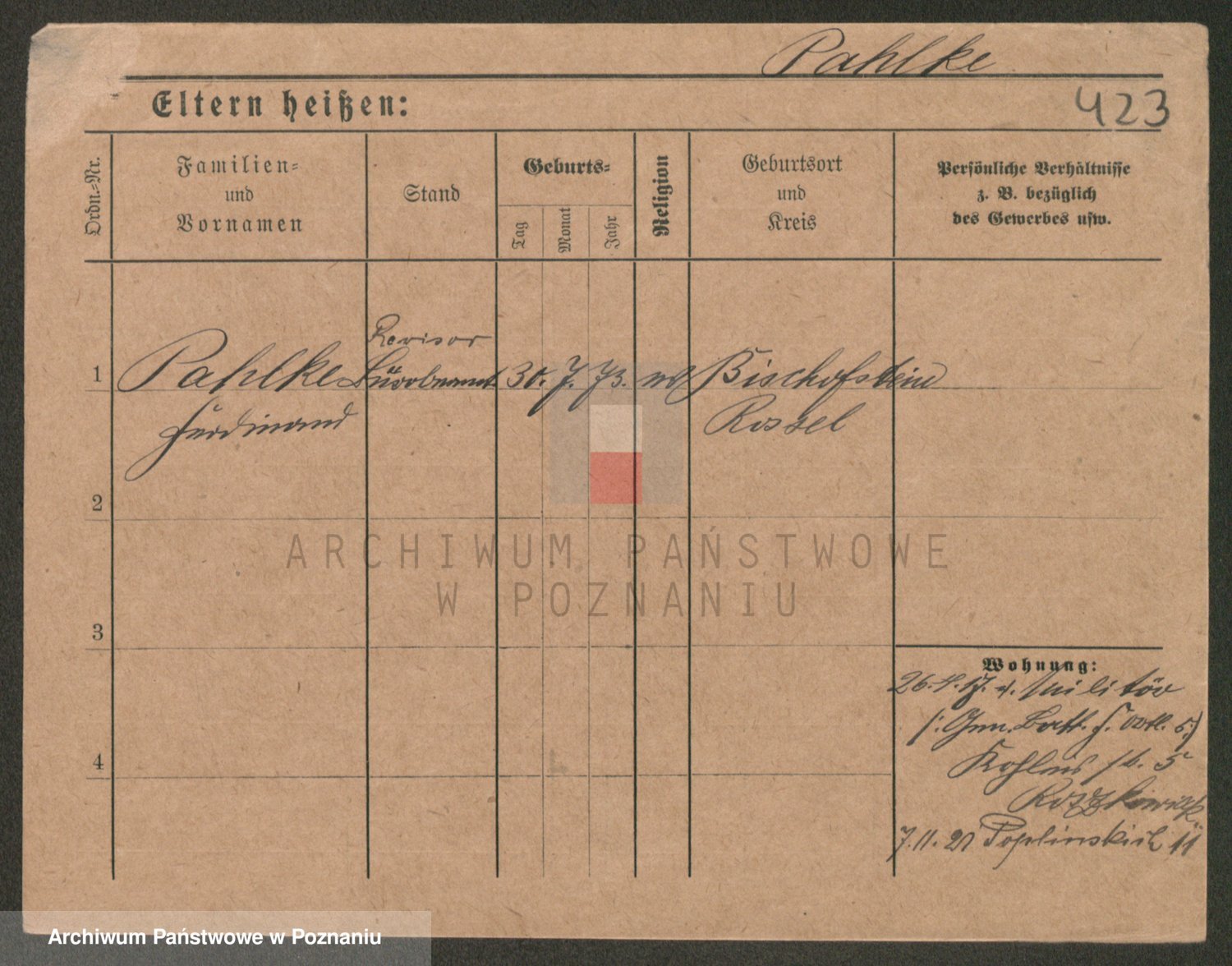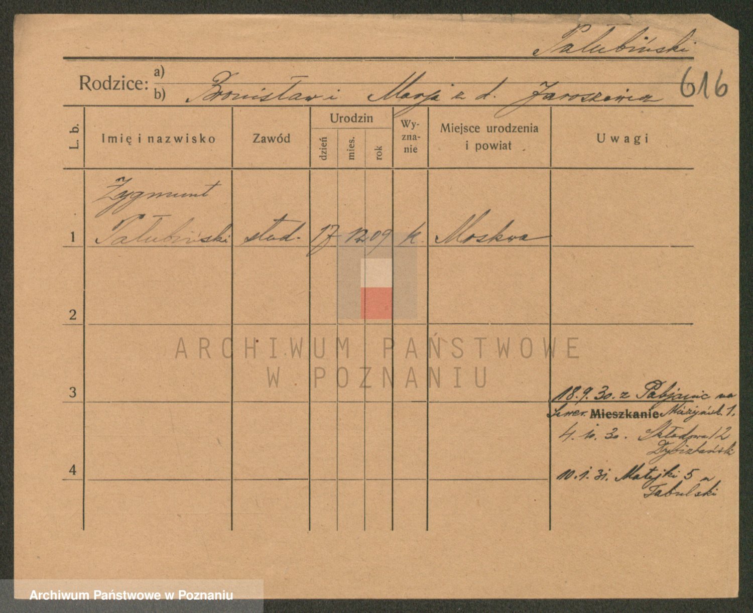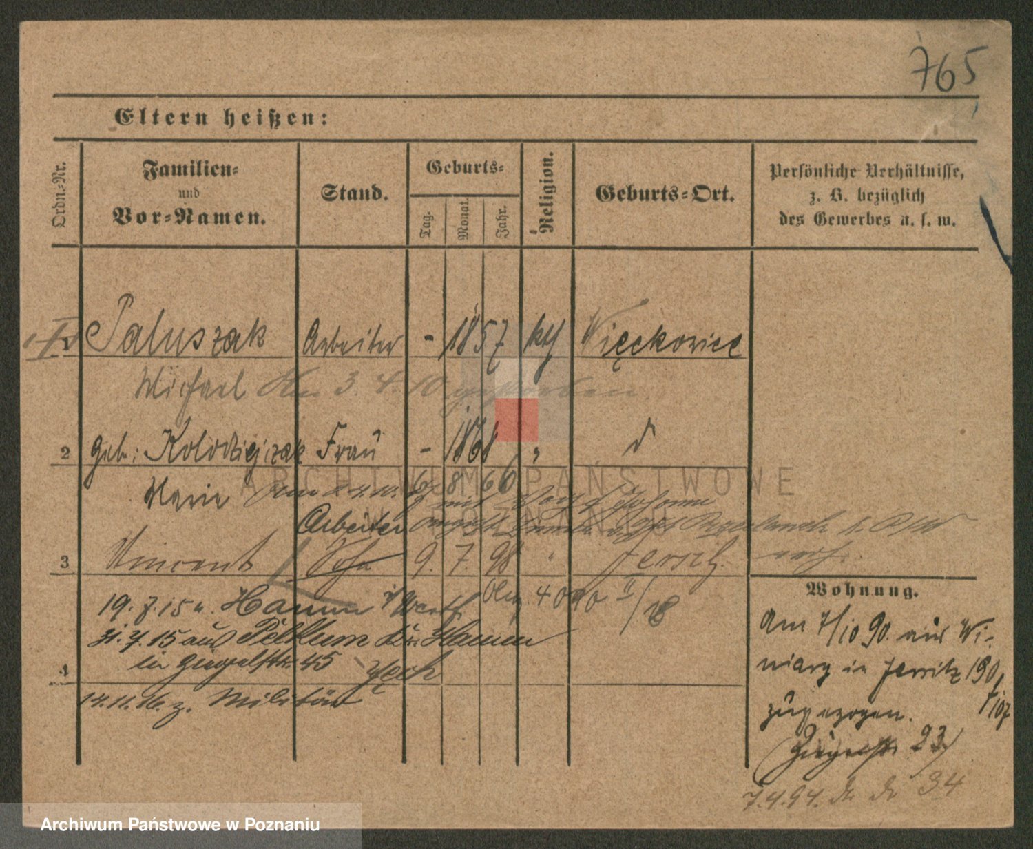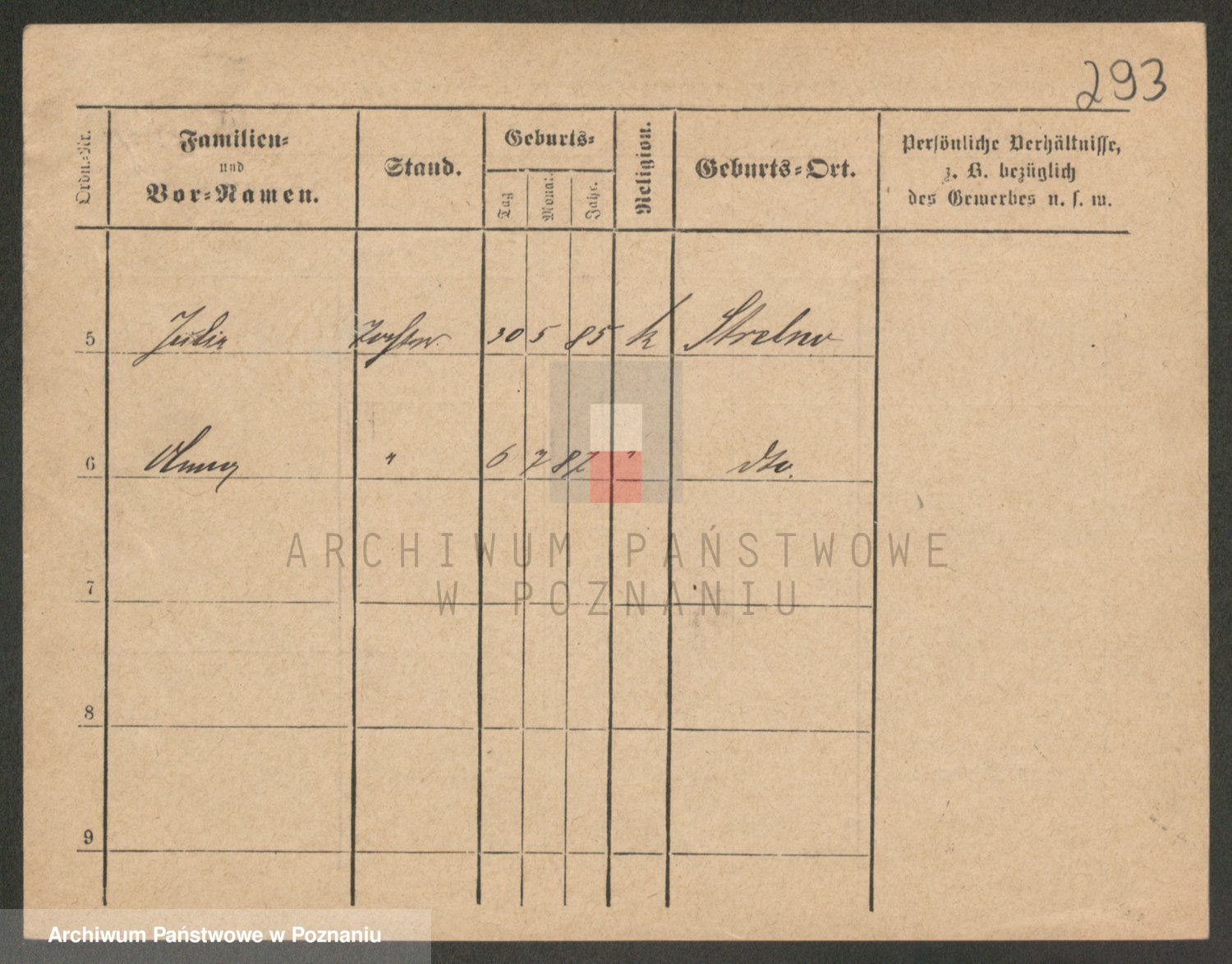 Podgląd karty osobowej dostępny jest po kliknięciu na nazwisko lub ikonkę karty. Można dokonywać powiększenia (ikony na górze) lub przechodzić między kolejnymi skanami (strzałki po bokach).