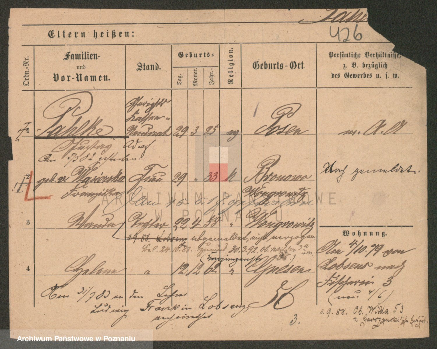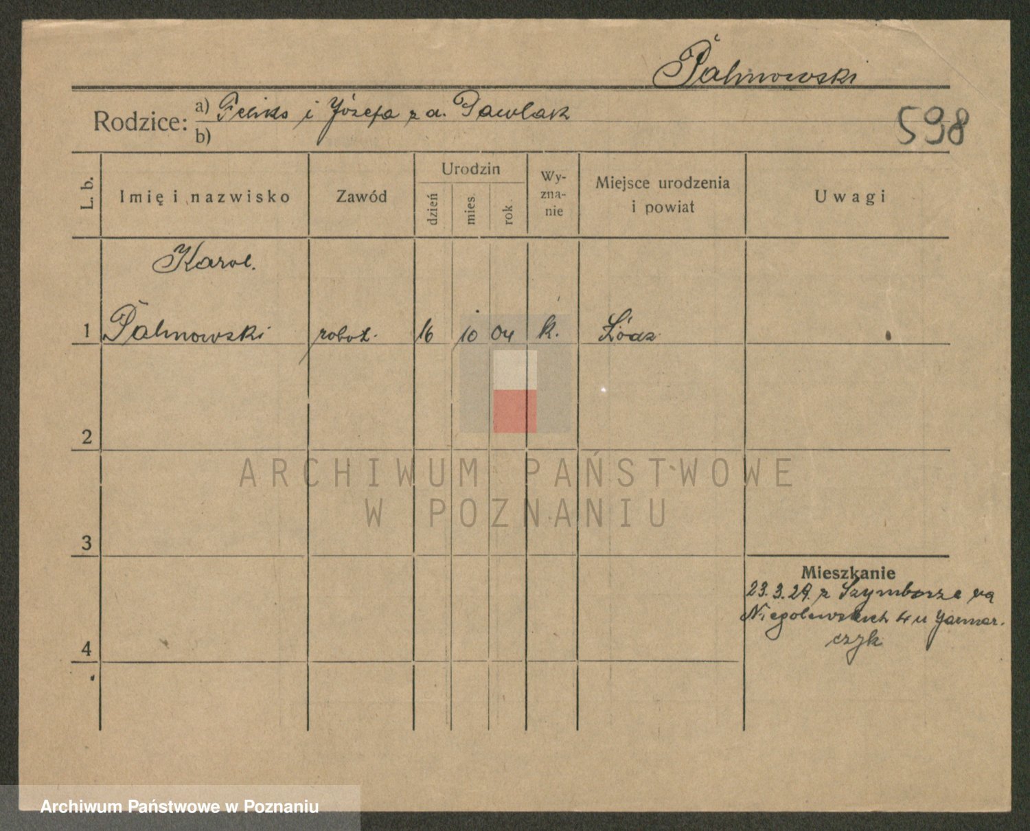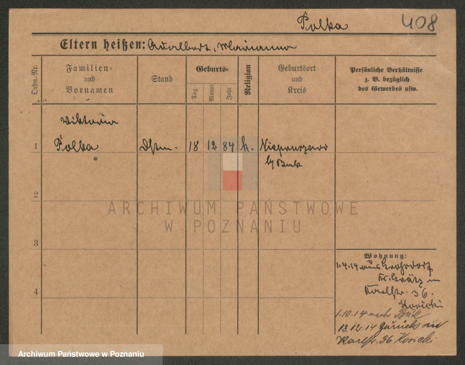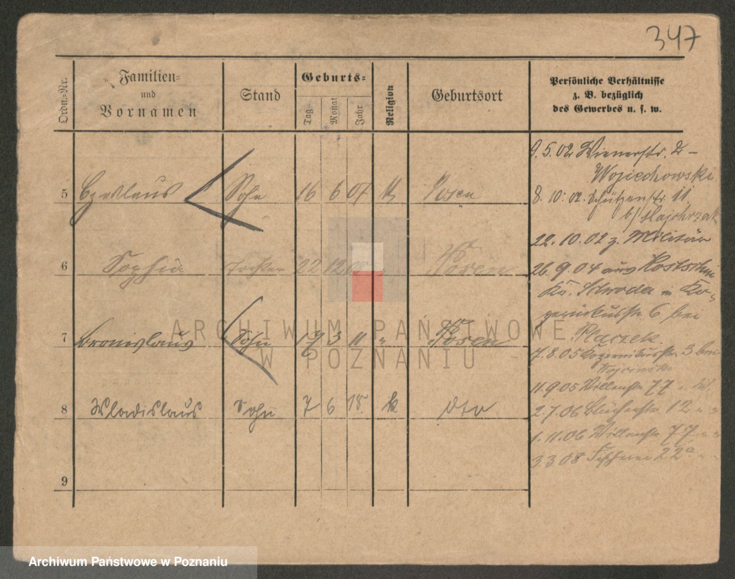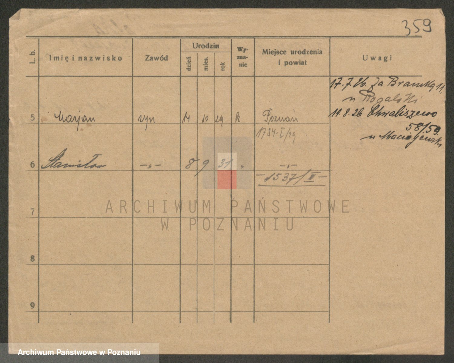 Podgląd karty osobowej dostępny jest po kliknięciu na nazwisko lub ikonkę karty. Można dokonywać powiększenia (ikony na górze) lub przechodzić między kolejnymi skanami (strzałki po bokach).