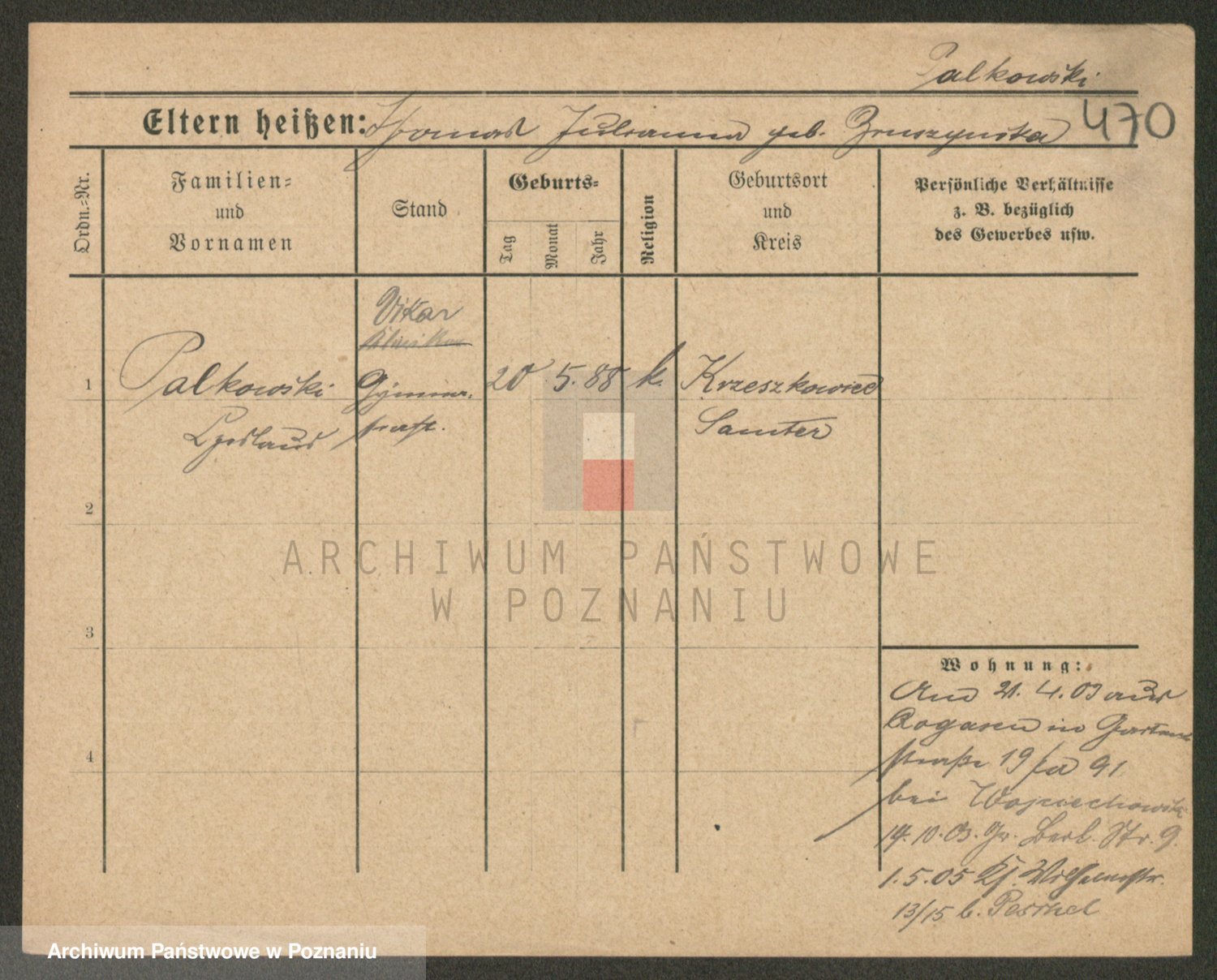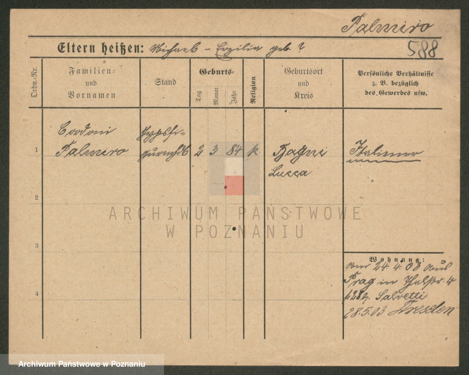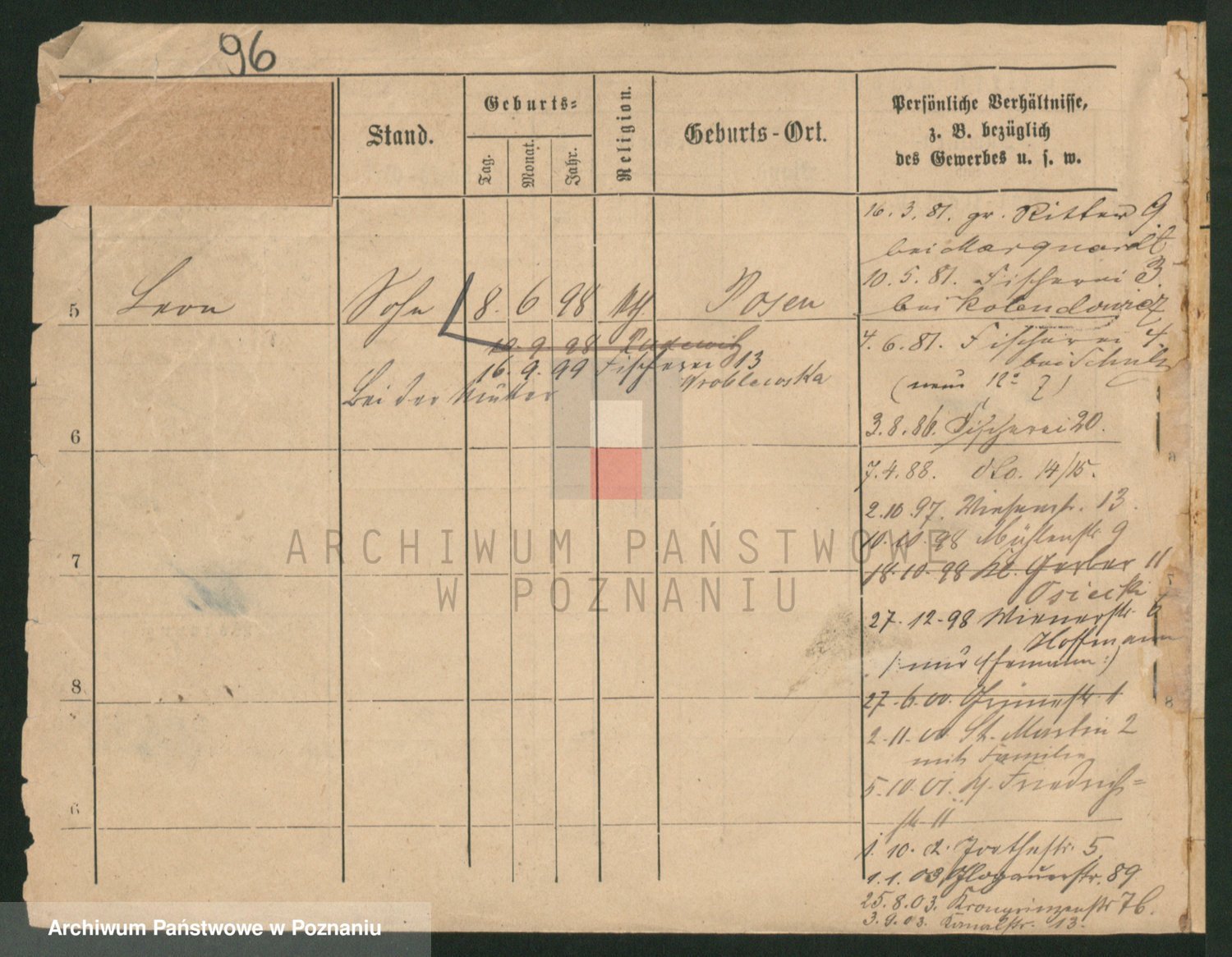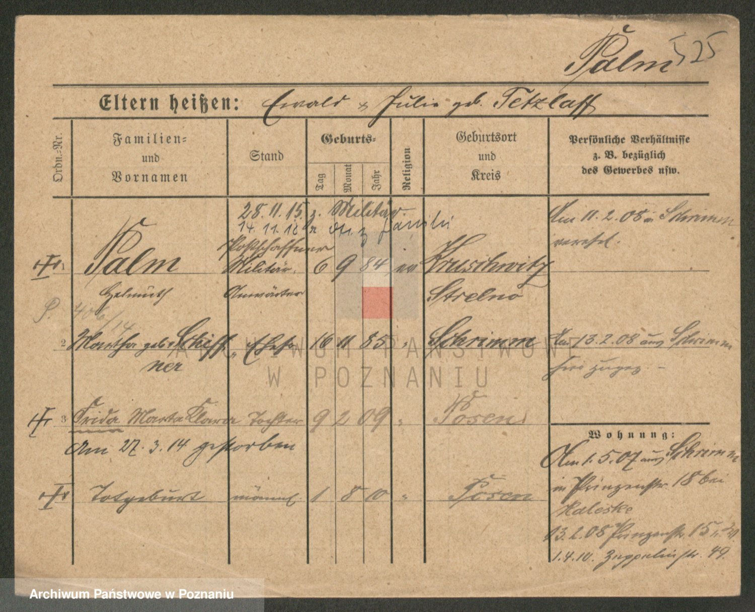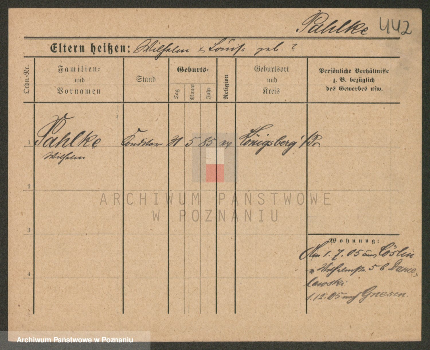 Podgląd karty osobowej dostępny jest po kliknięciu na nazwisko lub ikonkę karty. Można dokonywać powiększenia (ikony na górze) lub przechodzić między kolejnymi skanami (strzałki po bokach).