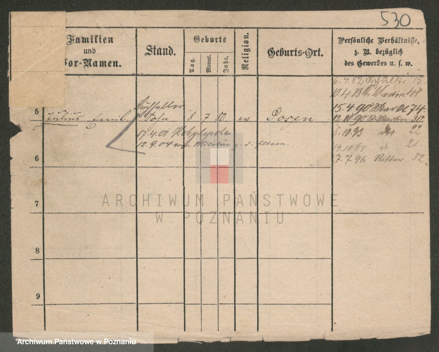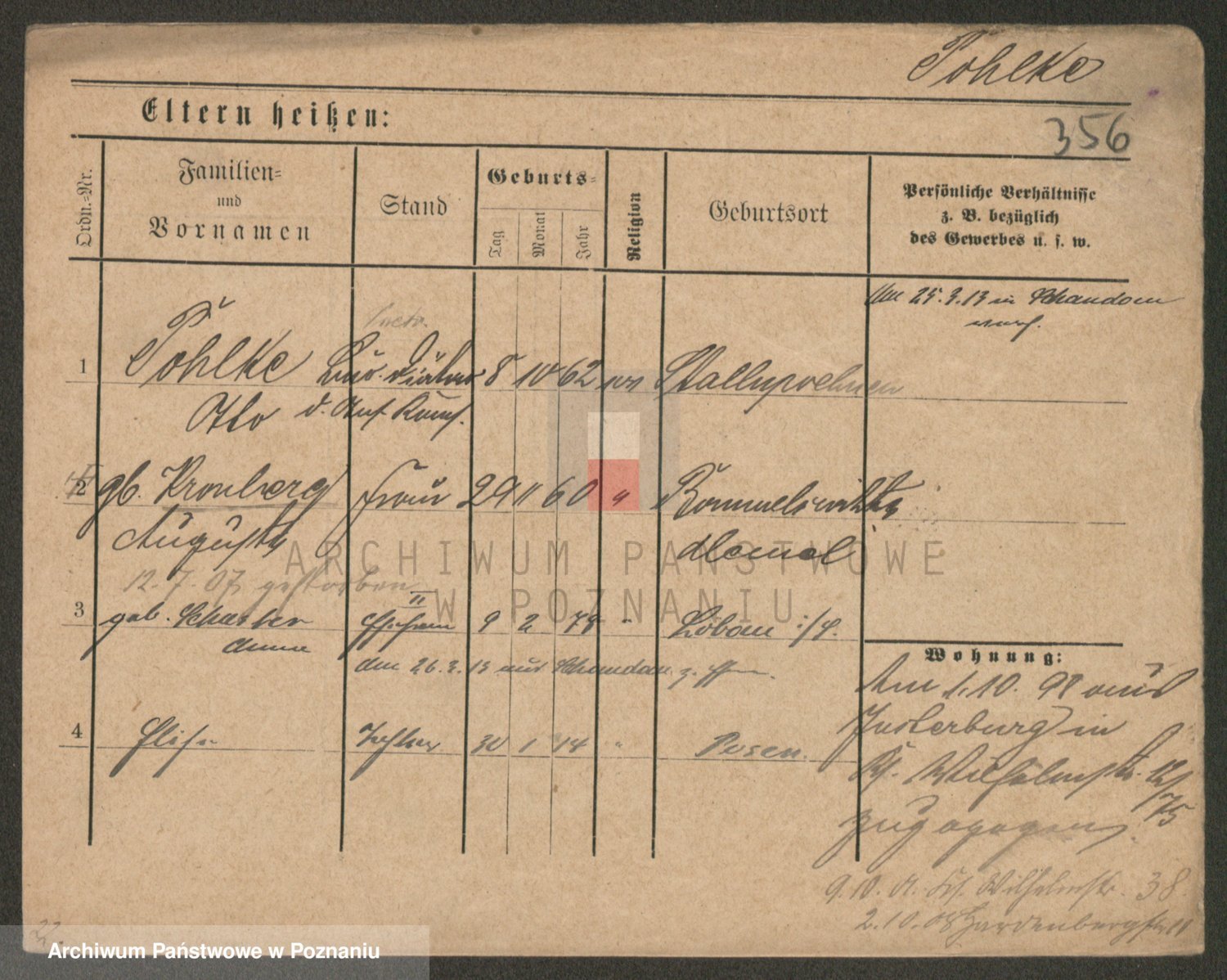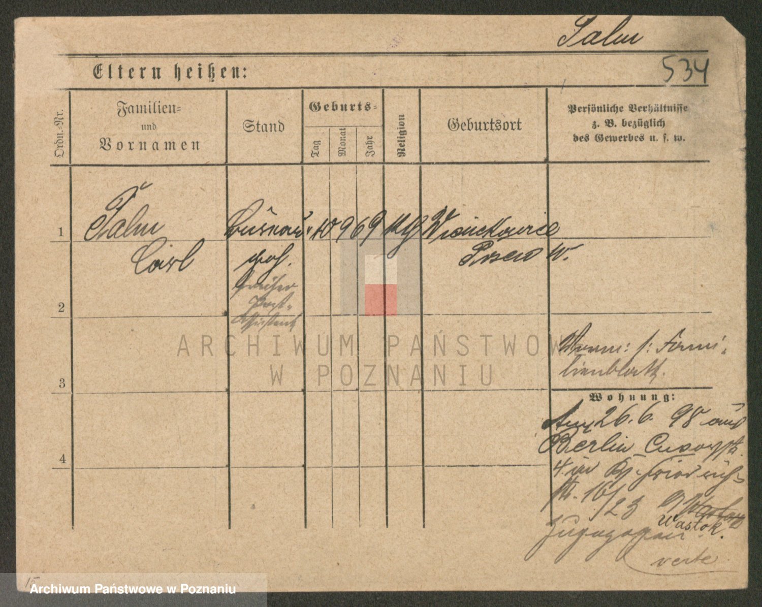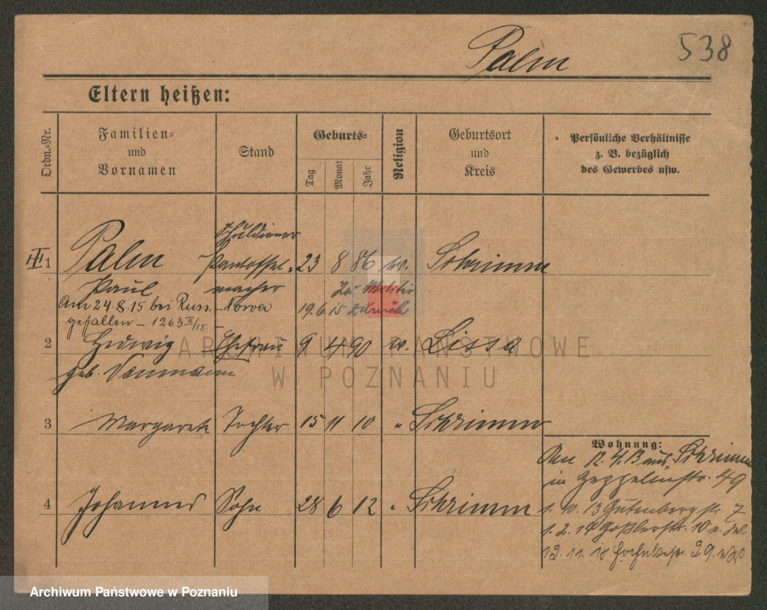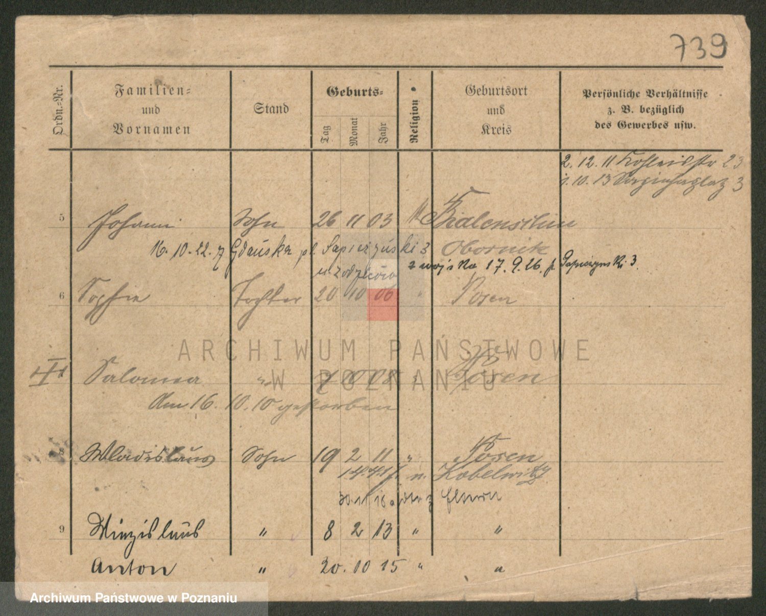 Podgląd karty osobowej dostępny jest po kliknięciu na nazwisko lub ikonkę karty. Można dokonywać powiększenia (ikony na górze) lub przechodzić między kolejnymi skanami (strzałki po bokach).