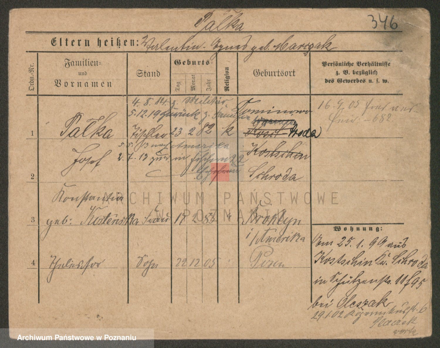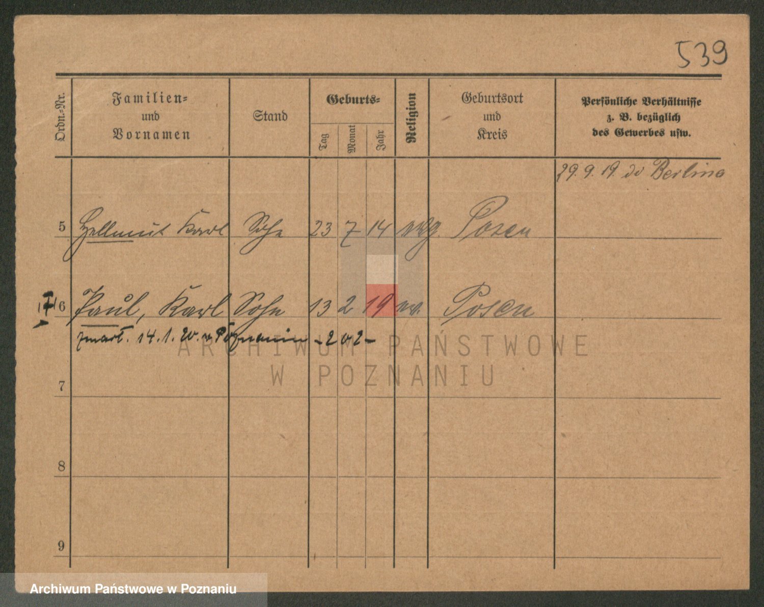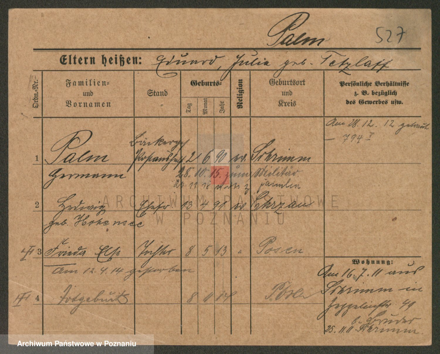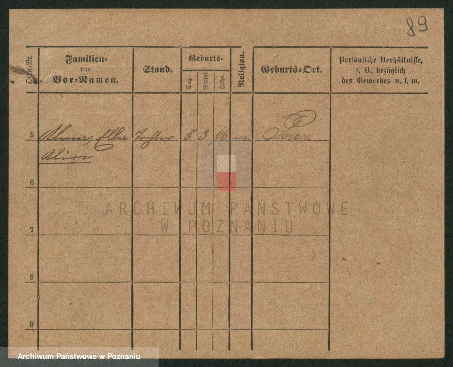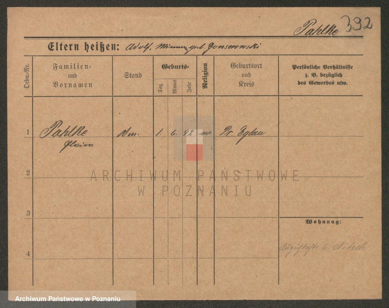 Podgląd karty osobowej dostępny jest po kliknięciu na nazwisko lub ikonkę karty. Można dokonywać powiększenia (ikony na górze) lub przechodzić między kolejnymi skanami (strzałki po bokach).
