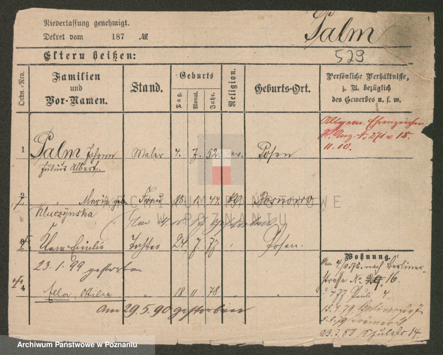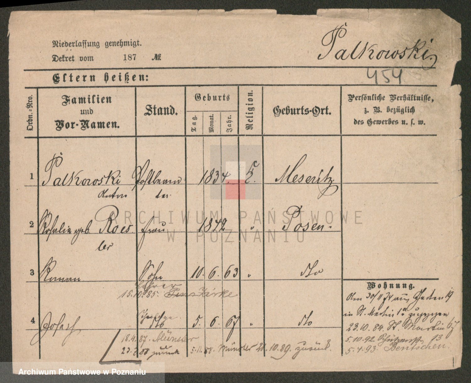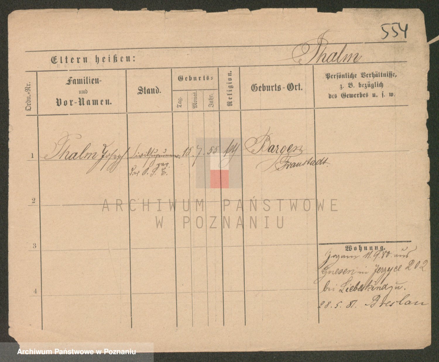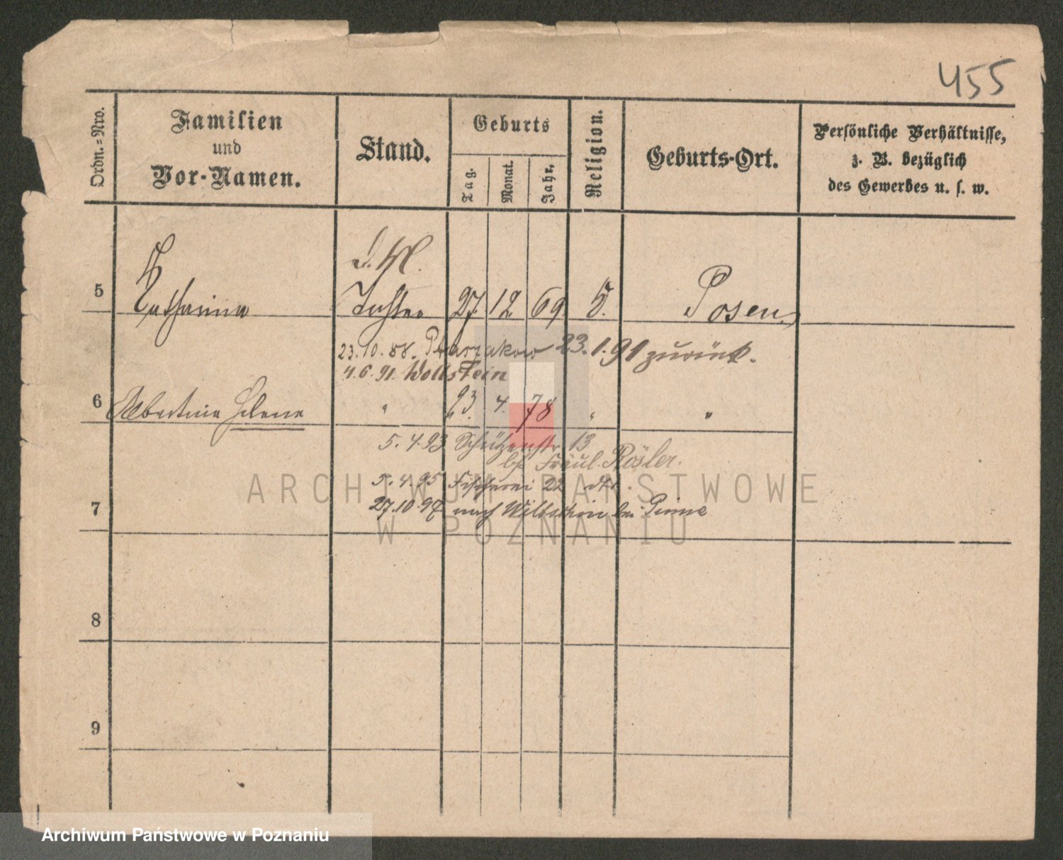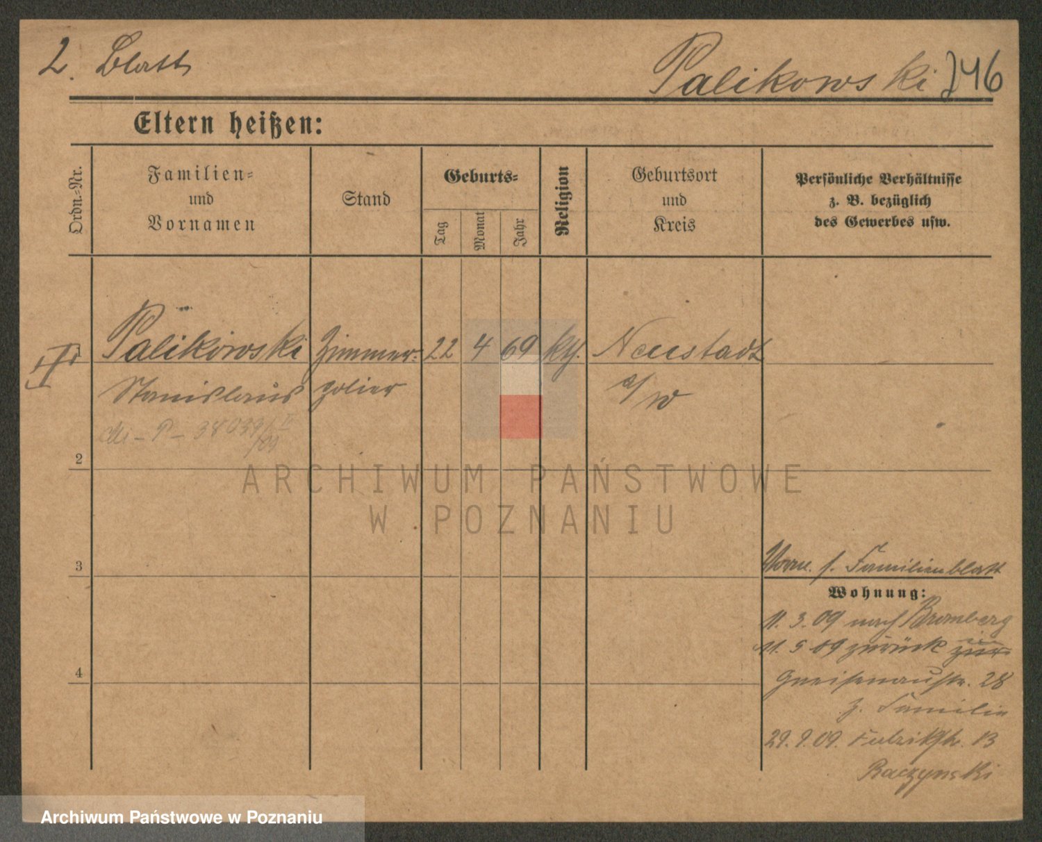 Podgląd karty osobowej dostępny jest po kliknięciu na nazwisko lub ikonkę karty. Można dokonywać powiększenia (ikony na górze) lub przechodzić między kolejnymi skanami (strzałki po bokach).