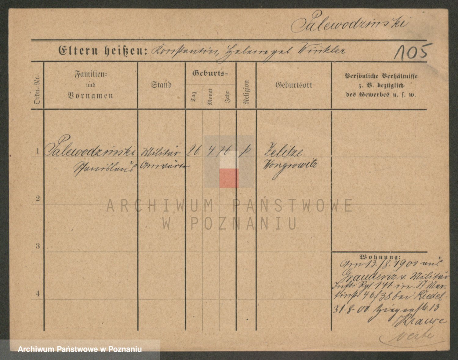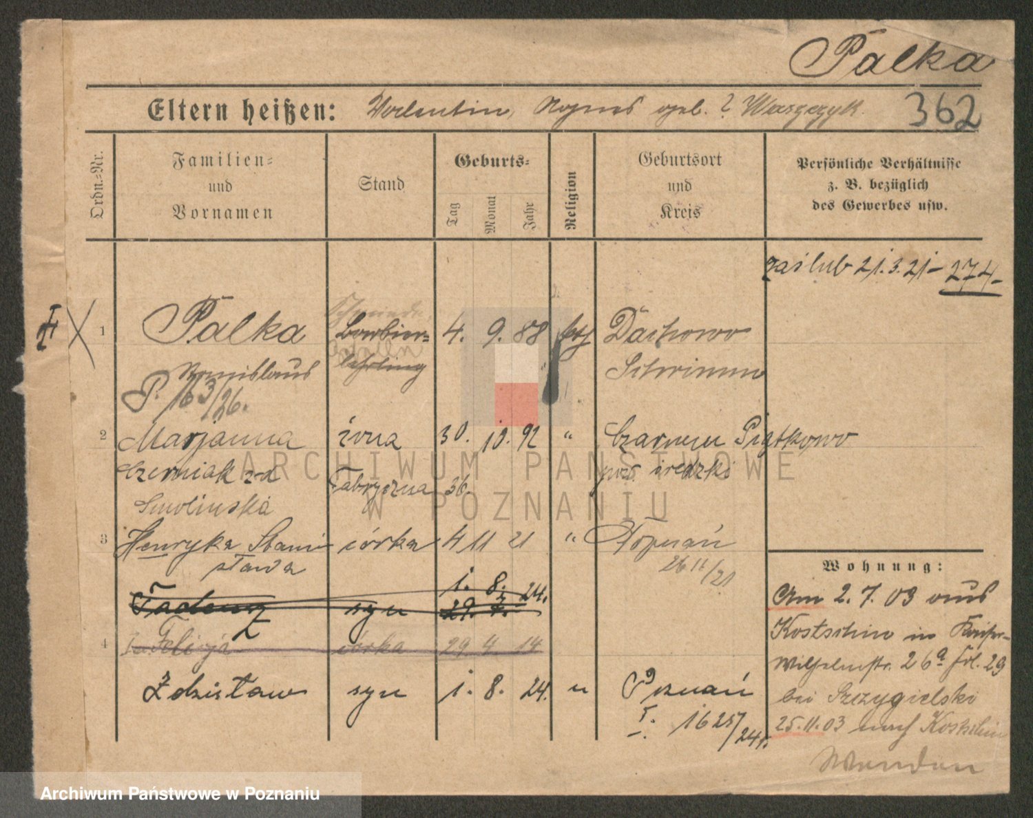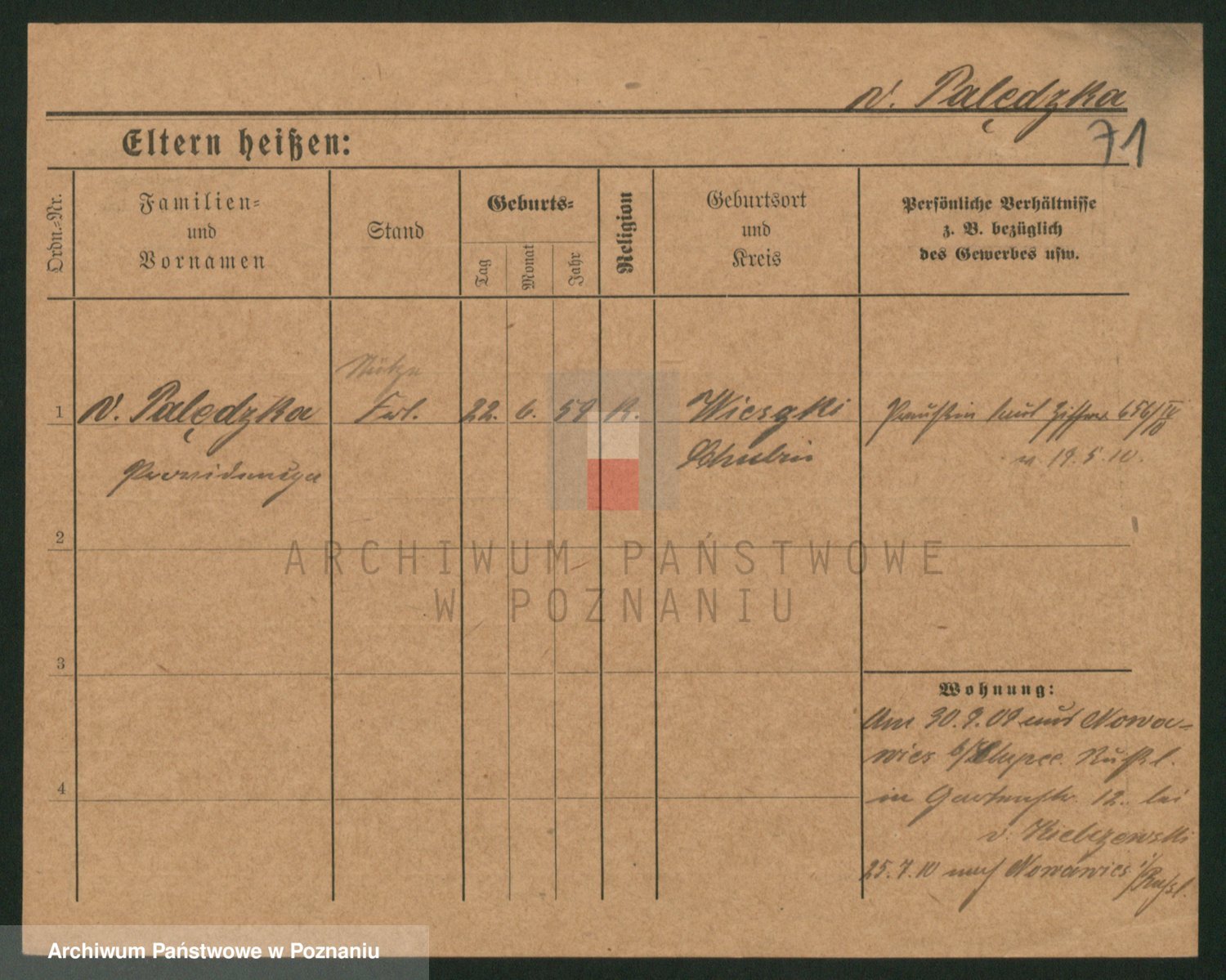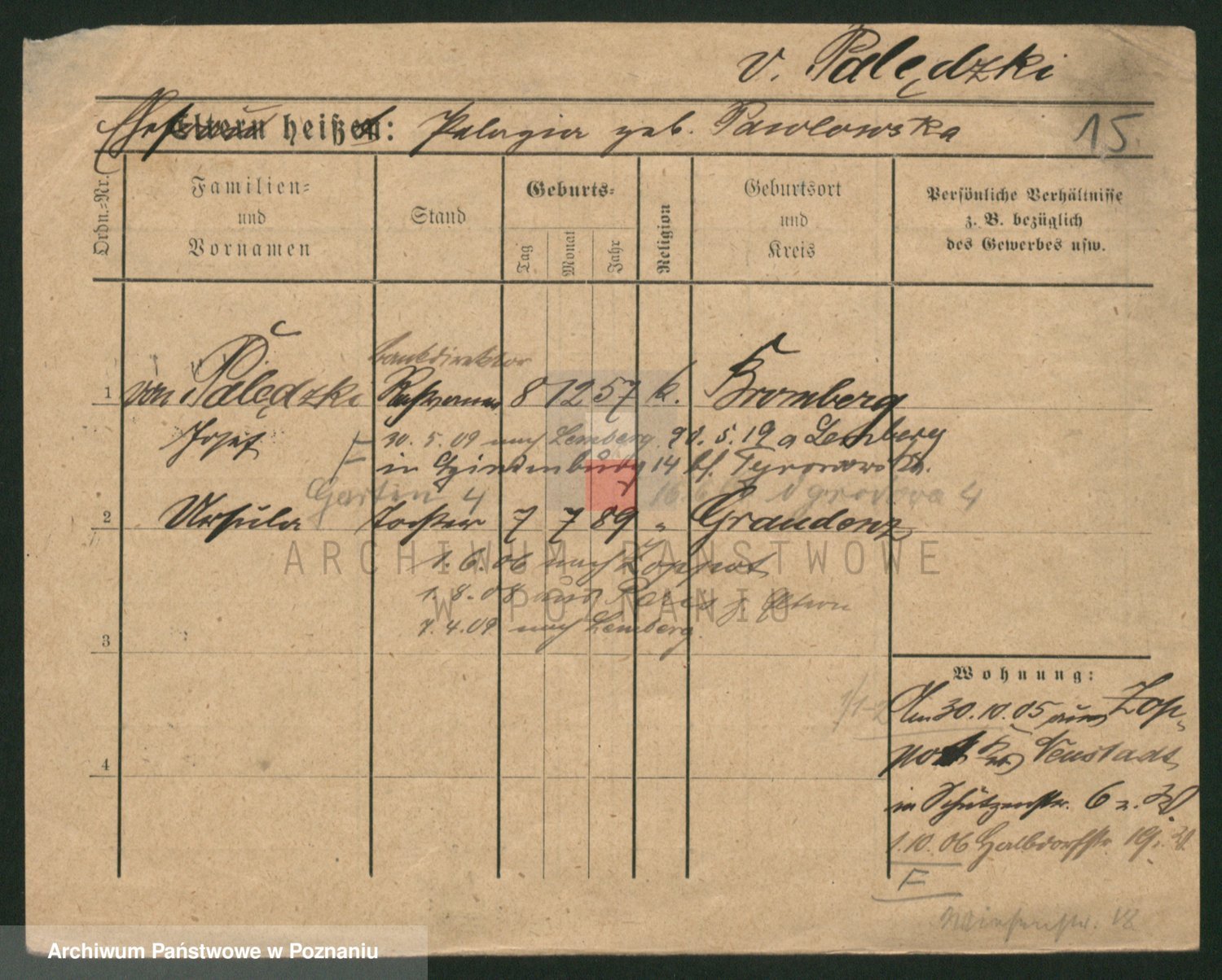 Palędzki z.d. Wurch, Walerja