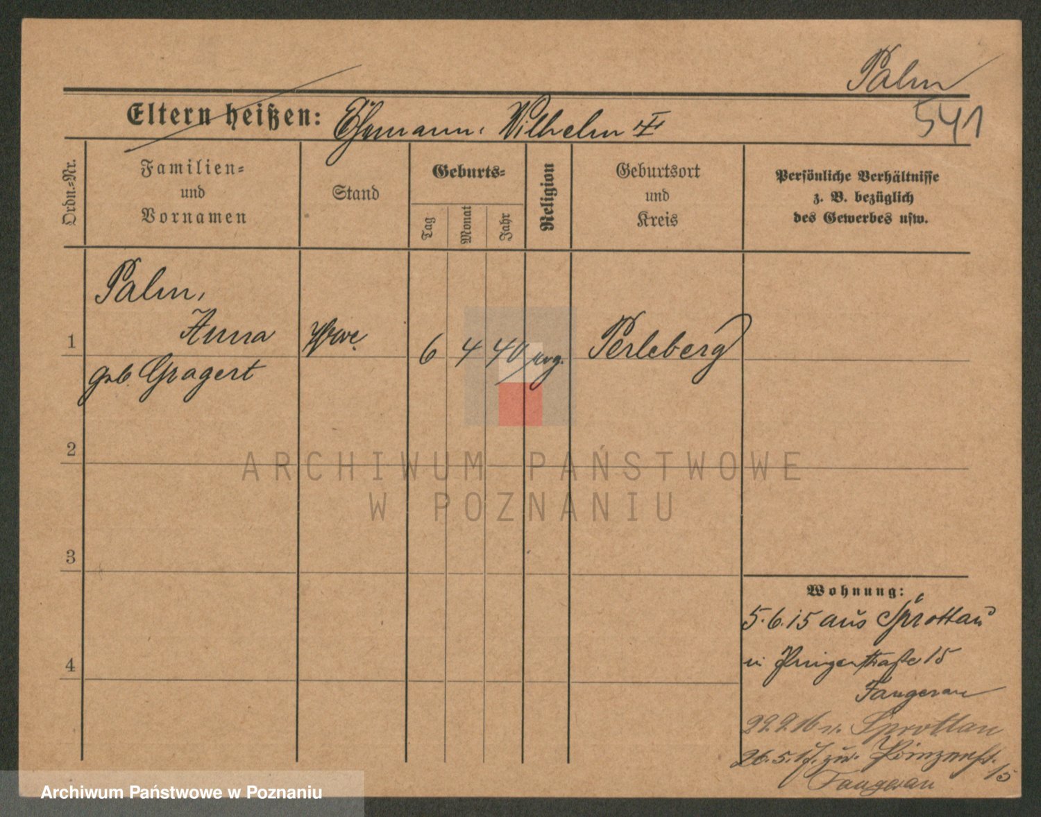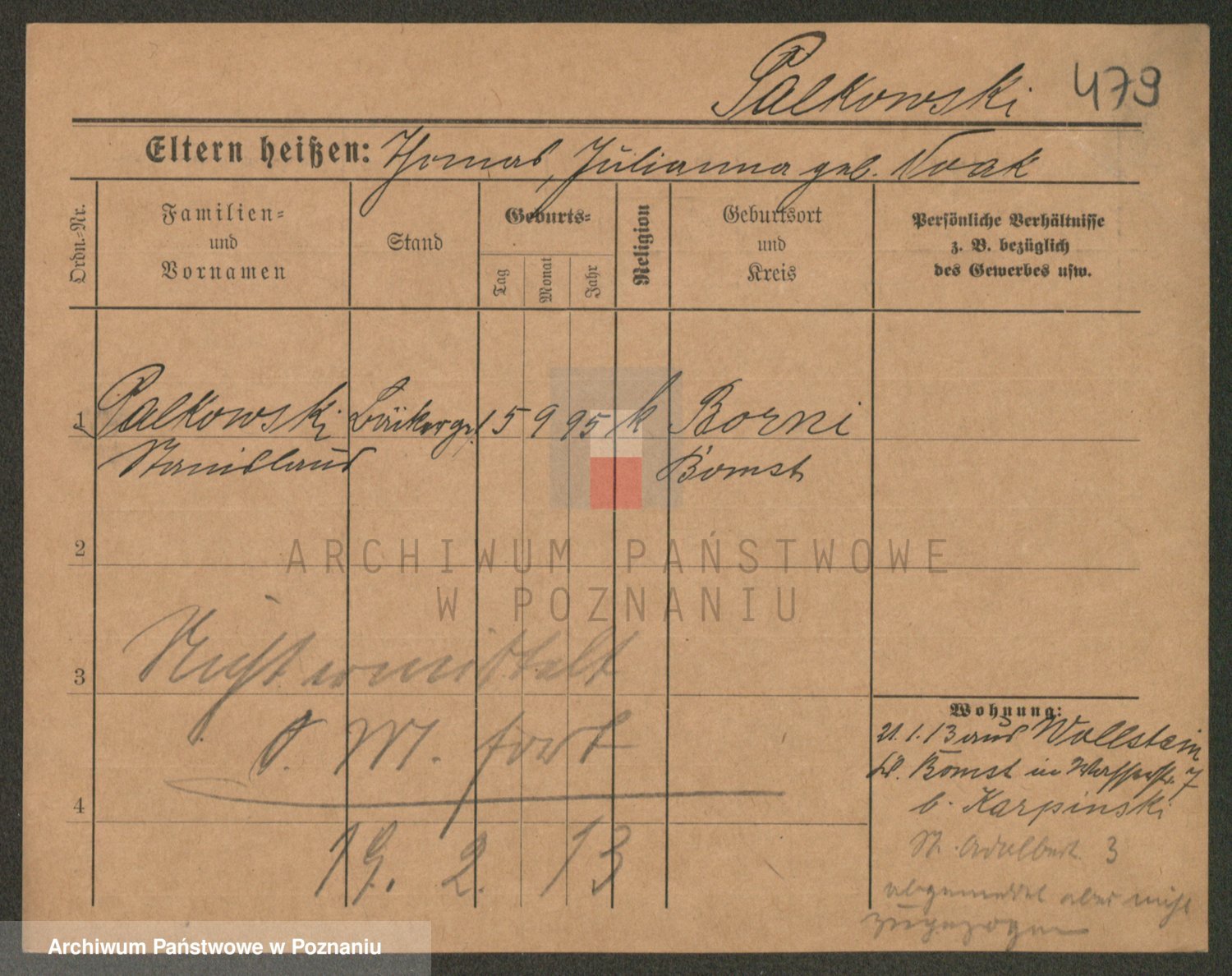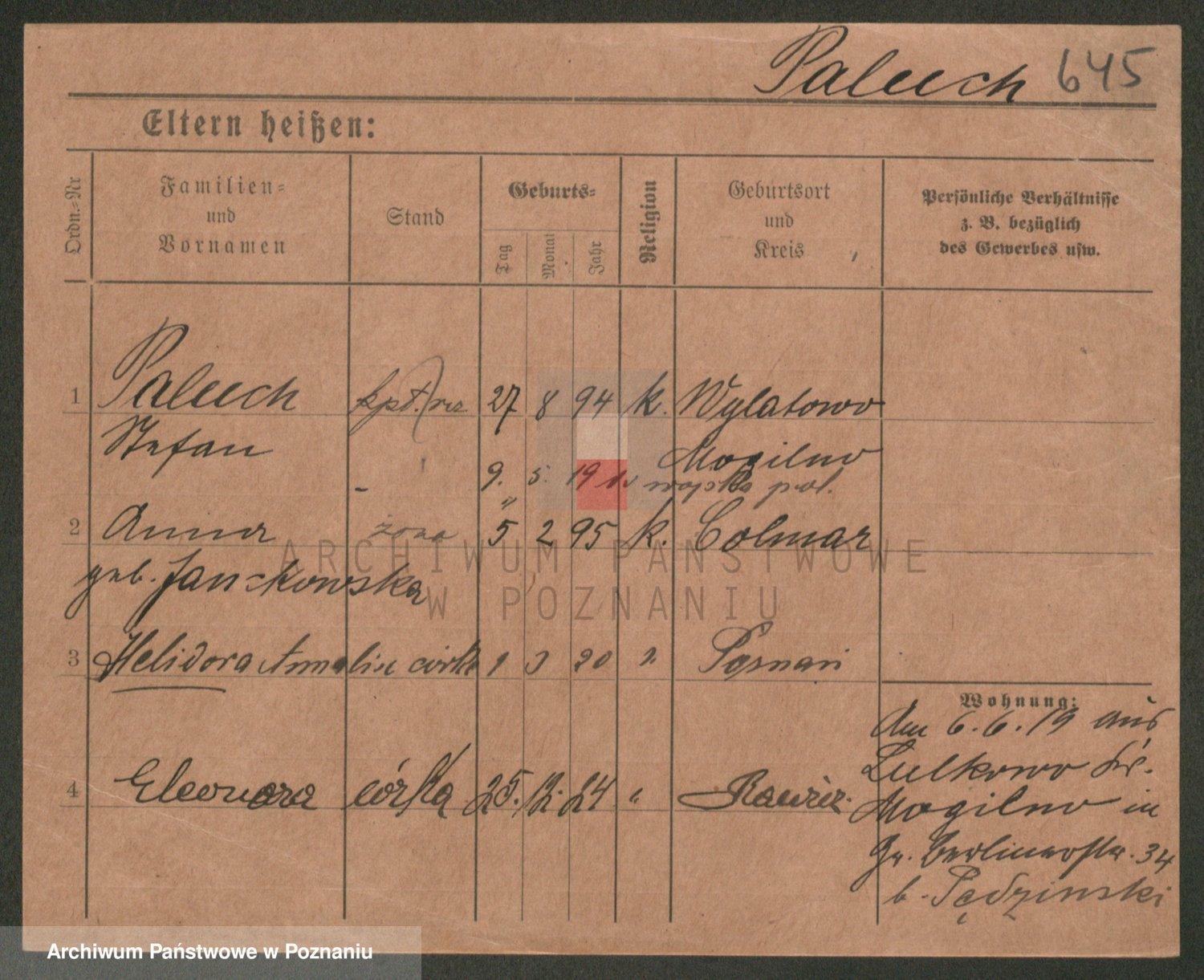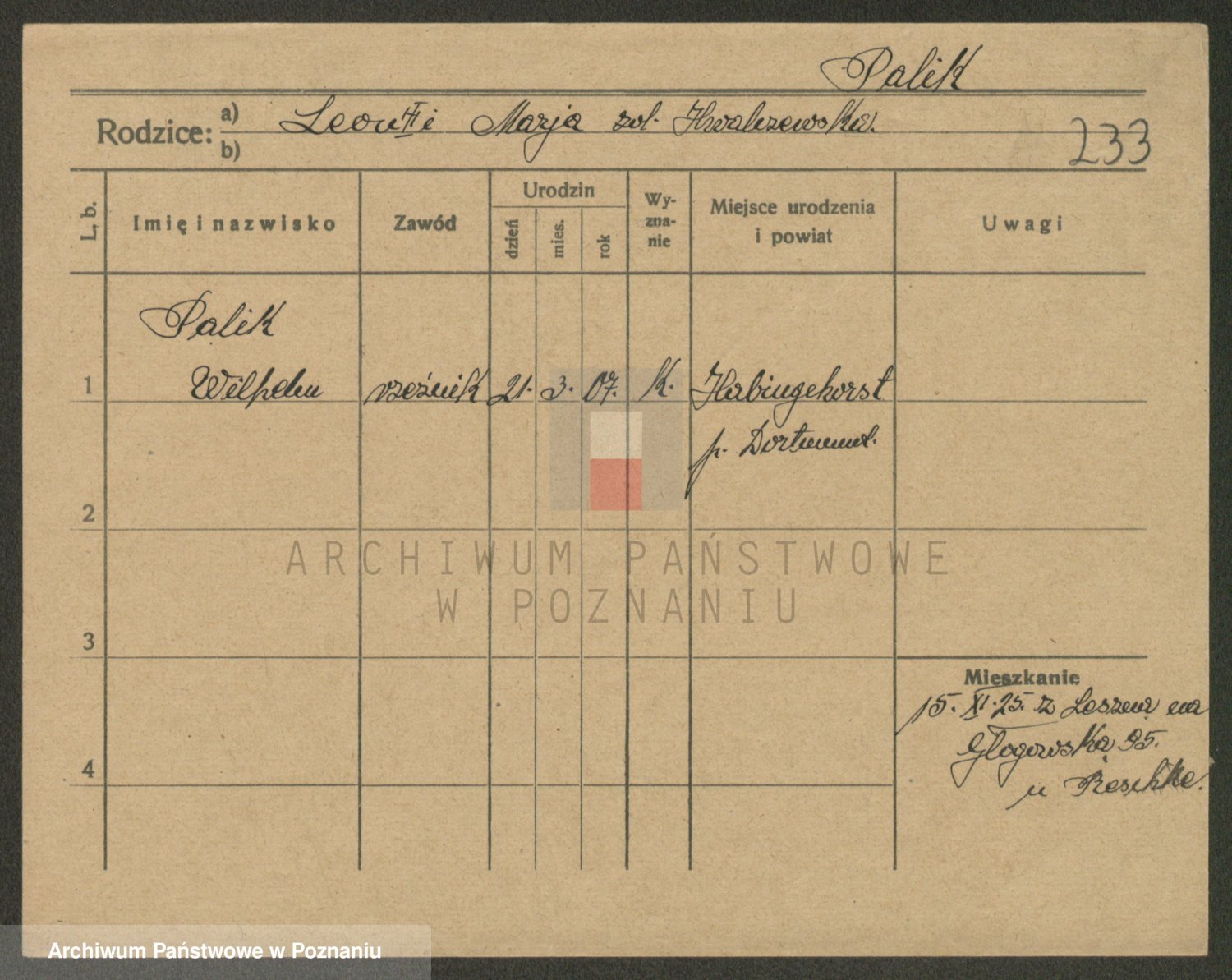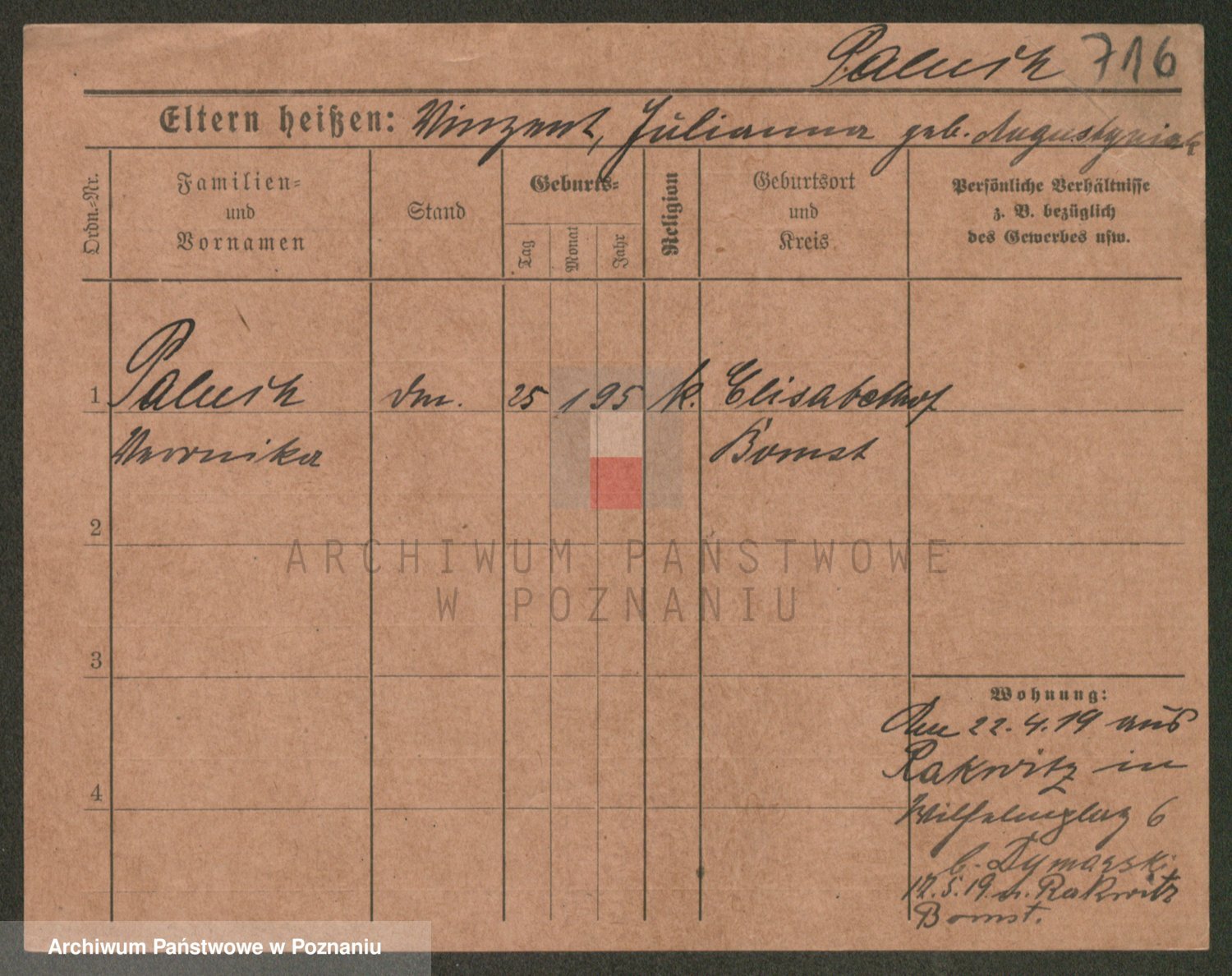Palędzki z.d. Wurch, Walerja