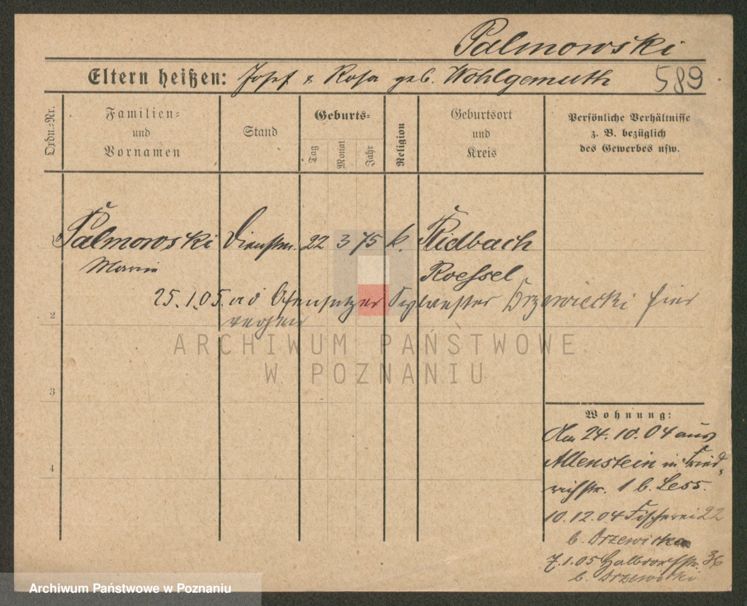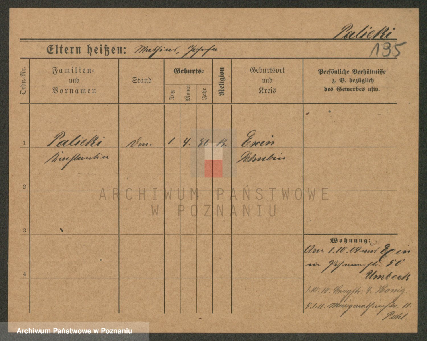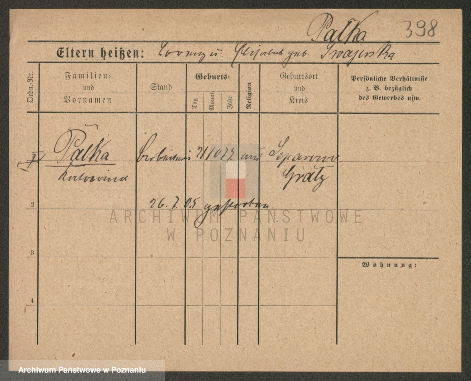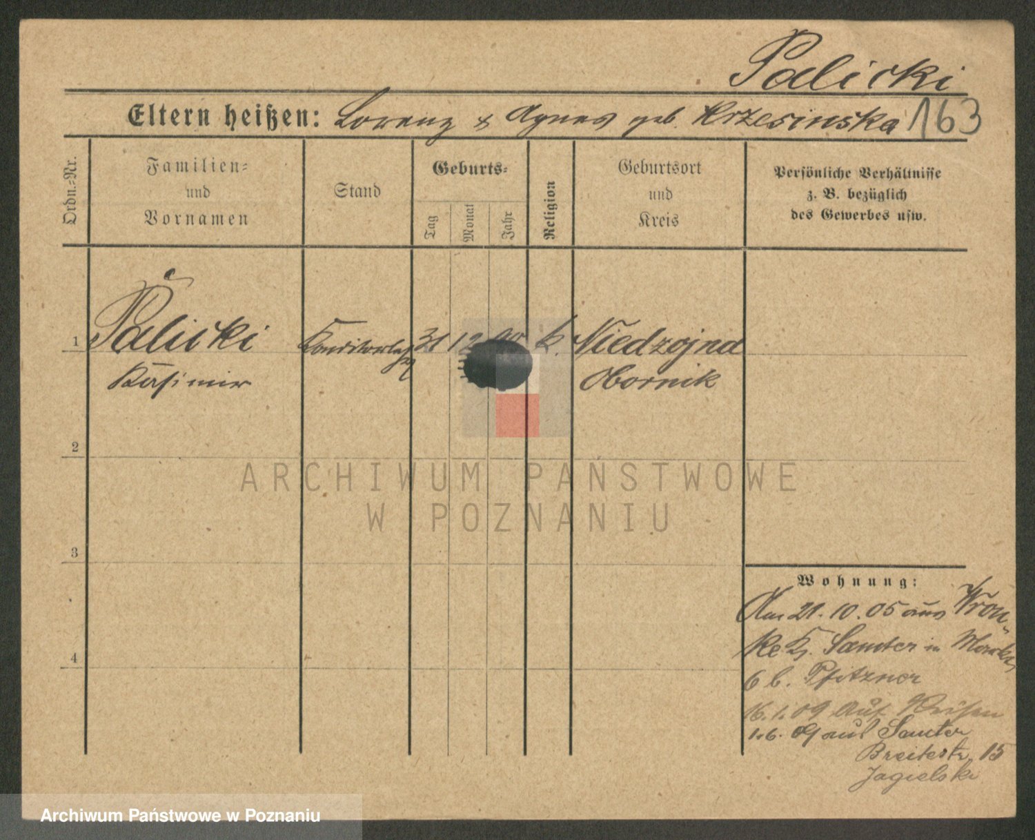 Palędzki z.d. Wurch, Walerja