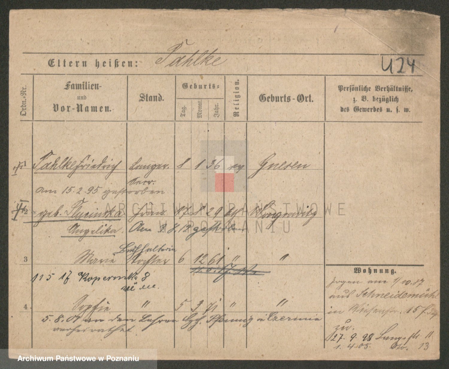 Palecki z.d. Basinska, Marie