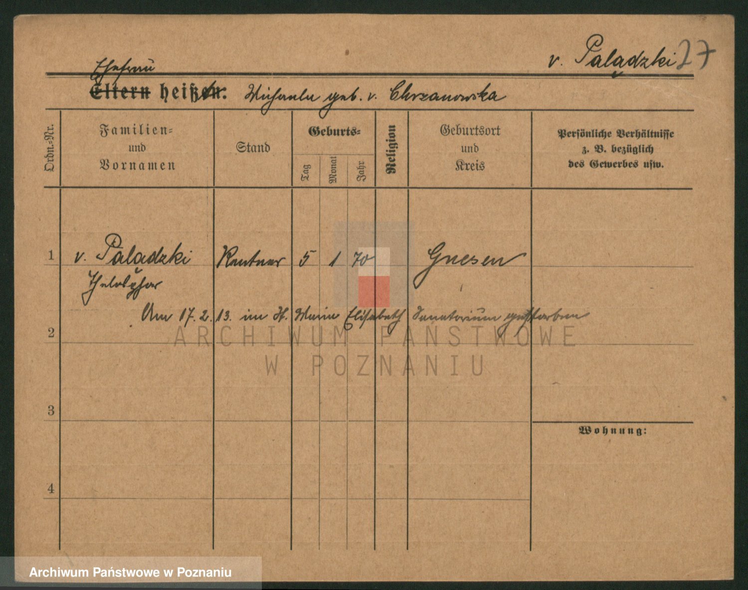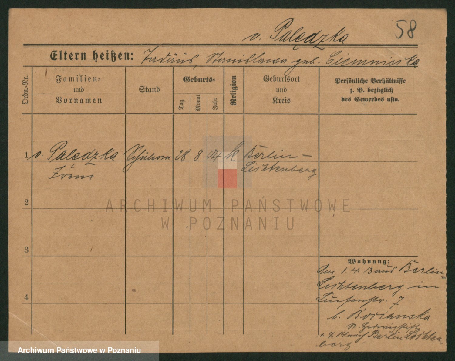 Palędzki von z.d. Czapska von, Marie