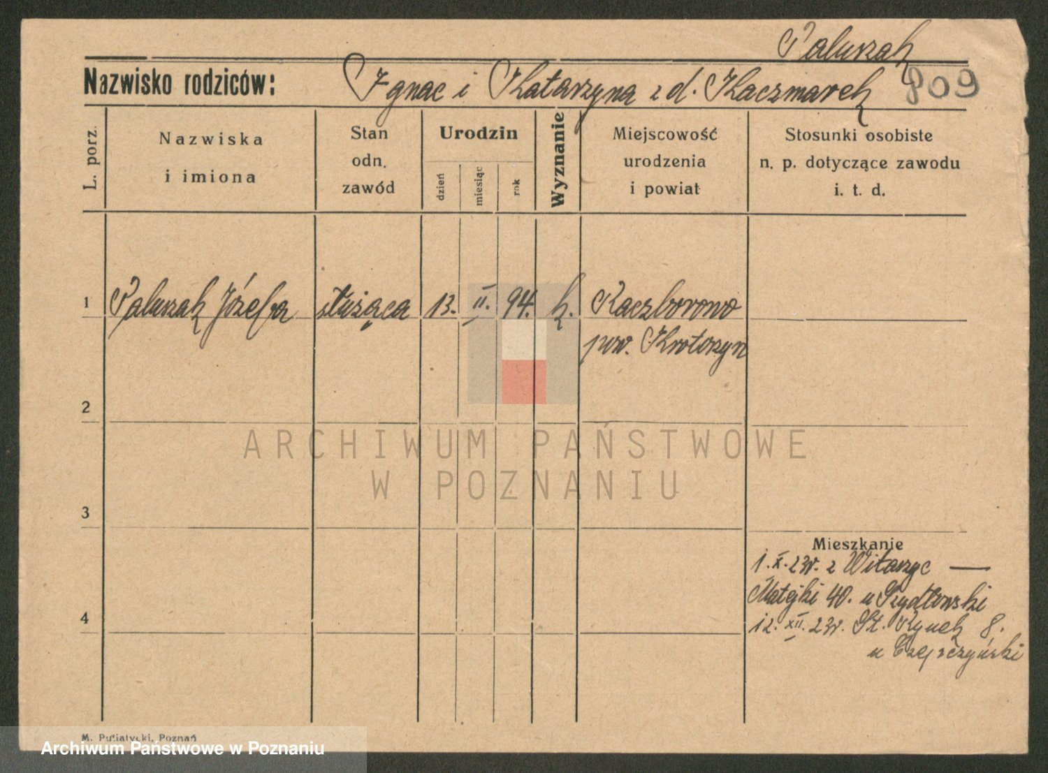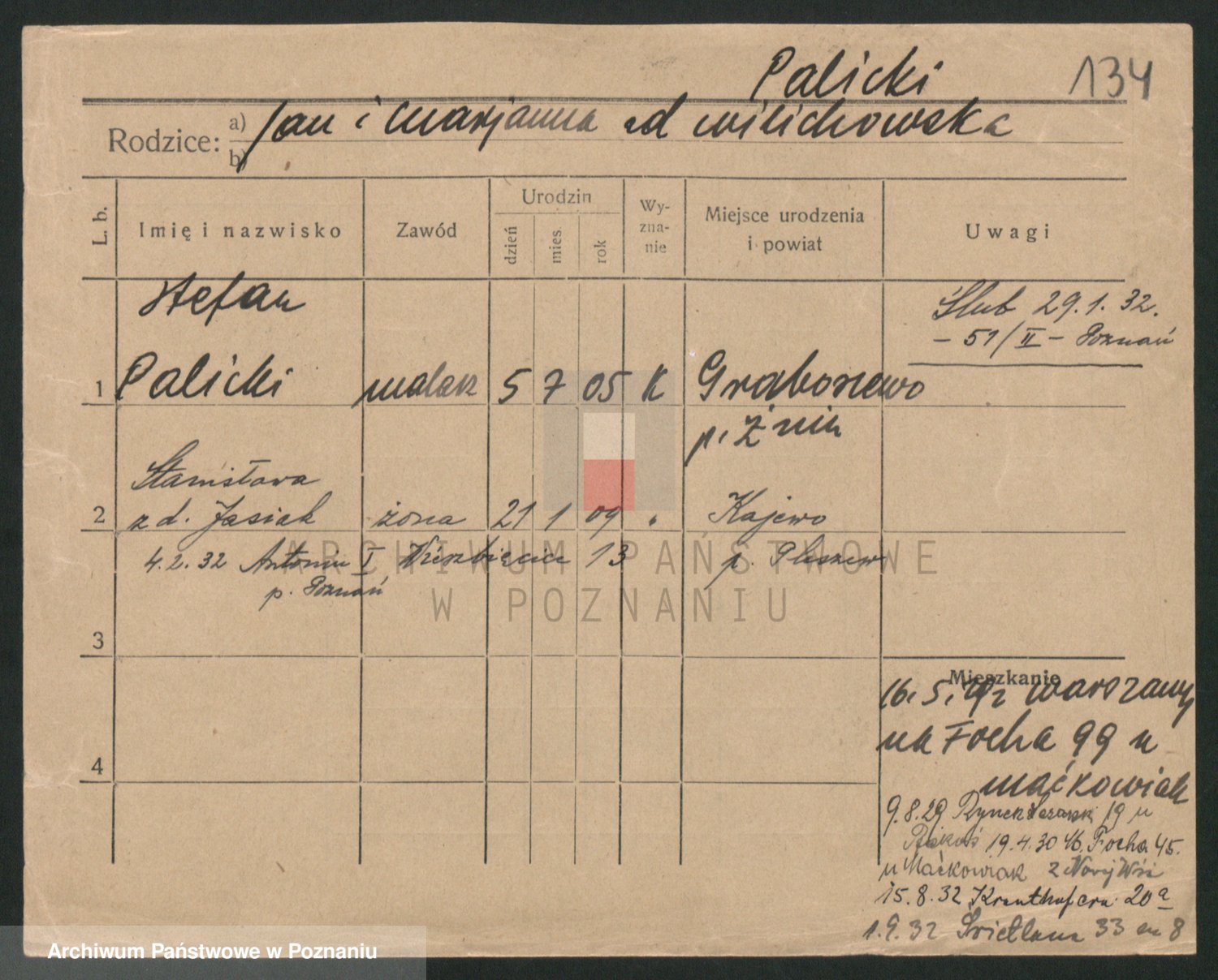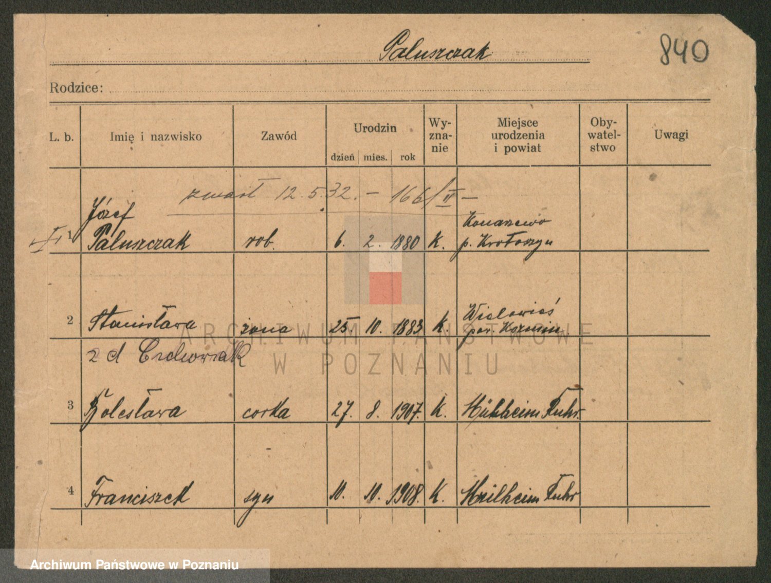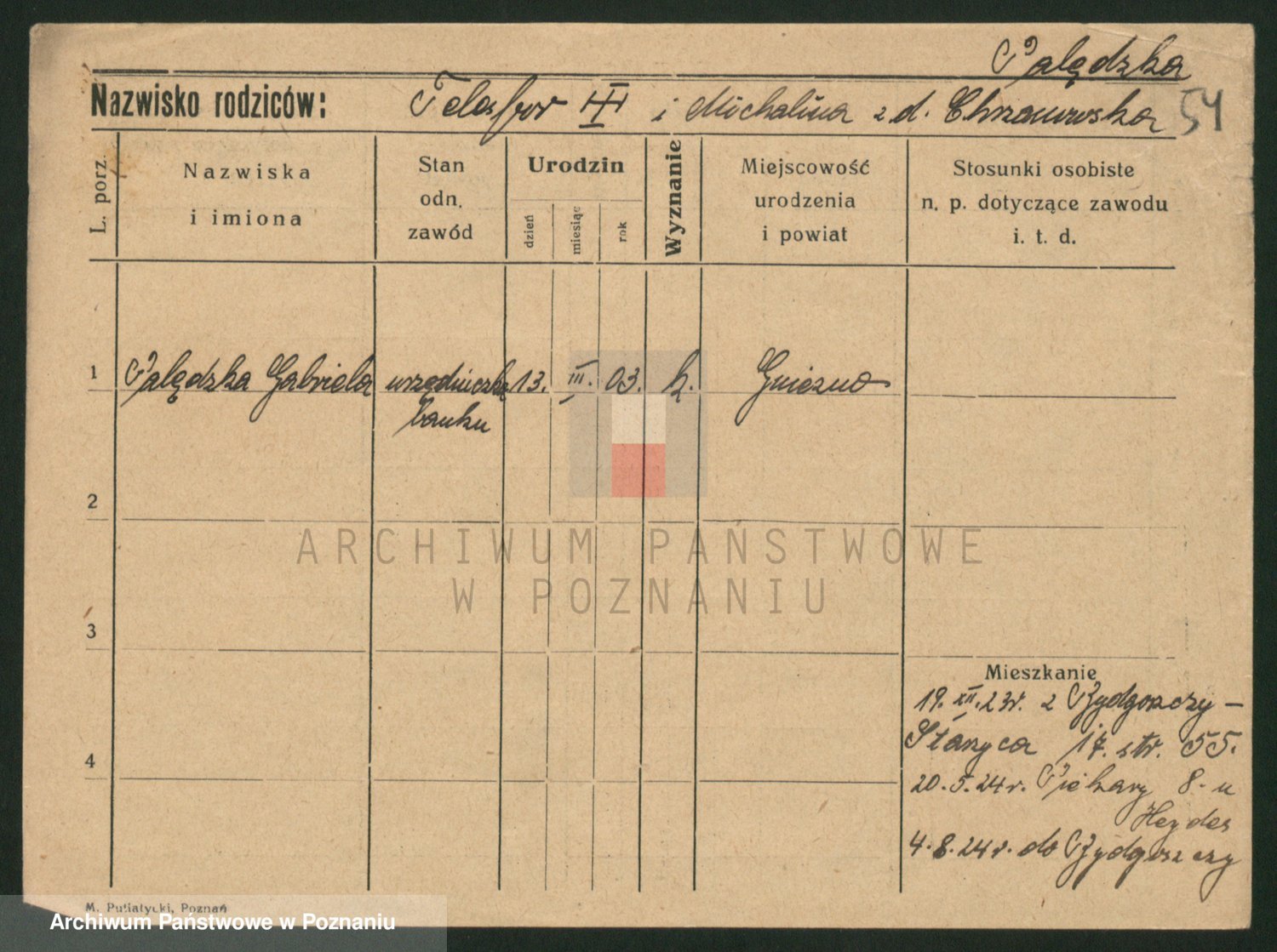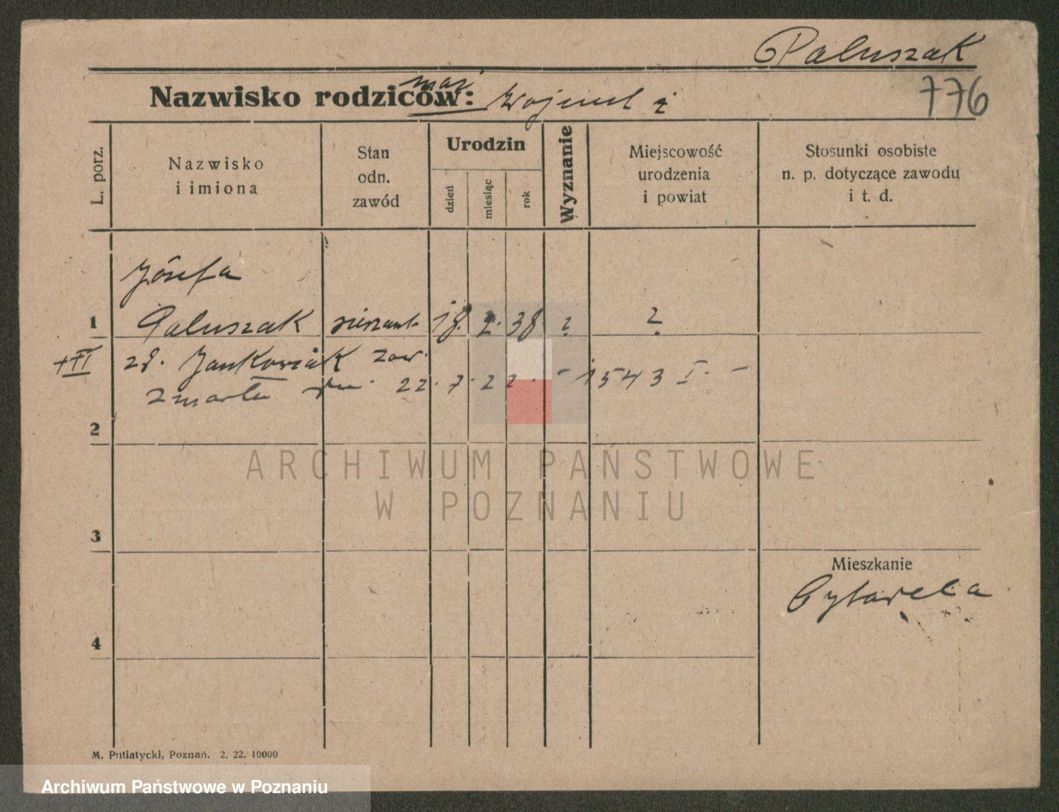 Paluszczak z.d. Czchowiak (Czehowiak), Stanisława