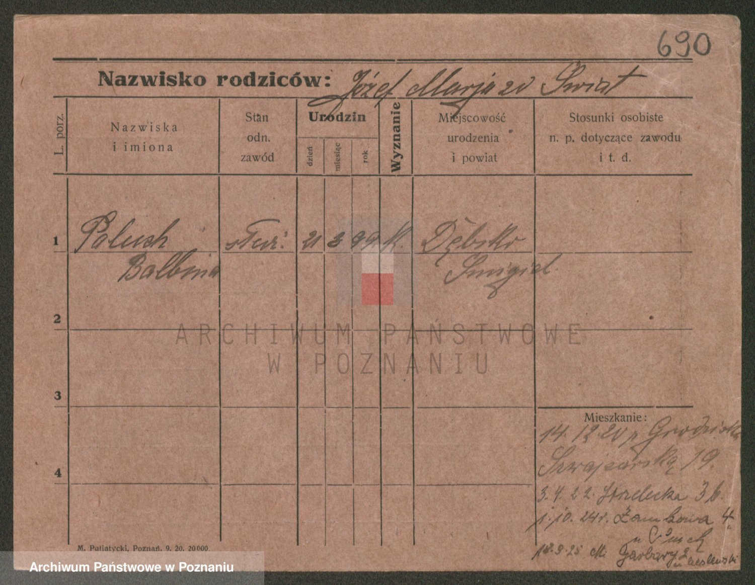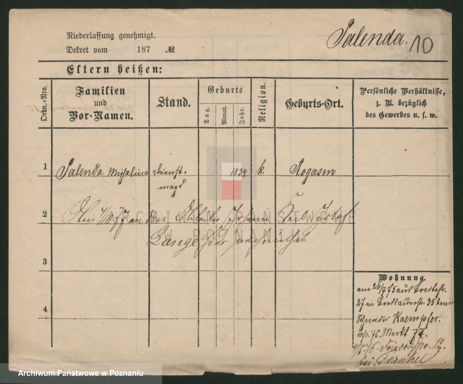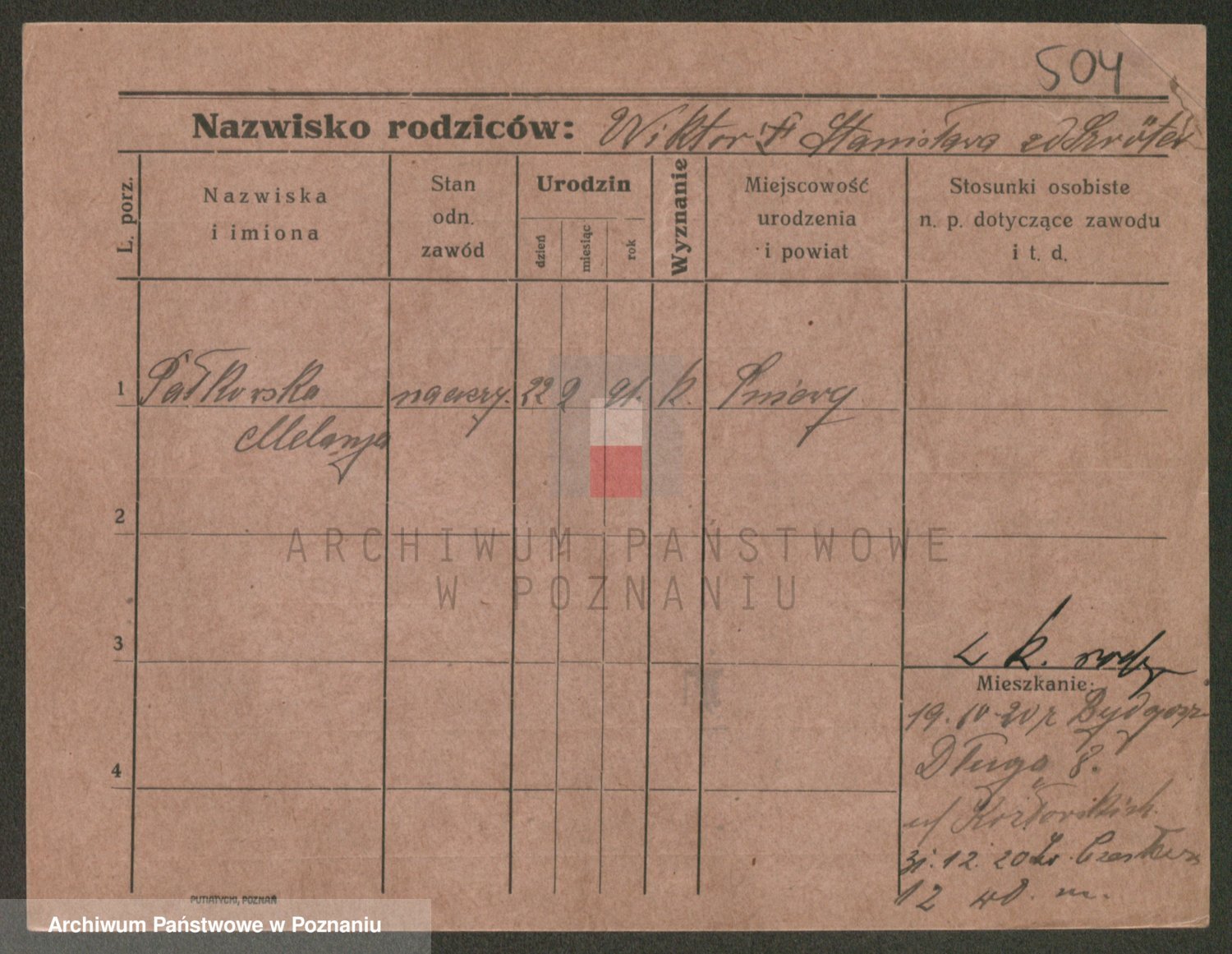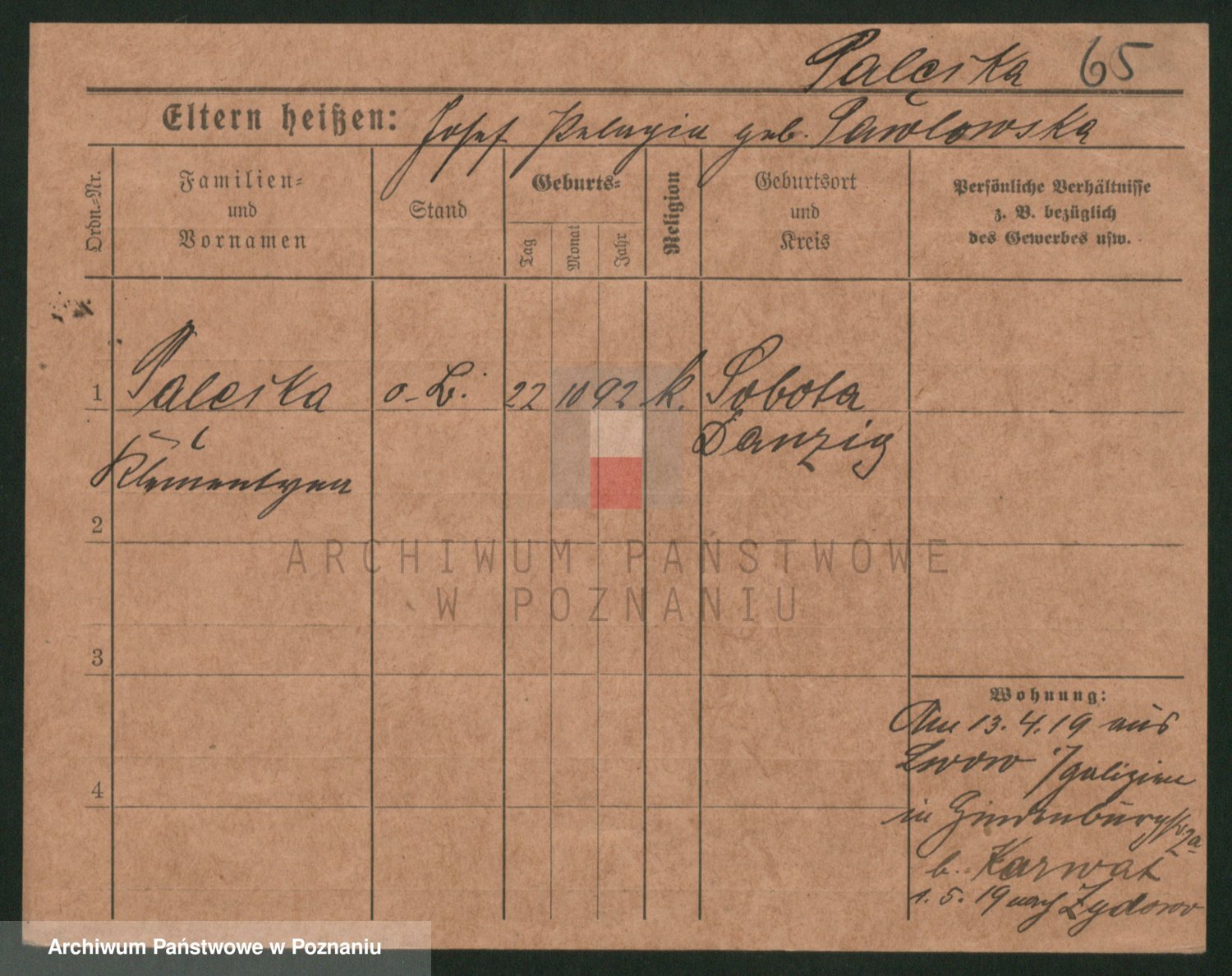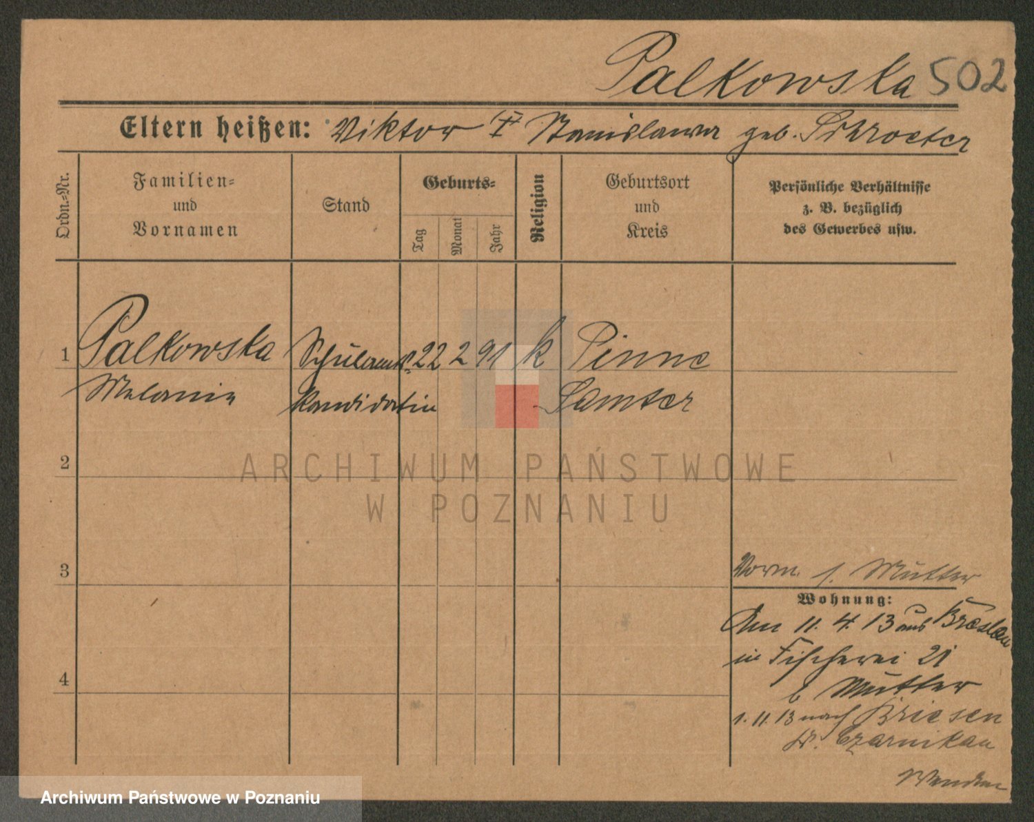 Palendzka z.d. Pankowska, Salomea