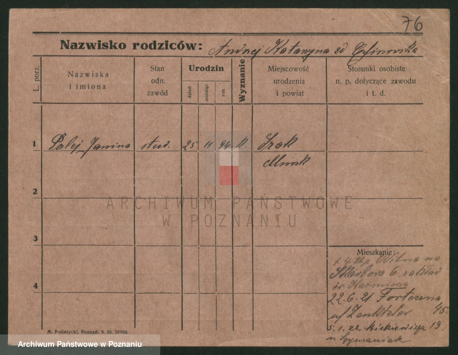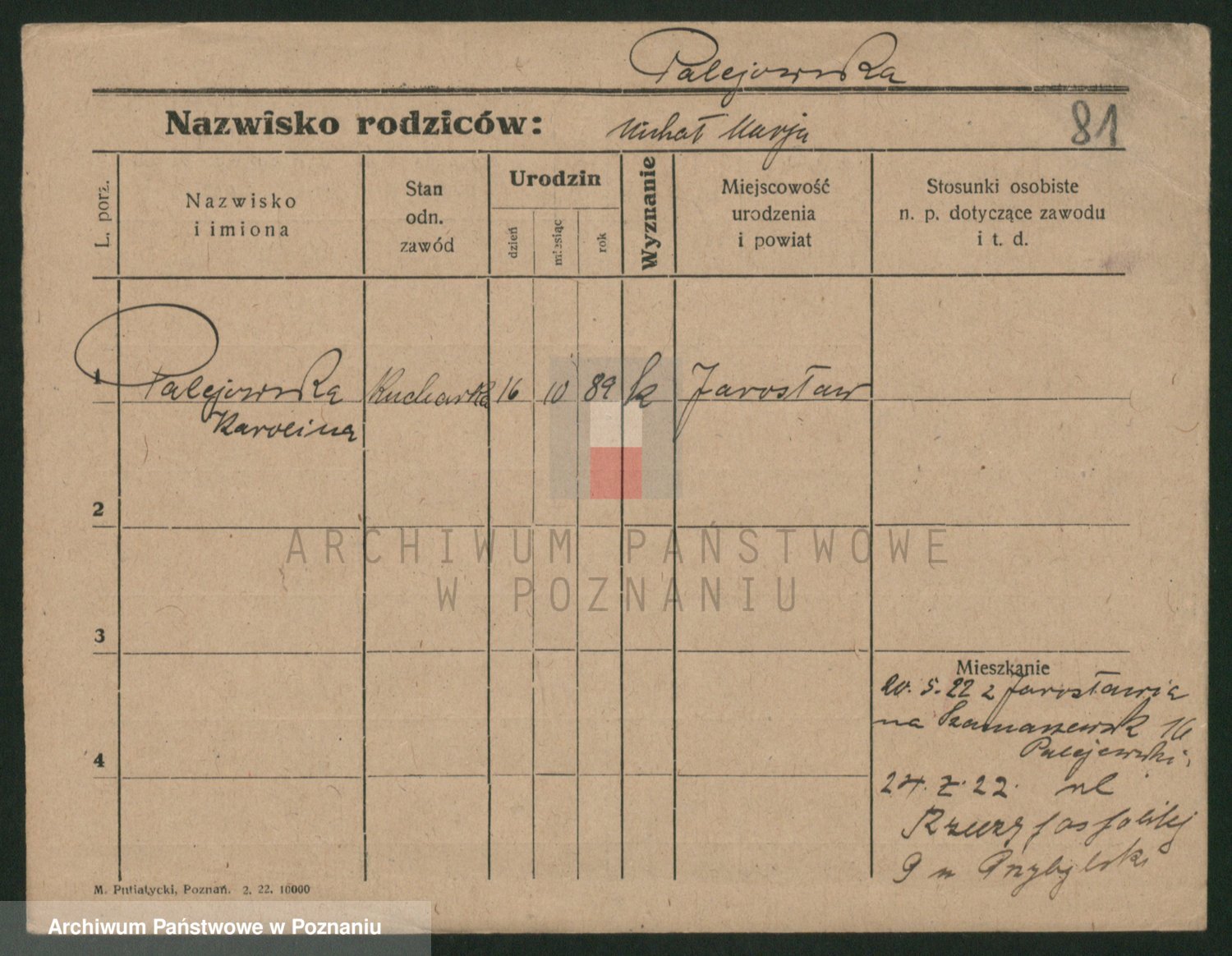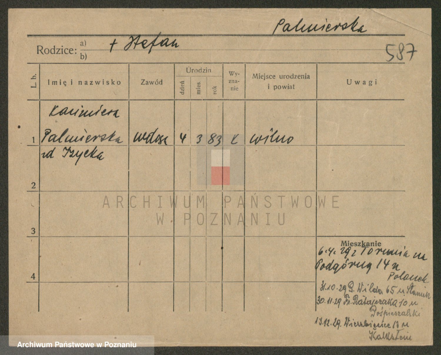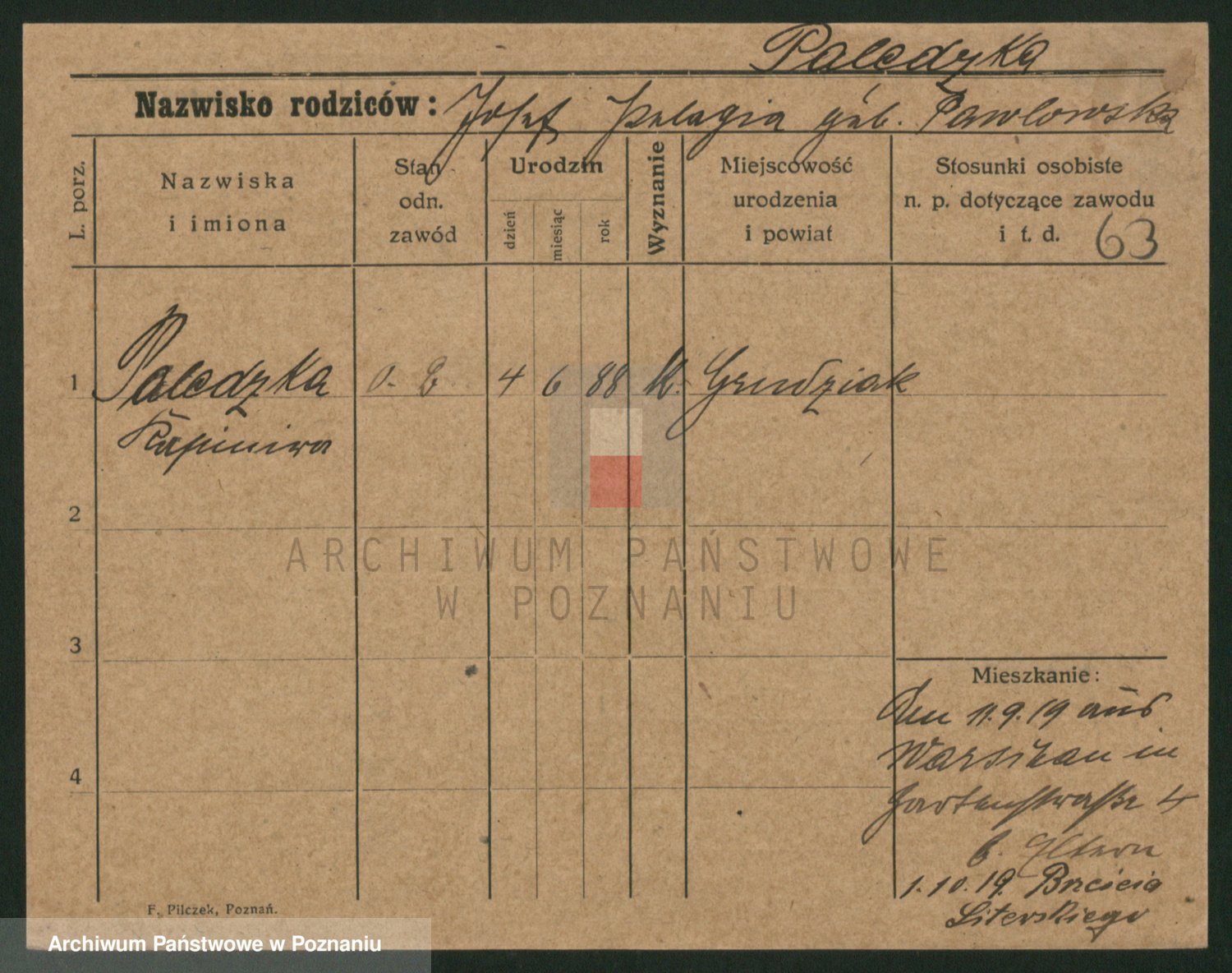 Palędzki z.d. Czapska, Marja