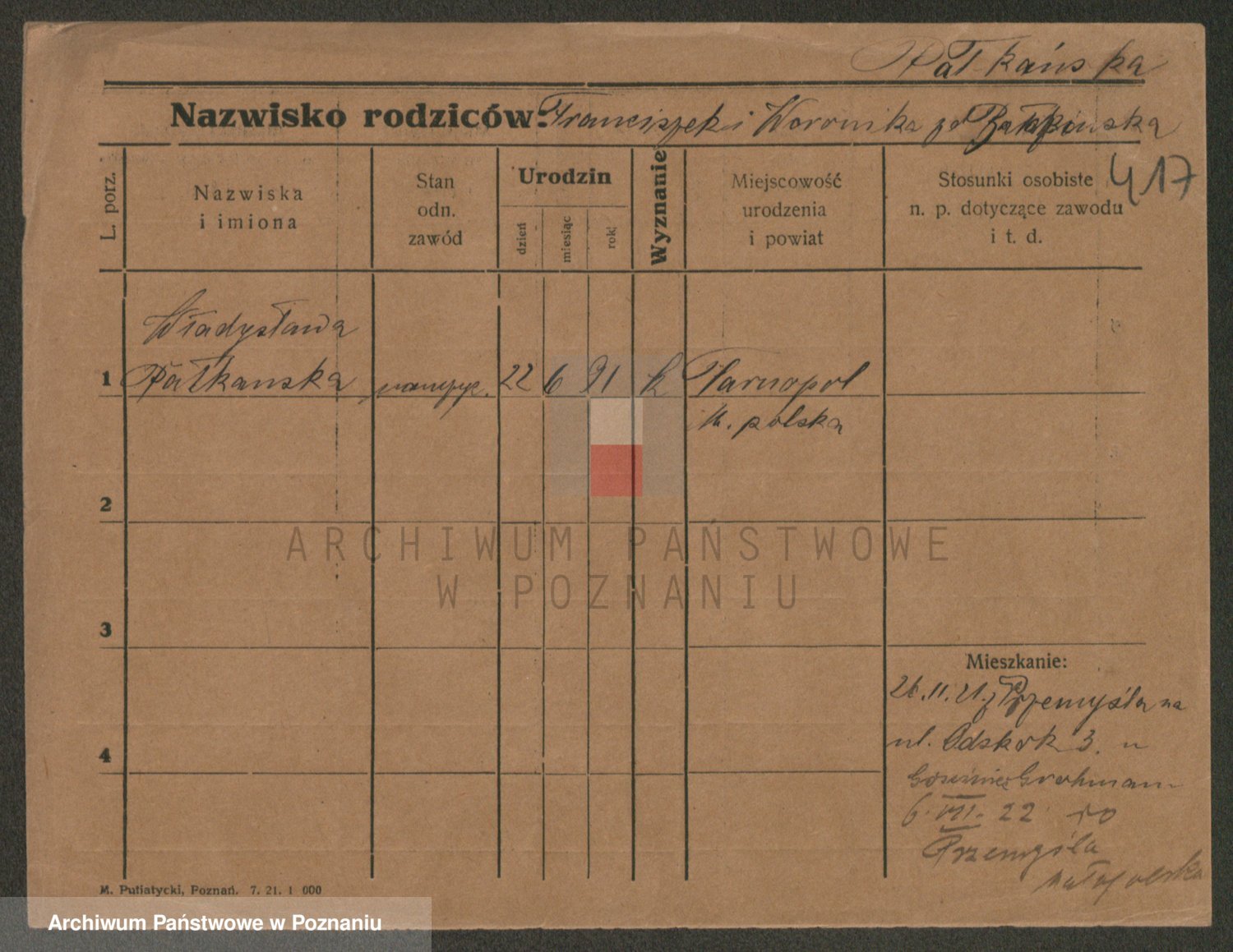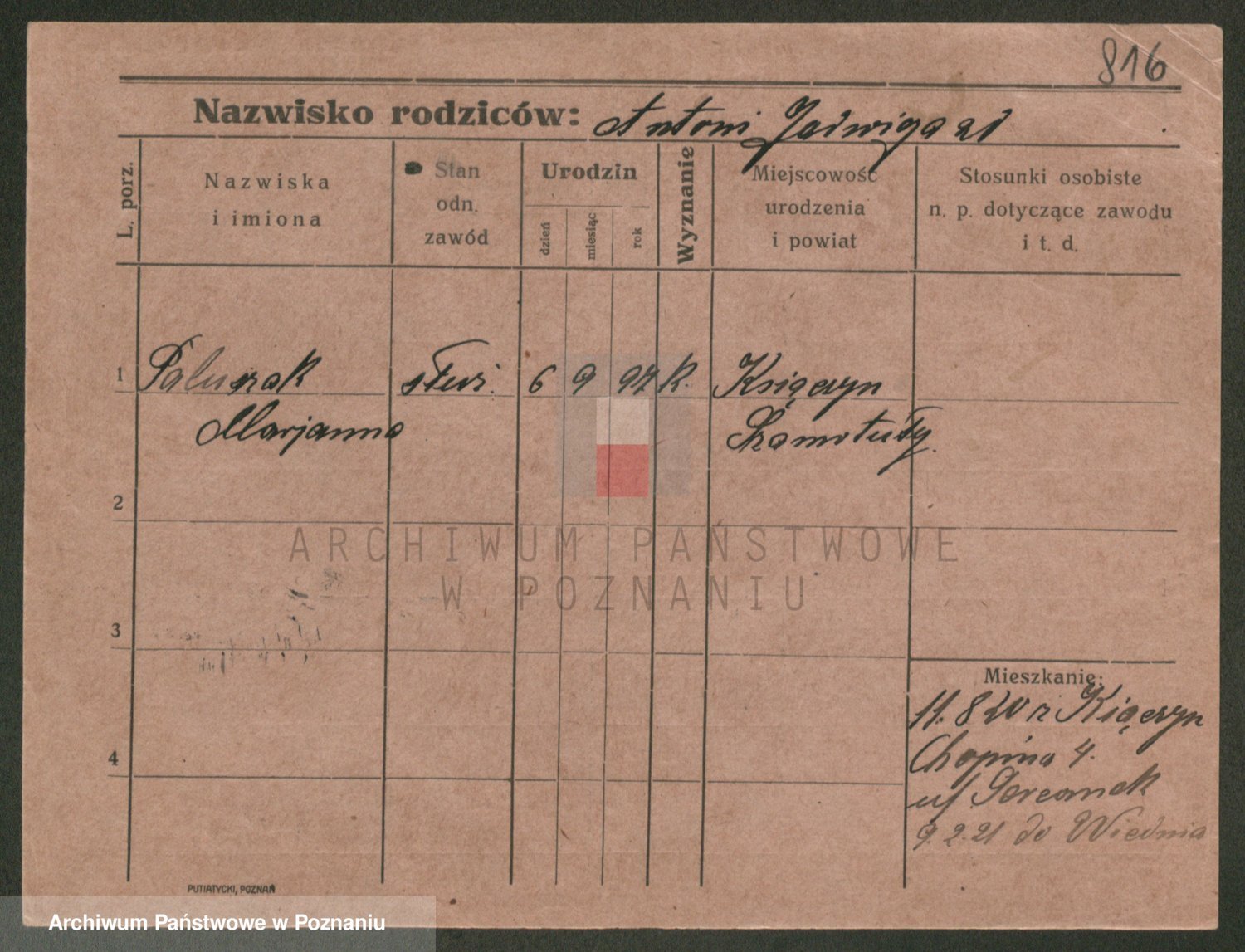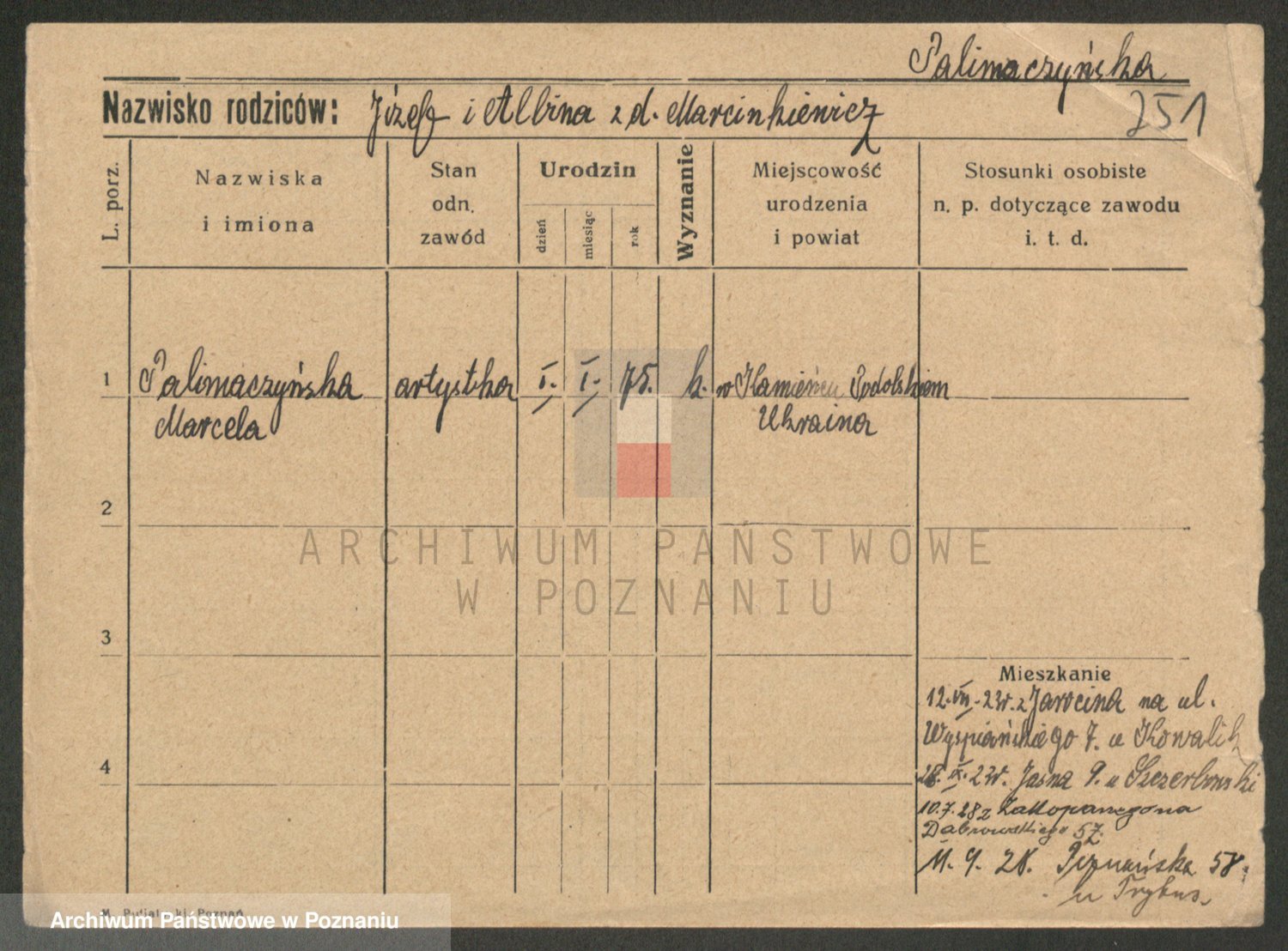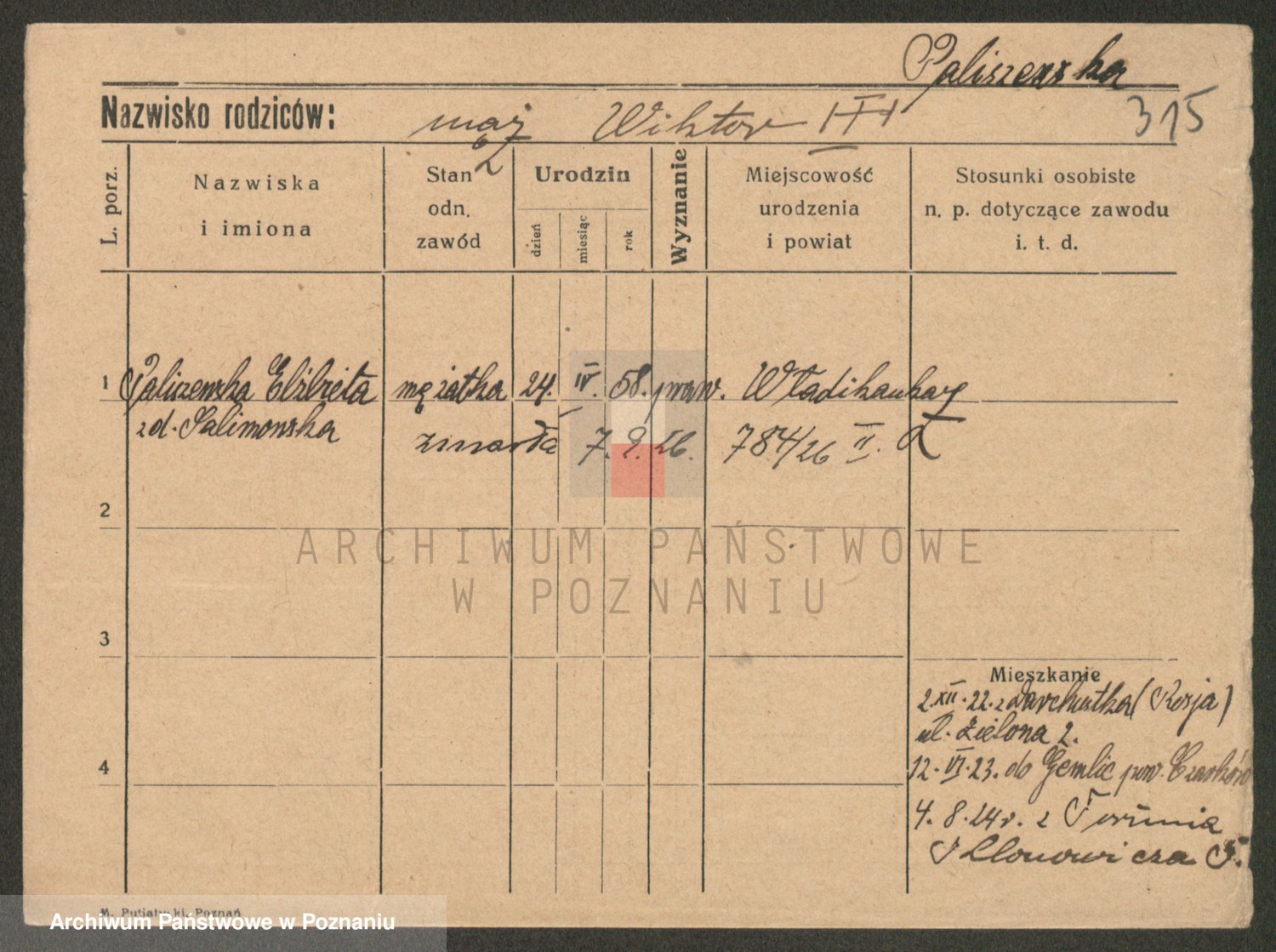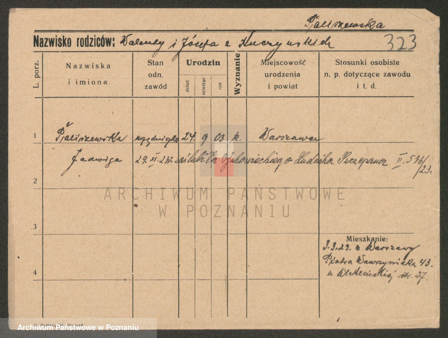 Palędzki z.d. Czapska, Marja