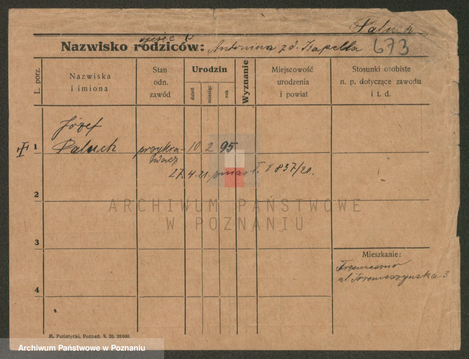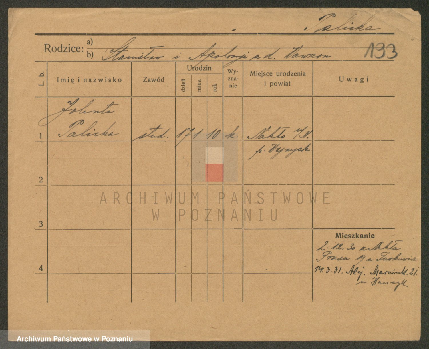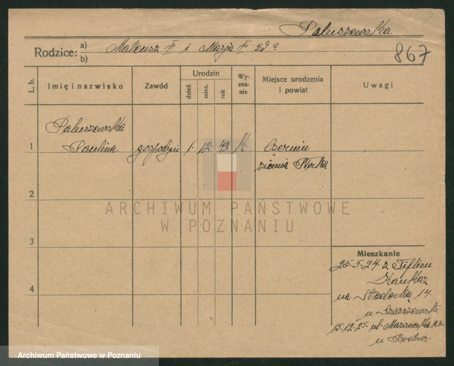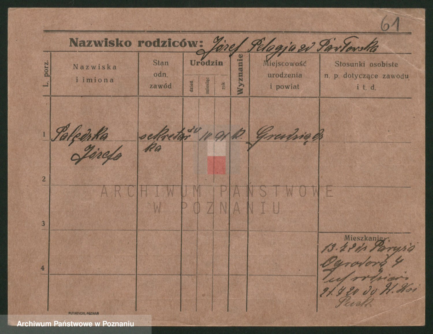Palędzki z.d. Czapska, Marja