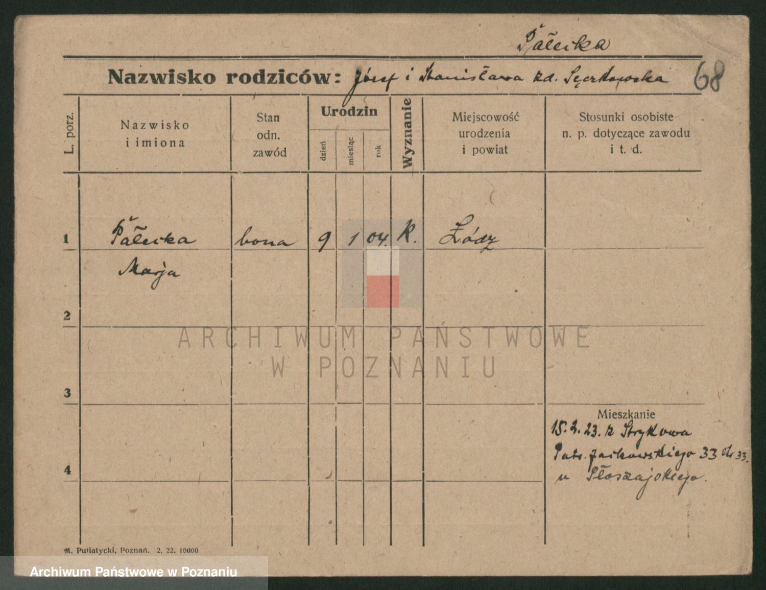 Paluszczak z.d. Nowak, Stanislawa