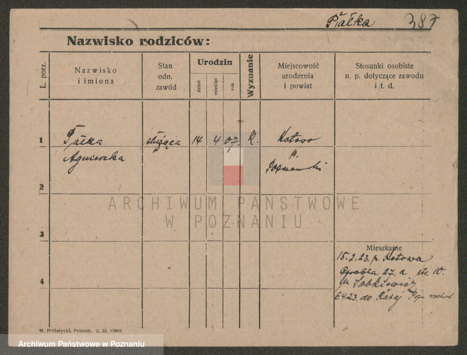Pałecka, Franciszka