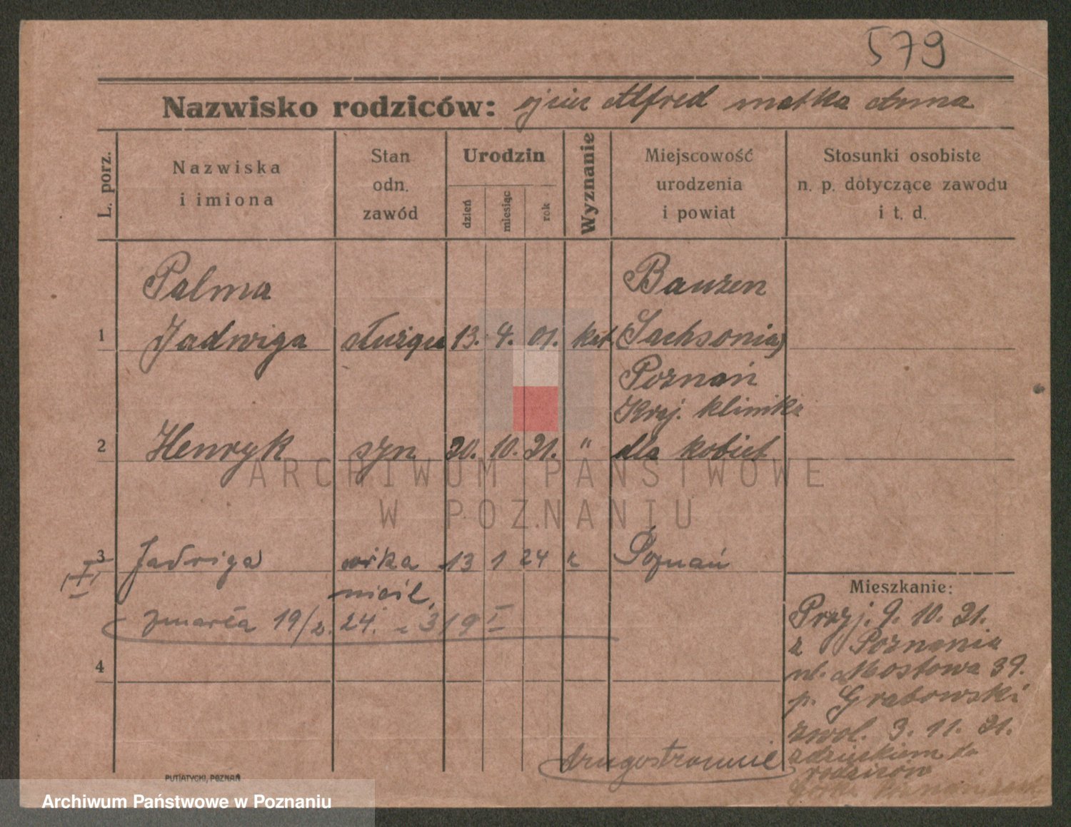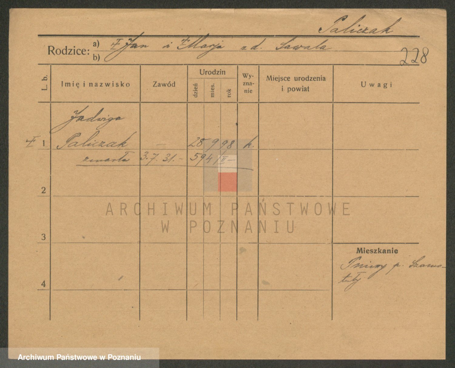 Paluszczak z.d. Gadzinska, Hedwig