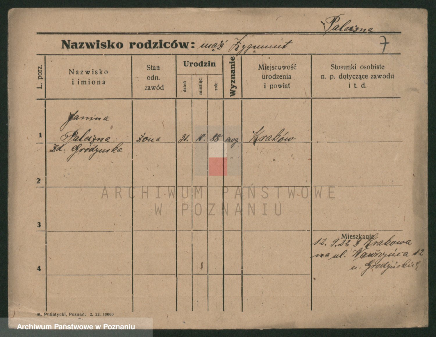 Paleczna z.d. Grodynska, Janina