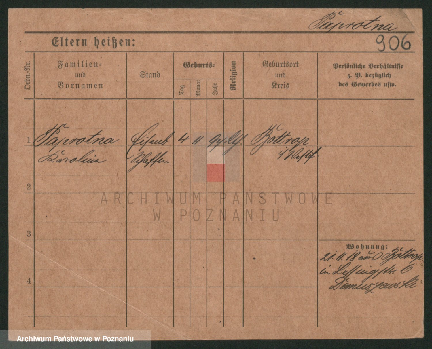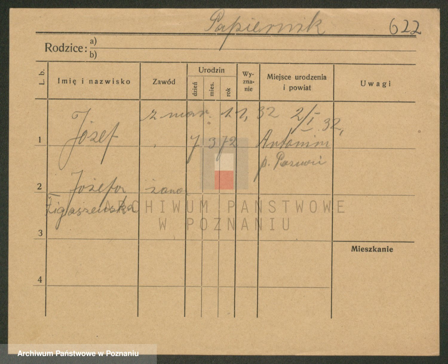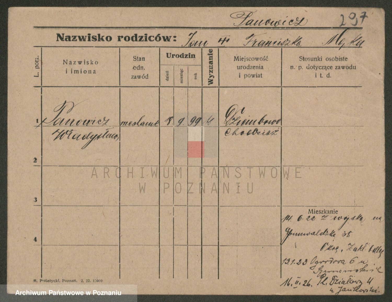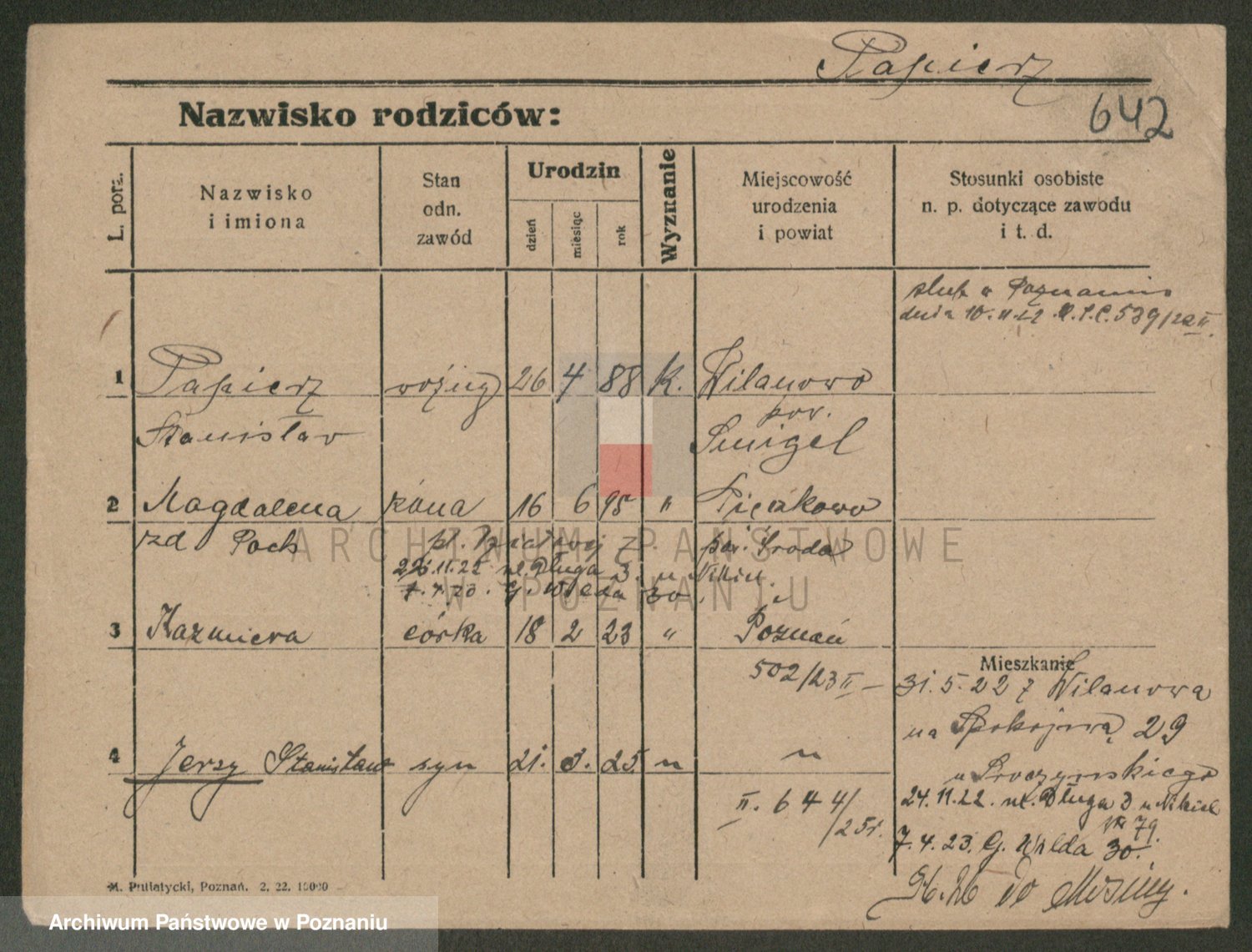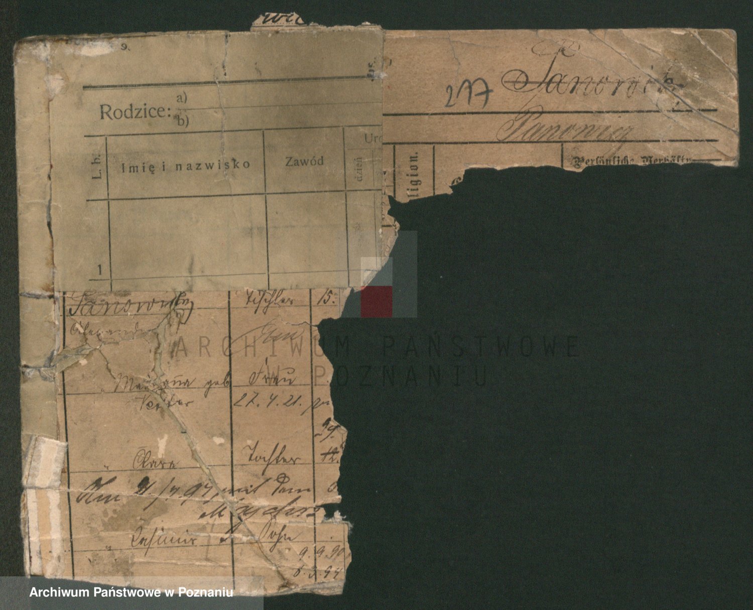 Podgląd karty osobowej dostępny jest po kliknięciu na nazwisko lub ikonkę karty. Można dokonywać powiększenia (ikony na górze) lub przechodzić między kolejnymi skanami (strzałki po bokach).