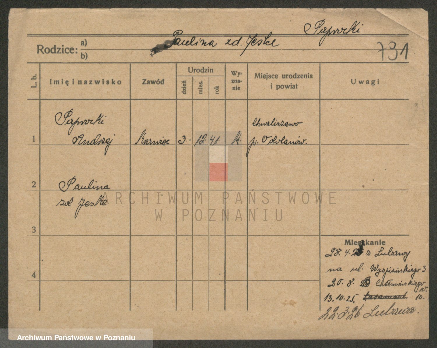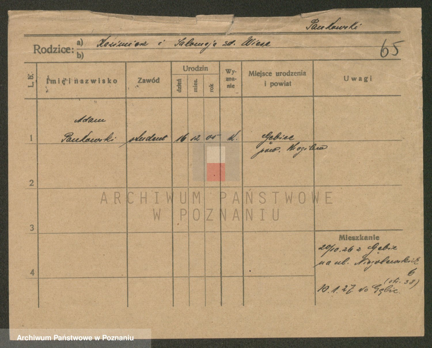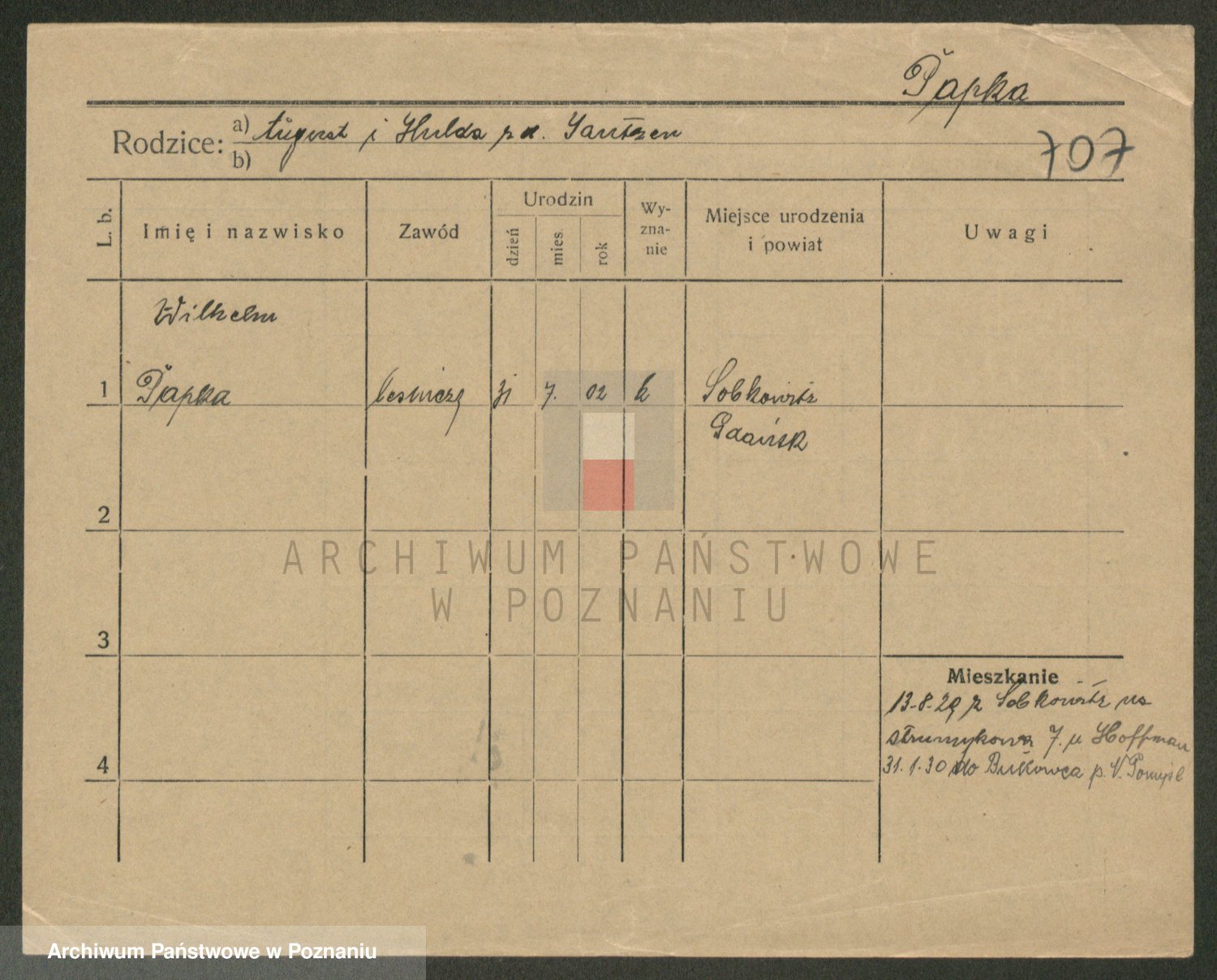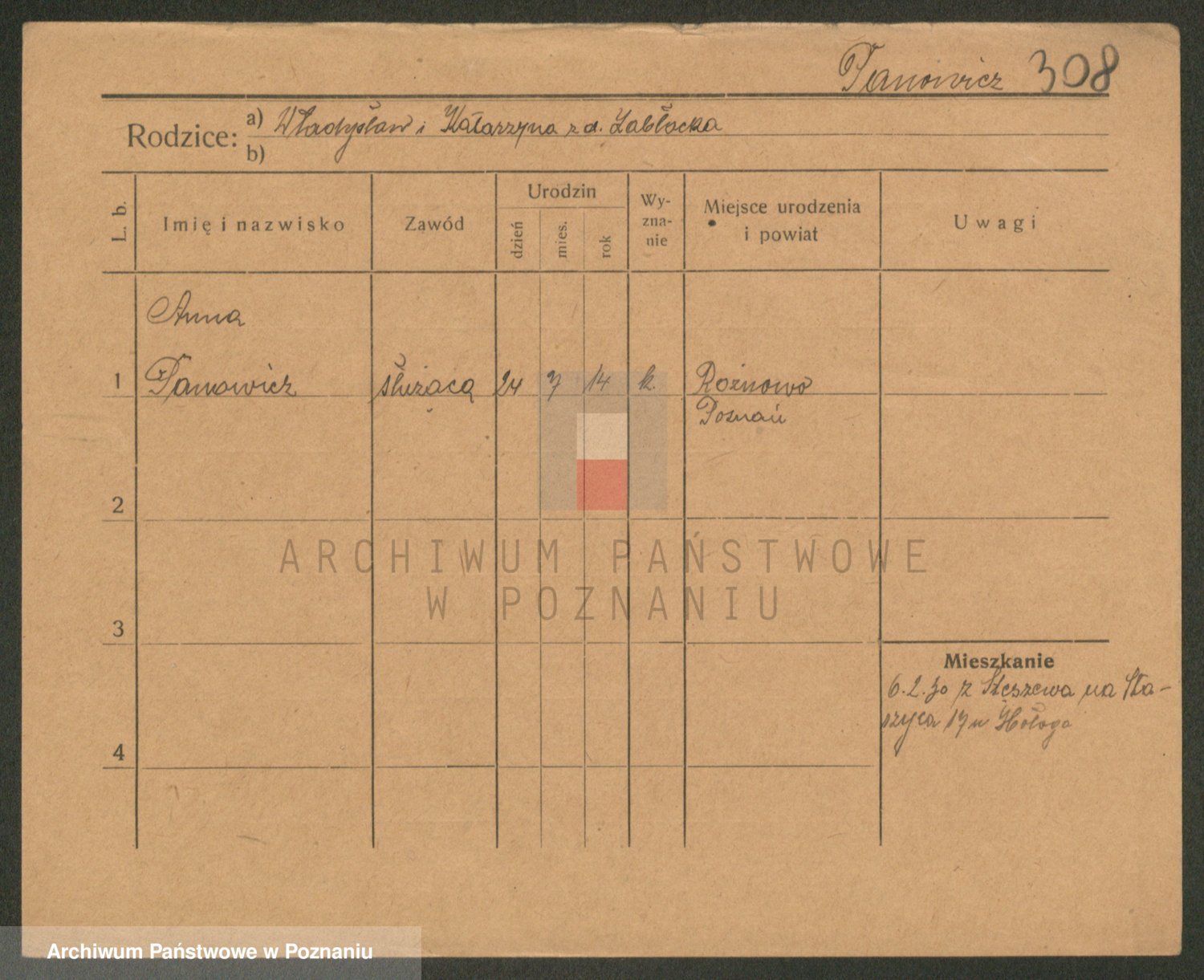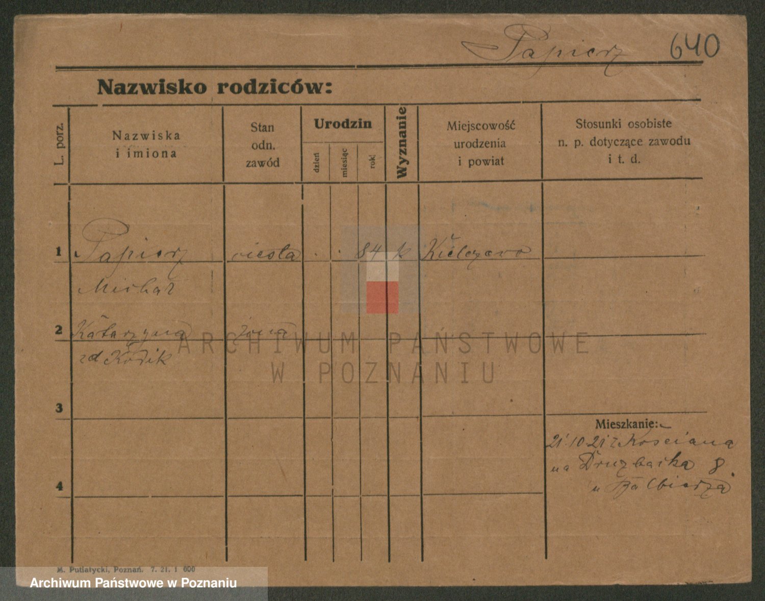 Podgląd karty osobowej dostępny jest po kliknięciu na nazwisko lub ikonkę karty. Można dokonywać powiększenia (ikony na górze) lub przechodzić między kolejnymi skanami (strzałki po bokach).