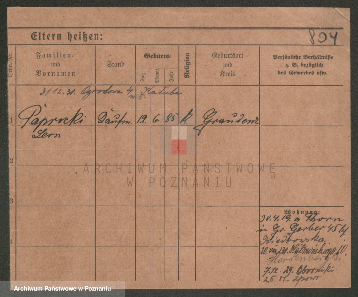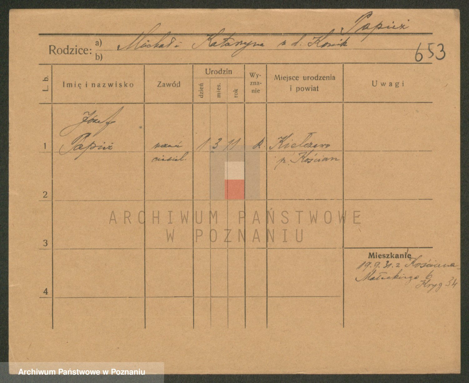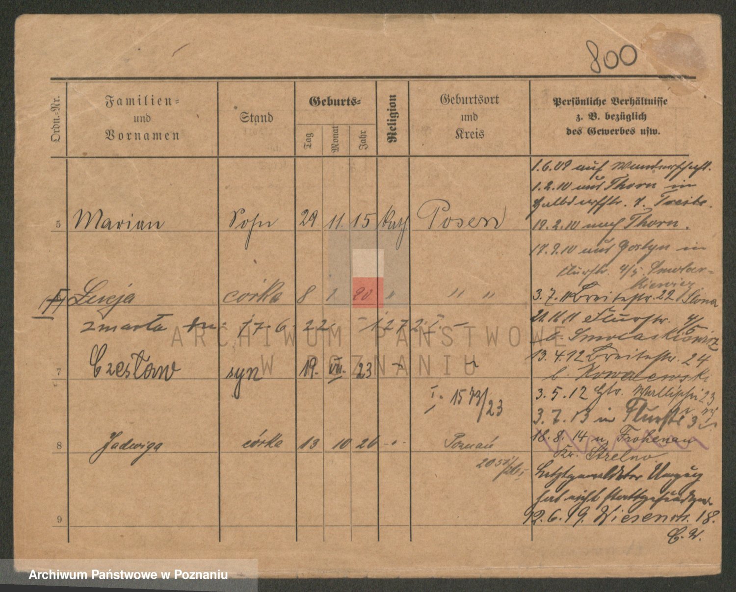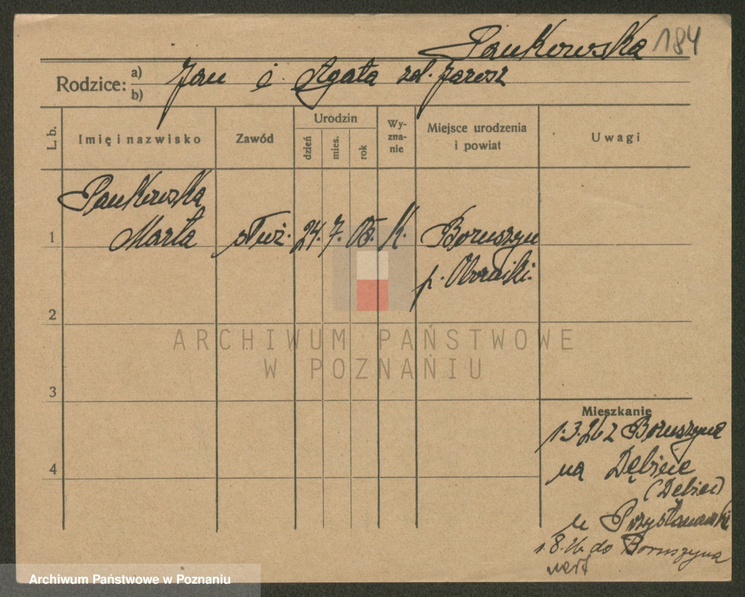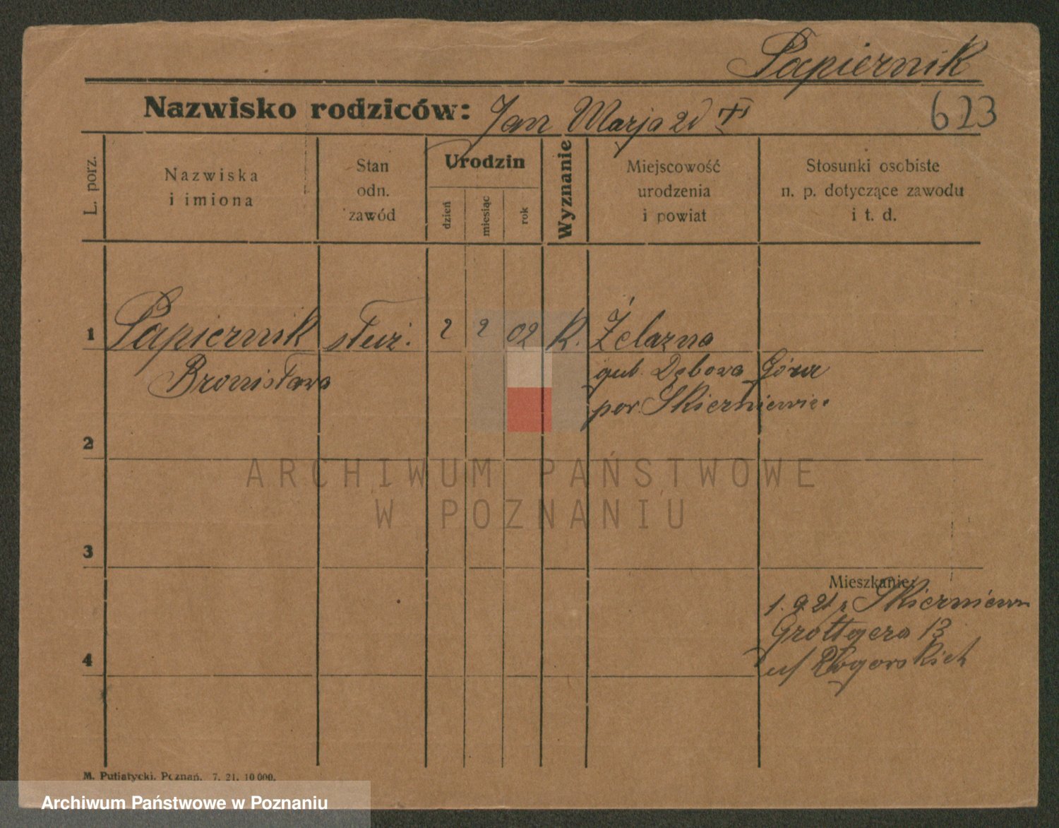Podgląd karty osobowej dostępny jest po kliknięciu na nazwisko lub ikonkę karty. Można dokonywać powiększenia (ikony na górze) lub przechodzić między kolejnymi skanami (strzałki po bokach).
