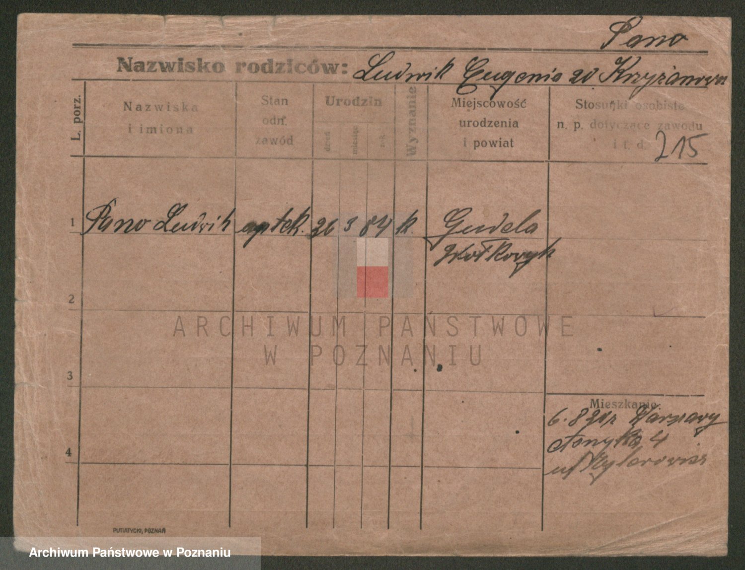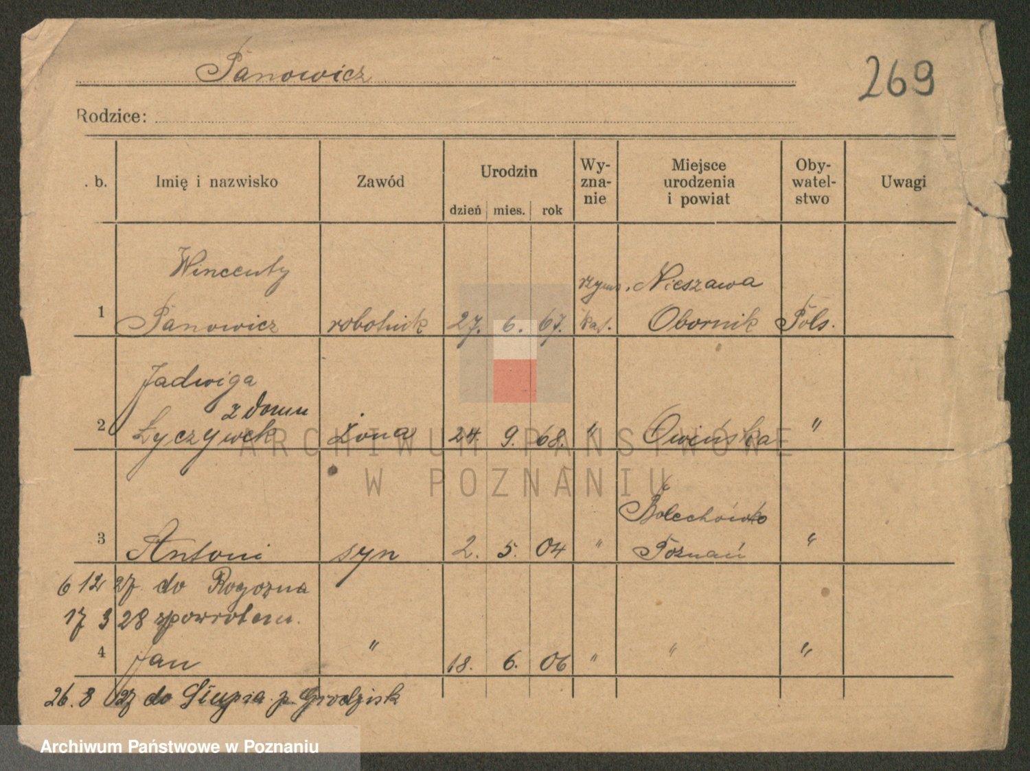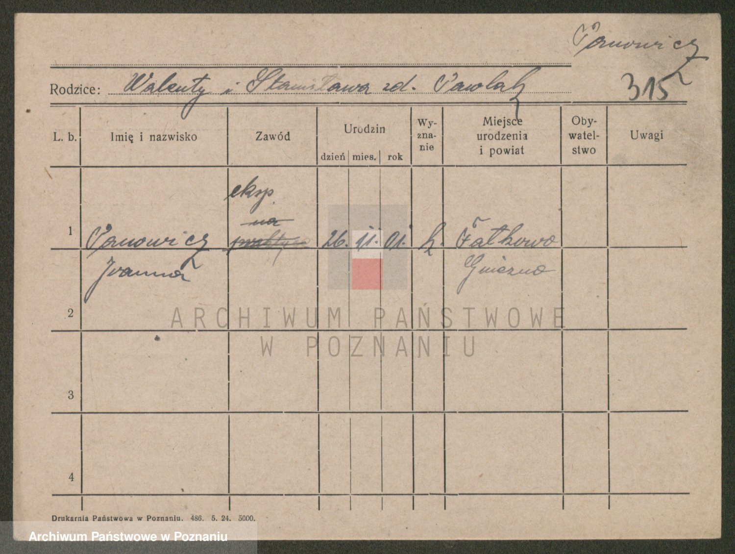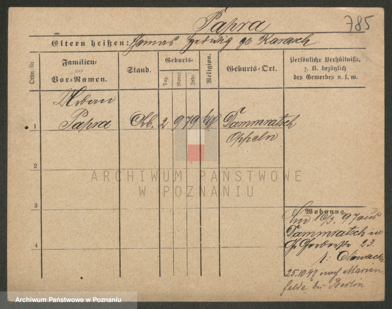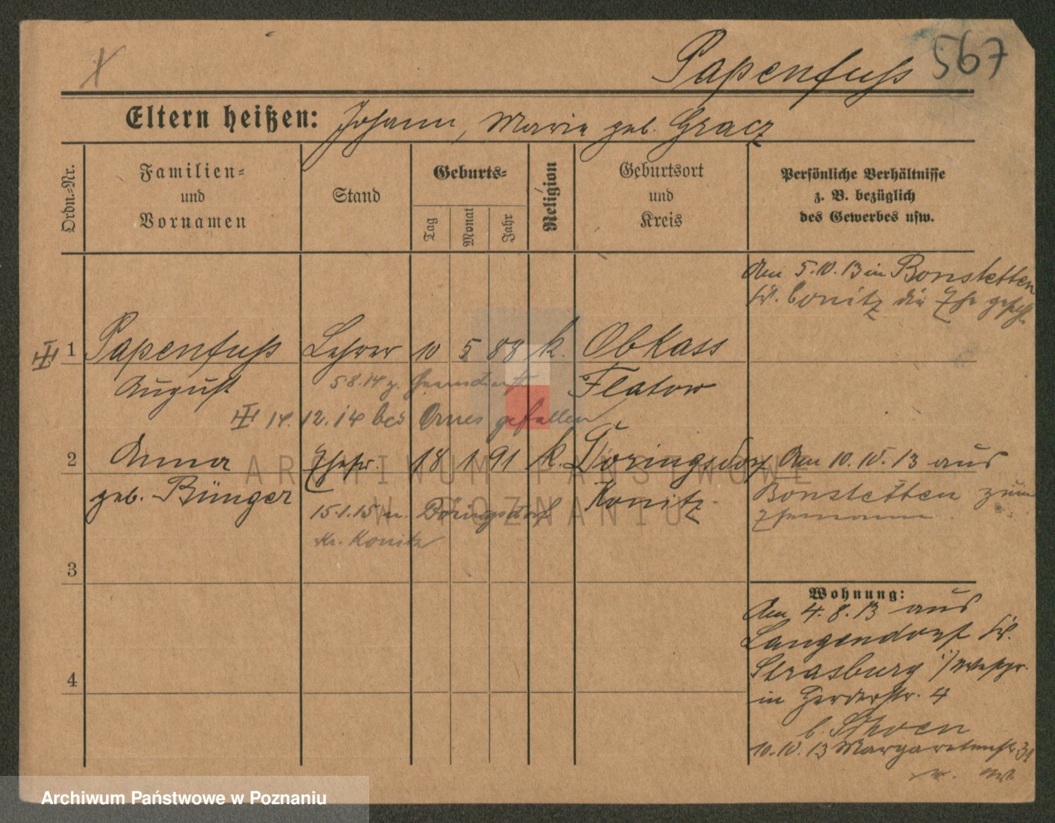 Podgląd karty osobowej dostępny jest po kliknięciu na nazwisko lub ikonkę karty. Można dokonywać powiększenia (ikony na górze) lub przechodzić między kolejnymi skanami (strzałki po bokach).