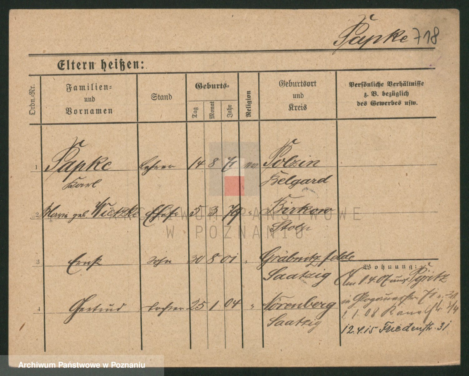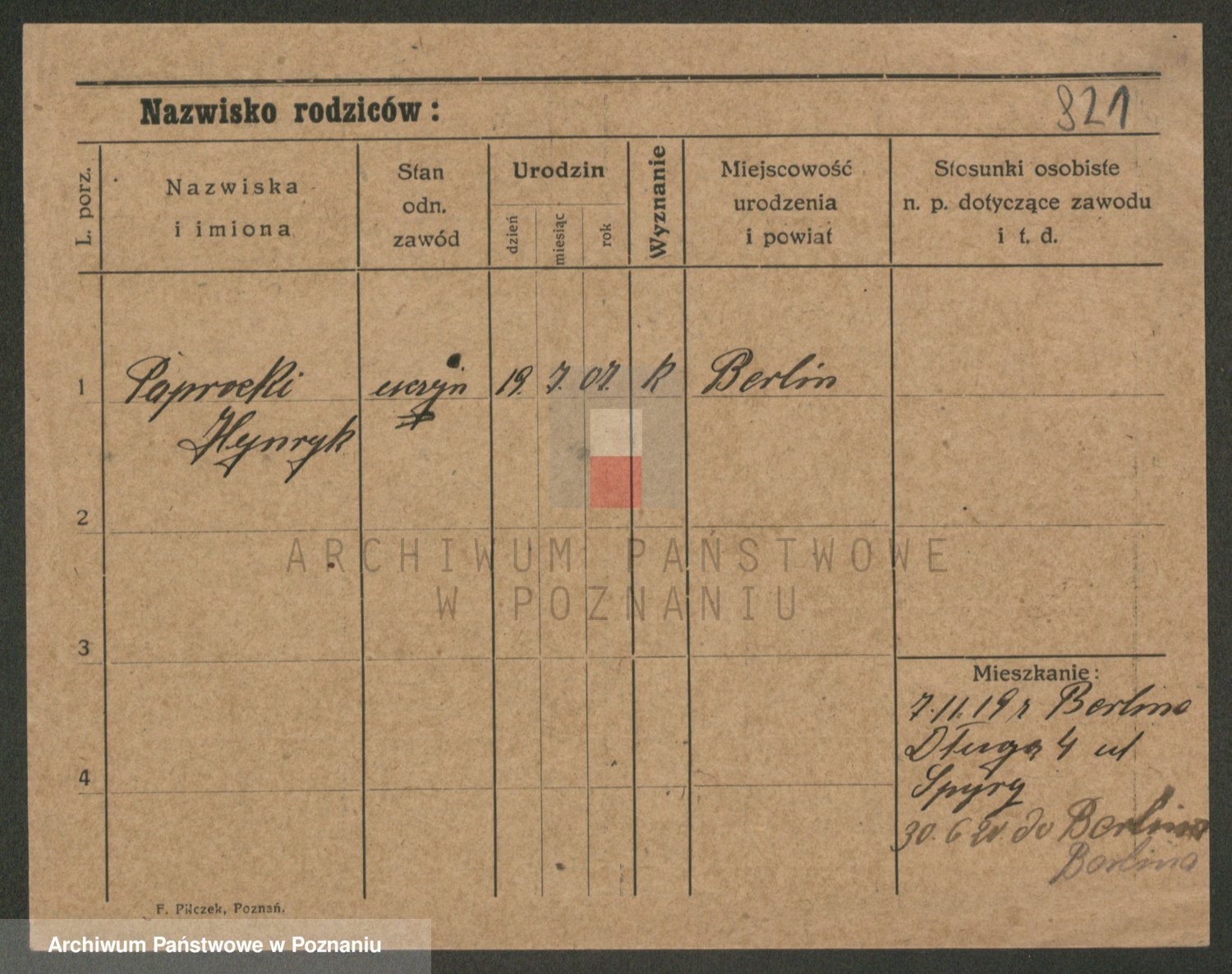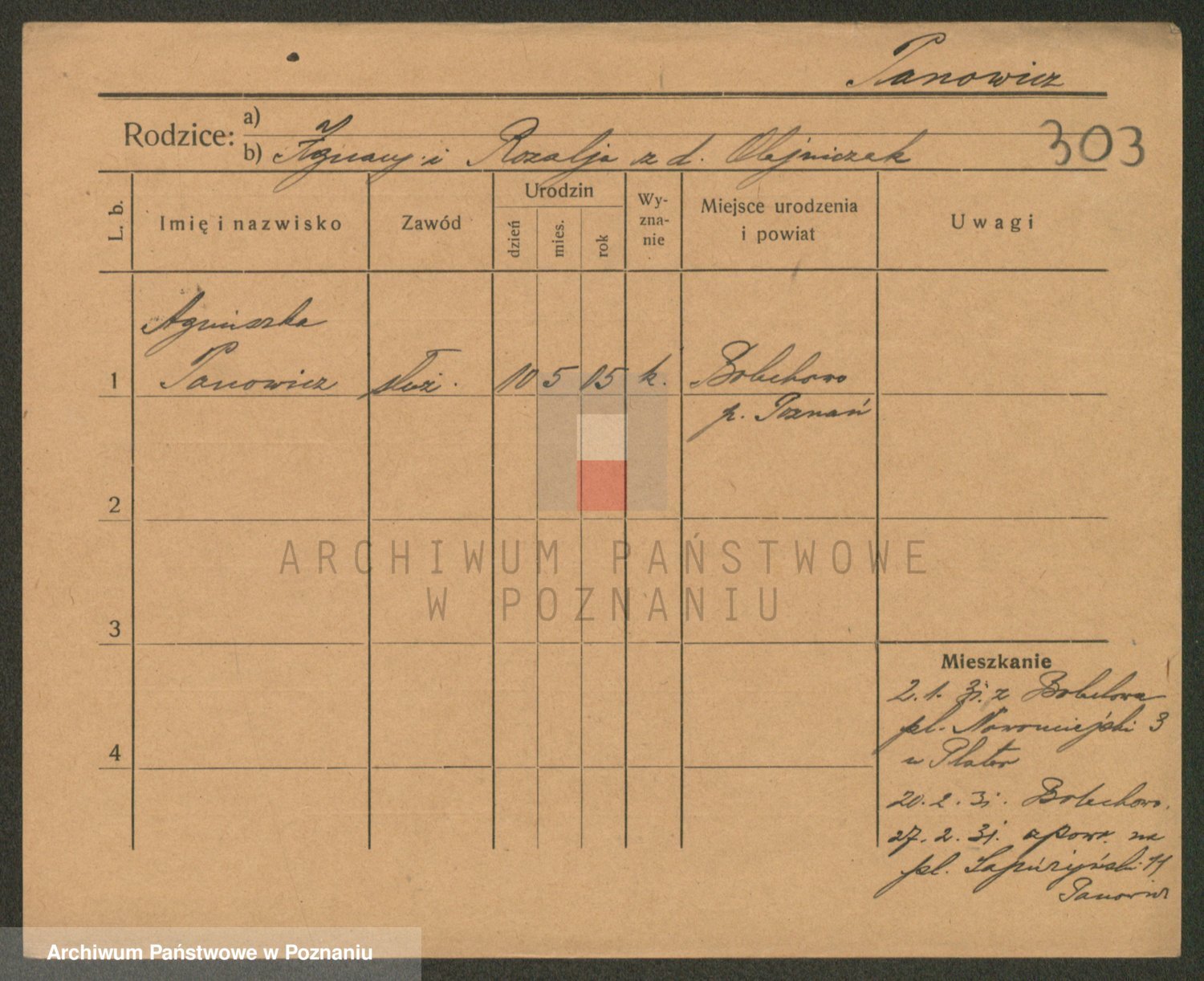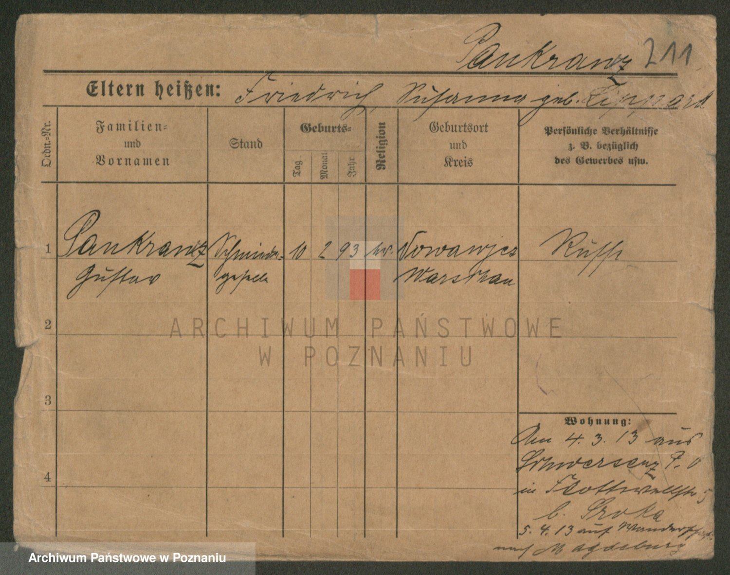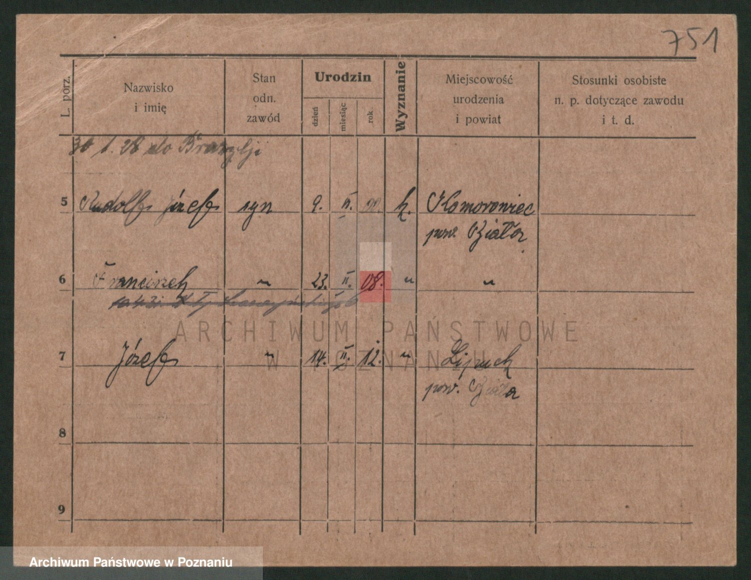 Podgląd karty osobowej dostępny jest po kliknięciu na nazwisko lub ikonkę karty. Można dokonywać powiększenia (ikony na górze) lub przechodzić między kolejnymi skanami (strzałki po bokach).