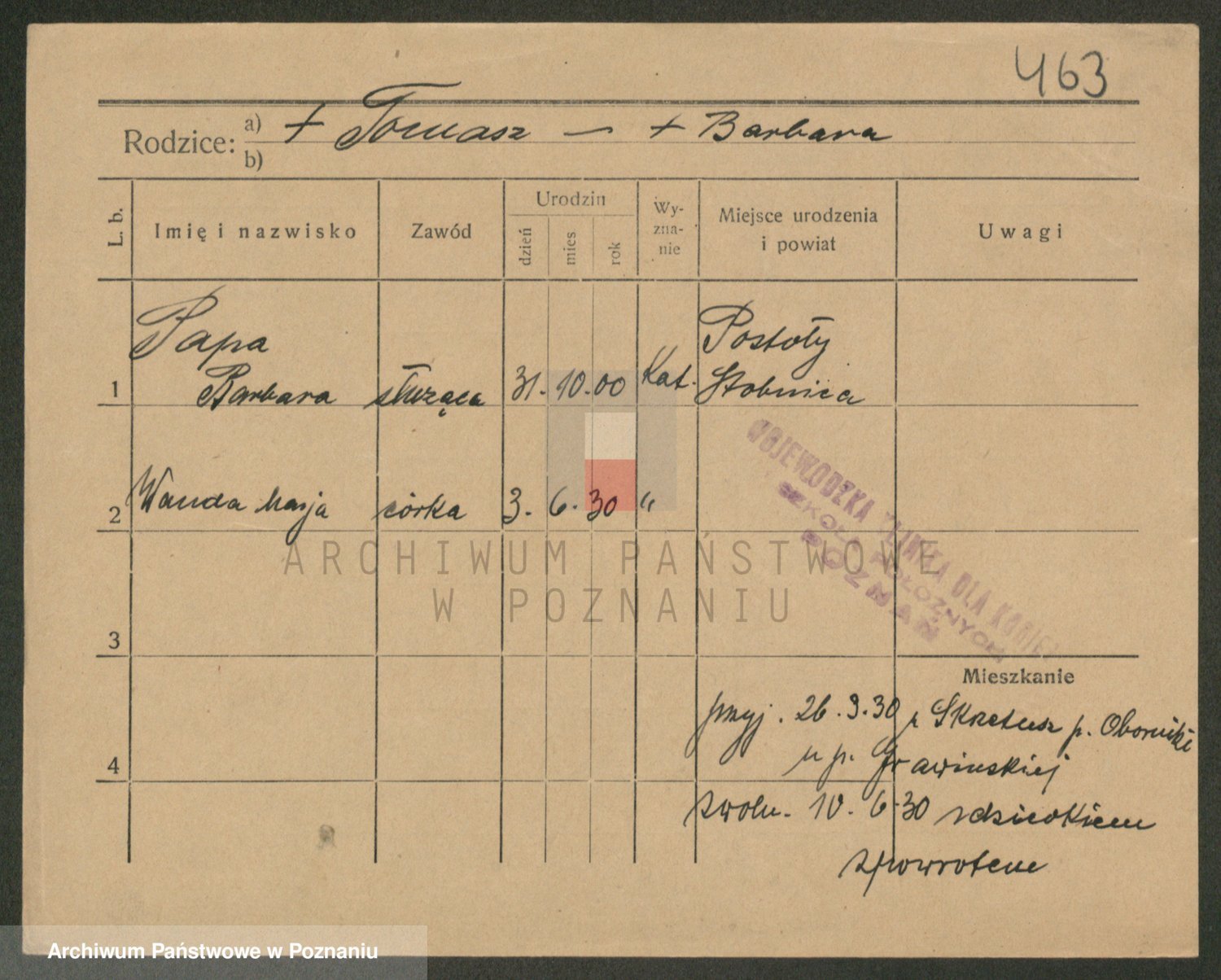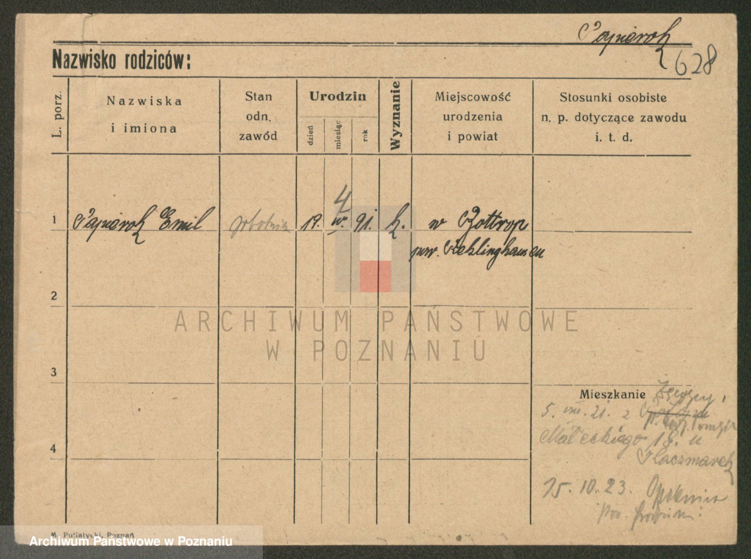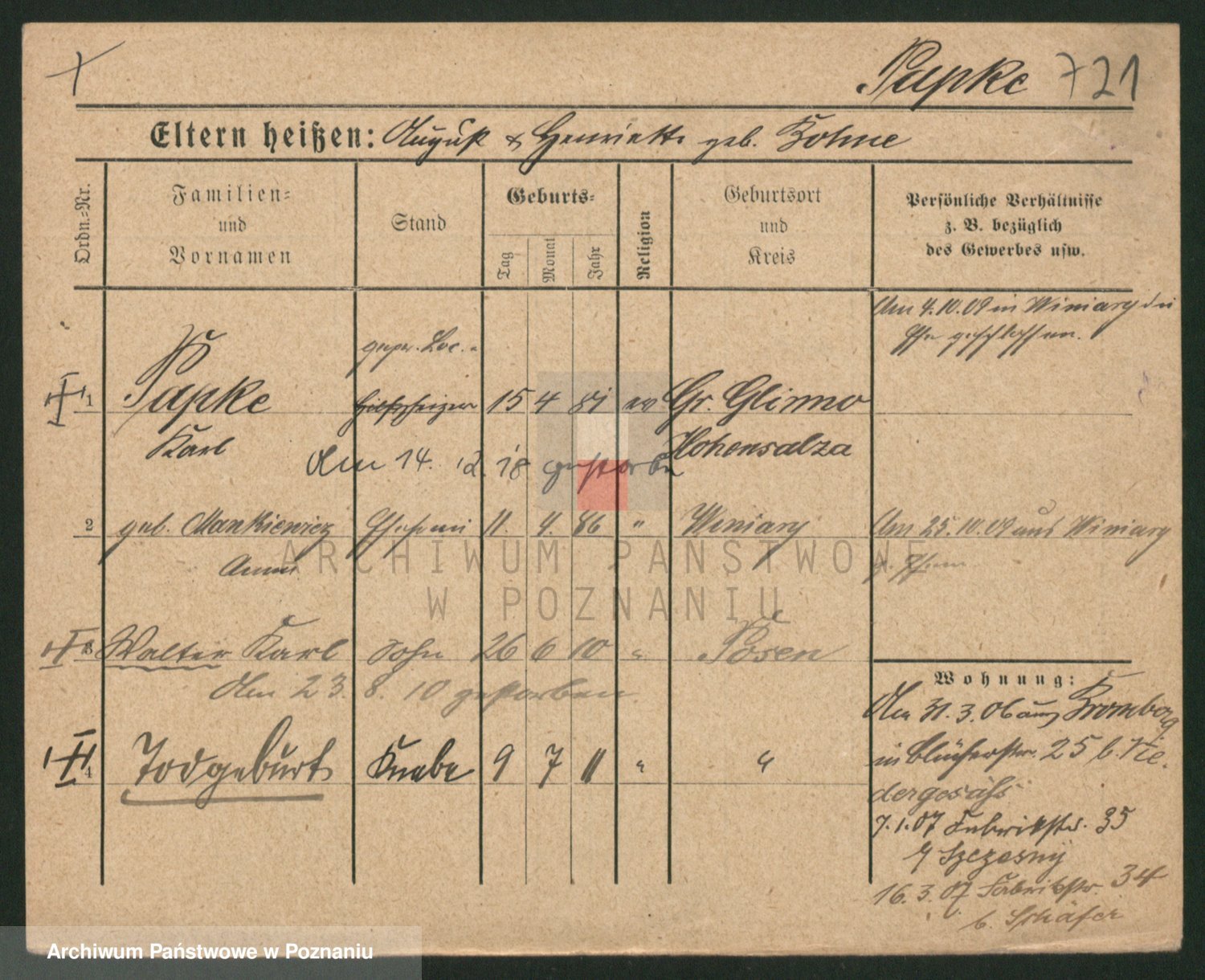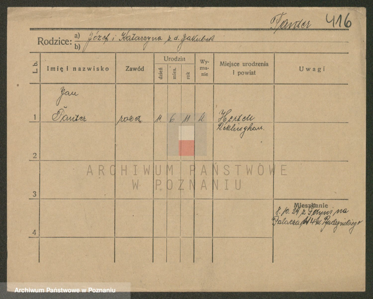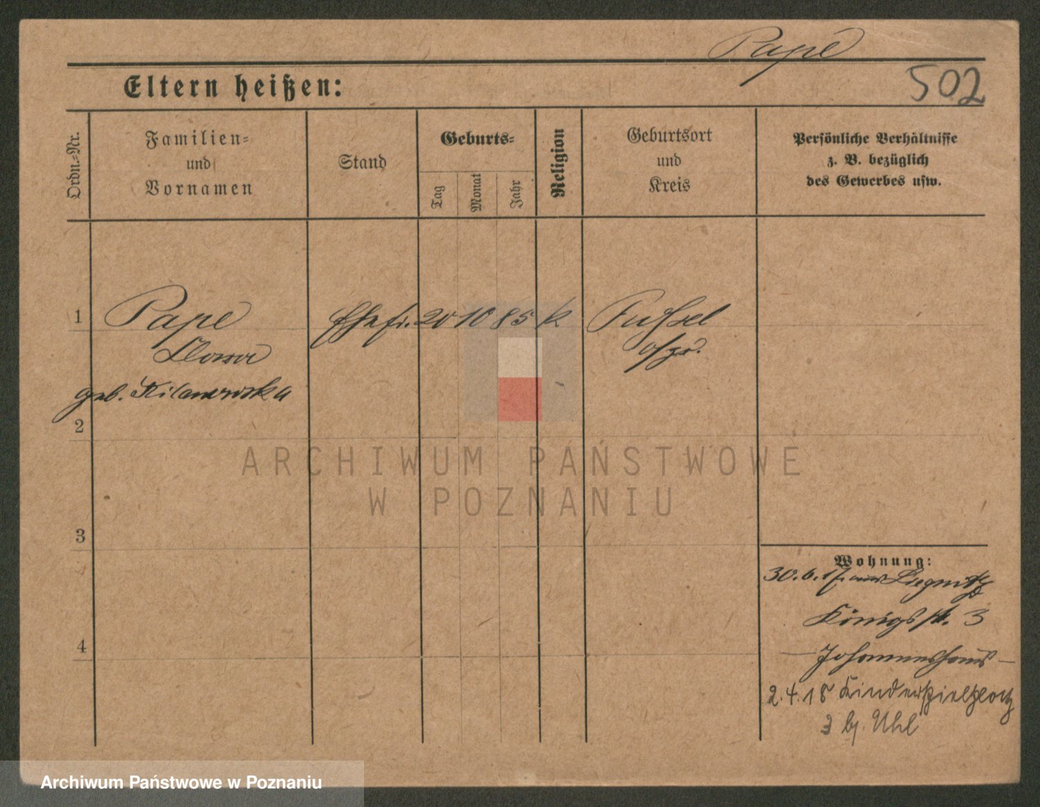 Podgląd karty osobowej dostępny jest po kliknięciu na nazwisko lub ikonkę karty. Można dokonywać powiększenia (ikony na górze) lub przechodzić między kolejnymi skanami (strzałki po bokach).