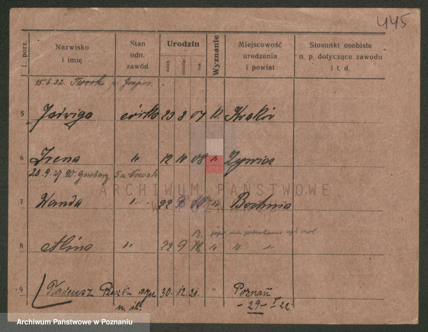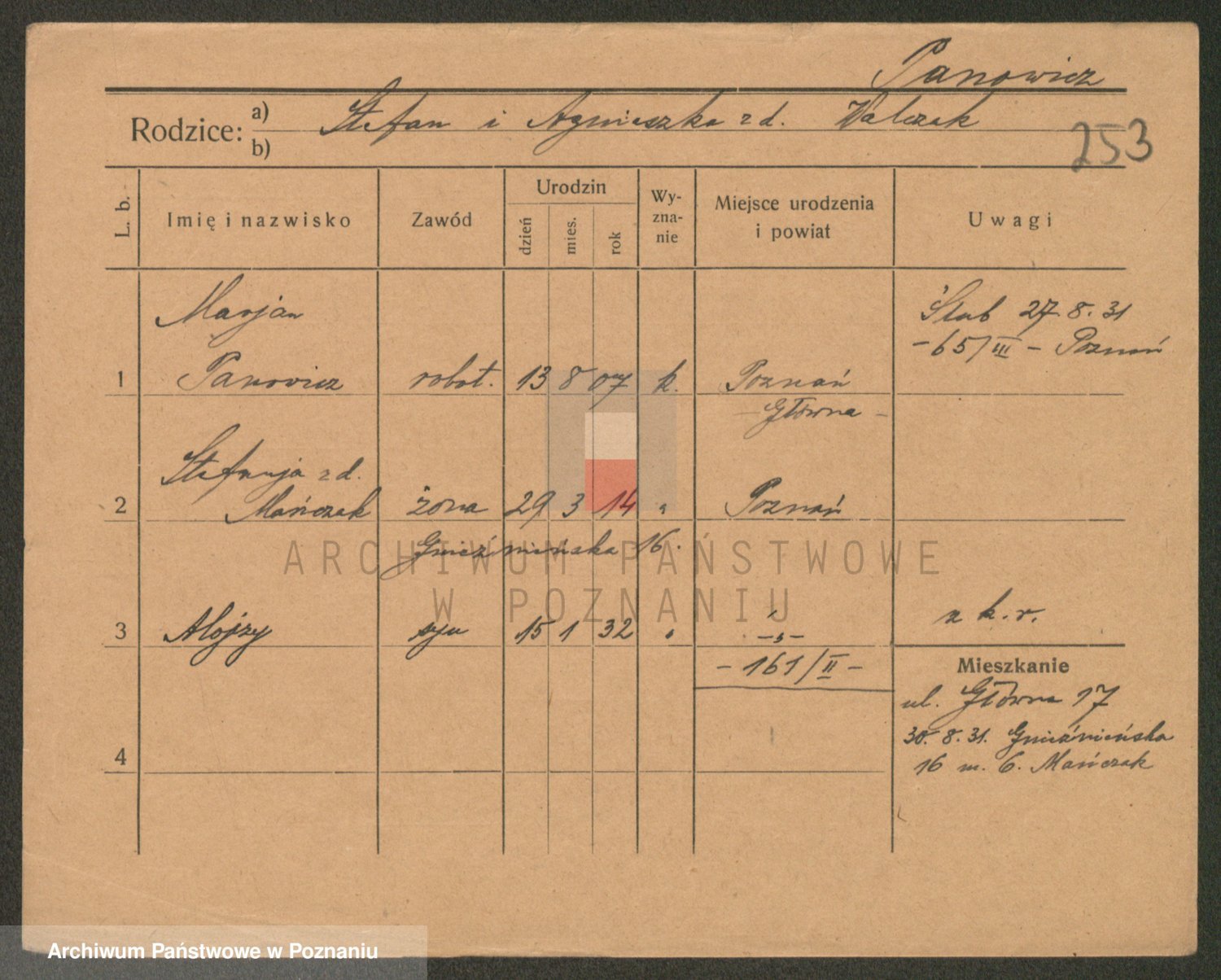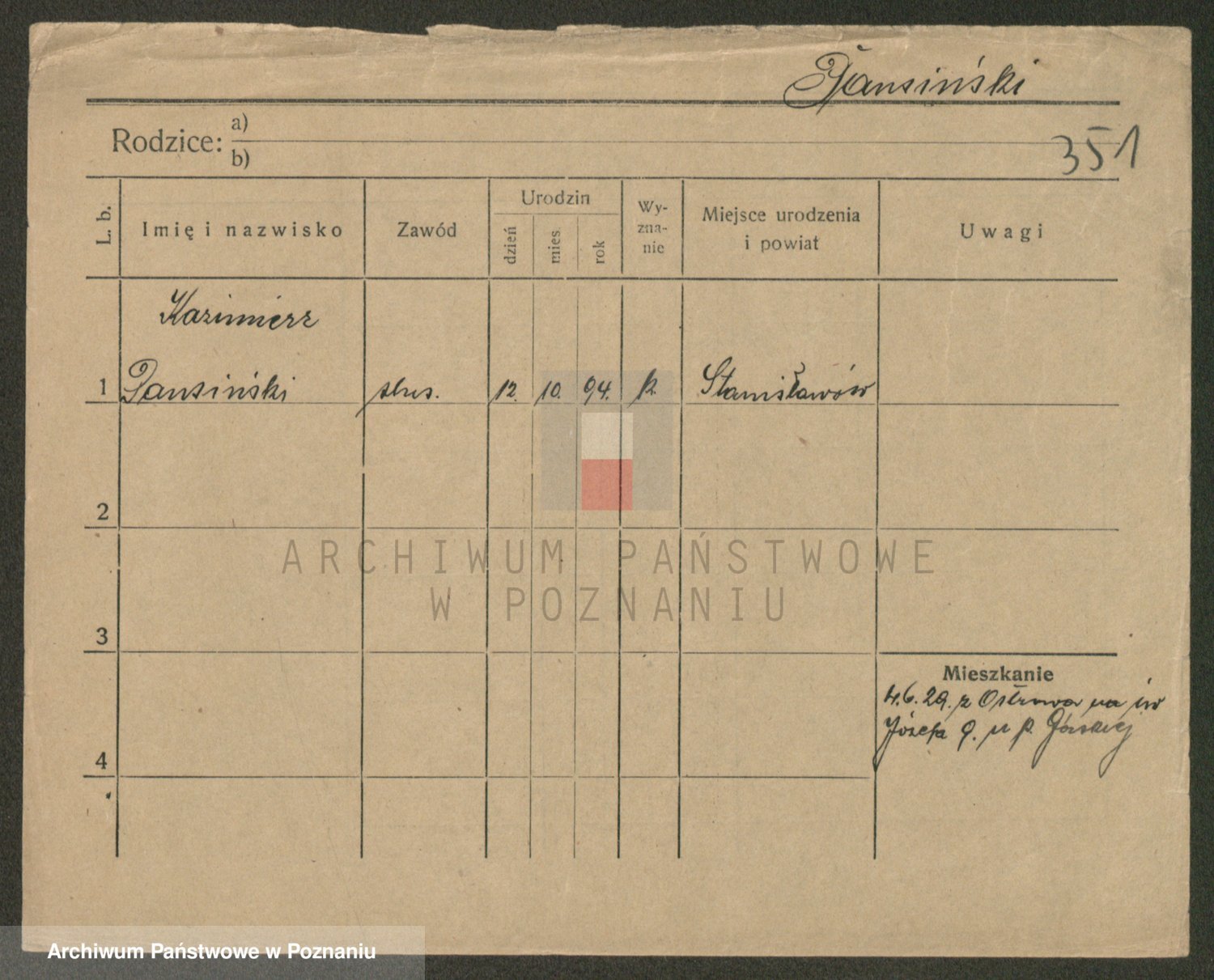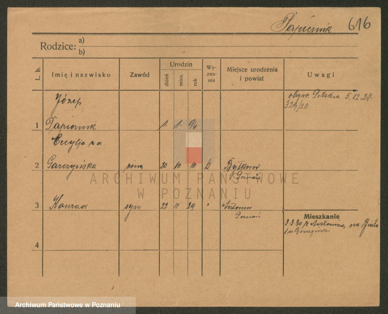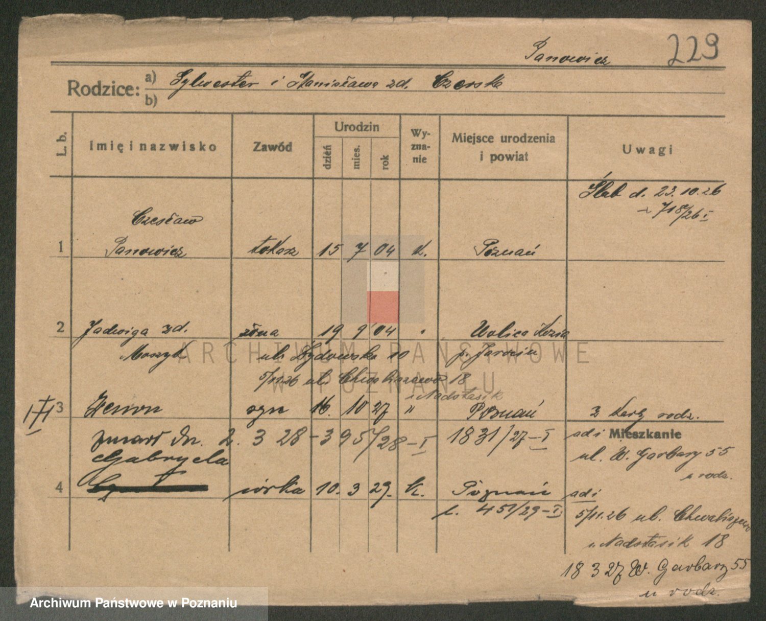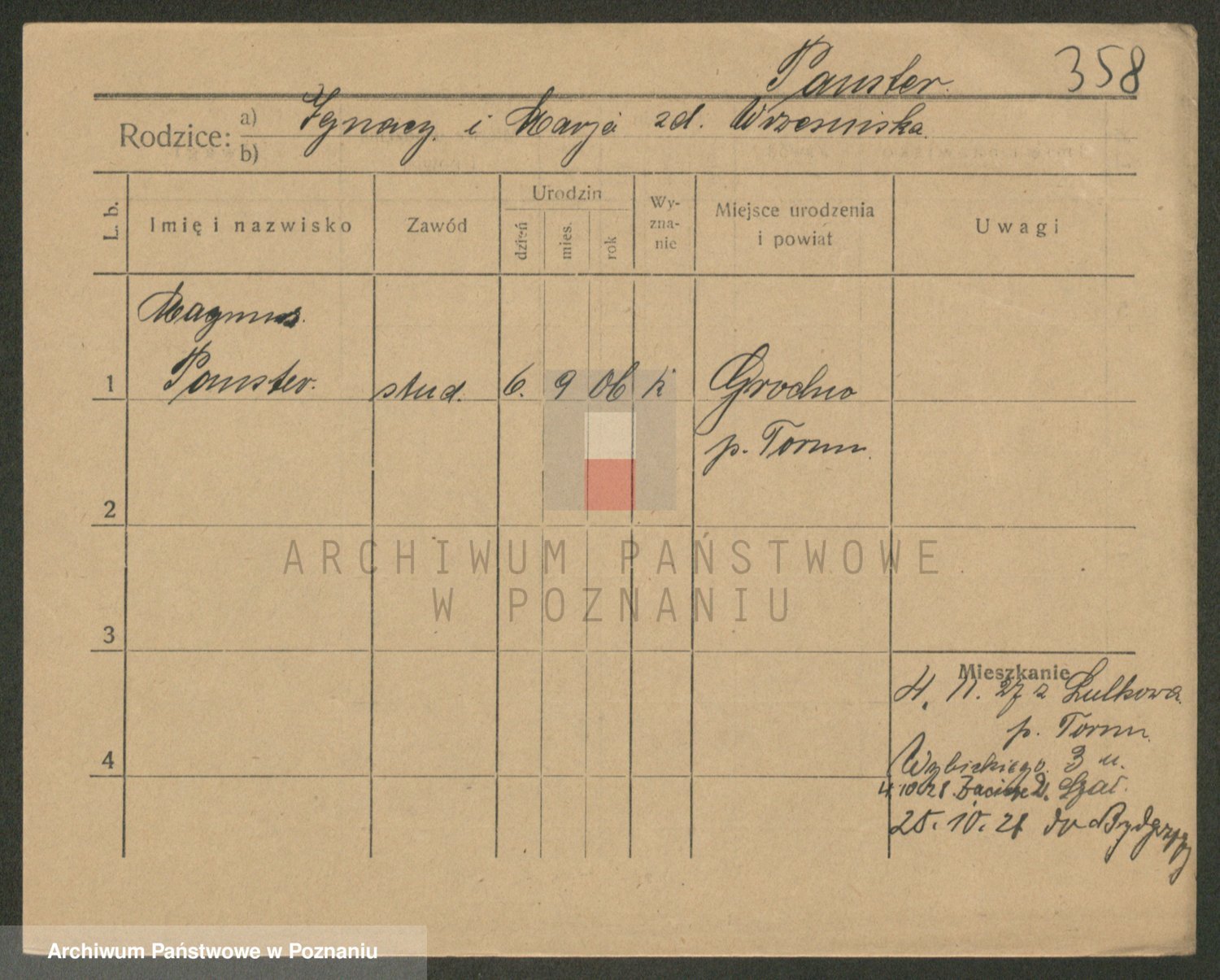 Podgląd karty osobowej dostępny jest po kliknięciu na nazwisko lub ikonkę karty. Można dokonywać powiększenia (ikony na górze) lub przechodzić między kolejnymi skanami (strzałki po bokach).