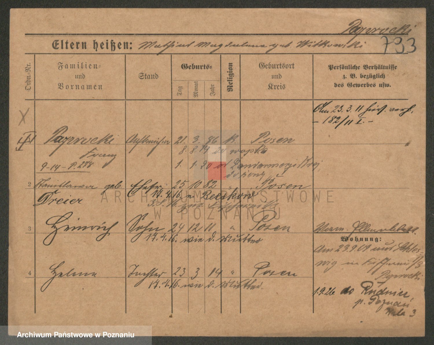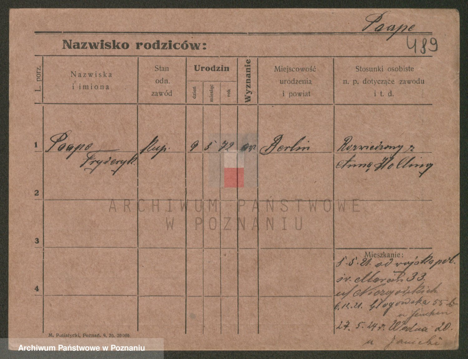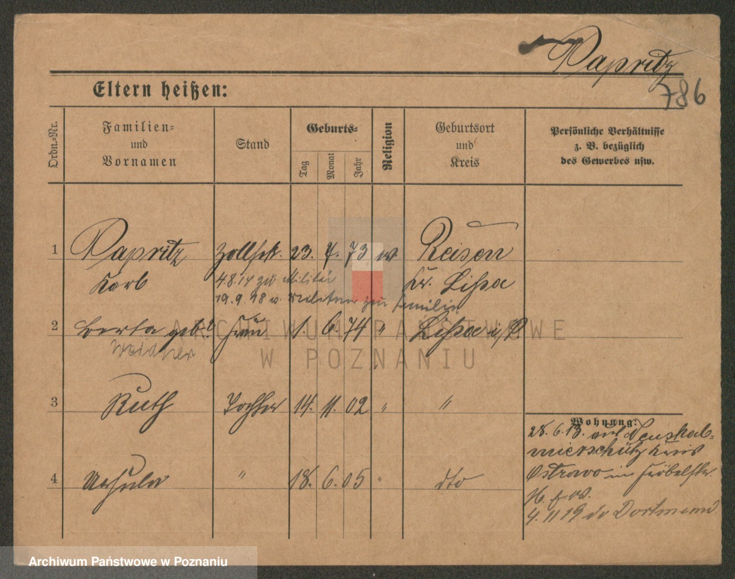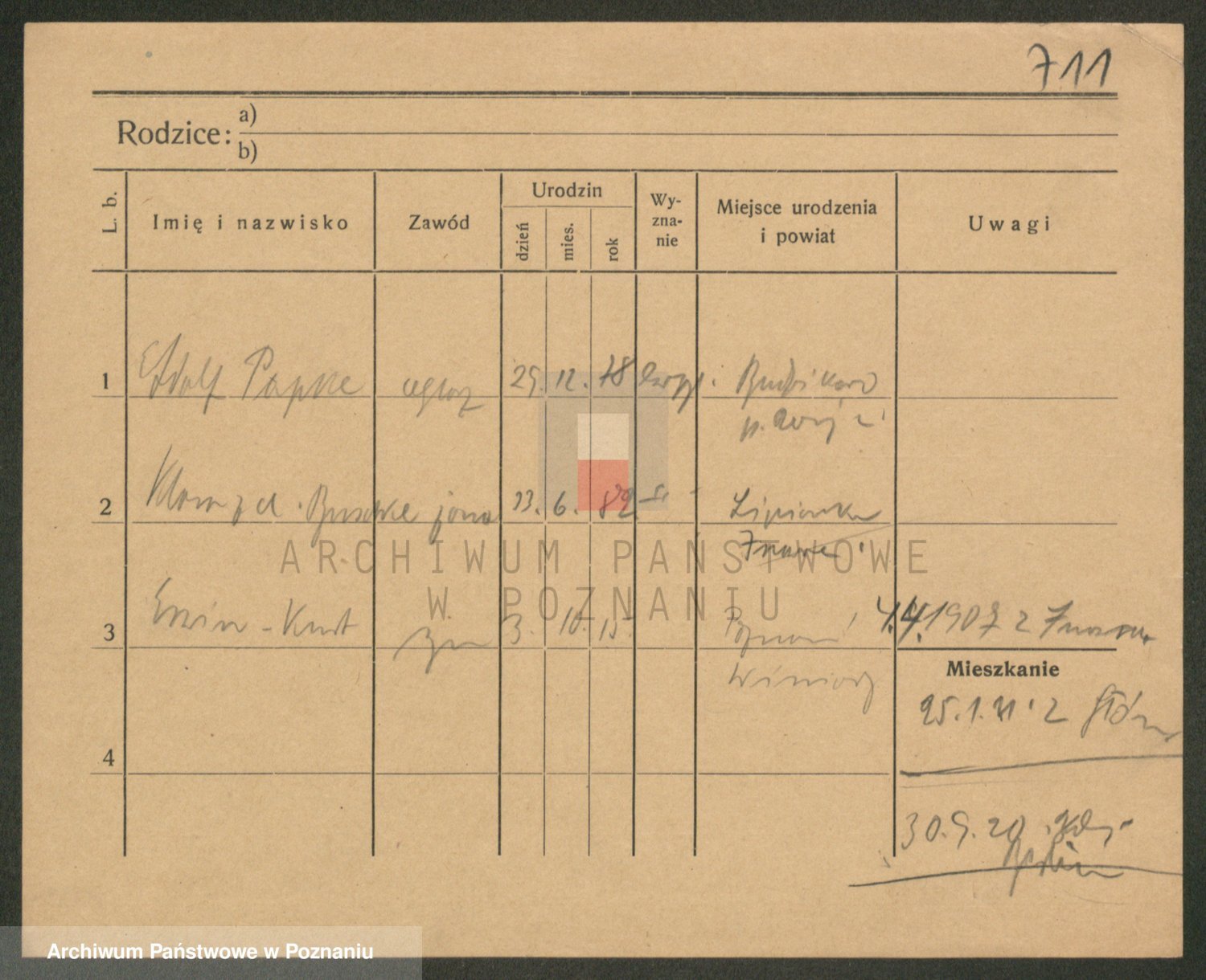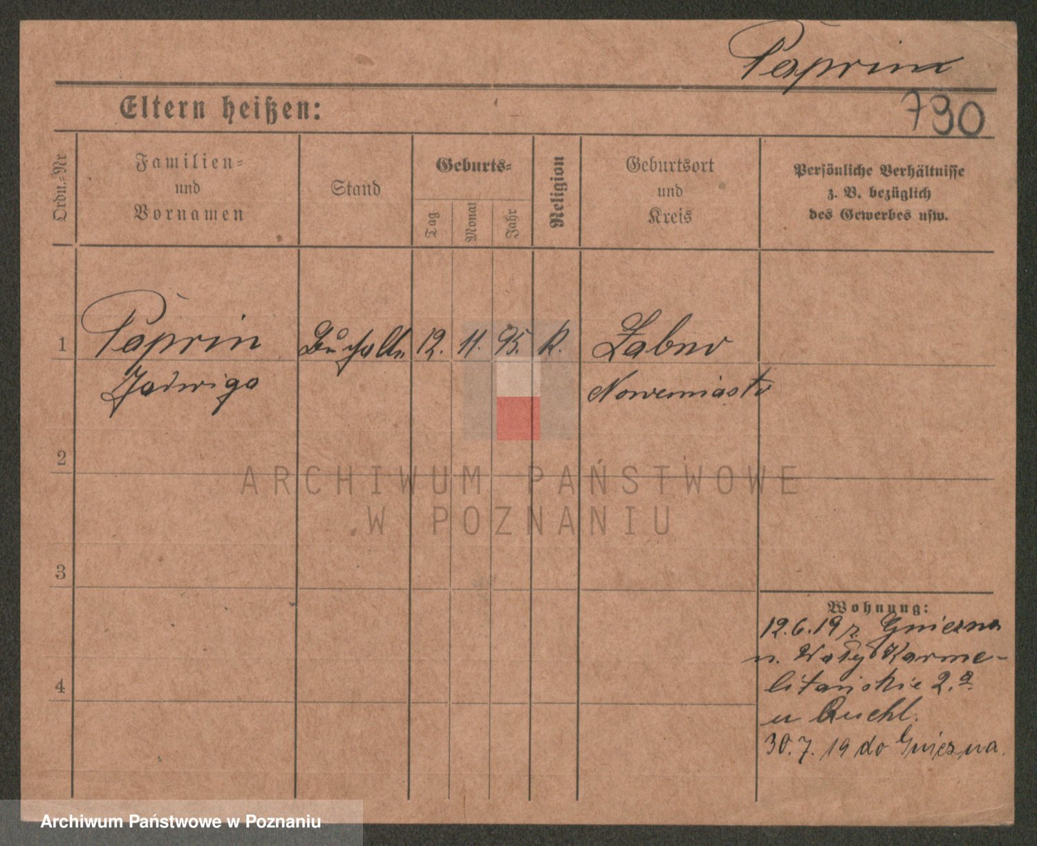 Podgląd karty osobowej dostępny jest po kliknięciu na nazwisko lub ikonkę karty. Można dokonywać powiększenia (ikony na górze) lub przechodzić między kolejnymi skanami (strzałki po bokach).