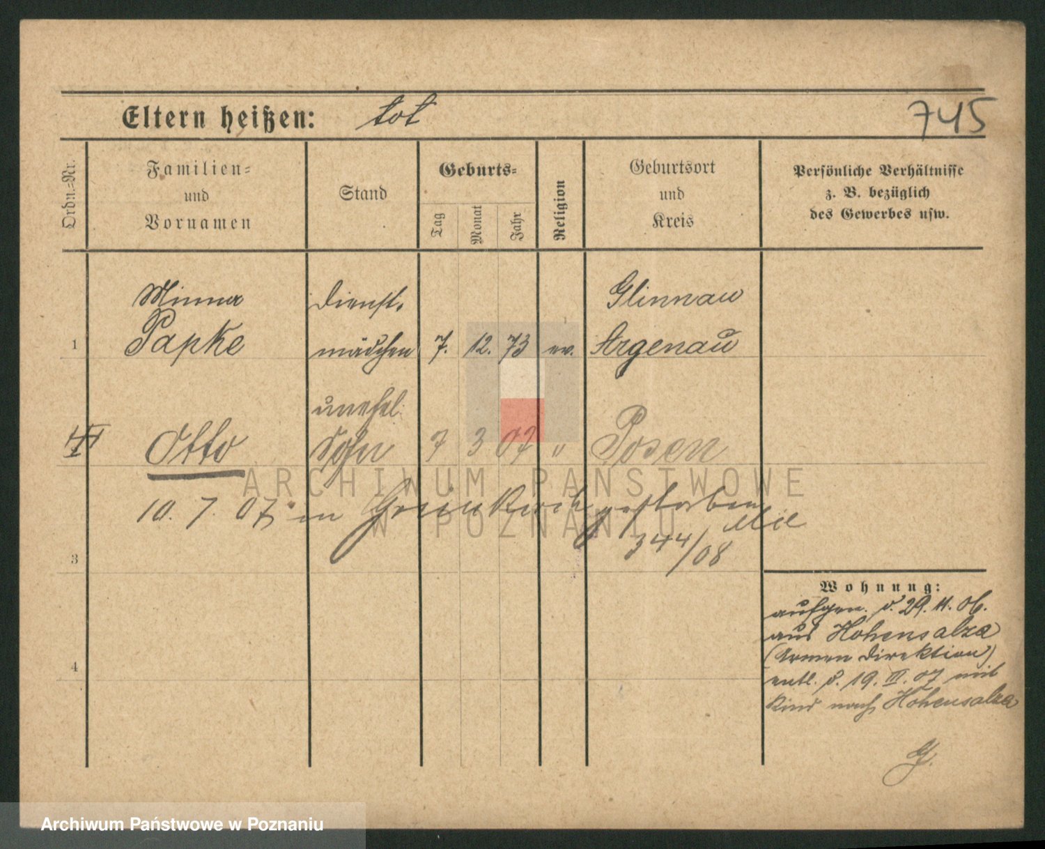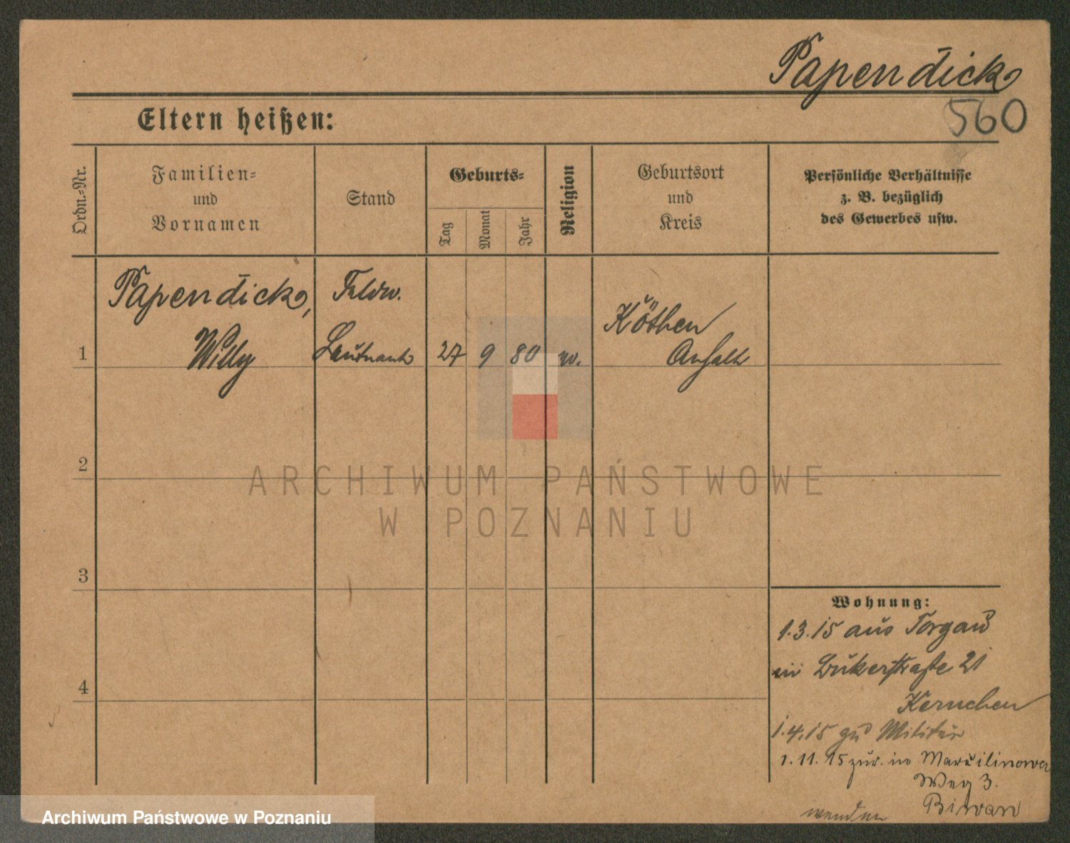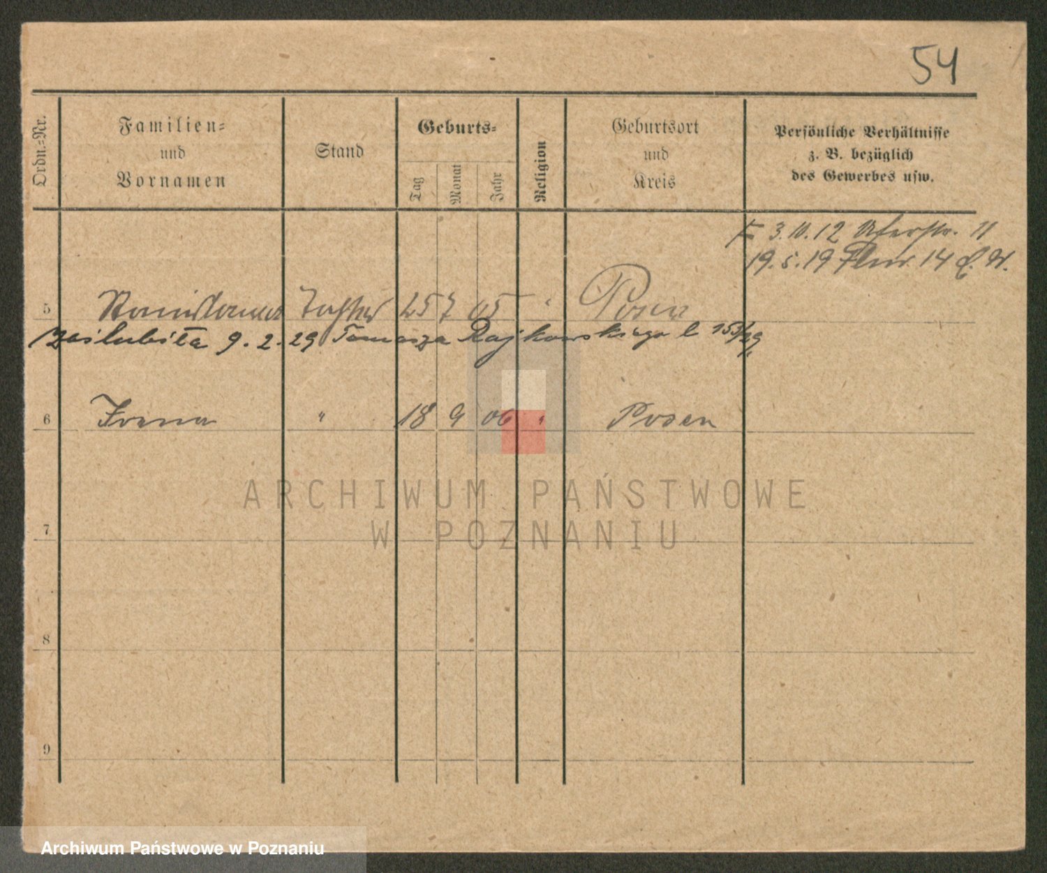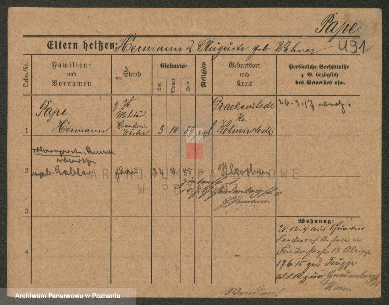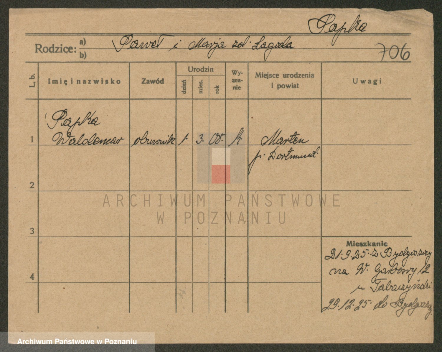 Podgląd karty osobowej dostępny jest po kliknięciu na nazwisko lub ikonkę karty. Można dokonywać powiększenia (ikony na górze) lub przechodzić między kolejnymi skanami (strzałki po bokach).