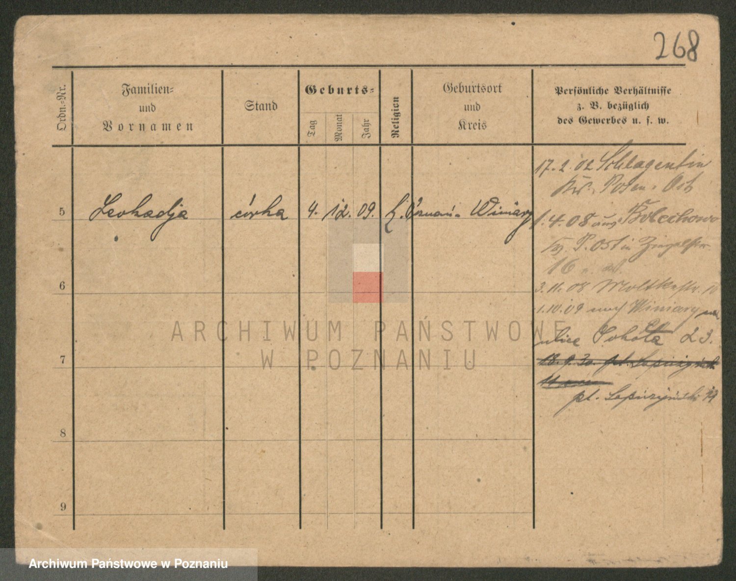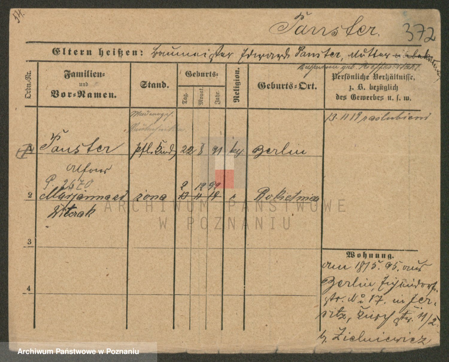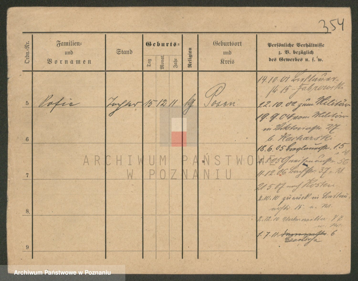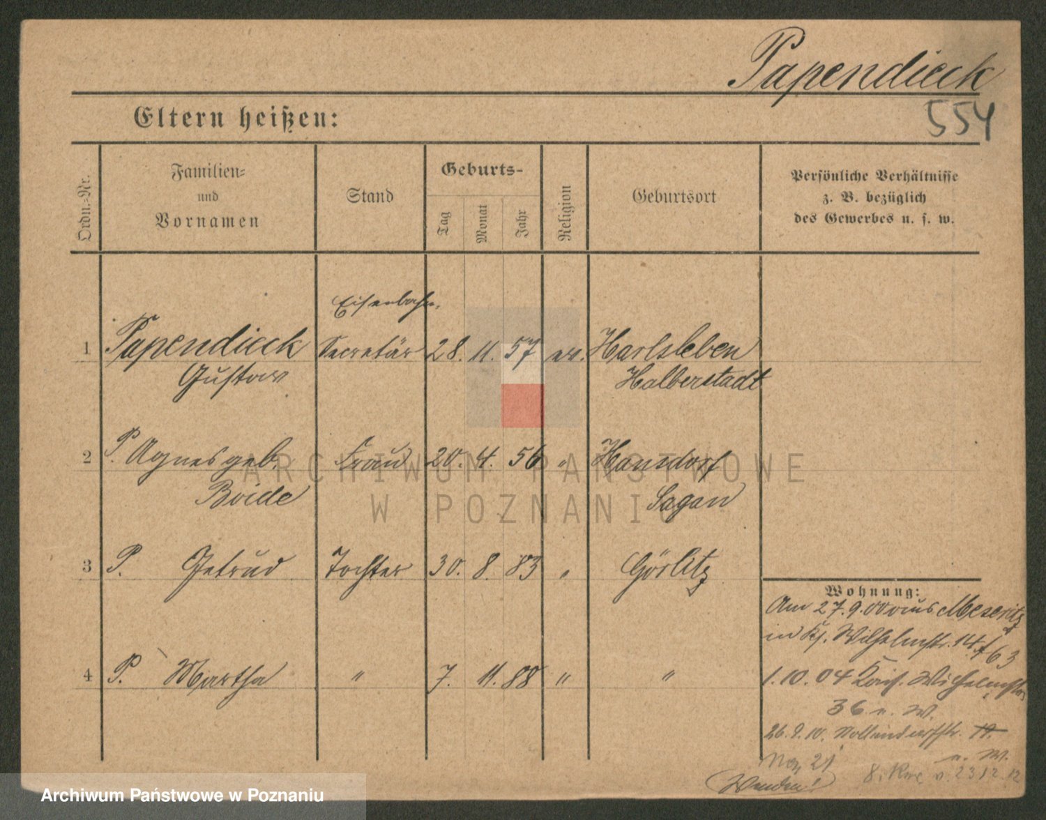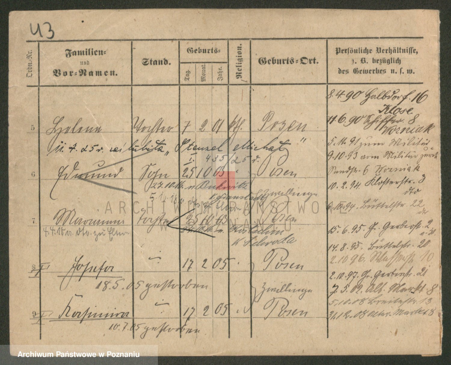 Podgląd karty osobowej dostępny jest po kliknięciu na nazwisko lub ikonkę karty. Można dokonywać powiększenia (ikony na górze) lub przechodzić między kolejnymi skanami (strzałki po bokach).