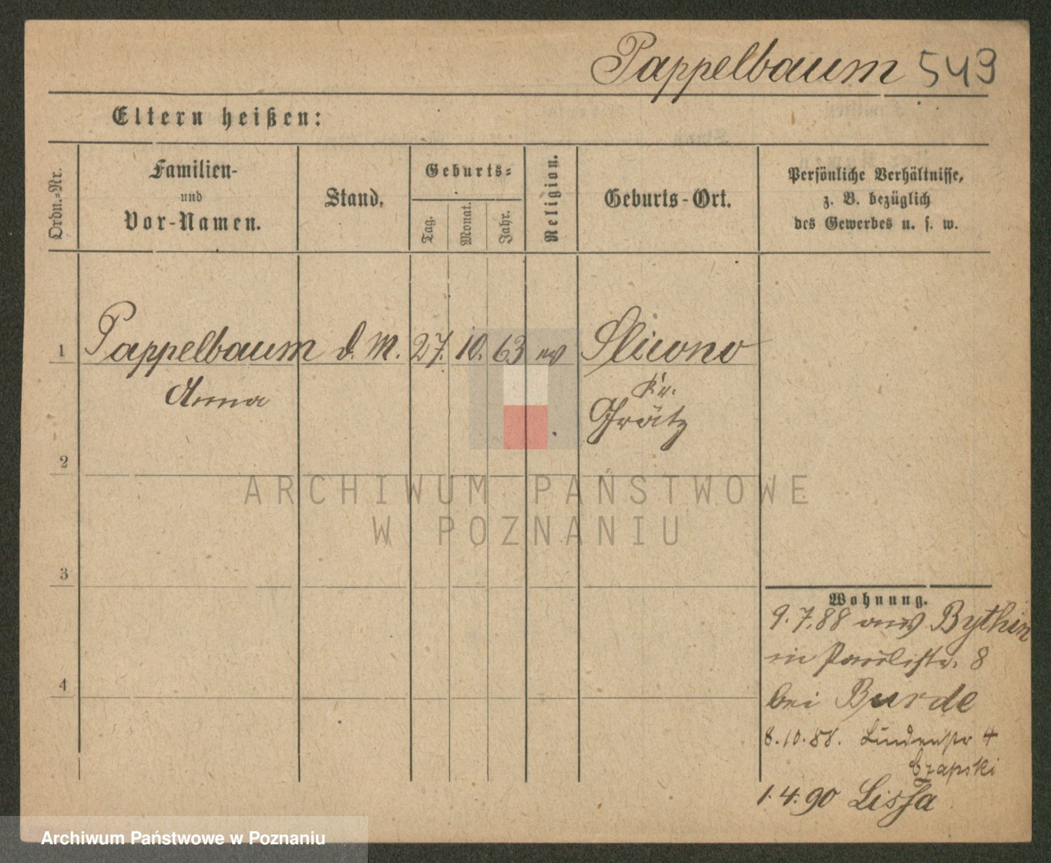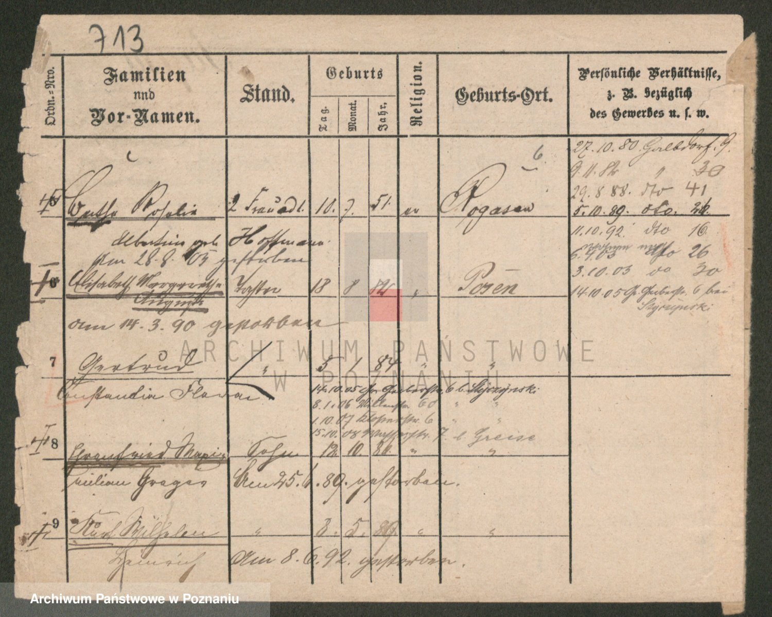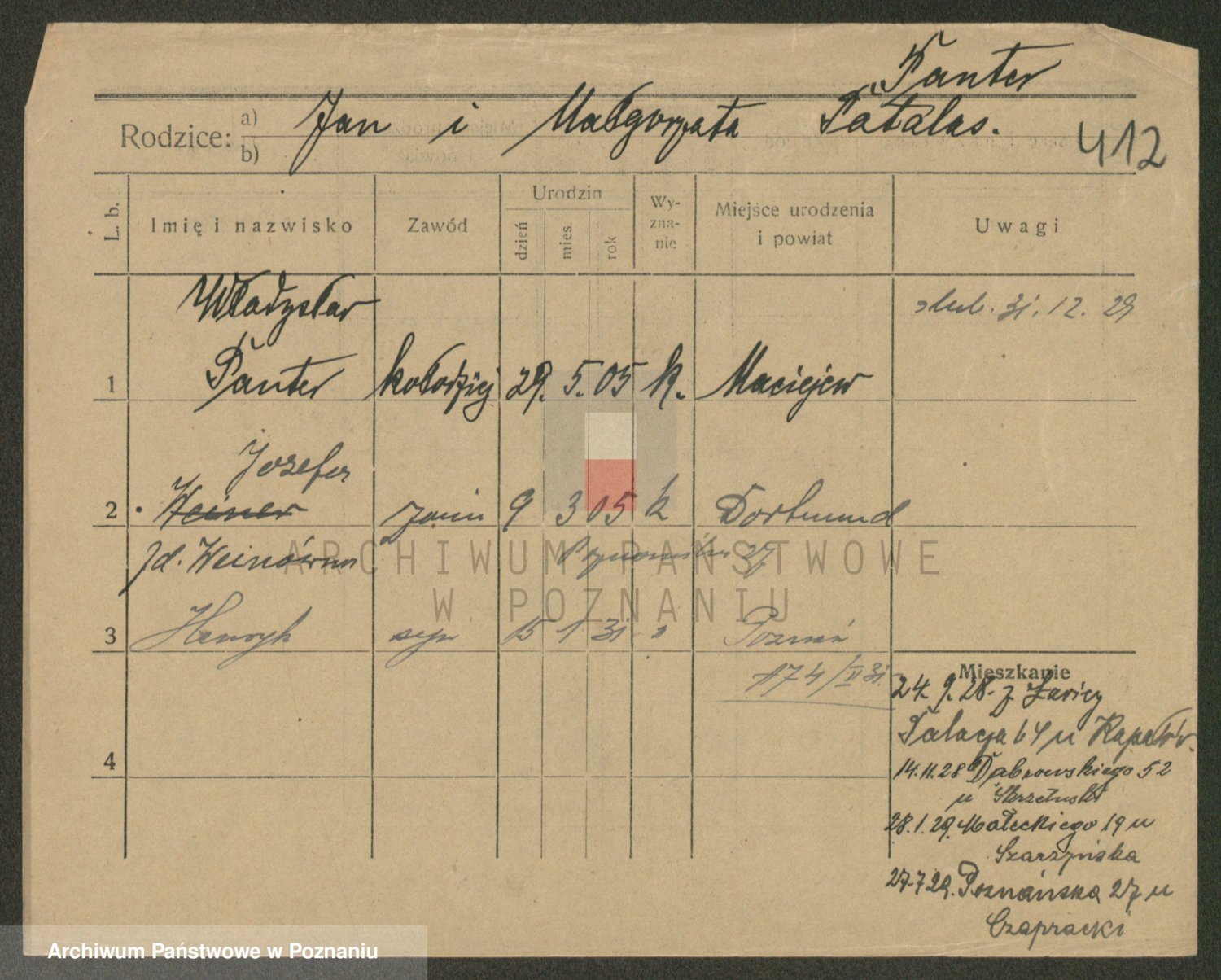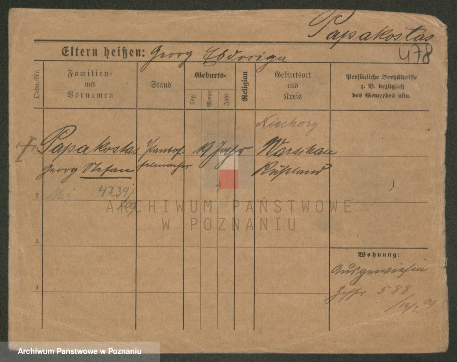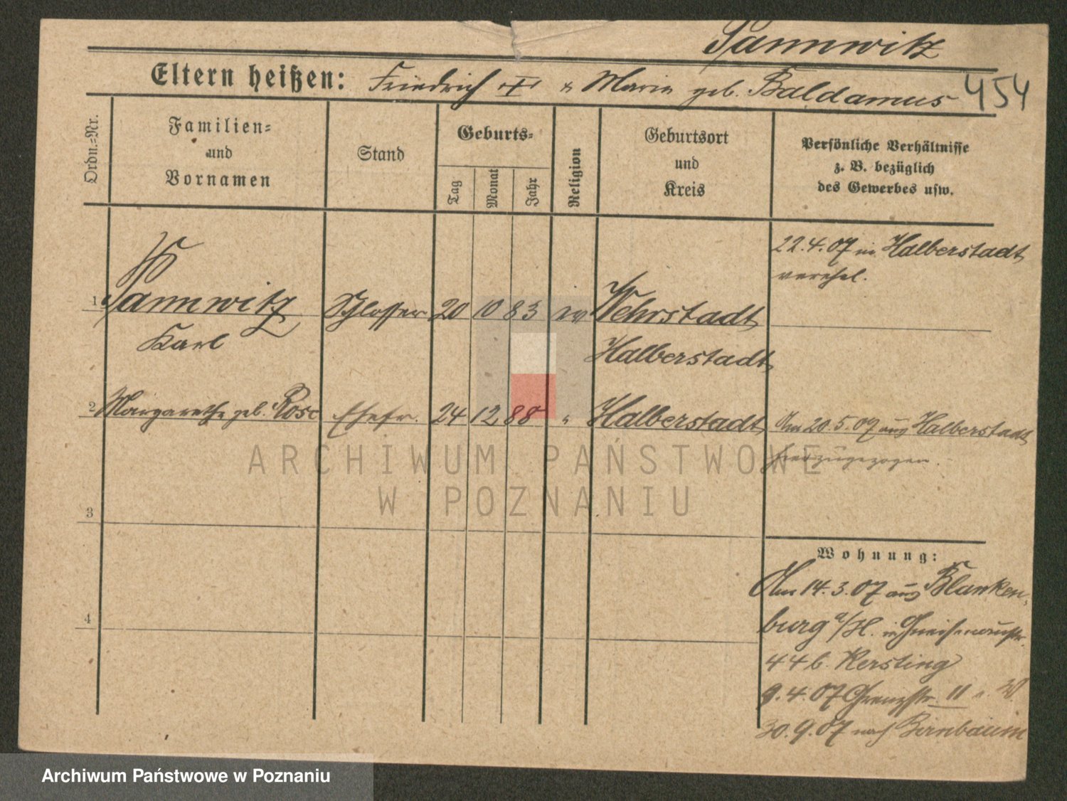 Podgląd karty osobowej dostępny jest po kliknięciu na nazwisko lub ikonkę karty. Można dokonywać powiększenia (ikony na górze) lub przechodzić między kolejnymi skanami (strzałki po bokach).