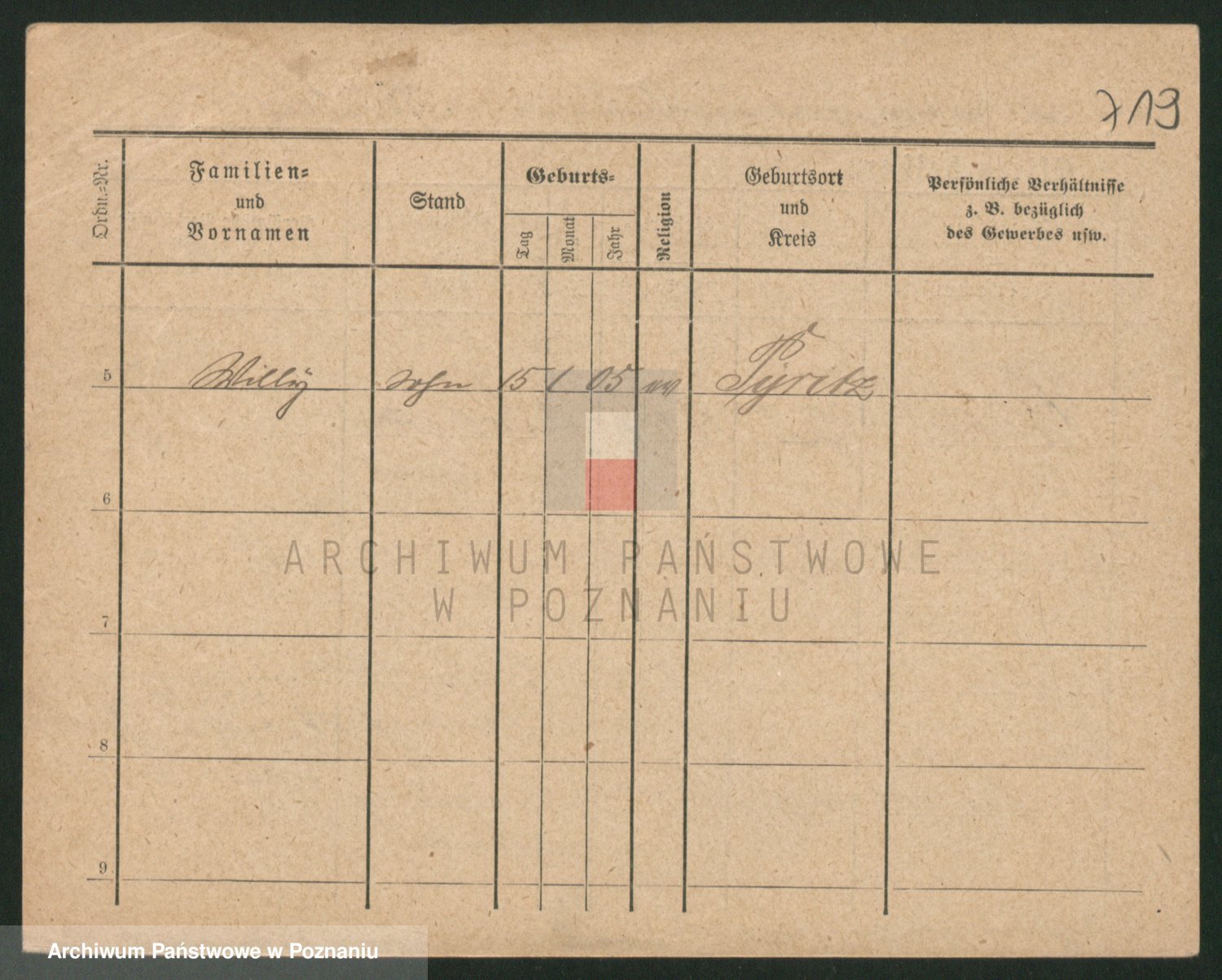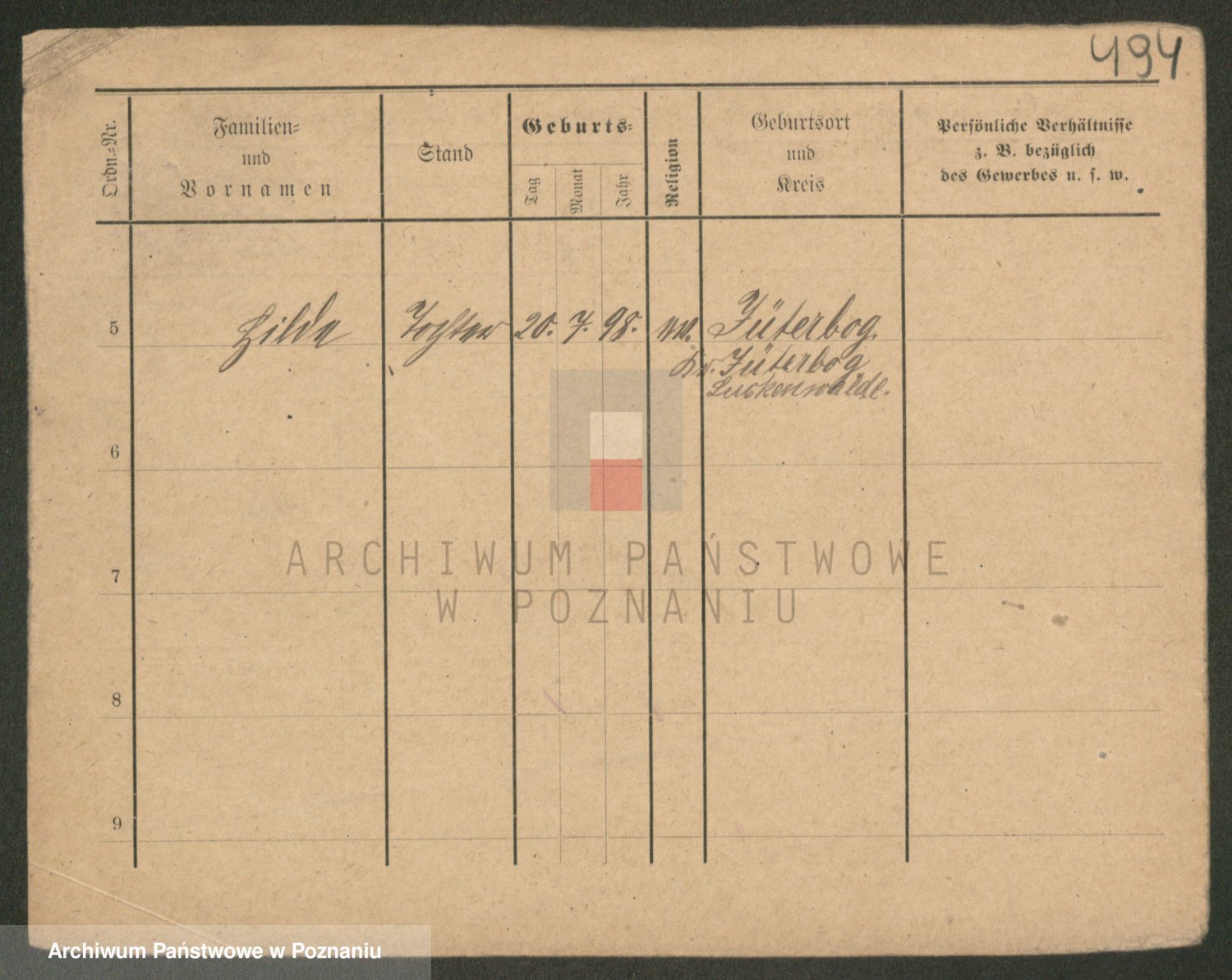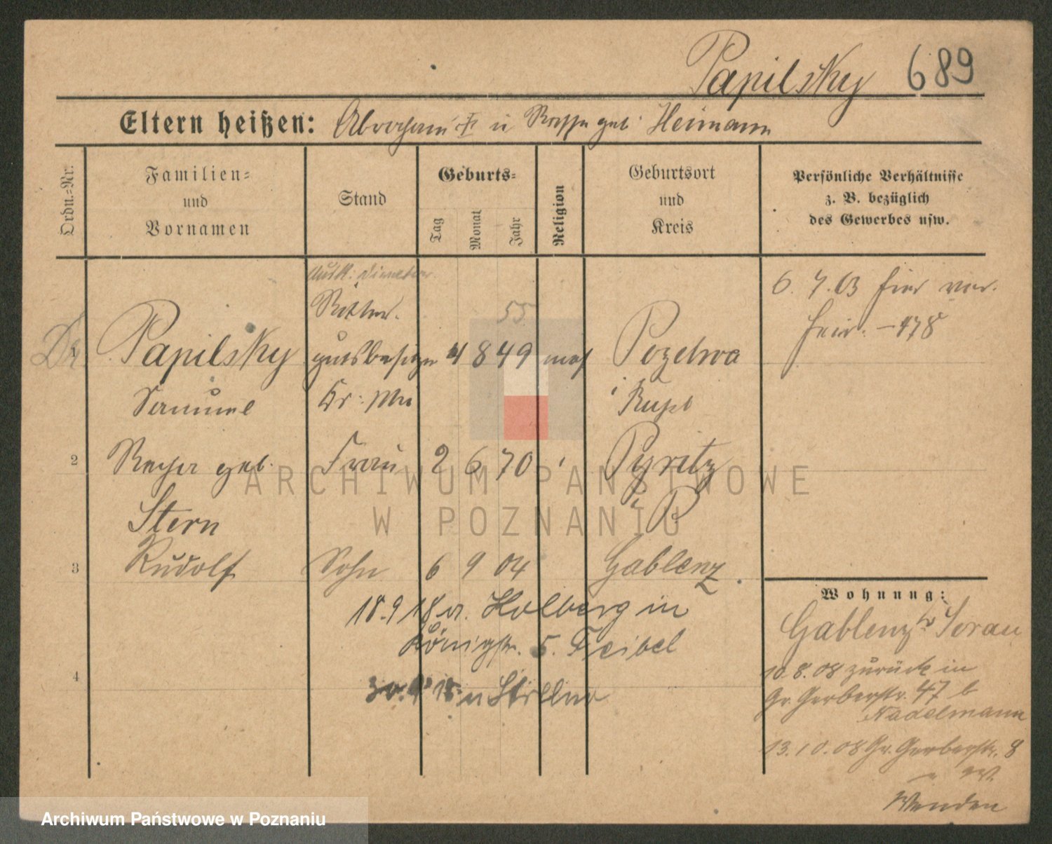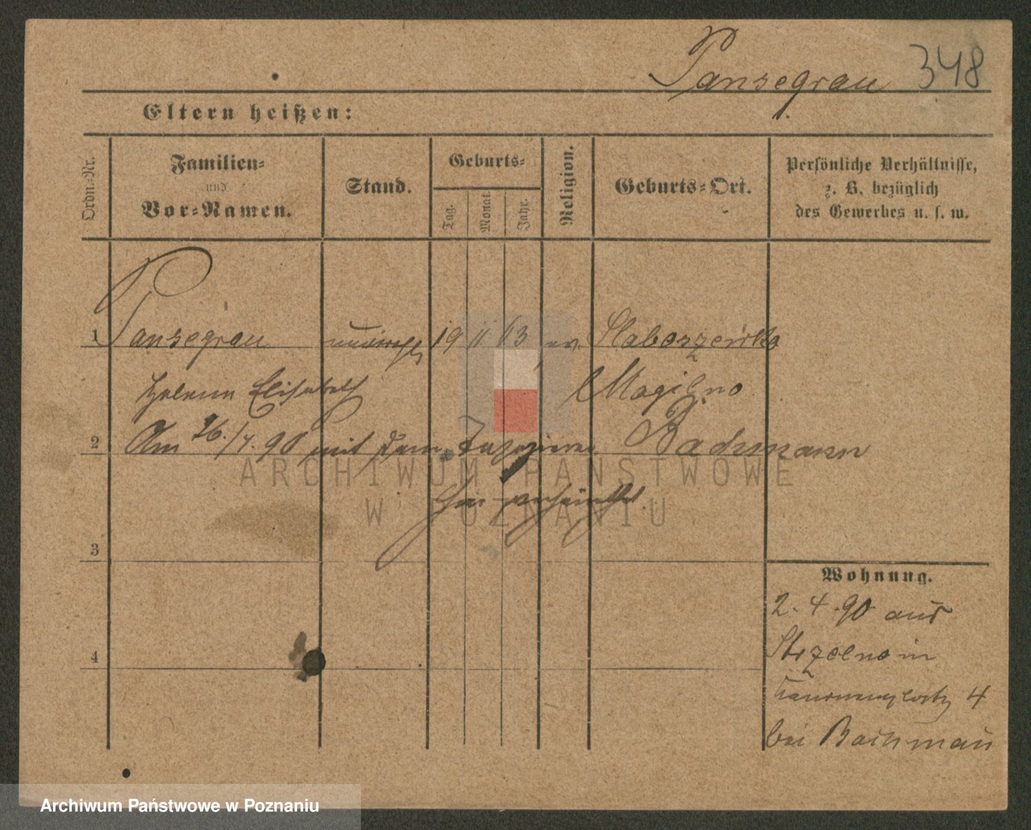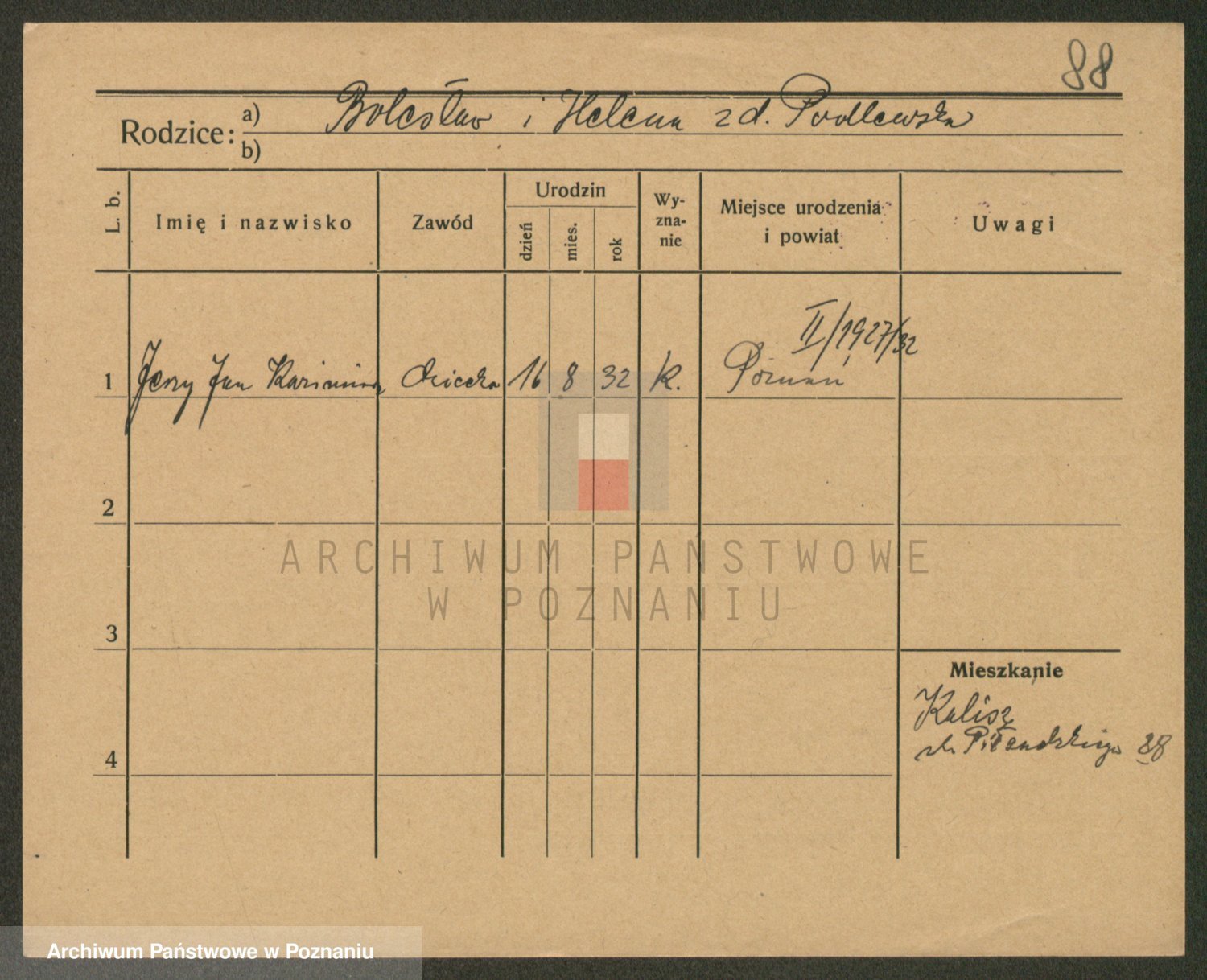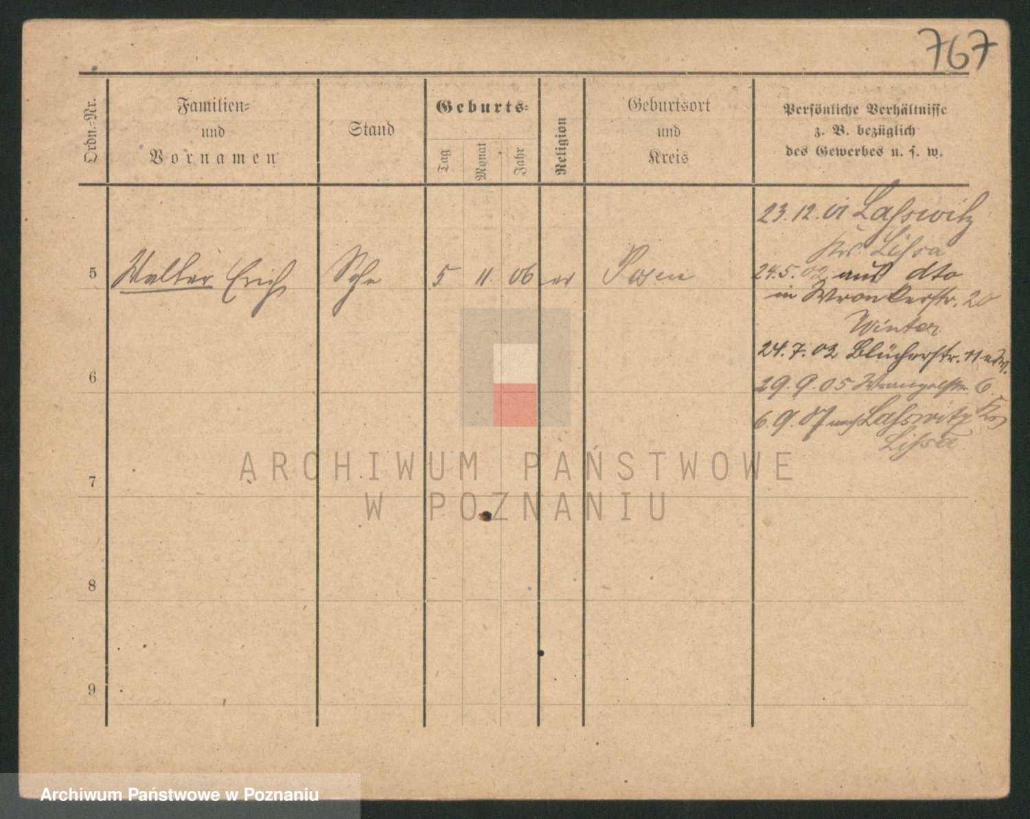 Podgląd karty osobowej dostępny jest po kliknięciu na nazwisko lub ikonkę karty. Można dokonywać powiększenia (ikony na górze) lub przechodzić między kolejnymi skanami (strzałki po bokach).
