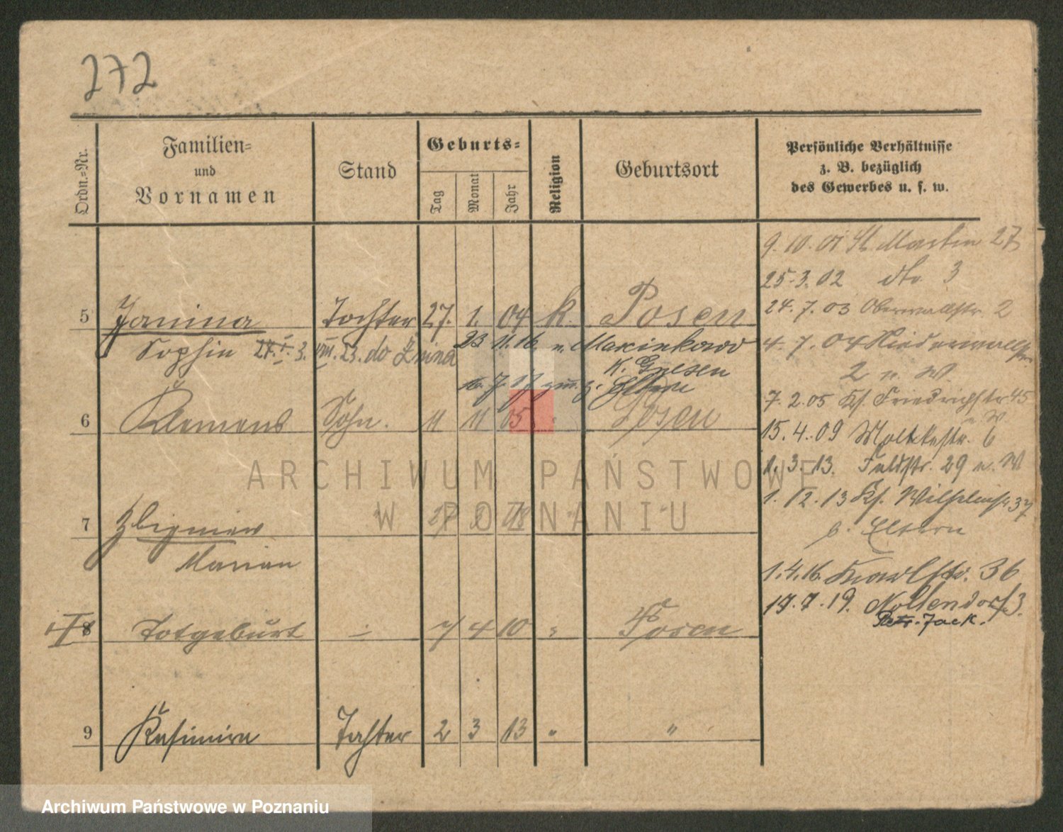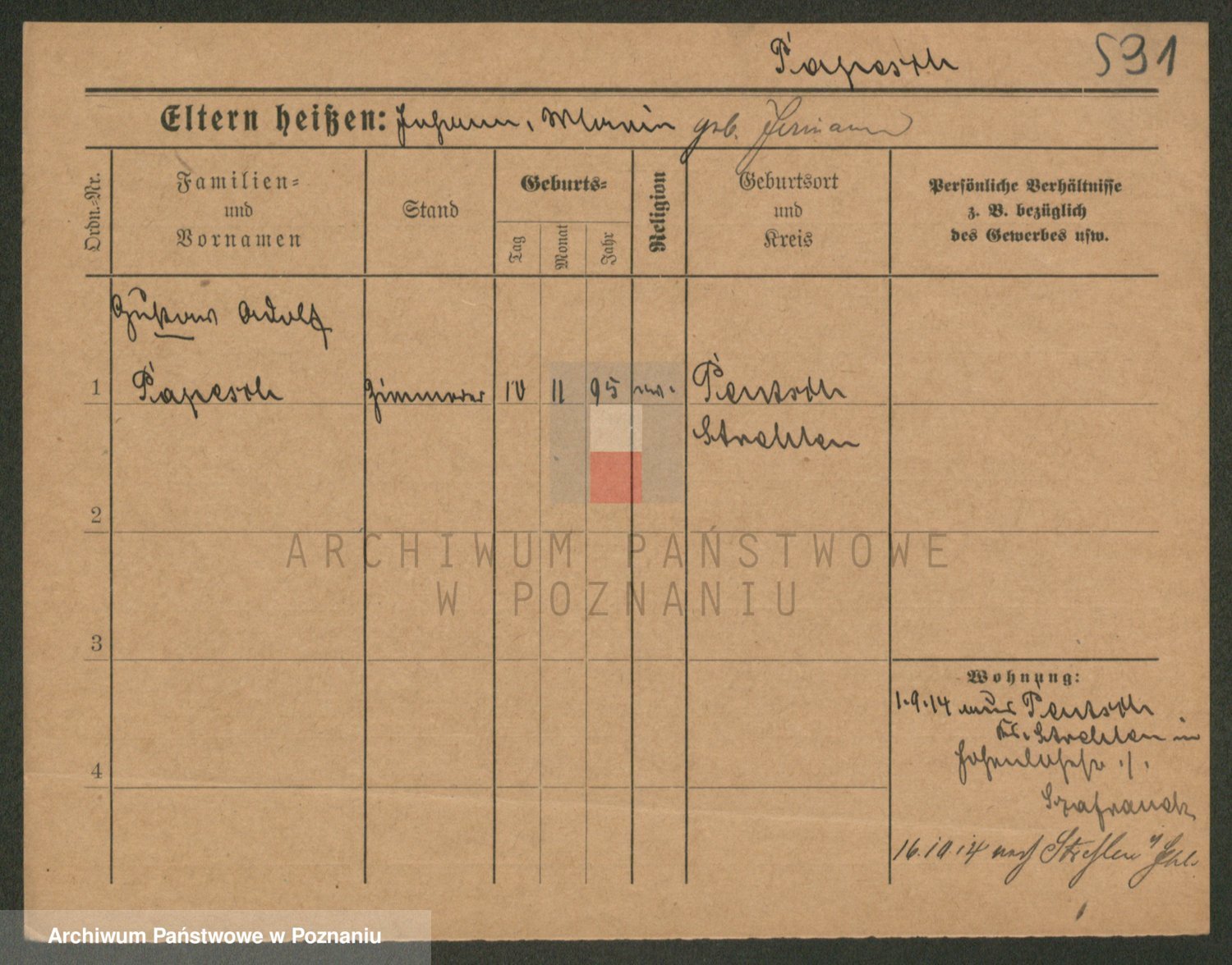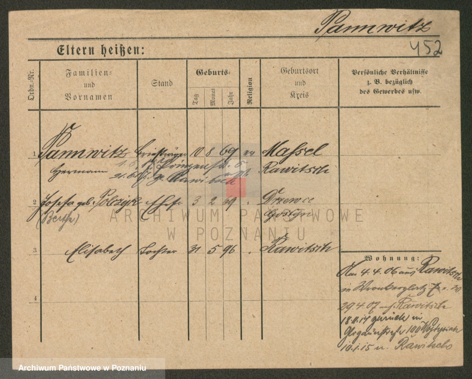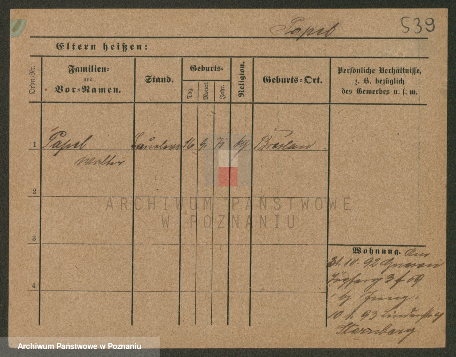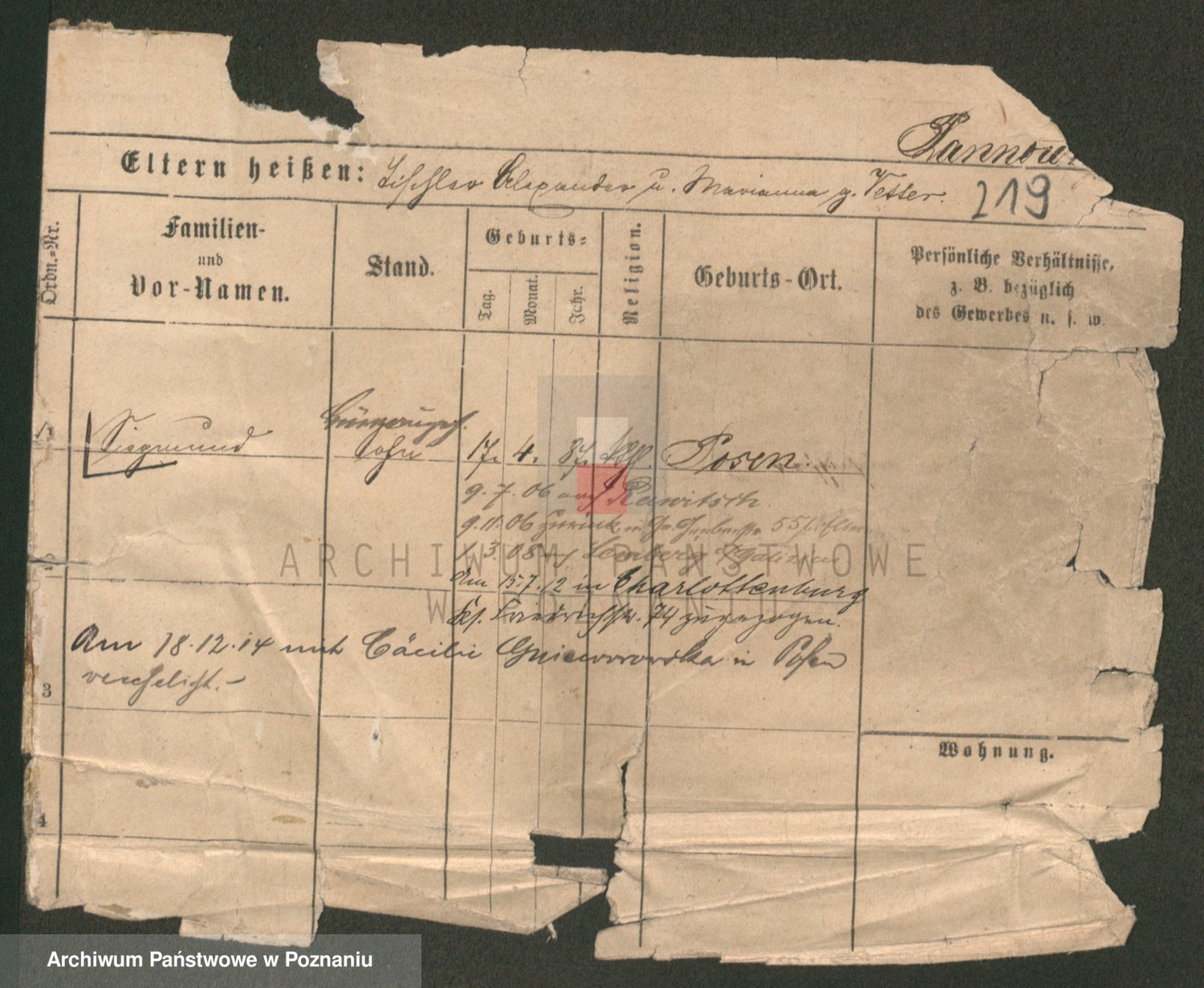 Podgląd karty osobowej dostępny jest po kliknięciu na nazwisko lub ikonkę karty. Można dokonywać powiększenia (ikony na górze) lub przechodzić między kolejnymi skanami (strzałki po bokach).