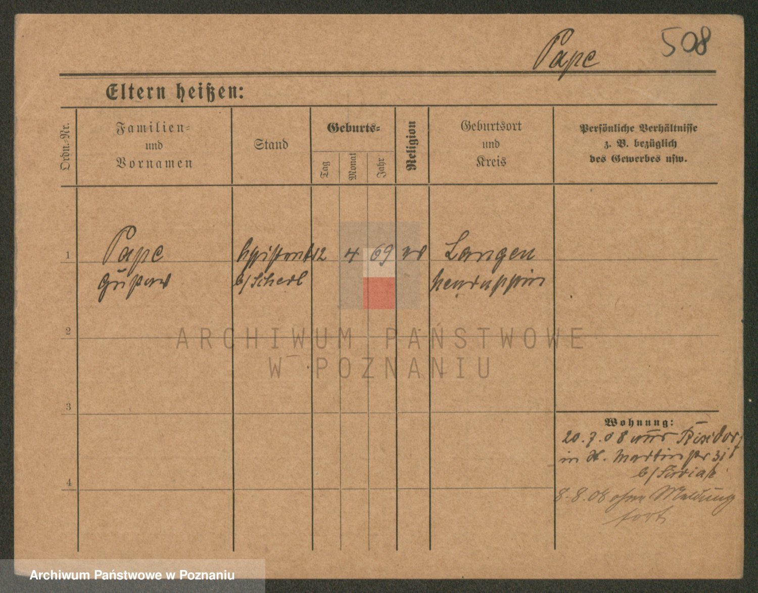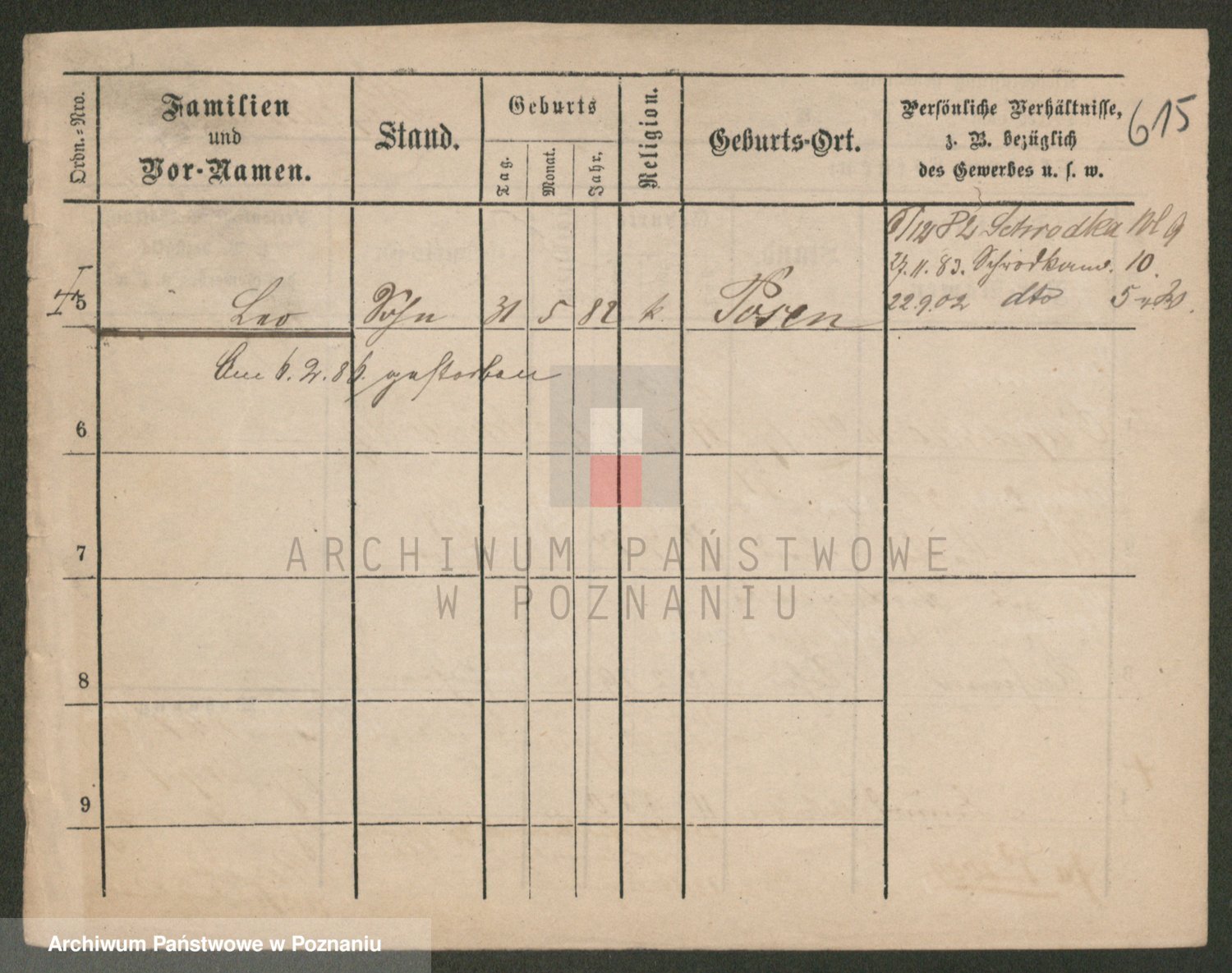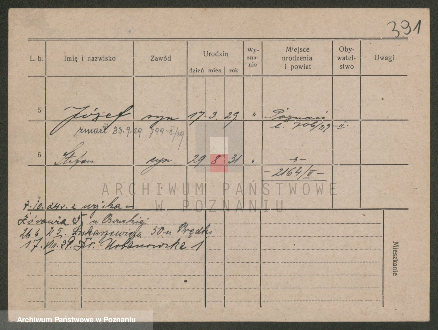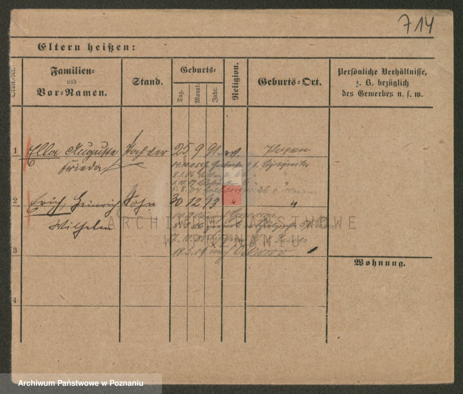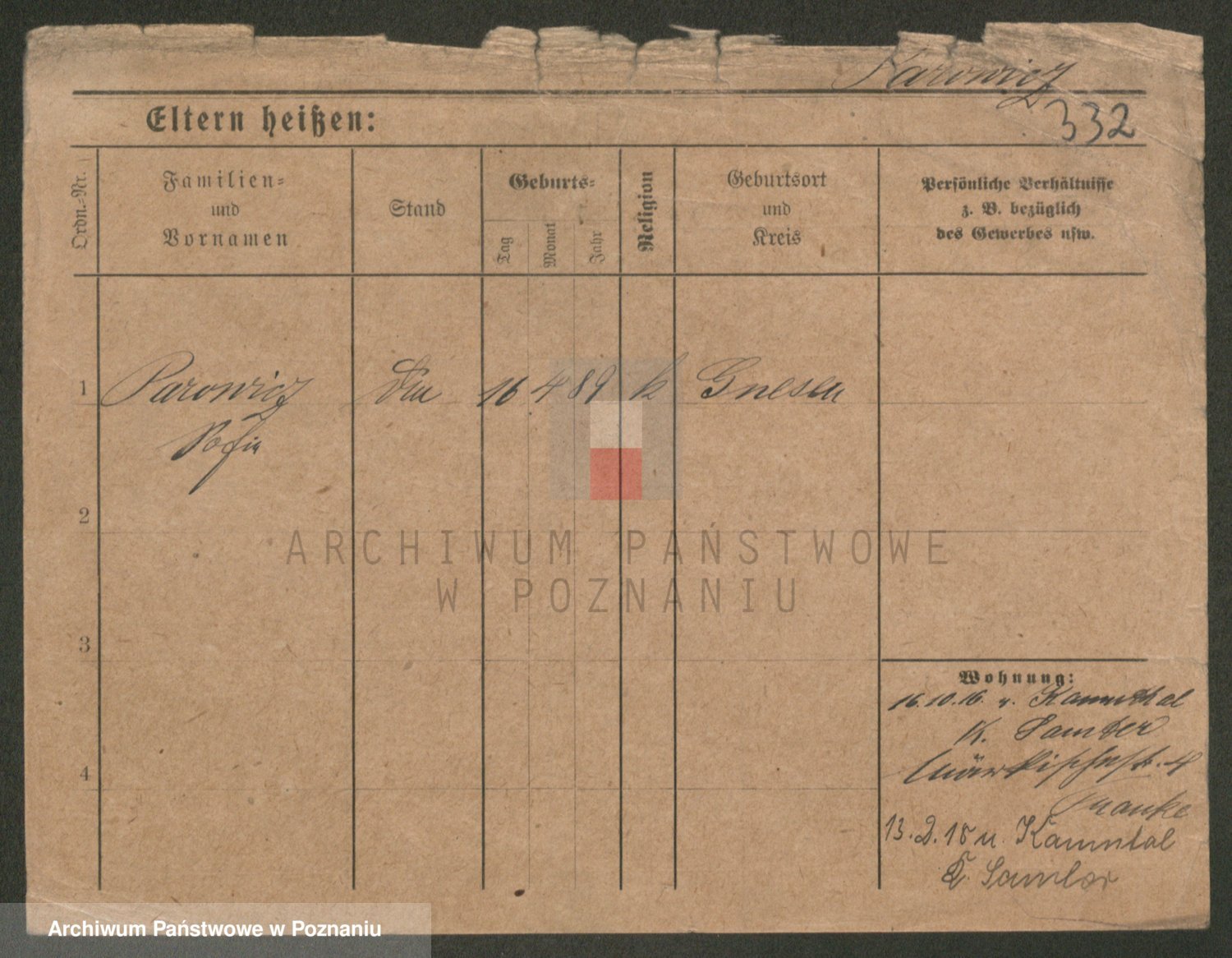 Podgląd karty osobowej dostępny jest po kliknięciu na nazwisko lub ikonkę karty. Można dokonywać powiększenia (ikony na górze) lub przechodzić między kolejnymi skanami (strzałki po bokach).