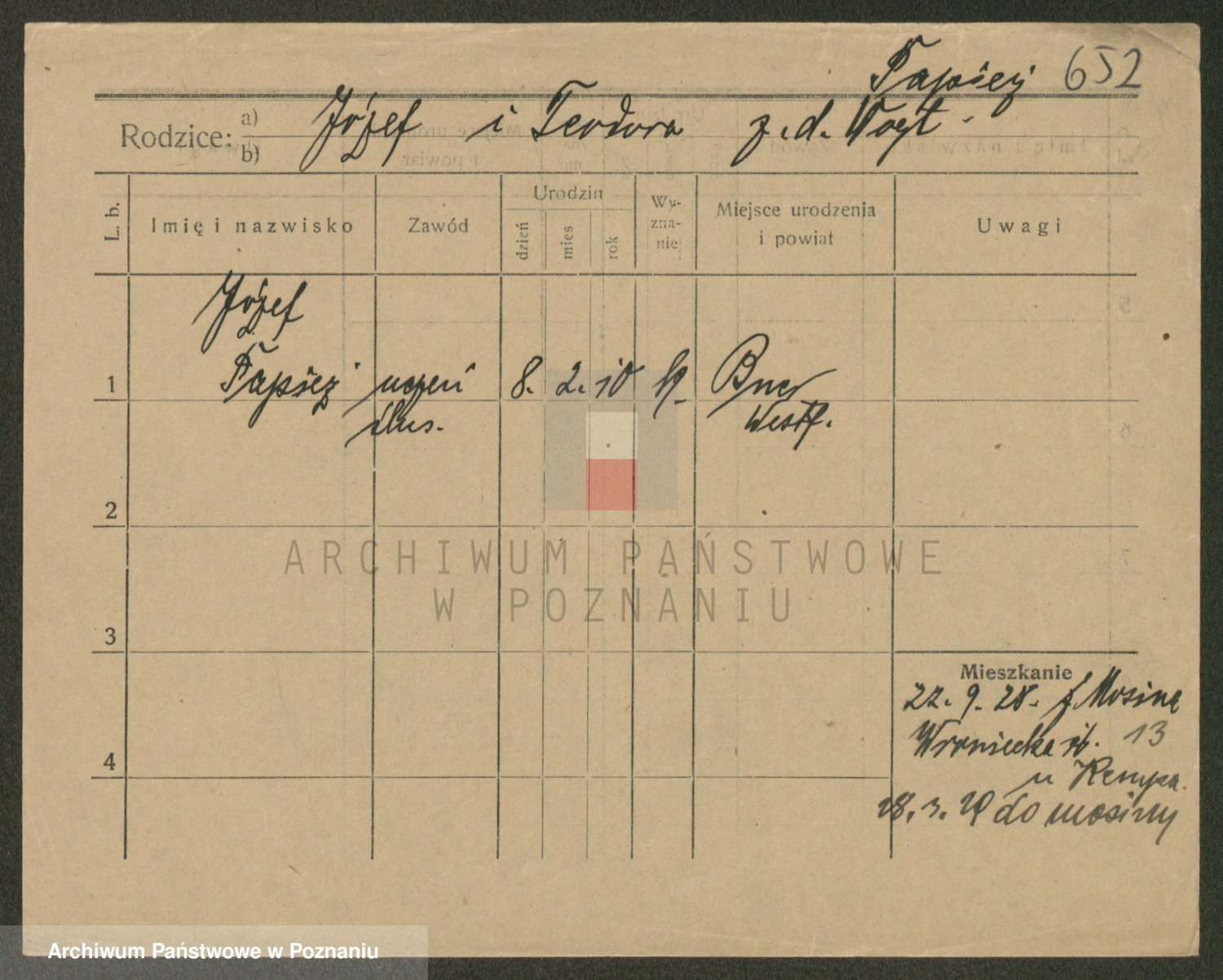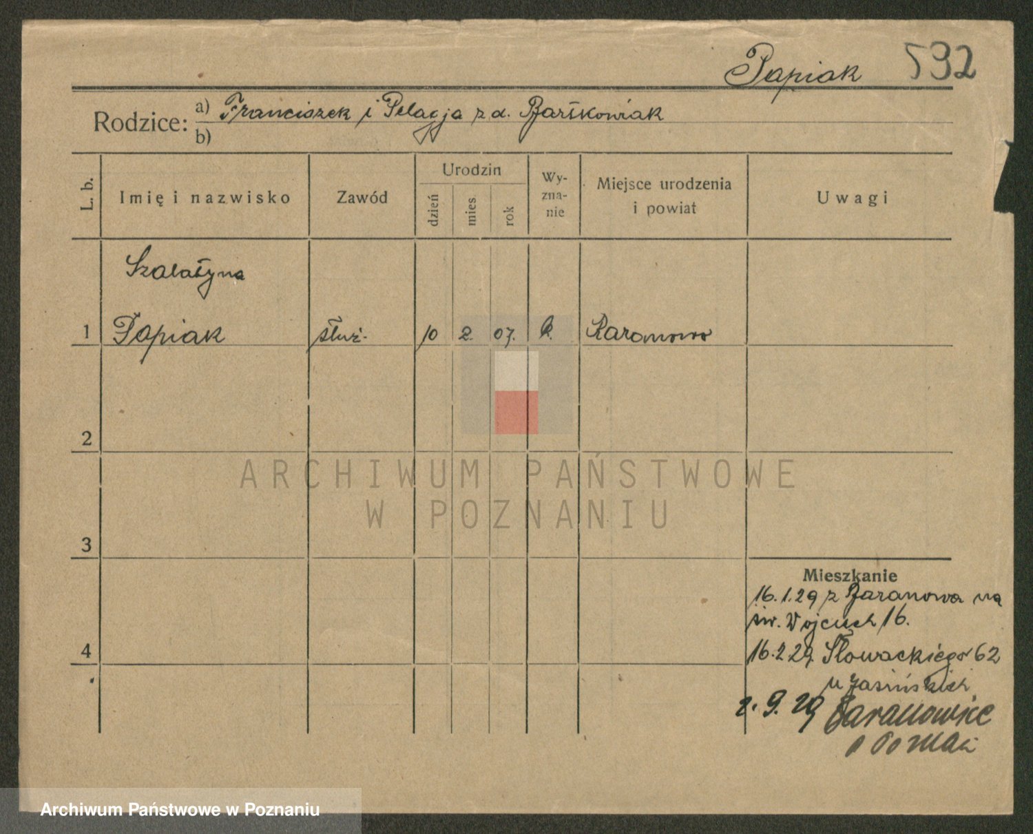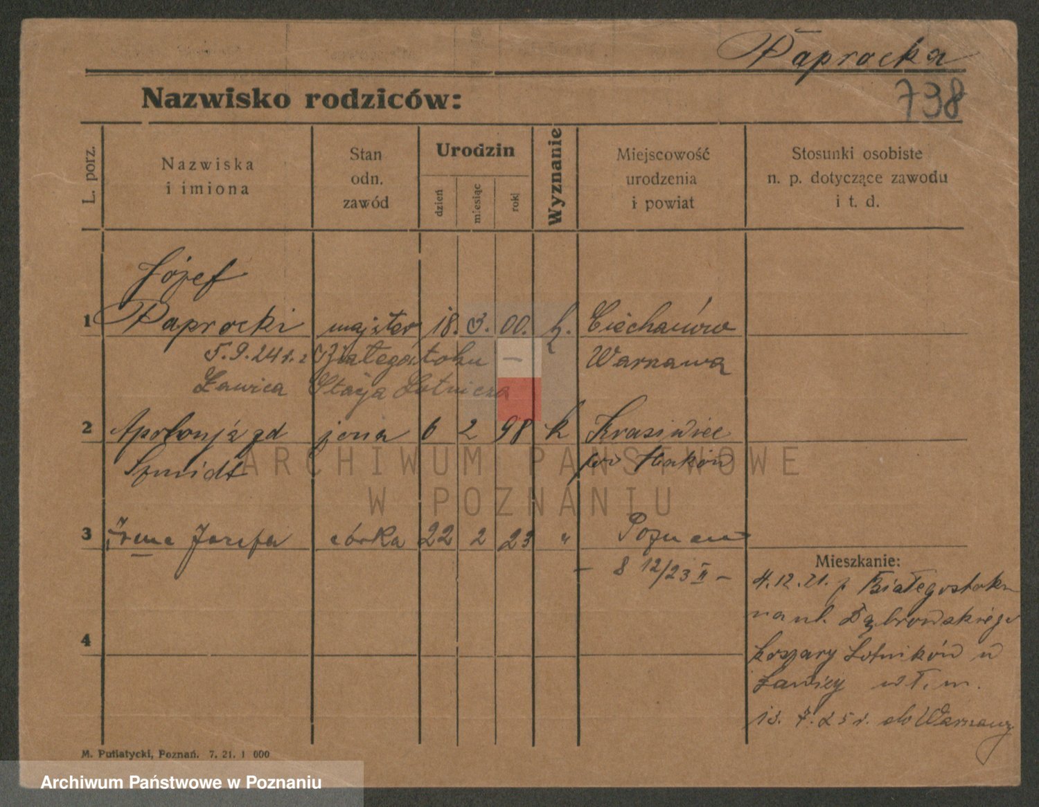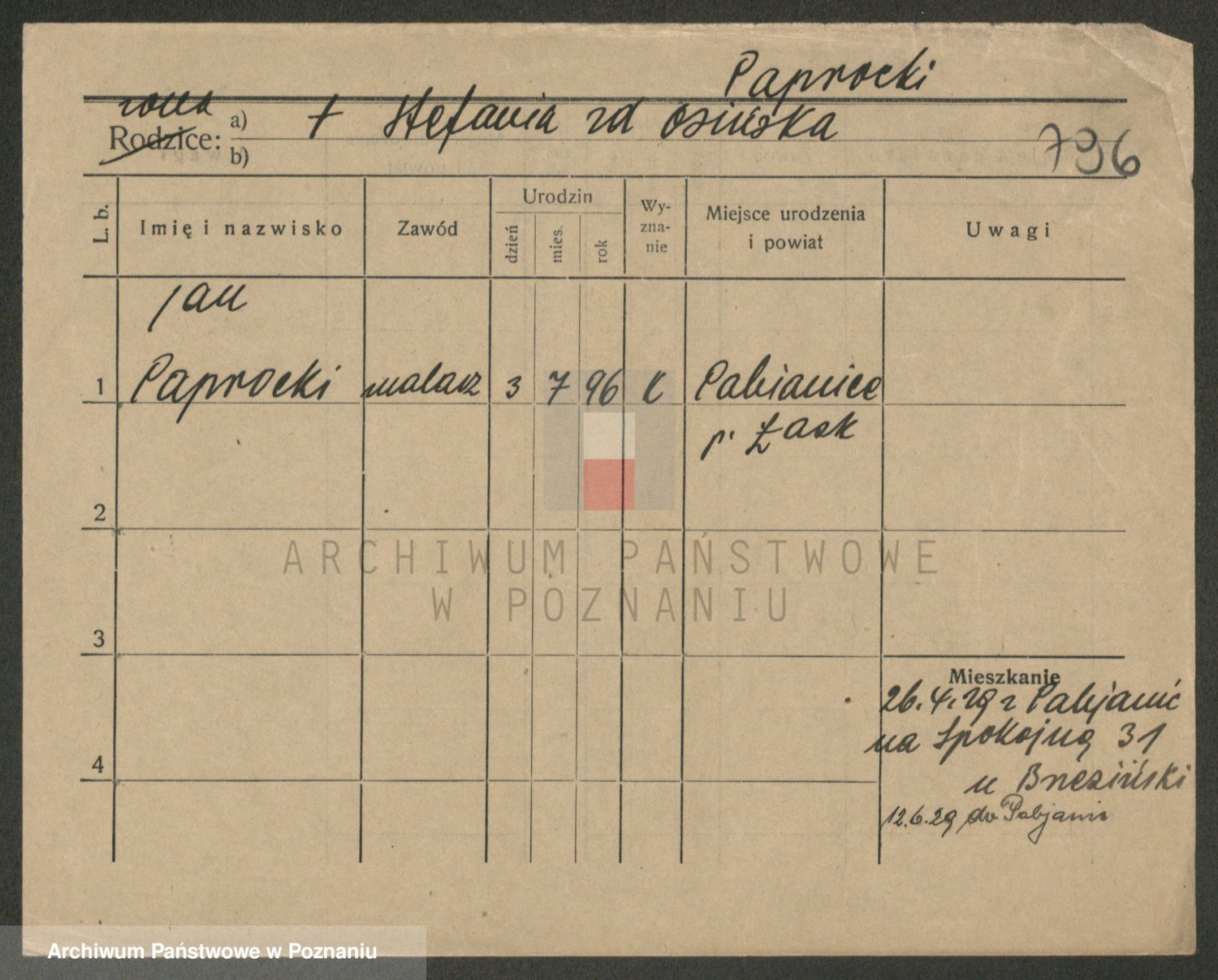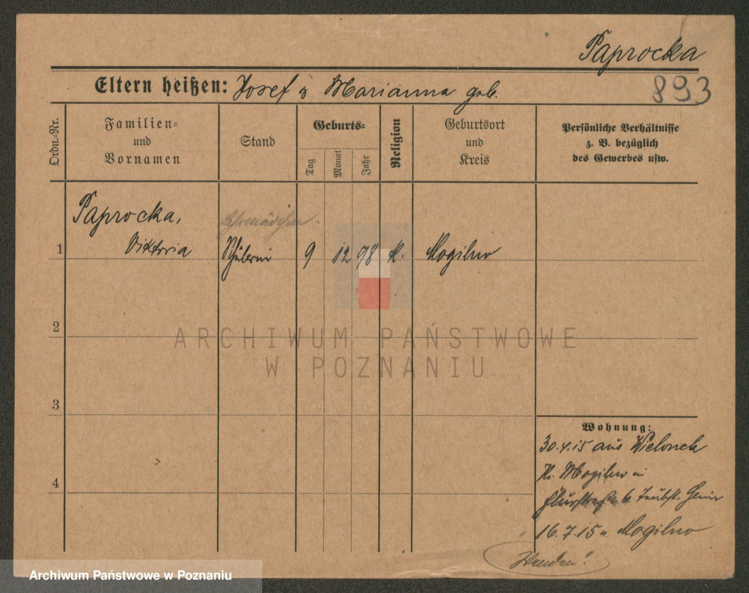 Paprocka, Józefa