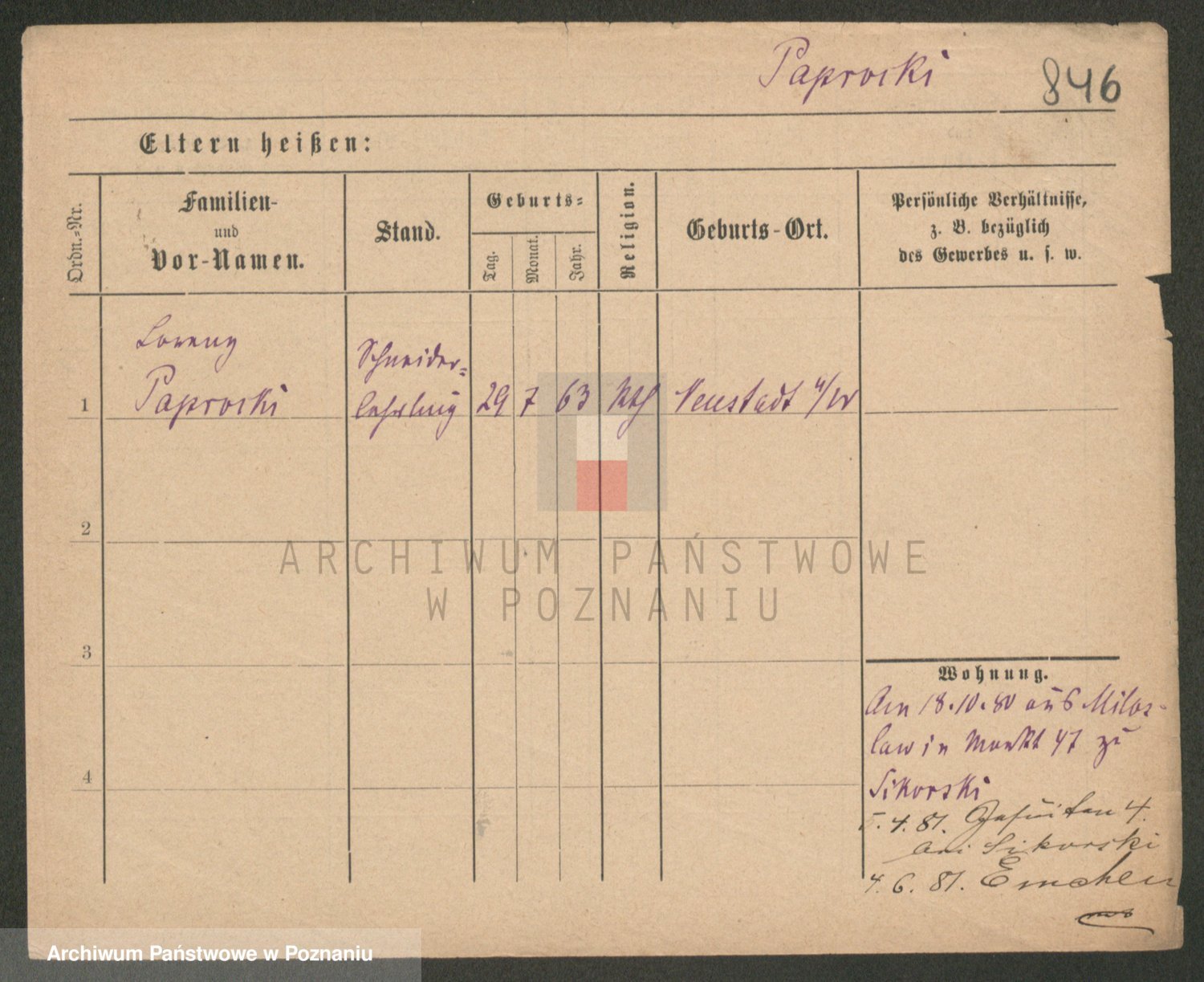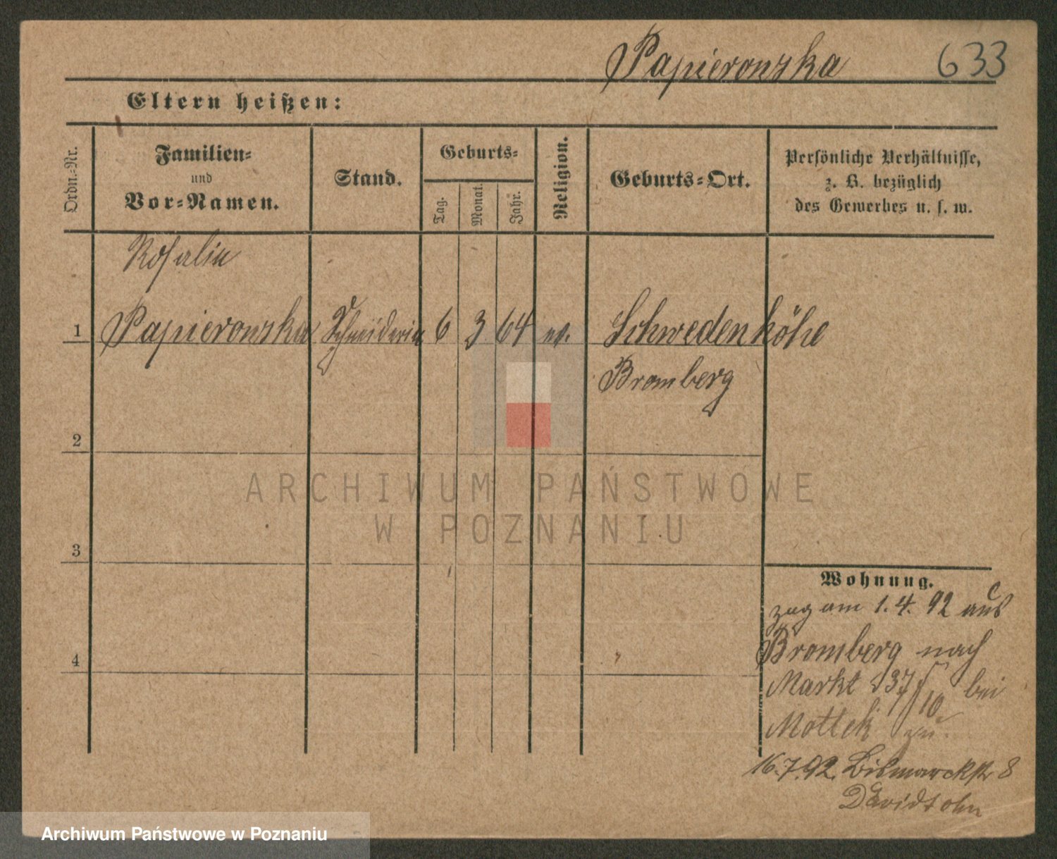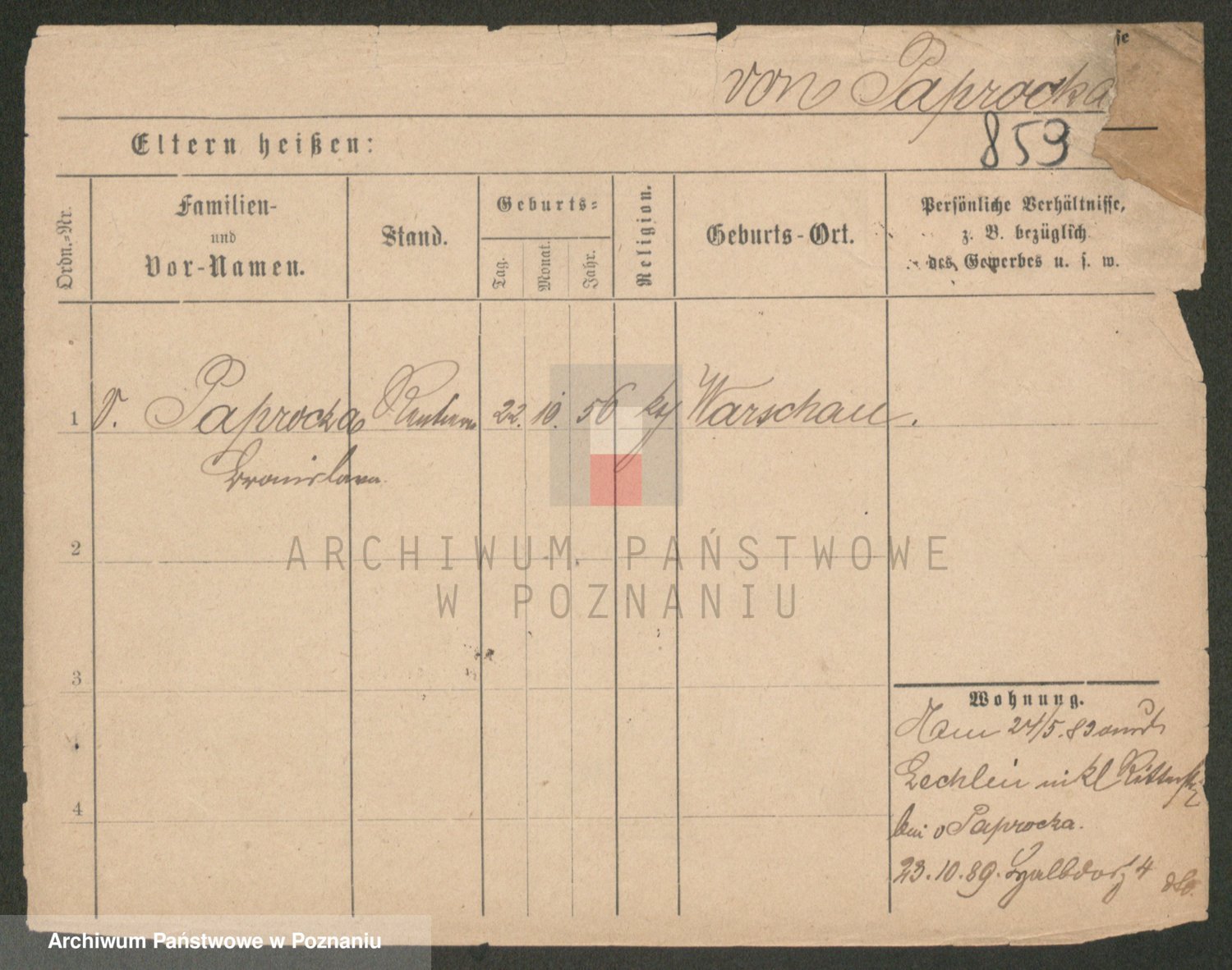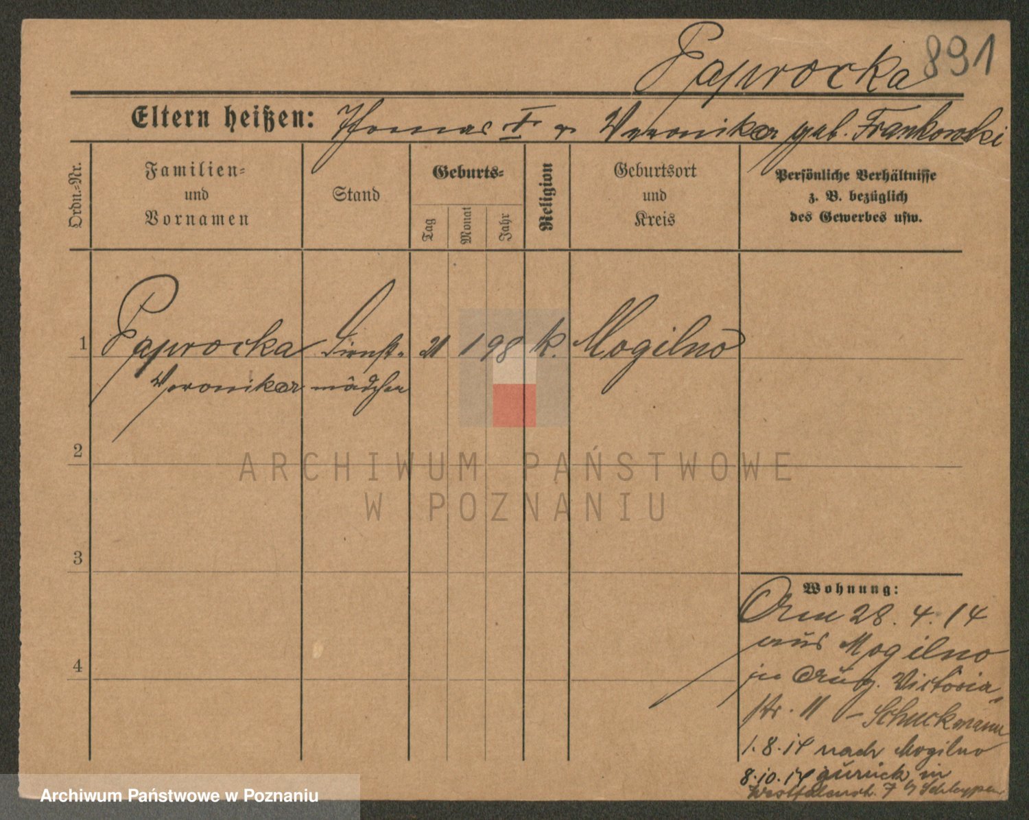Paprocka von, Bronislawa