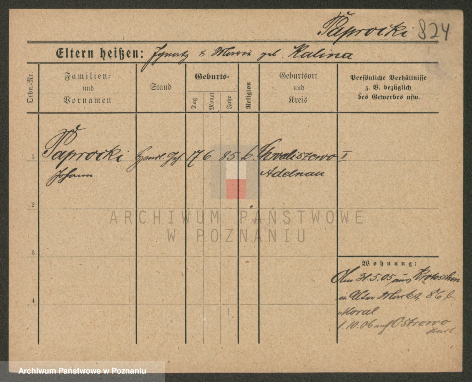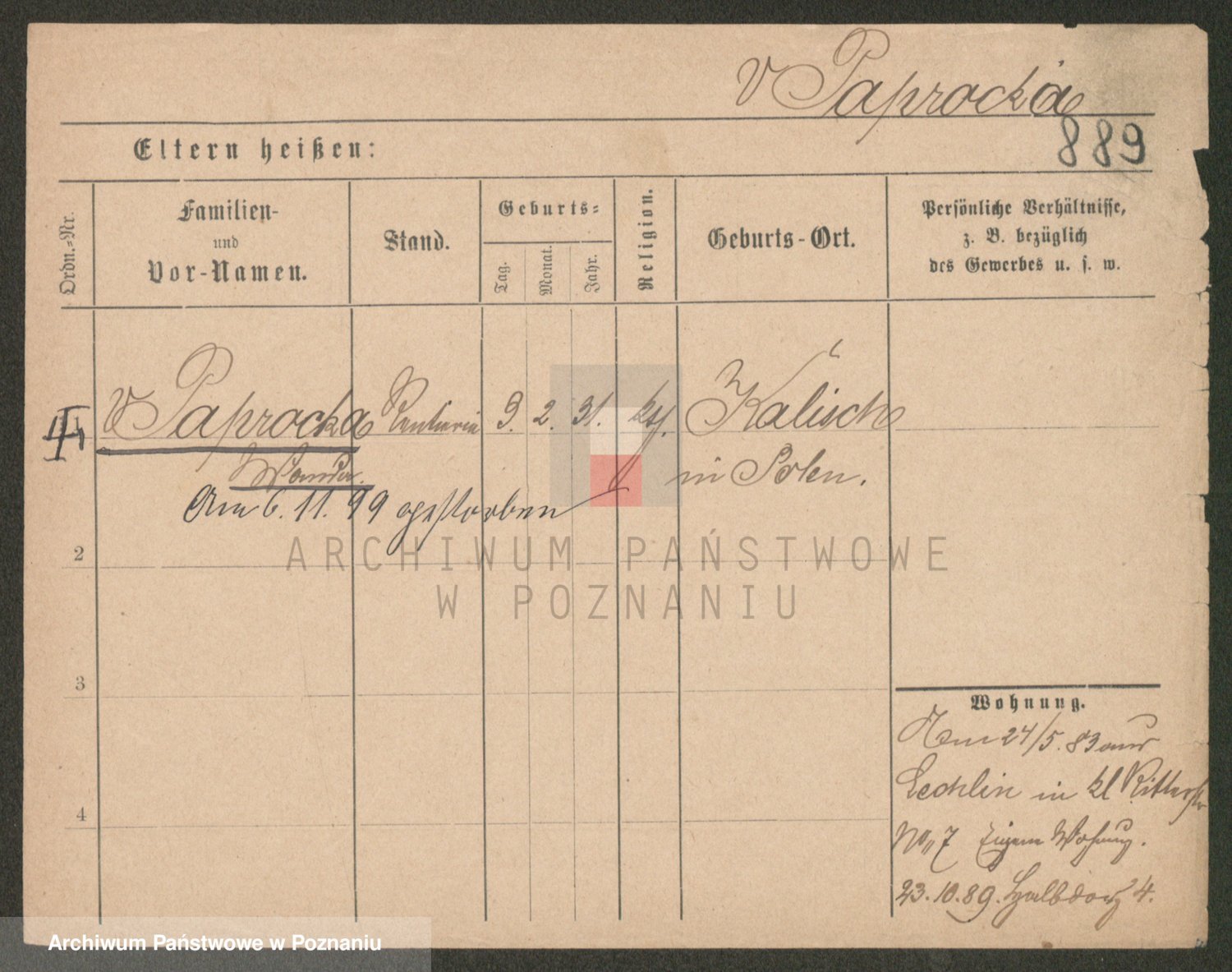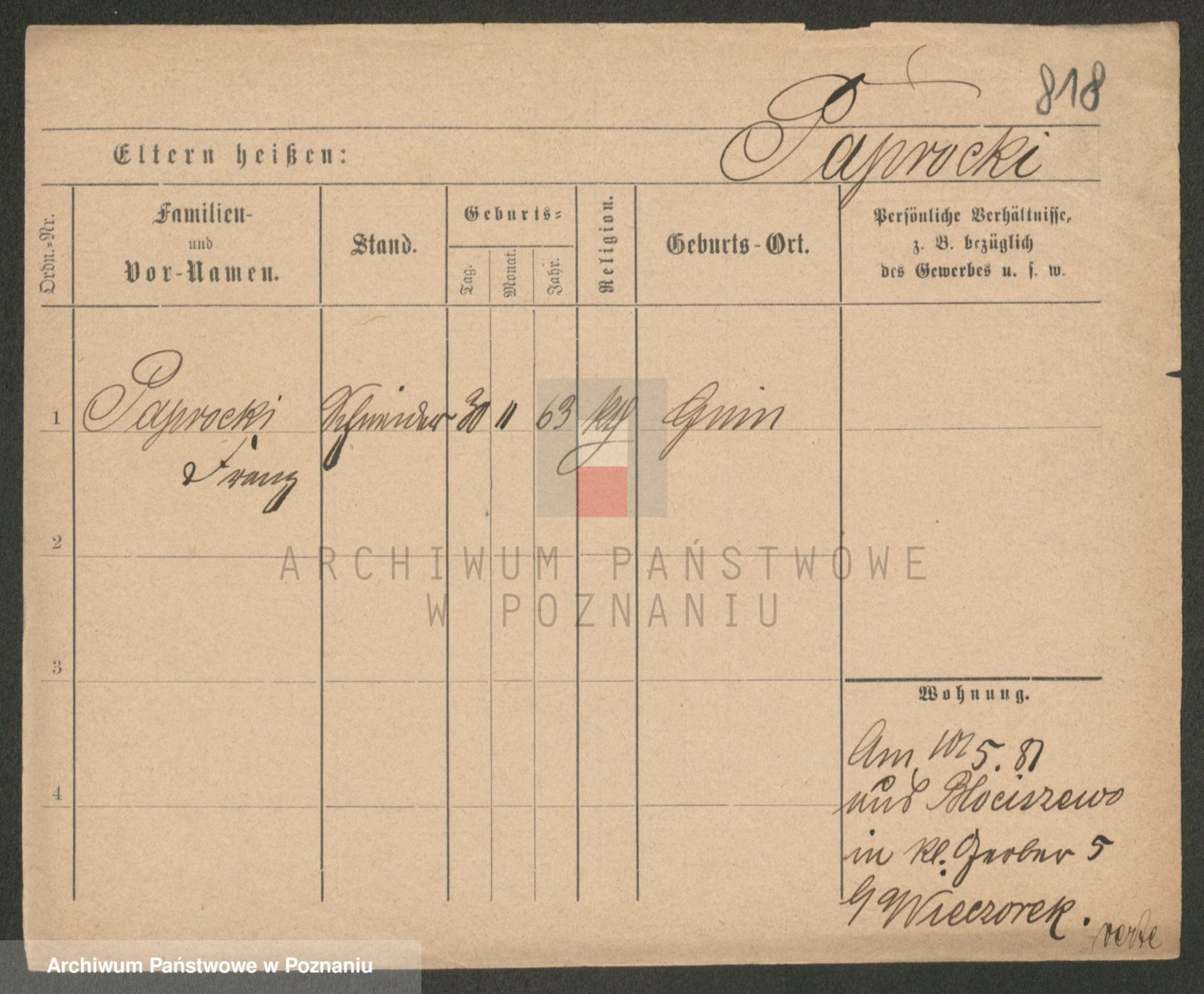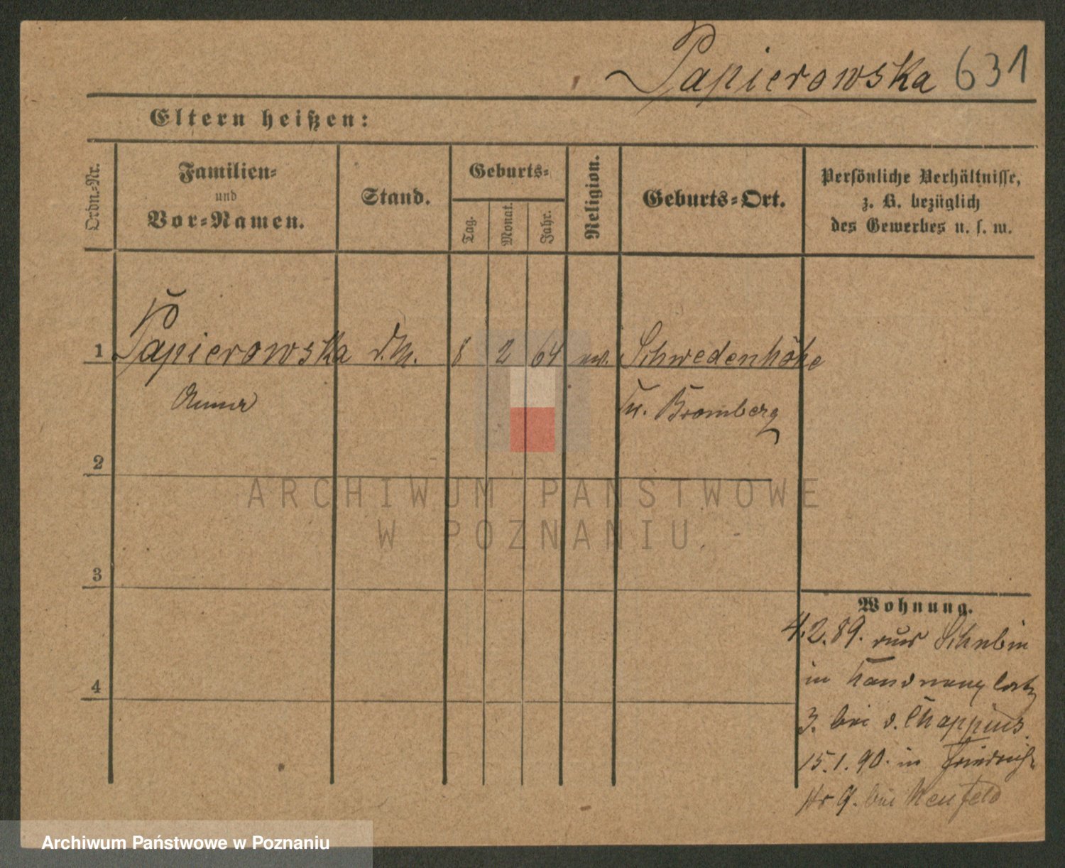 Paprocka von, Bronislawa